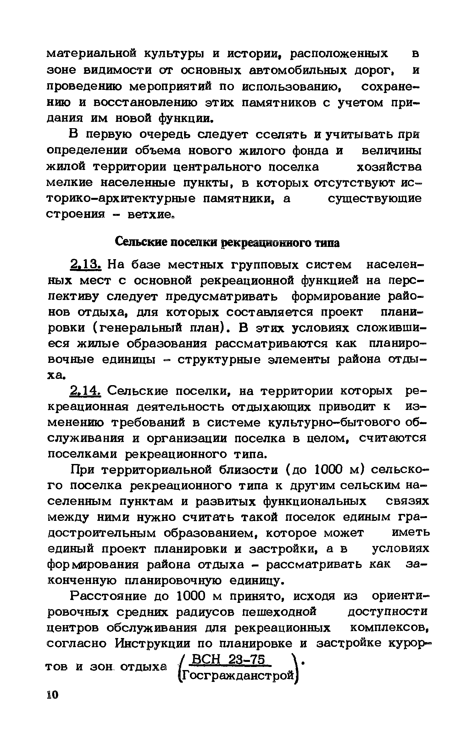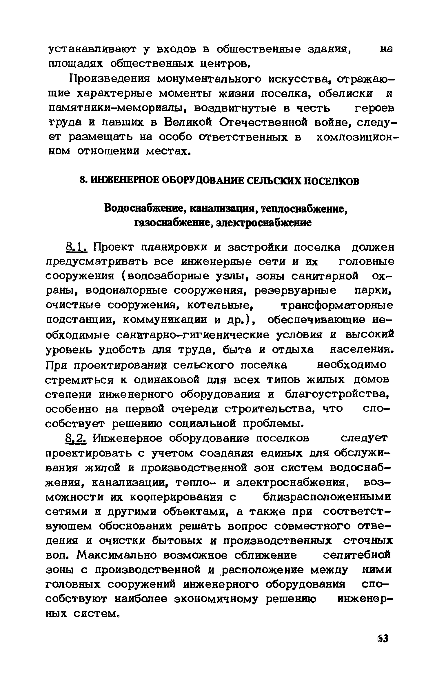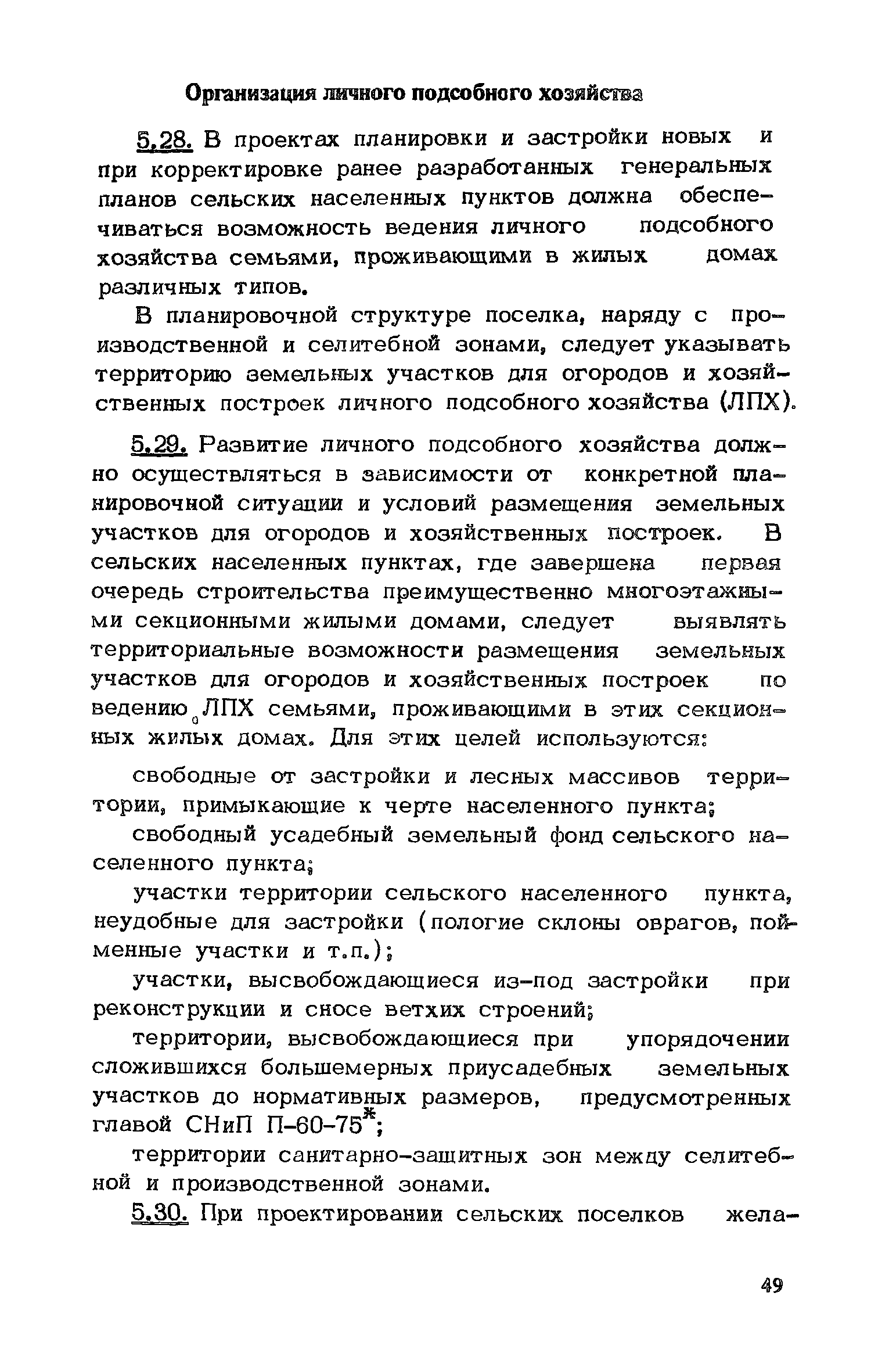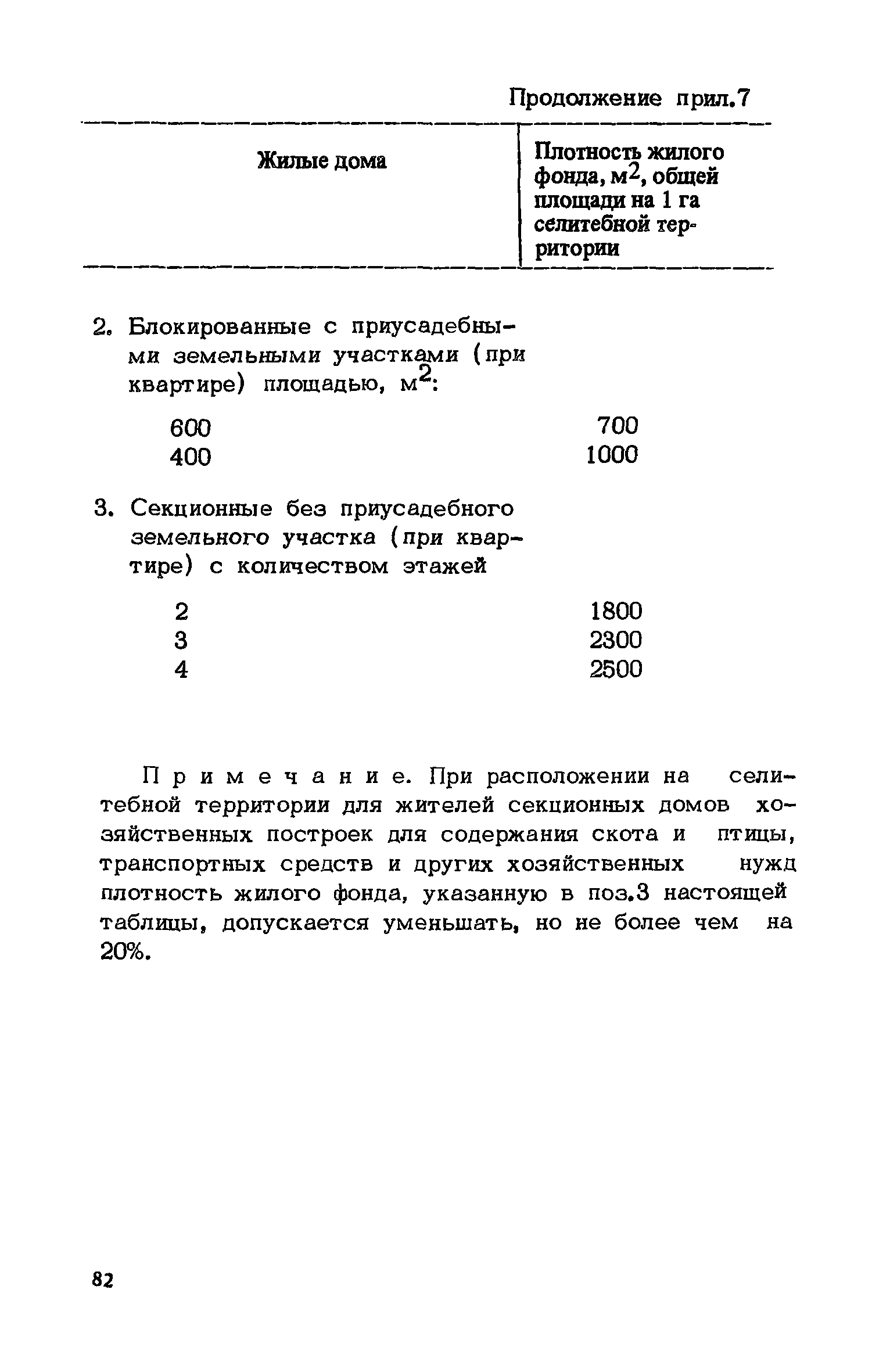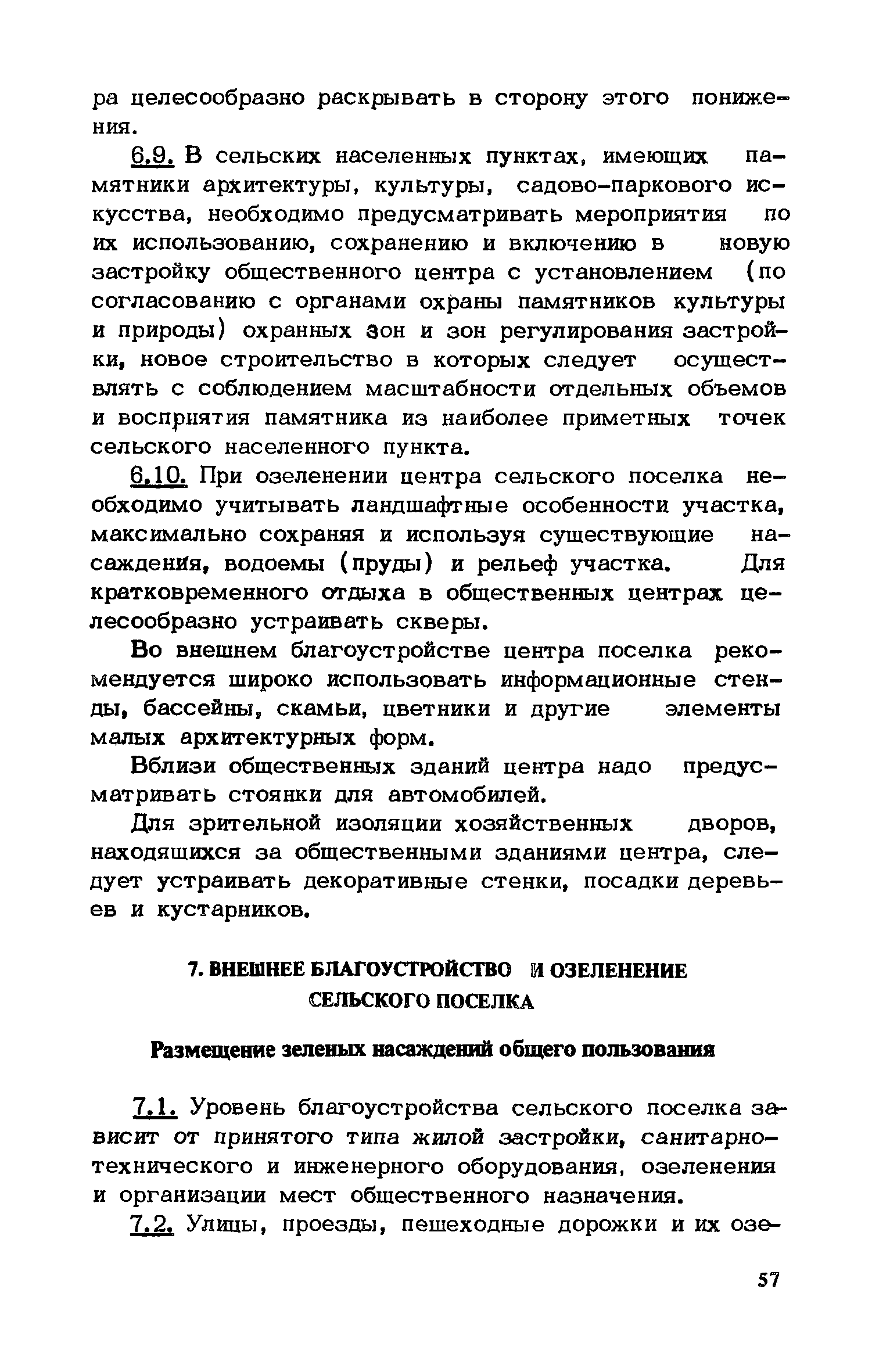 | Оглавление: | 1. Общие положения 2. Развитие сельских поселков Перспективные сельские населенные пункты Сселение мелких сельских населенных пунктов Сельские поселки рекреационного типа Технико-экономическое обоснование проектов планировки и застройки поселков 3. Общая организация территории сельского поселка Использование природно-ландшафтных факторов при организации поселка Охрана окружающей среды Выбор территории для строительства поселка Функциональное зонирование территории поселка Размещение первой очереди строительства поселка Использование исторических памятников в композиции сельских поселков 4. Планировка селитебной территории сельского поселка Архитектурно-планировочная организация поселка Планировка в условиях реконструкции поселка Определение объемов жилищного строительства 5. Застройка селитебной территории сельского поселка Жилая застройка Застройка усадебными домами Застройка блокированными домами Застройка секционными жилыми домами Размещение участков и хозяйственных построек при домах различных типов Организация личного подсобного хозяйства 6. Общественный центр поселка Размещение и застройка центра 7. Внешнее благоустройство и озеленение сельского поселка Размещение зеленых насаждений общего пользования Озеленение санитарно-защитной зоны Малые архитектурные формы 8. Инженерное оборудование сельских поселков Водоснабжение, канализация, теплоснабжение, газоснабжение, электроснабжение 9. Производственная зона сельского поселка Размещение и организация производственных зон Состав производственной зоны Формирование территории животноводческих комплексов Приложение 1. Определение стоимостного показателя по проекту поселка Приложение 2. Определение расчетной численности рекреантов при проектирования поселков рекреационного типа Приложение 3. Расстояния между жилыми зданиями в застройке различной этажности Приложение 4. Размеры земельных участков школ в зависимости от числа учащихся Приложение 5. Расстояния от жилых и общественных зданий до наземных гаражей с различным числом автомобилей Приложение 6. Соотношения площадей элементов селитебной территории поселка при различной жилой застройки Приложение 7. Плотность жилого фонда селитебной территории сельского населенного пункта при различных типах жилых домов Приложение 8. Минимальные санитарно-гигиенические разрывы для хозяйственных построек и сооружений различного назначения Приложение 9. Допустимые продольные уклоны дорог, улиц и проездов в поселках Приложение 10. Размеры спортивных сооружений Приложение 11. Санитарно-гигиенические требования к очистке территории сельского населенного пункта |