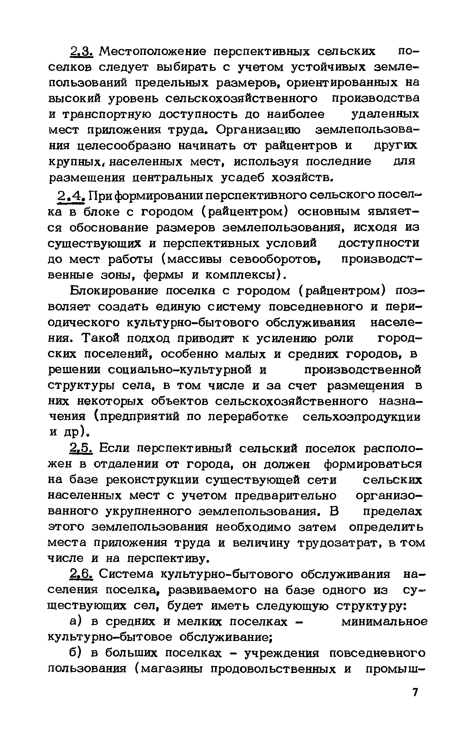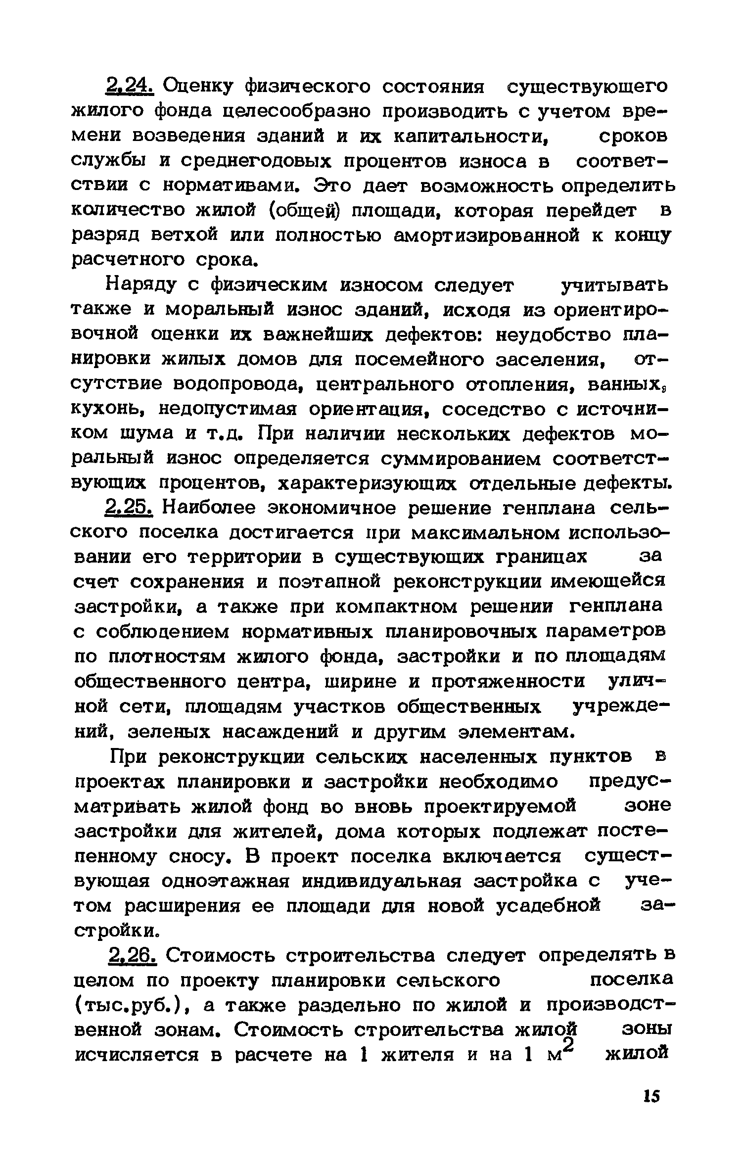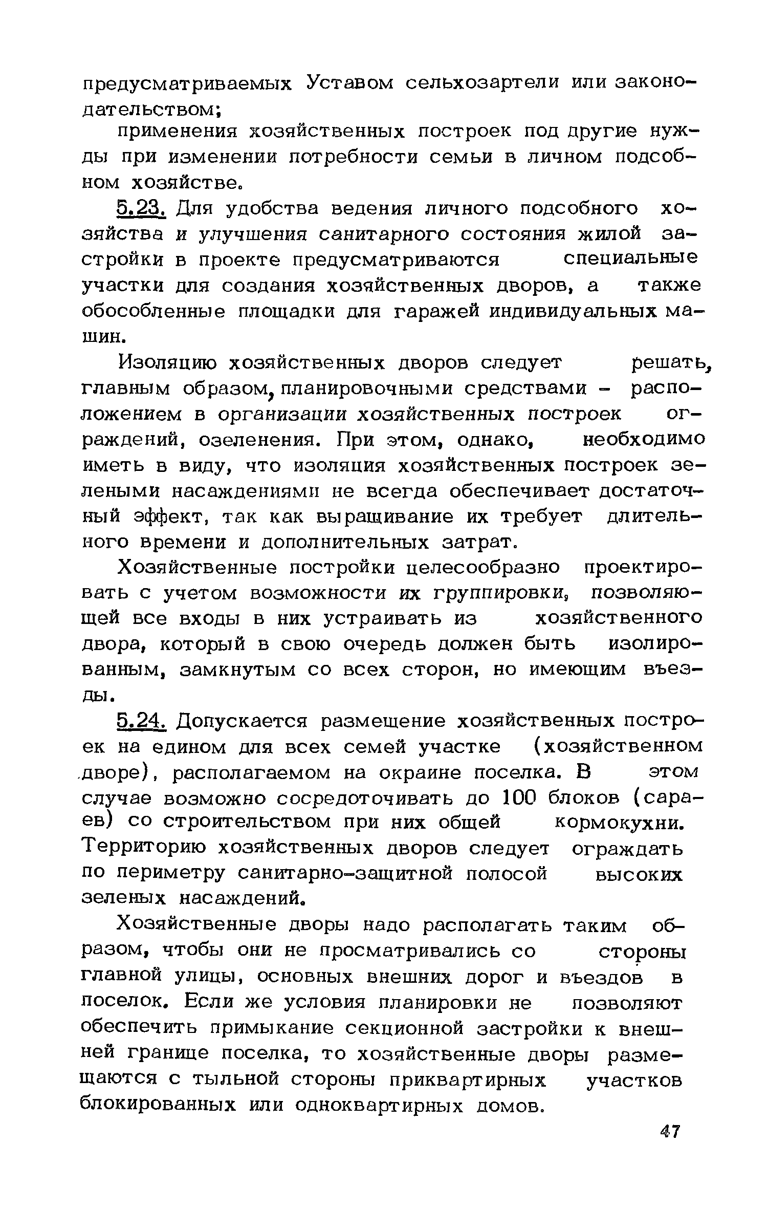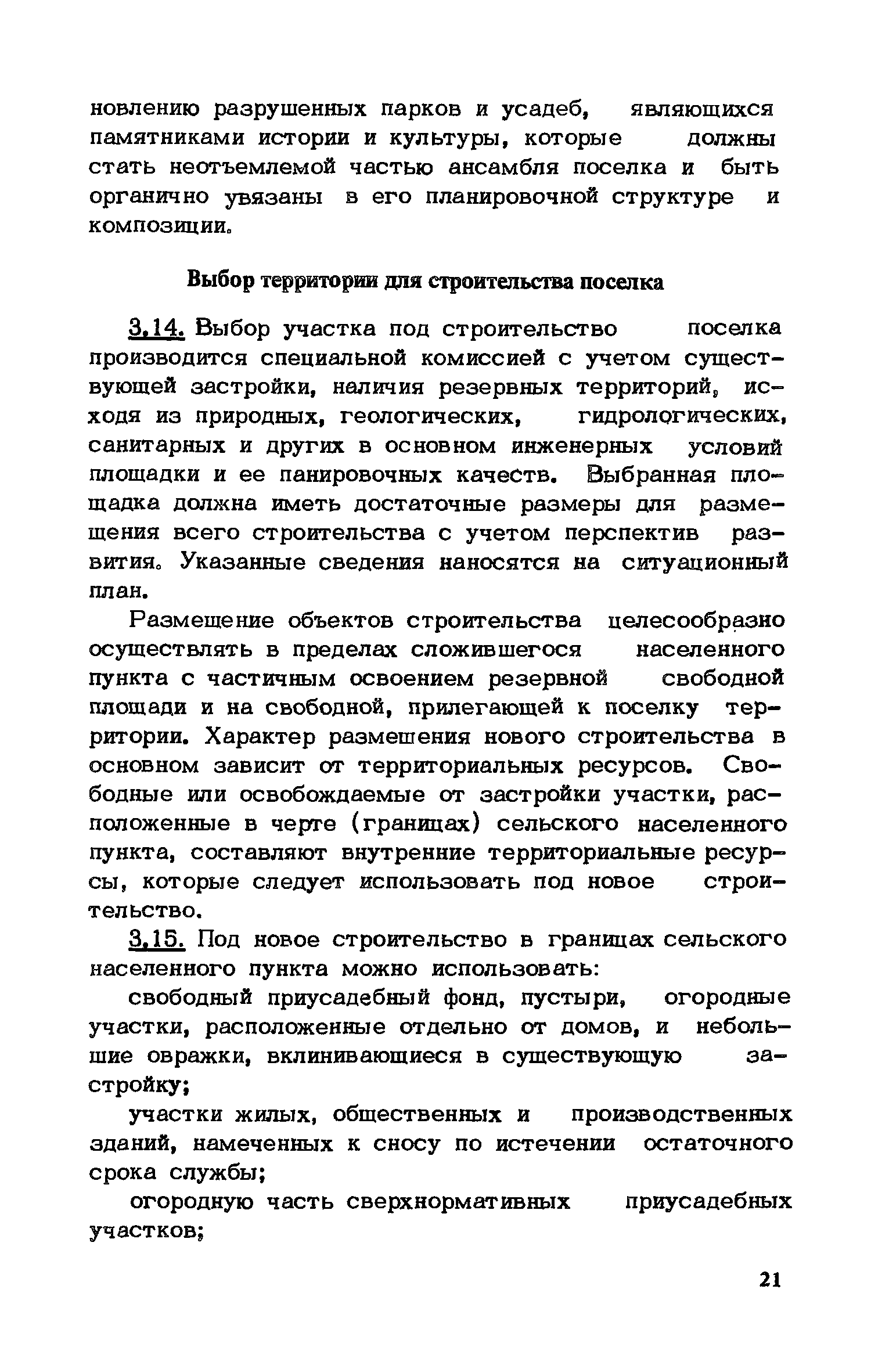 | Оглавление: | 1. Общие положения 2. Развитие сельских поселков Перспективные сельские населенные пункты Сселение мелких сельских населенных пунктов Сельские поселки рекреационного типа Технико-экономическое обоснование проектов планировки и застройки поселков 3. Общая организация территории сельского поселка Использование природно-ландшафтных факторов при организации поселка Охрана окружающей среды Выбор территории для строительства поселка Функциональное зонирование территории поселка Размещение первой очереди строительства поселка Использование исторических памятников в композиции сельских поселков 4. Планировка селитебной территории сельского поселка Архитектурно-планировочная организация поселка Планировка в условиях реконструкции поселка Определение объемов жилищного строительства 5. Застройка селитебной территории сельского поселка Жилая застройка Застройка усадебными домами Застройка блокированными домами Застройка секционными жилыми домами Размещение участков и хозяйственных построек при домах различных типов Организация личного подсобного хозяйства 6. Общественный центр поселка Размещение и застройка центра 7. Внешнее благоустройство и озеленение сельского поселка Размещение зеленых насаждений общего пользования Озеленение санитарно-защитной зоны Малые архитектурные формы 8. Инженерное оборудование сельских поселков Водоснабжение, канализация, теплоснабжение, газоснабжение, электроснабжение 9. Производственная зона сельского поселка Размещение и организация производственных зон Состав производственной зоны Формирование территории животноводческих комплексов Приложение 1. Определение стоимостного показателя по проекту поселка Приложение 2. Определение расчетной численности рекреантов при проектирования поселков рекреационного типа Приложение 3. Расстояния между жилыми зданиями в застройке различной этажности Приложение 4. Размеры земельных участков школ в зависимости от числа учащихся Приложение 5. Расстояния от жилых и общественных зданий до наземных гаражей с различным числом автомобилей Приложение 6. Соотношения площадей элементов селитебной территории поселка при различной жилой застройки Приложение 7. Плотность жилого фонда селитебной территории сельского населенного пункта при различных типах жилых домов Приложение 8. Минимальные санитарно-гигиенические разрывы для хозяйственных построек и сооружений различного назначения Приложение 9. Допустимые продольные уклоны дорог, улиц и проездов в поселках Приложение 10. Размеры спортивных сооружений Приложение 11. Санитарно-гигиенические требования к очистке территории сельского населенного пункта |