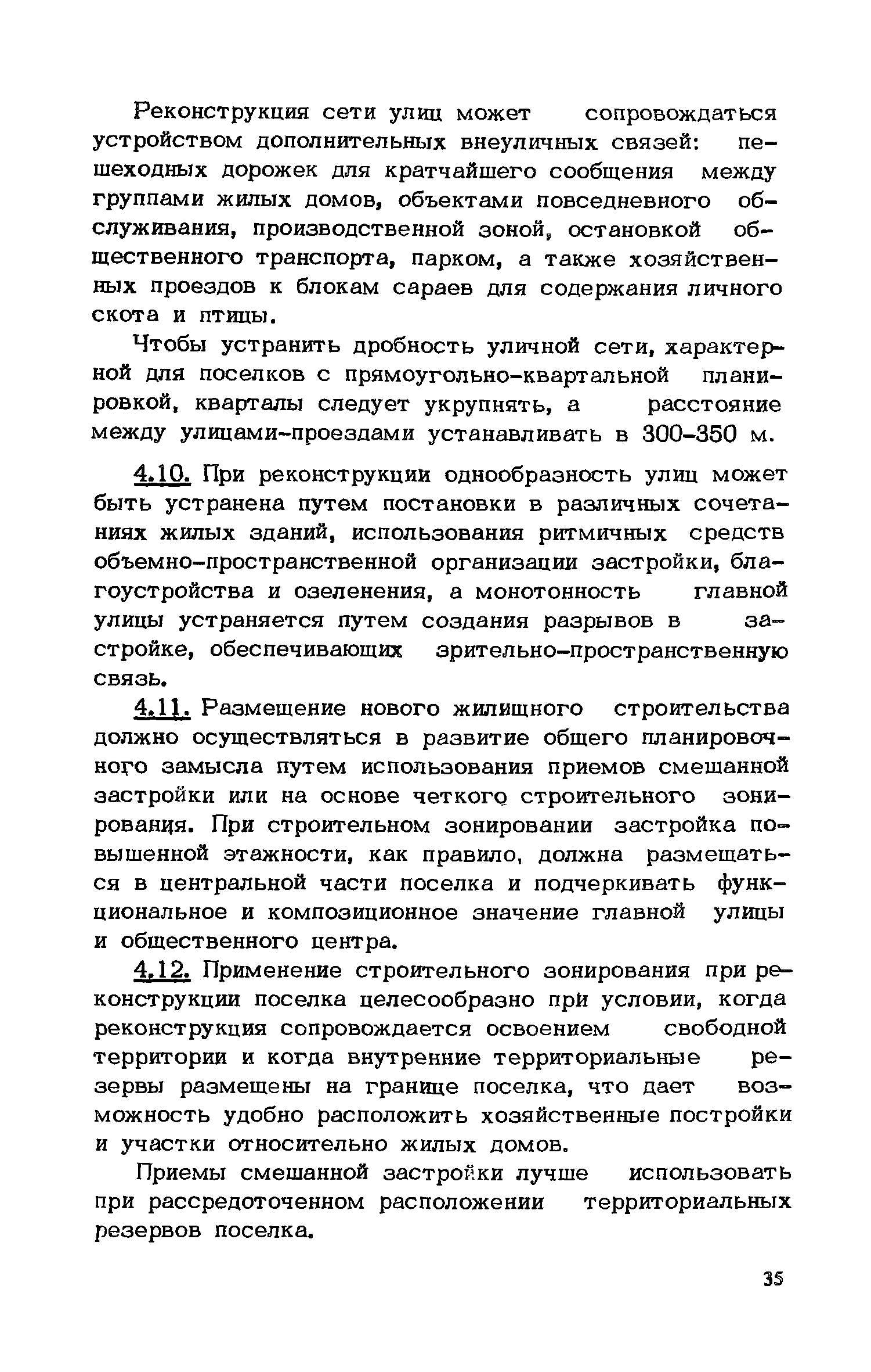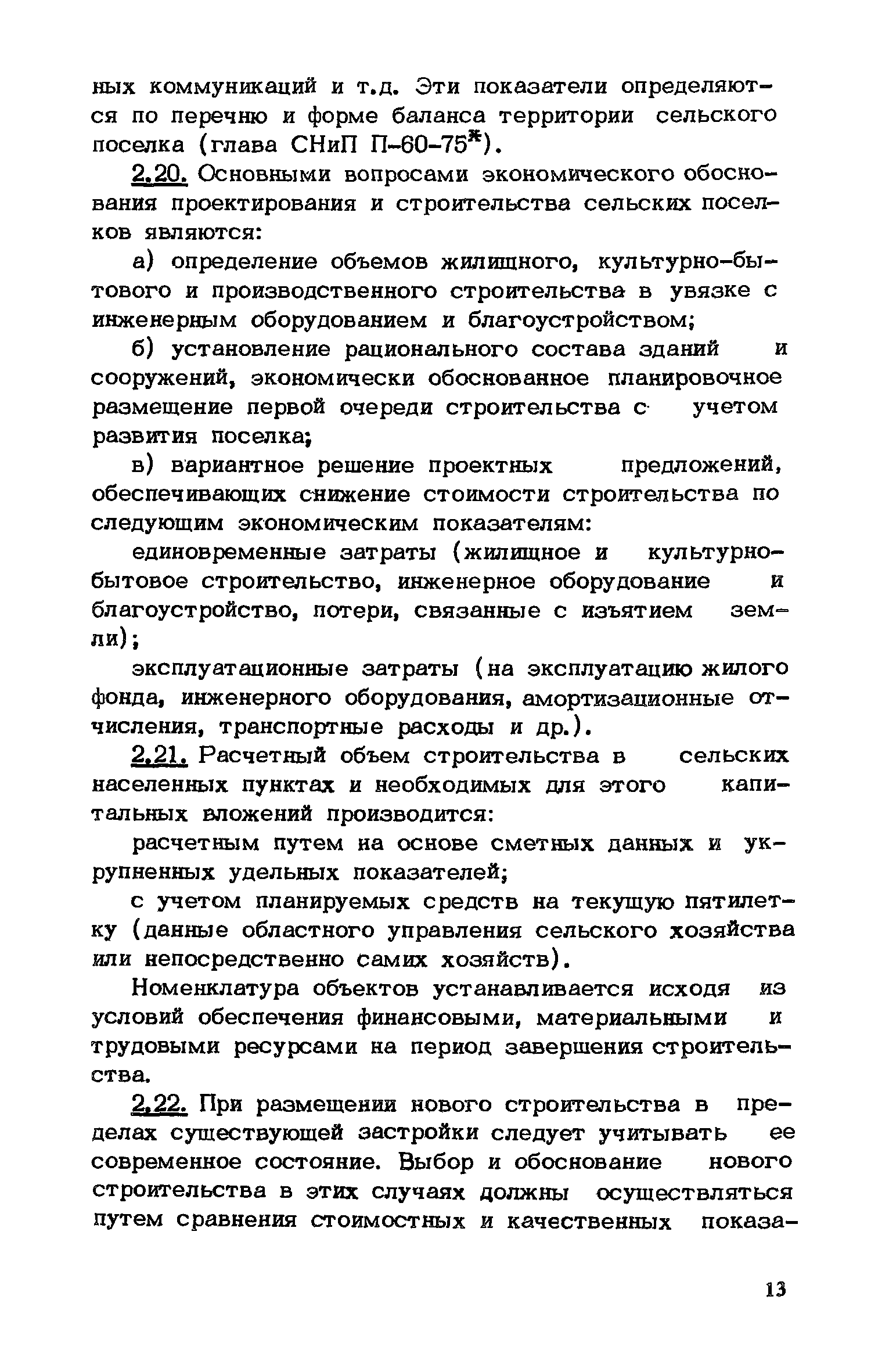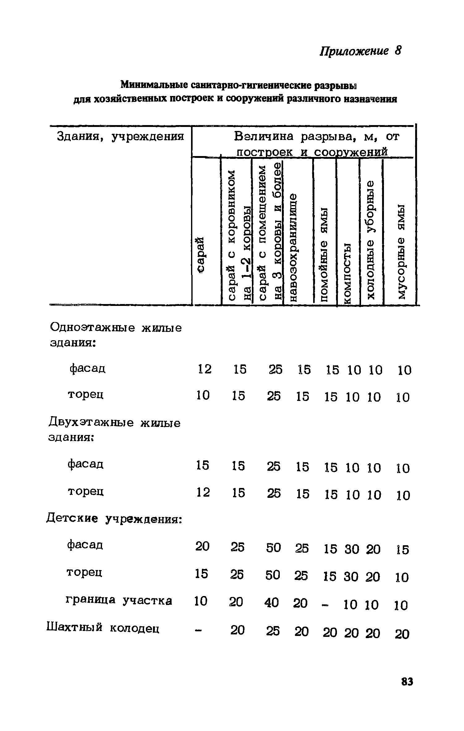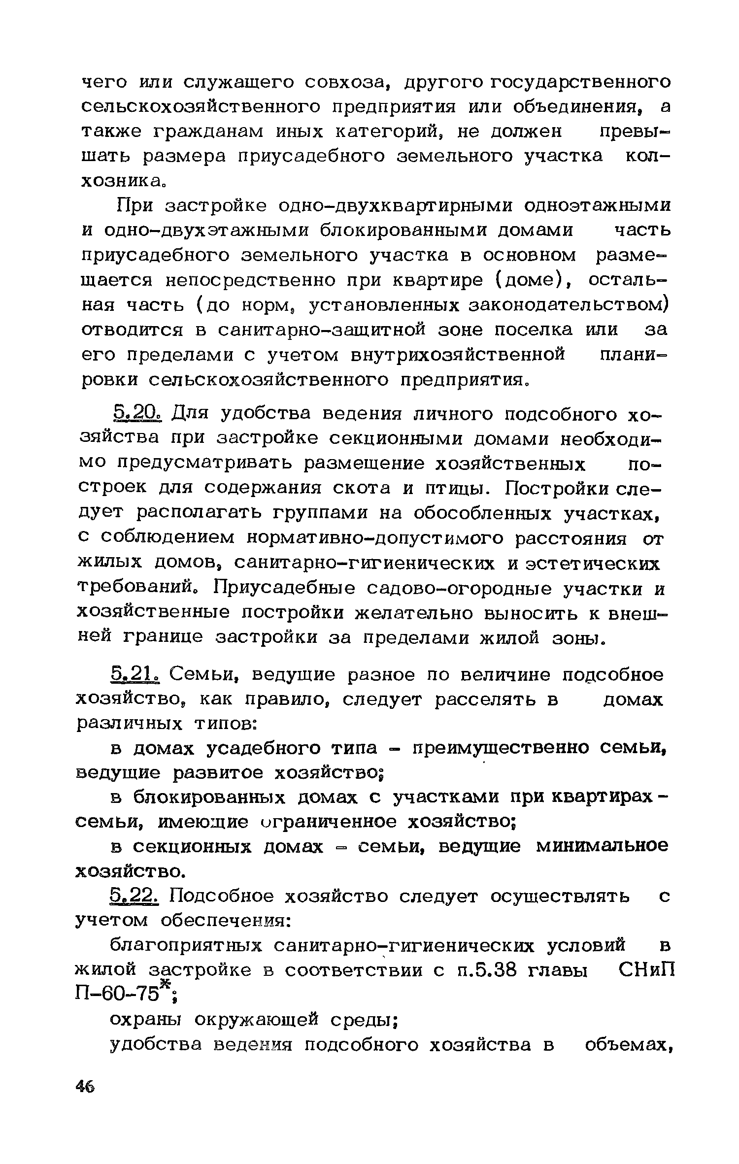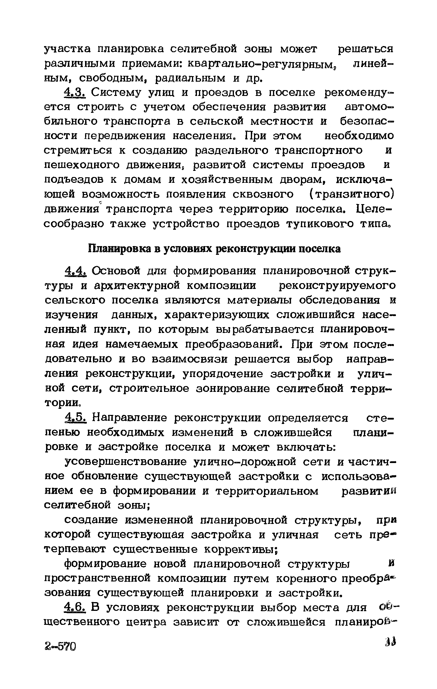 | Оглавление: | 1. Общие положения 2. Развитие сельских поселков Перспективные сельские населенные пункты Сселение мелких сельских населенных пунктов Сельские поселки рекреационного типа Технико-экономическое обоснование проектов планировки и застройки поселков 3. Общая организация территории сельского поселка Использование природно-ландшафтных факторов при организации поселка Охрана окружающей среды Выбор территории для строительства поселка Функциональное зонирование территории поселка Размещение первой очереди строительства поселка Использование исторических памятников в композиции сельских поселков 4. Планировка селитебной территории сельского поселка Архитектурно-планировочная организация поселка Планировка в условиях реконструкции поселка Определение объемов жилищного строительства 5. Застройка селитебной территории сельского поселка Жилая застройка Застройка усадебными домами Застройка блокированными домами Застройка секционными жилыми домами Размещение участков и хозяйственных построек при домах различных типов Организация личного подсобного хозяйства 6. Общественный центр поселка Размещение и застройка центра 7. Внешнее благоустройство и озеленение сельского поселка Размещение зеленых насаждений общего пользования Озеленение санитарно-защитной зоны Малые архитектурные формы 8. Инженерное оборудование сельских поселков Водоснабжение, канализация, теплоснабжение, газоснабжение, электроснабжение 9. Производственная зона сельского поселка Размещение и организация производственных зон Состав производственной зоны Формирование территории животноводческих комплексов Приложение 1. Определение стоимостного показателя по проекту поселка Приложение 2. Определение расчетной численности рекреантов при проектирования поселков рекреационного типа Приложение 3. Расстояния между жилыми зданиями в застройке различной этажности Приложение 4. Размеры земельных участков школ в зависимости от числа учащихся Приложение 5. Расстояния от жилых и общественных зданий до наземных гаражей с различным числом автомобилей Приложение 6. Соотношения площадей элементов селитебной территории поселка при различной жилой застройки Приложение 7. Плотность жилого фонда селитебной территории сельского населенного пункта при различных типах жилых домов Приложение 8. Минимальные санитарно-гигиенические разрывы для хозяйственных построек и сооружений различного назначения Приложение 9. Допустимые продольные уклоны дорог, улиц и проездов в поселках Приложение 10. Размеры спортивных сооружений Приложение 11. Санитарно-гигиенические требования к очистке территории сельского населенного пункта |