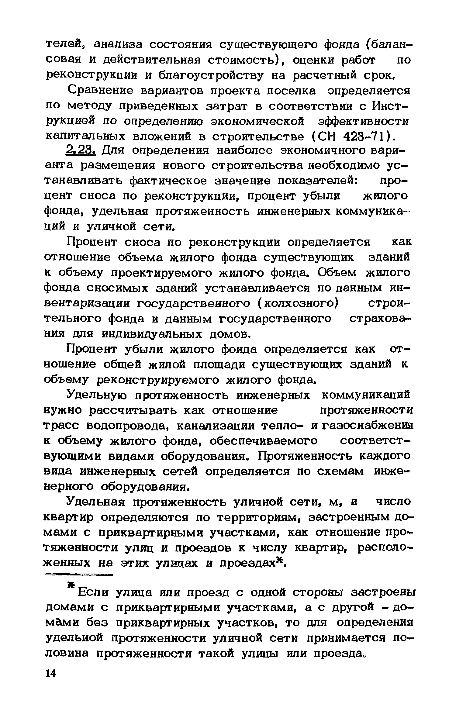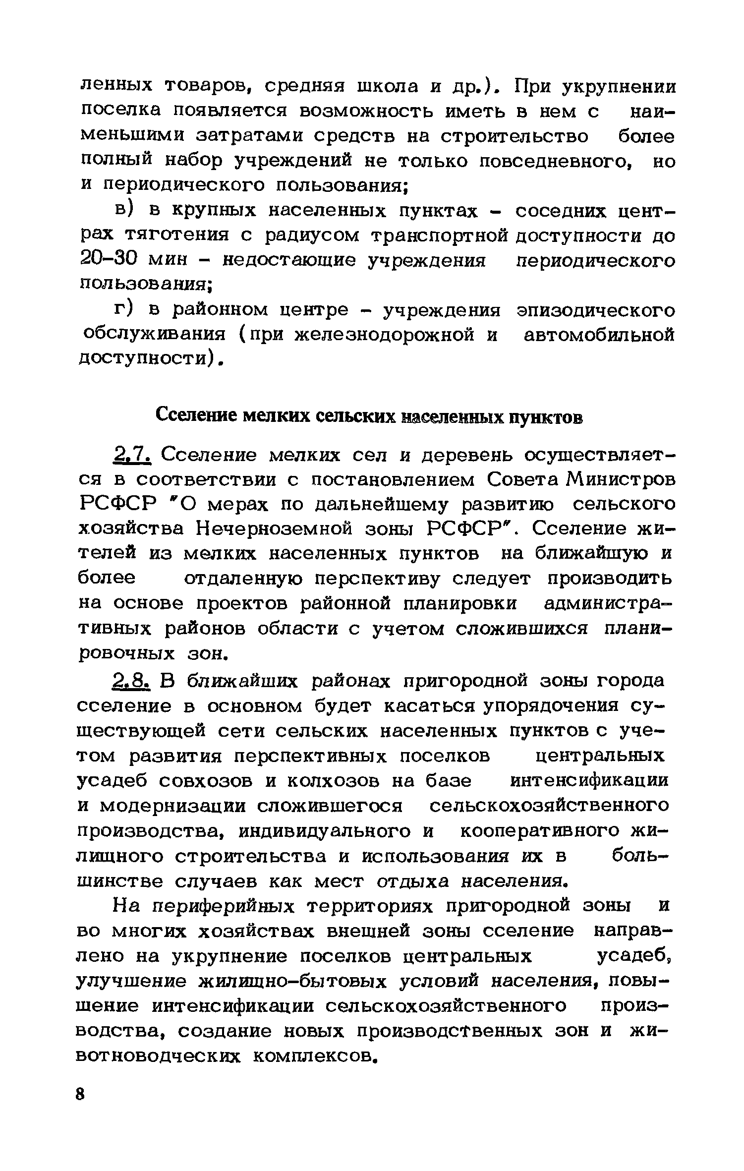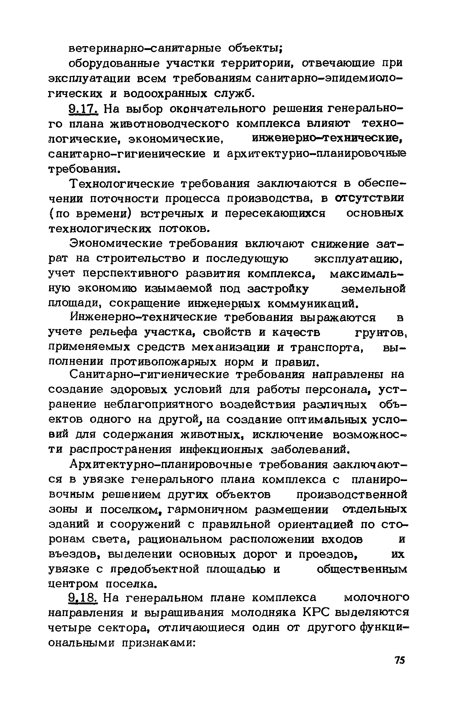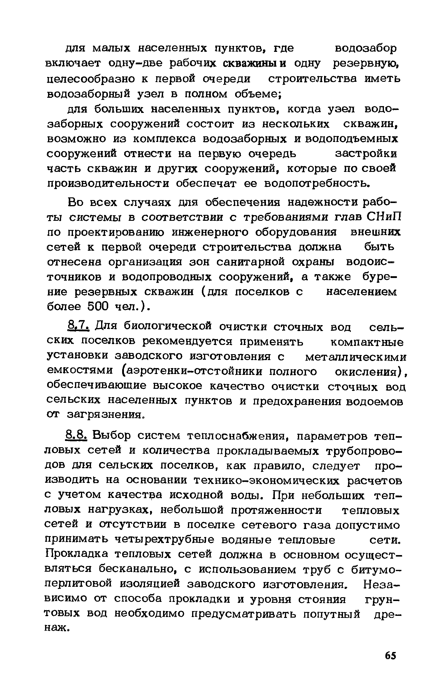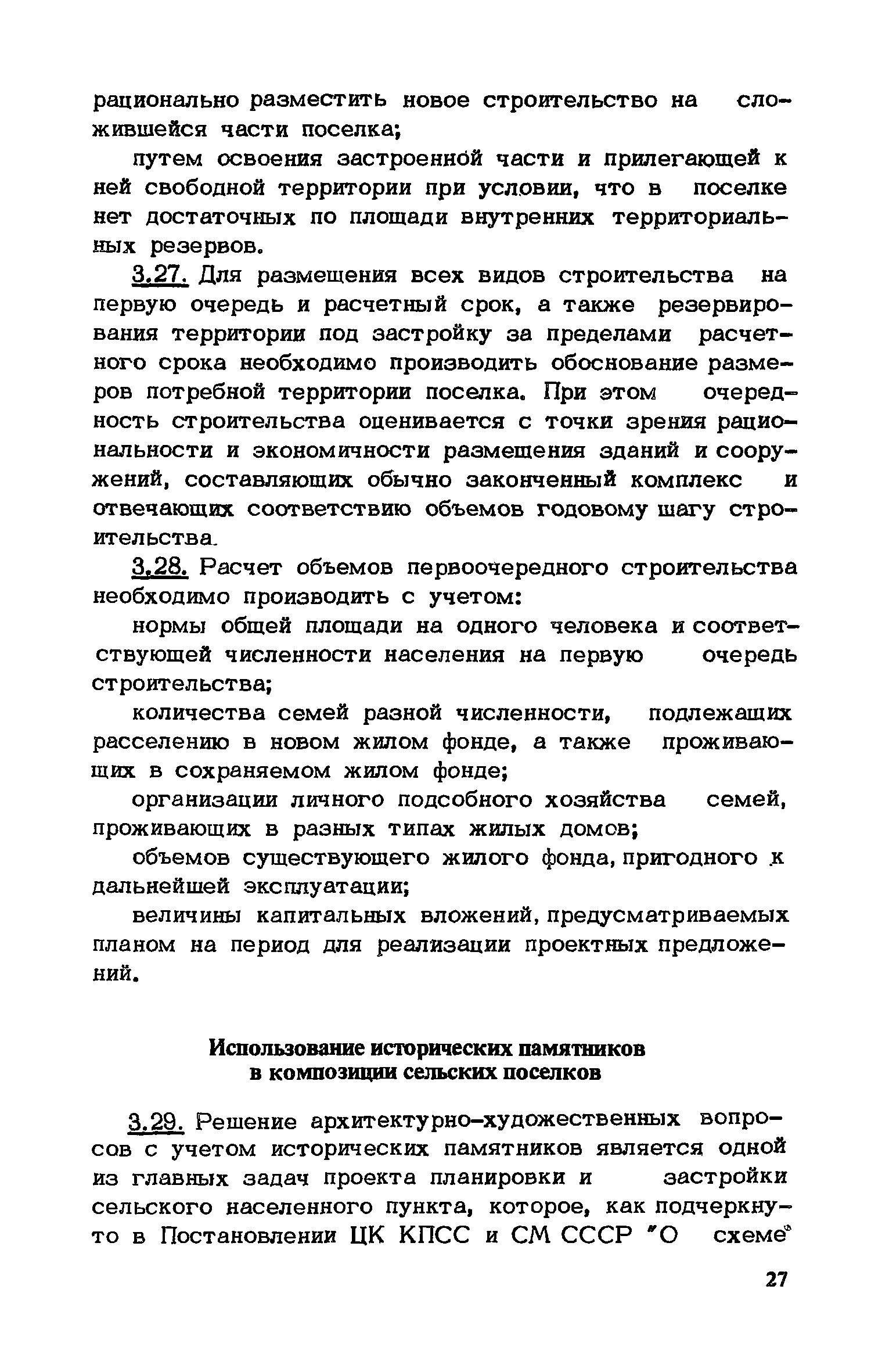 | Оглавление: | 1. Общие положения 2. Развитие сельских поселков Перспективные сельские населенные пункты Сселение мелких сельских населенных пунктов Сельские поселки рекреационного типа Технико-экономическое обоснование проектов планировки и застройки поселков 3. Общая организация территории сельского поселка Использование природно-ландшафтных факторов при организации поселка Охрана окружающей среды Выбор территории для строительства поселка Функциональное зонирование территории поселка Размещение первой очереди строительства поселка Использование исторических памятников в композиции сельских поселков 4. Планировка селитебной территории сельского поселка Архитектурно-планировочная организация поселка Планировка в условиях реконструкции поселка Определение объемов жилищного строительства 5. Застройка селитебной территории сельского поселка Жилая застройка Застройка усадебными домами Застройка блокированными домами Застройка секционными жилыми домами Размещение участков и хозяйственных построек при домах различных типов Организация личного подсобного хозяйства 6. Общественный центр поселка Размещение и застройка центра 7. Внешнее благоустройство и озеленение сельского поселка Размещение зеленых насаждений общего пользования Озеленение санитарно-защитной зоны Малые архитектурные формы 8. Инженерное оборудование сельских поселков Водоснабжение, канализация, теплоснабжение, газоснабжение, электроснабжение 9. Производственная зона сельского поселка Размещение и организация производственных зон Состав производственной зоны Формирование территории животноводческих комплексов Приложение 1. Определение стоимостного показателя по проекту поселка Приложение 2. Определение расчетной численности рекреантов при проектирования поселков рекреационного типа Приложение 3. Расстояния между жилыми зданиями в застройке различной этажности Приложение 4. Размеры земельных участков школ в зависимости от числа учащихся Приложение 5. Расстояния от жилых и общественных зданий до наземных гаражей с различным числом автомобилей Приложение 6. Соотношения площадей элементов селитебной территории поселка при различной жилой застройки Приложение 7. Плотность жилого фонда селитебной территории сельского населенного пункта при различных типах жилых домов Приложение 8. Минимальные санитарно-гигиенические разрывы для хозяйственных построек и сооружений различного назначения Приложение 9. Допустимые продольные уклоны дорог, улиц и проездов в поселках Приложение 10. Размеры спортивных сооружений Приложение 11. Санитарно-гигиенические требования к очистке территории сельского населенного пункта |