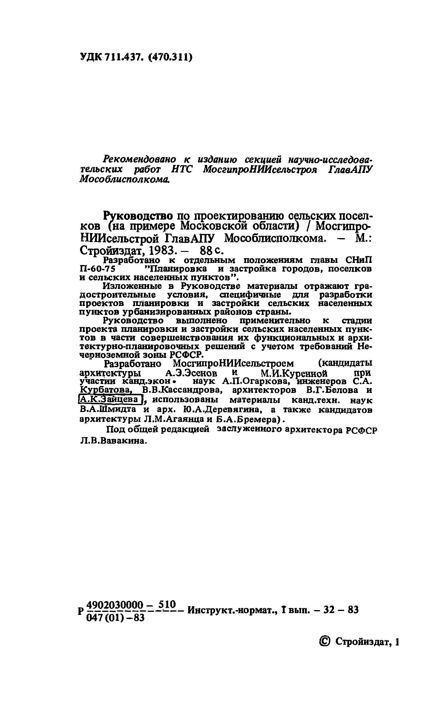 | Утверждён: | МосгипроНИИсельстрой (MosgiproNIIselstroy )