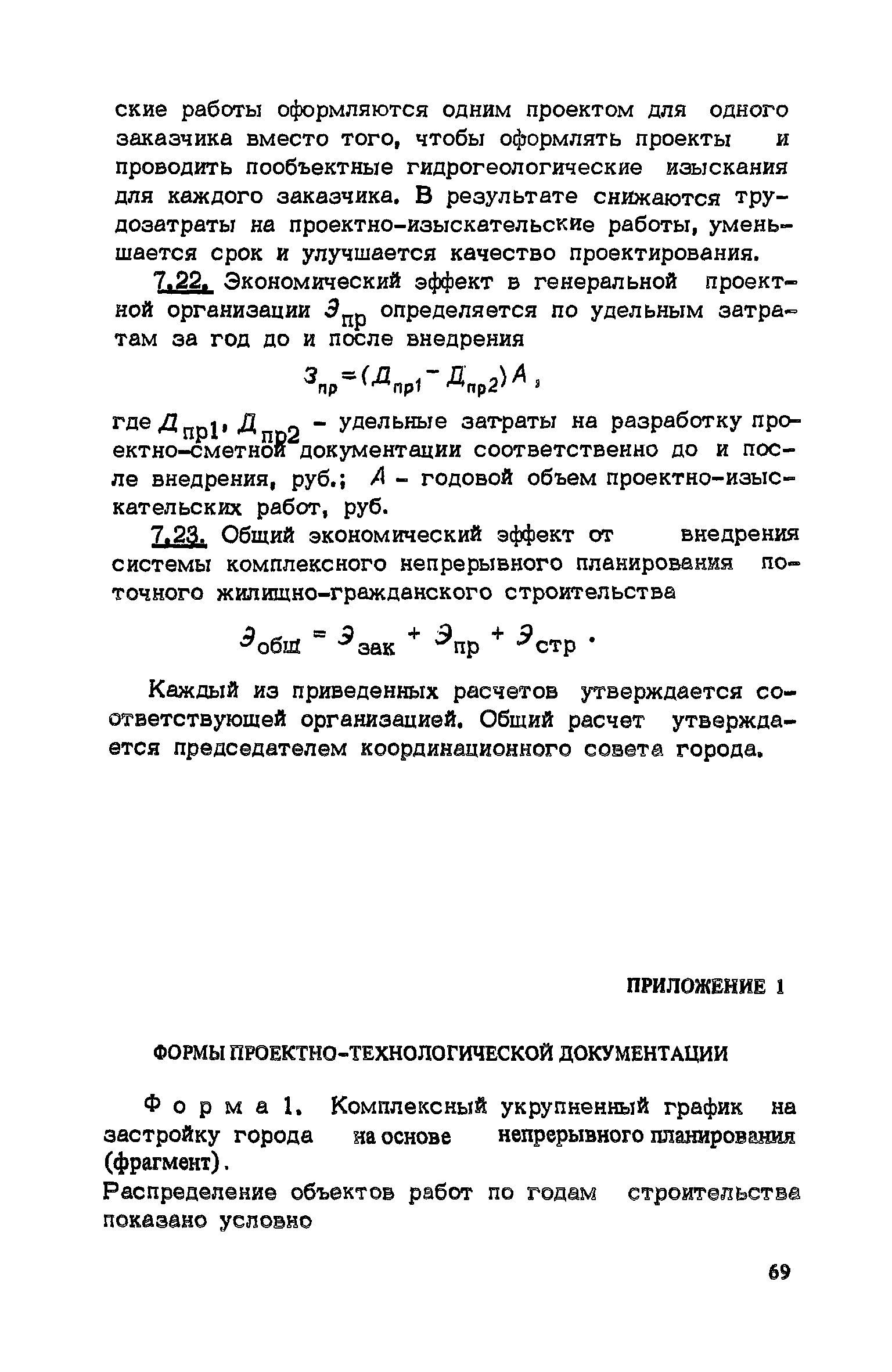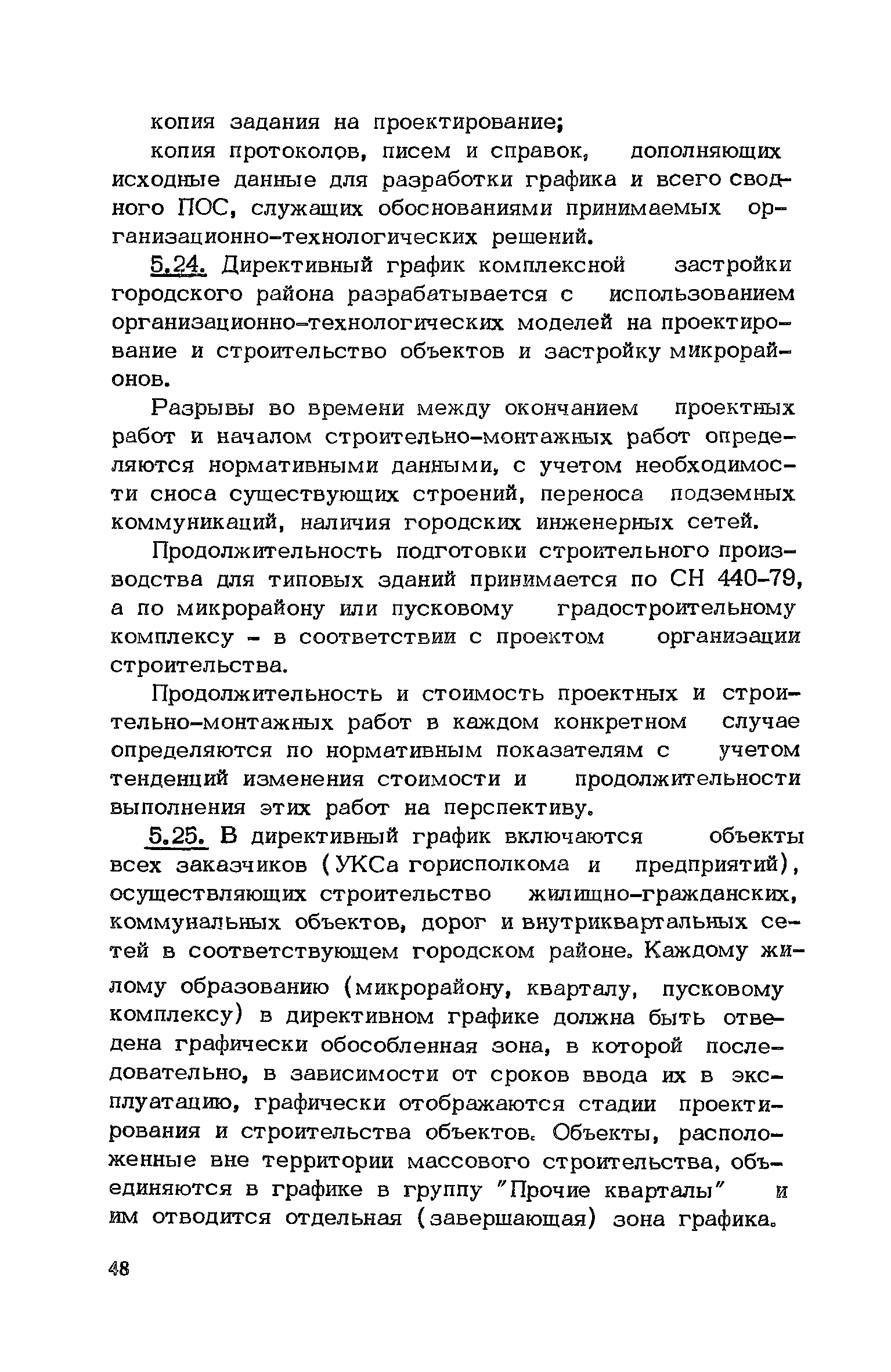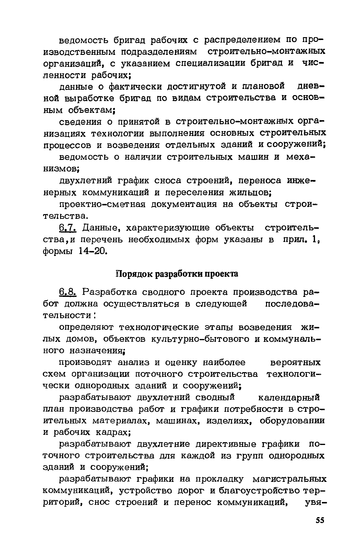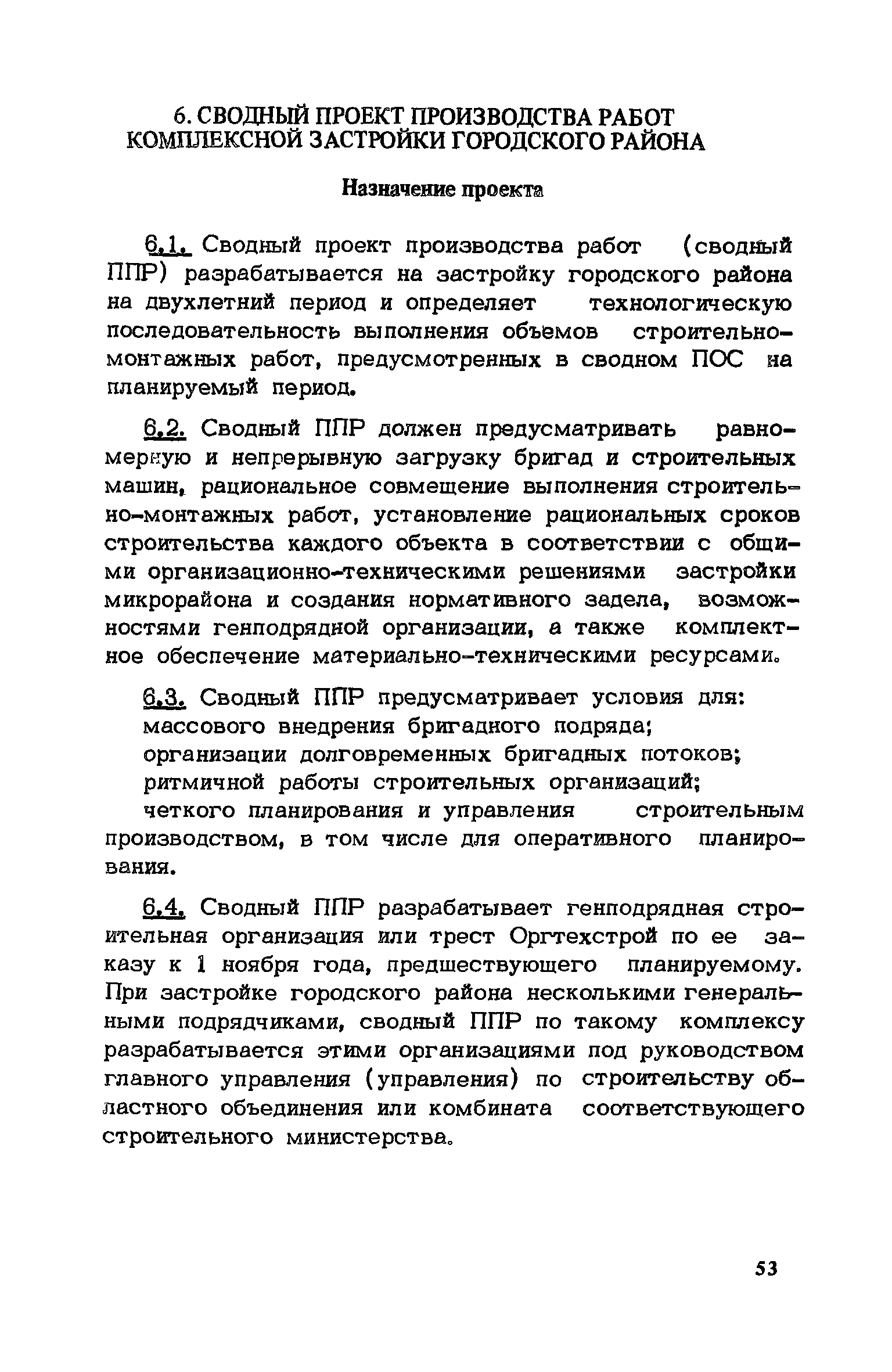 | Оглавление: | Предисловие 1. Общая часть 2. Проектирование организации поточной застройки города 3. Организация строительства городского района 4. Комплексный укрупненный сетевой график застройки города Назначение документа Состав и содержание документа Исходные данные и порядок разработки КУСГ 5. Сводный проект организации строительства городского района Назначение проекта Состав и содержание проекта Исходные данные для разработки проекта Порядок разработки проекта Рекомендации по разработке директивного графика комплексной поточной застройки городского района 6. Сводный проект производства работ комплексной застройки городского района Назначение проекта Состав и содержание проекта Исходные данные для разработки проекта Порядок разработки проекта Рекомендации по разработке двухлетнего календарного плана производства работ комплексной застройки городского района 7. Технико-экономическая оценка комплексного непрерывного планирования и поточного жилищно-гражданского строительства Приложение1. Формы проектно-технологической документации Приложение 2. Дополнительные материалы, разрабатываемые в сводном проекте организации строительства Приложение 3. Дополнительные материалы, разрабатываемые в сводном проекте производства работ Приложение 4. Методика определения оптимальной продолжительности поточной застройки микрорайона (Жилого района) Приложение 5. Перечень основных инструктивно-нормативных и методических материалов, необходимых при составлении проектно-технологической документации |