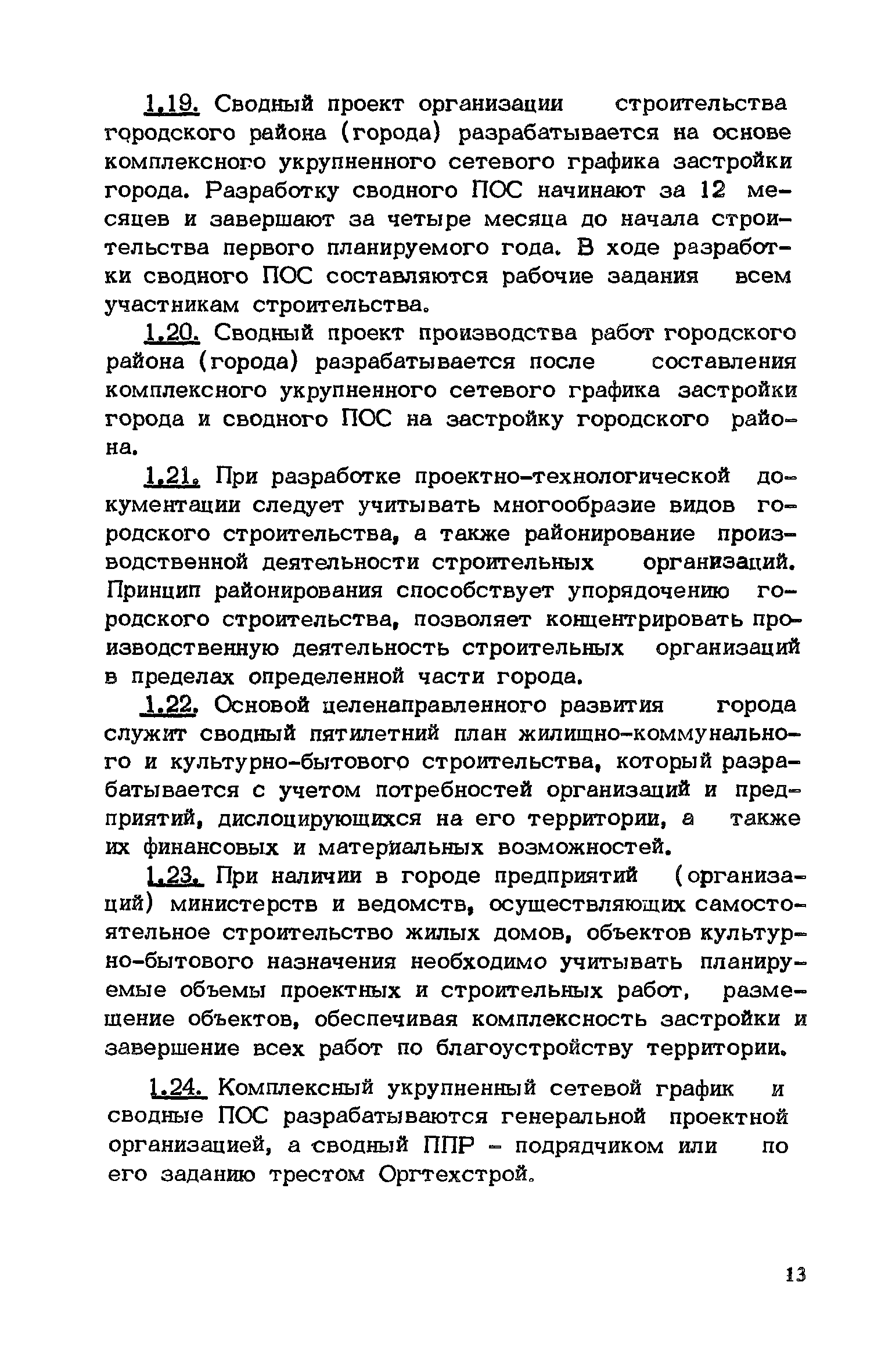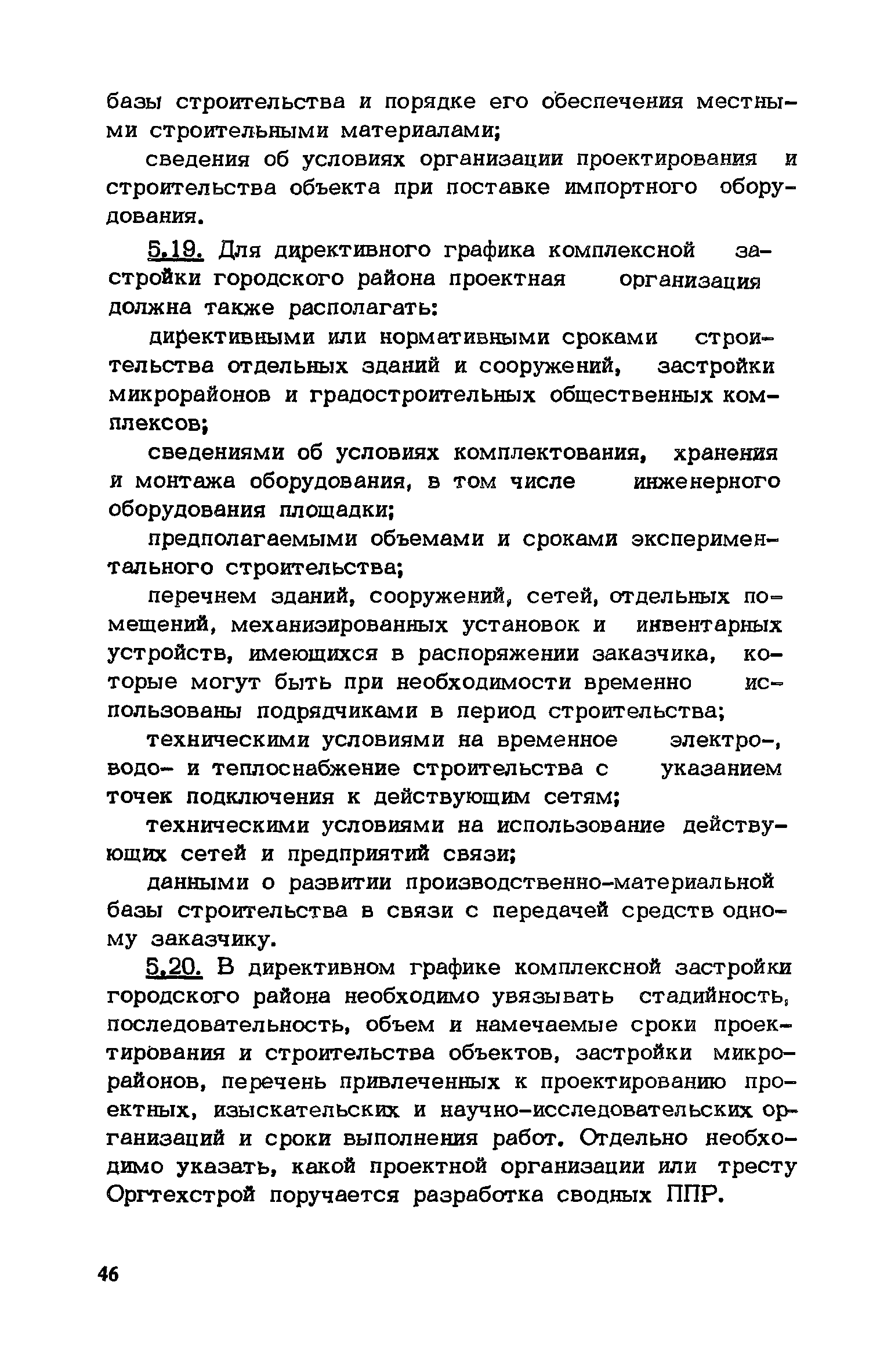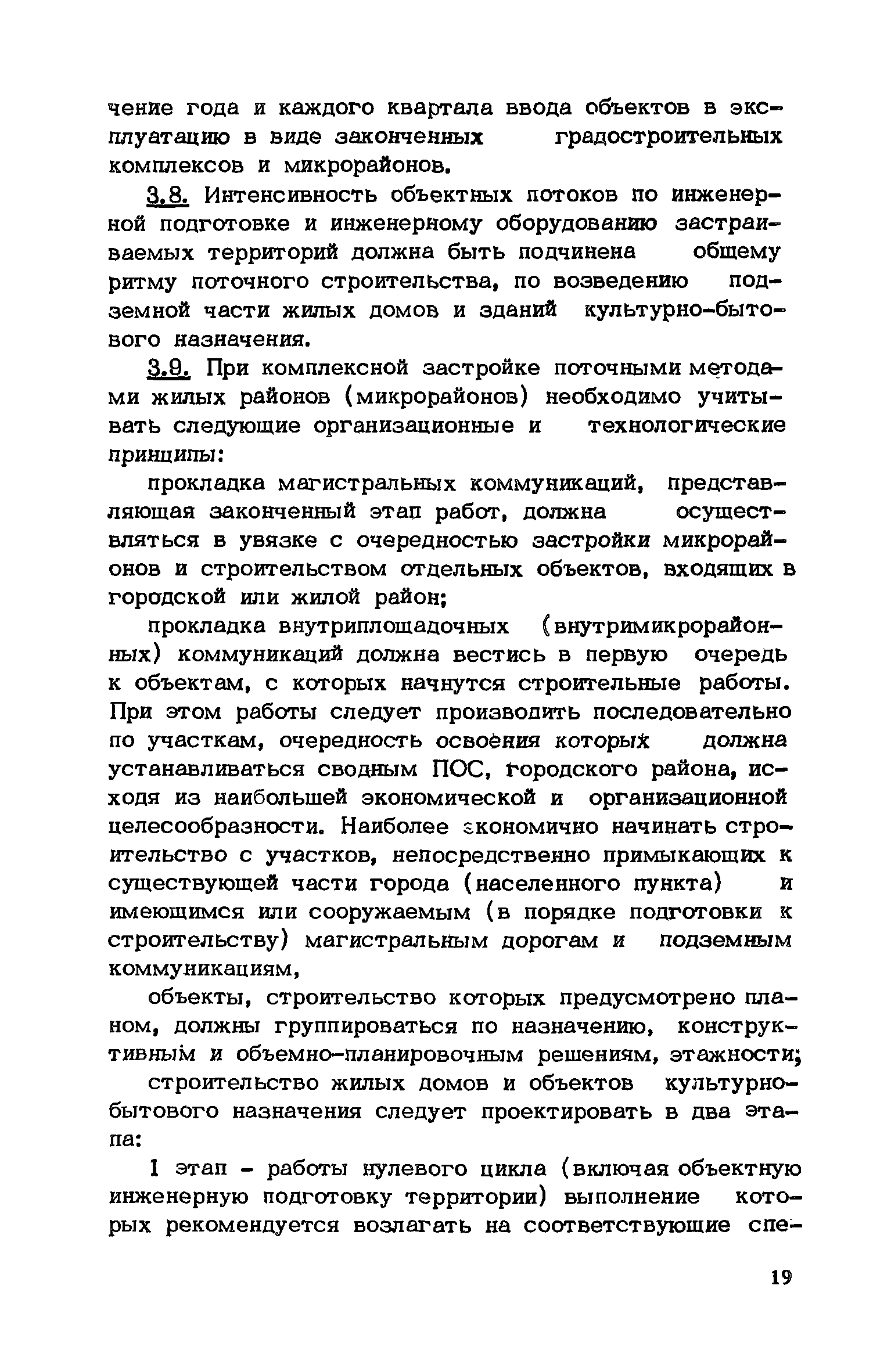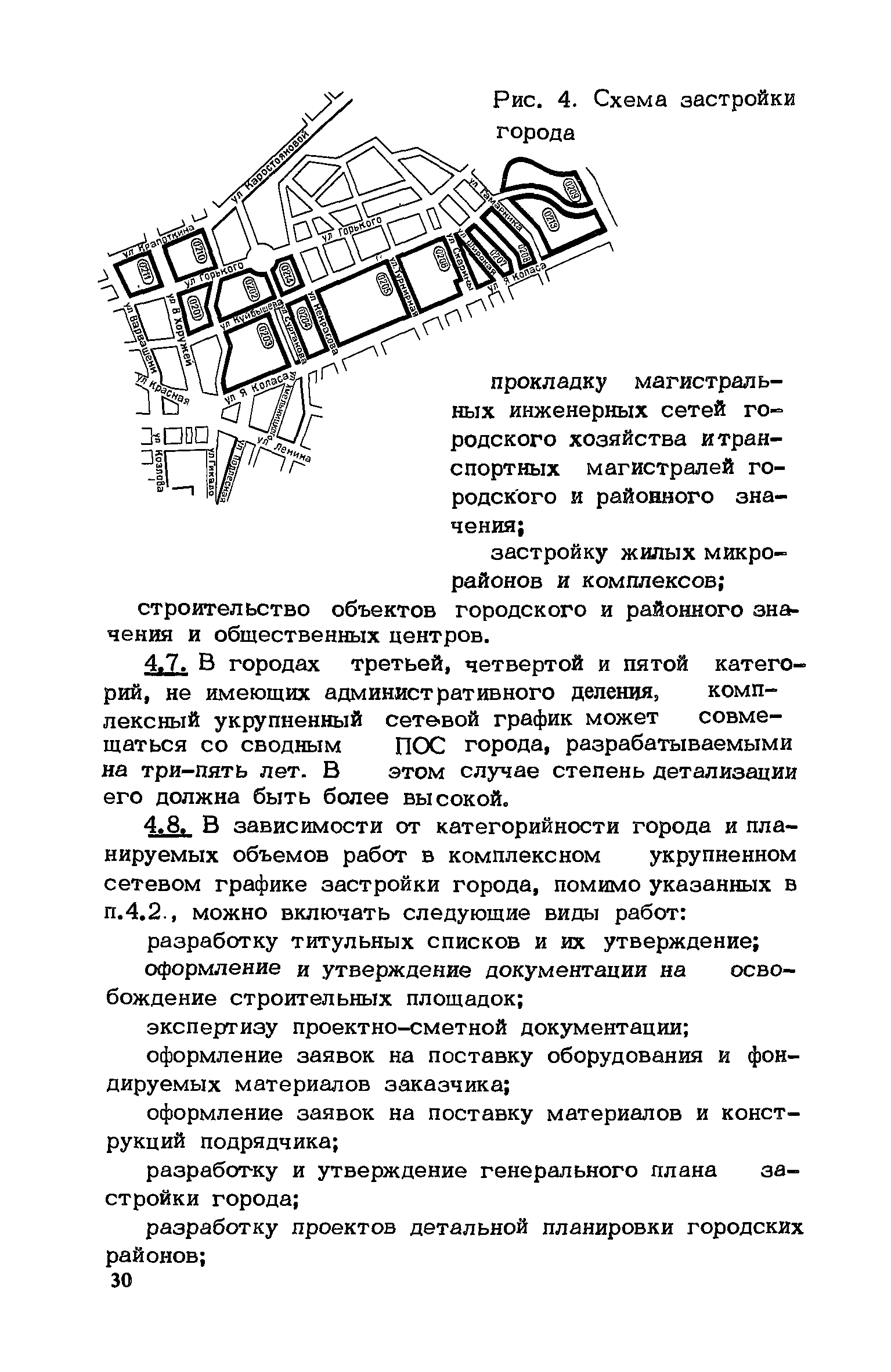 | Оглавление: | Предисловие 1. Общая часть 2. Проектирование организации поточной застройки города 3. Организация строительства городского района 4. Комплексный укрупненный сетевой график застройки города Назначение документа Состав и содержание документа Исходные данные и порядок разработки КУСГ 5. Сводный проект организации строительства городского района Назначение проекта Состав и содержание проекта Исходные данные для разработки проекта Порядок разработки проекта Рекомендации по разработке директивного графика комплексной поточной застройки городского района 6. Сводный проект производства работ комплексной застройки городского района Назначение проекта Состав и содержание проекта Исходные данные для разработки проекта Порядок разработки проекта Рекомендации по разработке двухлетнего календарного плана производства работ комплексной застройки городского района 7. Технико-экономическая оценка комплексного непрерывного планирования и поточного жилищно-гражданского строительства Приложение1. Формы проектно-технологической документации Приложение 2. Дополнительные материалы, разрабатываемые в сводном проекте организации строительства Приложение 3. Дополнительные материалы, разрабатываемые в сводном проекте производства работ Приложение 4. Методика определения оптимальной продолжительности поточной застройки микрорайона (Жилого района) Приложение 5. Перечень основных инструктивно-нормативных и методических материалов, необходимых при составлении проектно-технологической документации |