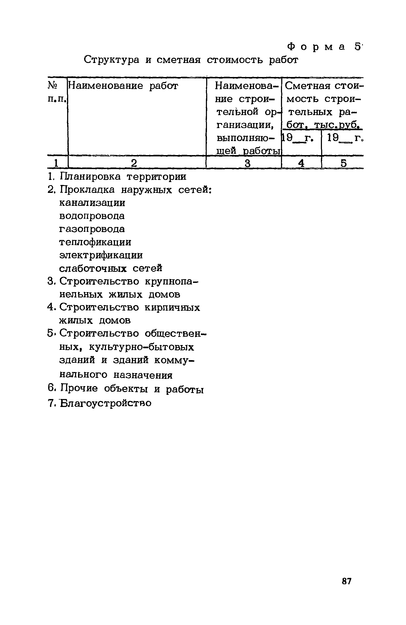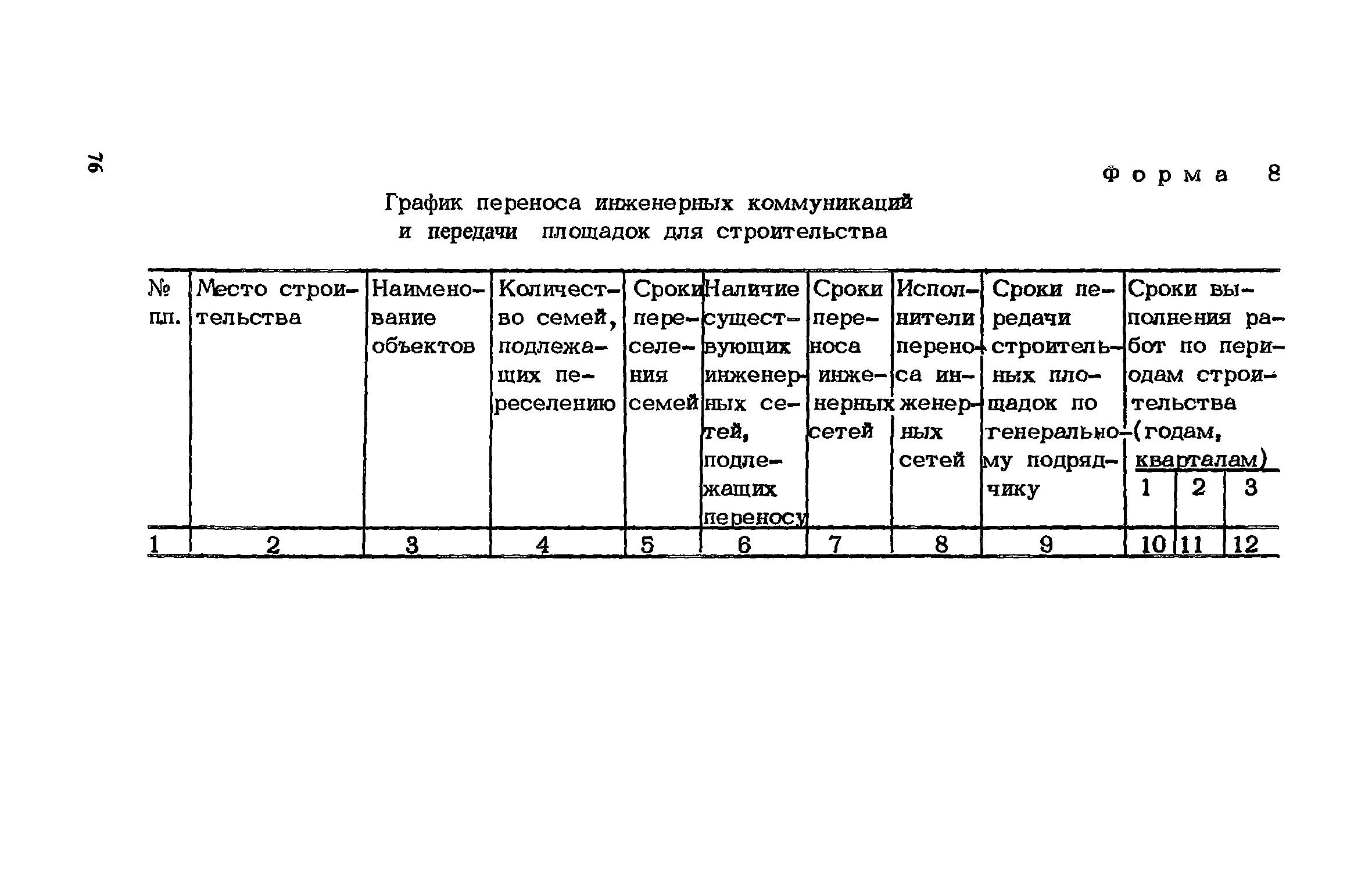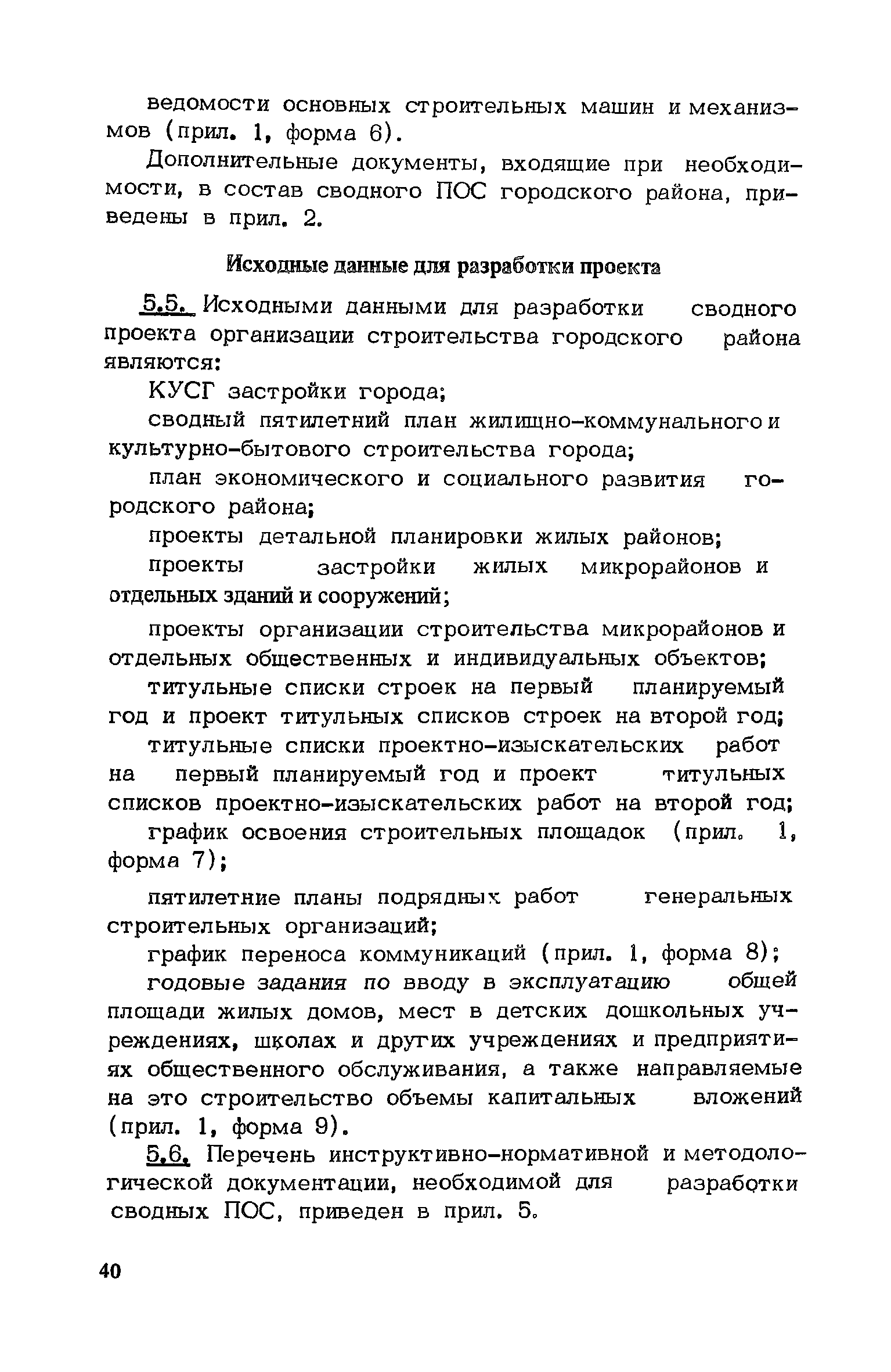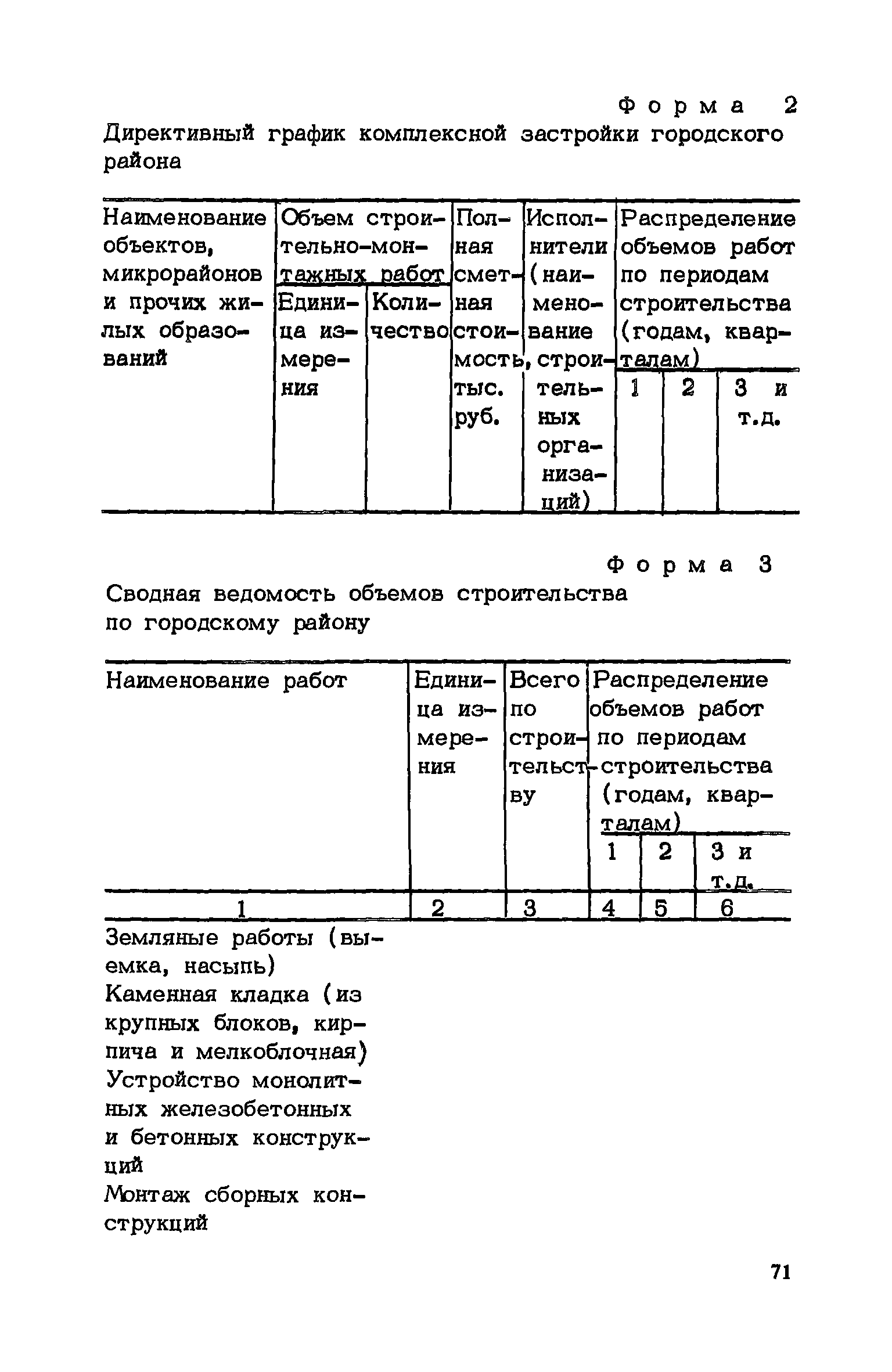 | Оглавление: | Предисловие 1. Общая часть 2. Проектирование организации поточной застройки города 3. Организация строительства городского района 4. Комплексный укрупненный сетевой график застройки города Назначение документа Состав и содержание документа Исходные данные и порядок разработки КУСГ 5. Сводный проект организации строительства городского района Назначение проекта Состав и содержание проекта Исходные данные для разработки проекта Порядок разработки проекта Рекомендации по разработке директивного графика комплексной поточной застройки городского района 6. Сводный проект производства работ комплексной застройки городского района Назначение проекта Состав и содержание проекта Исходные данные для разработки проекта Порядок разработки проекта Рекомендации по разработке двухлетнего календарного плана производства работ комплексной застройки городского района 7. Технико-экономическая оценка комплексного непрерывного планирования и поточного жилищно-гражданского строительства Приложение1. Формы проектно-технологической документации Приложение 2. Дополнительные материалы, разрабатываемые в сводном проекте организации строительства Приложение 3. Дополнительные материалы, разрабатываемые в сводном проекте производства работ Приложение 4. Методика определения оптимальной продолжительности поточной застройки микрорайона (Жилого района) Приложение 5. Перечень основных инструктивно-нормативных и методических материалов, необходимых при составлении проектно-технологической документации |