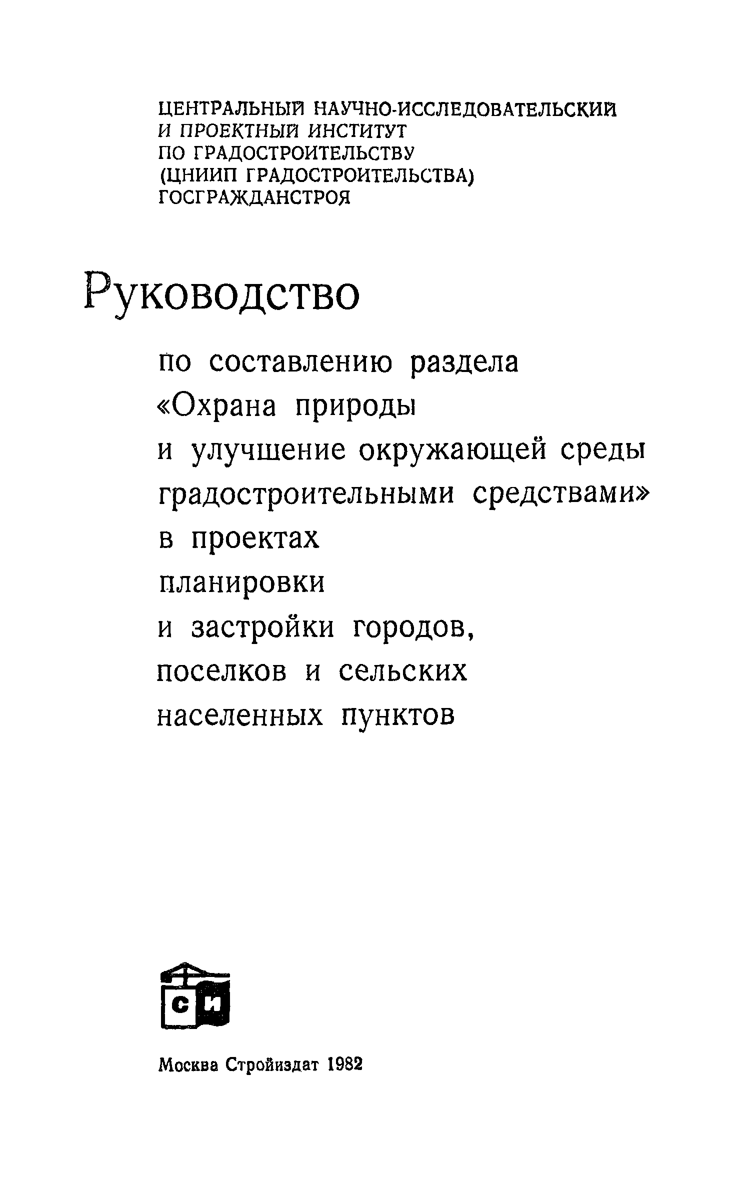 | Название рус.: | Руководство по составлению раздела "Охрана природы и улучшение окружающей среды градостроительными средствами" в проектах планировки и застройки городов. поселков и сельских населенных пунктов |