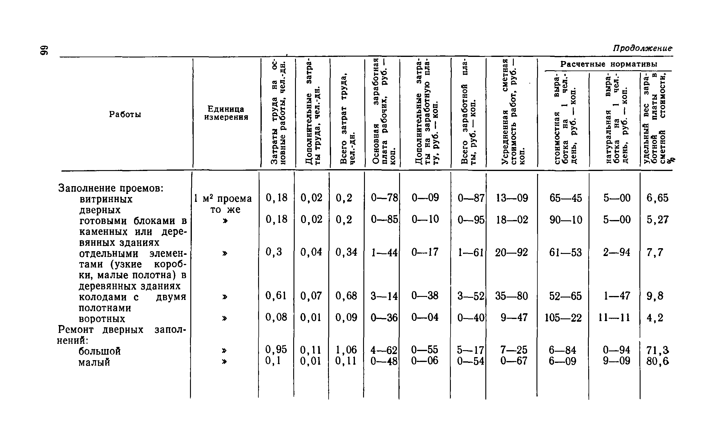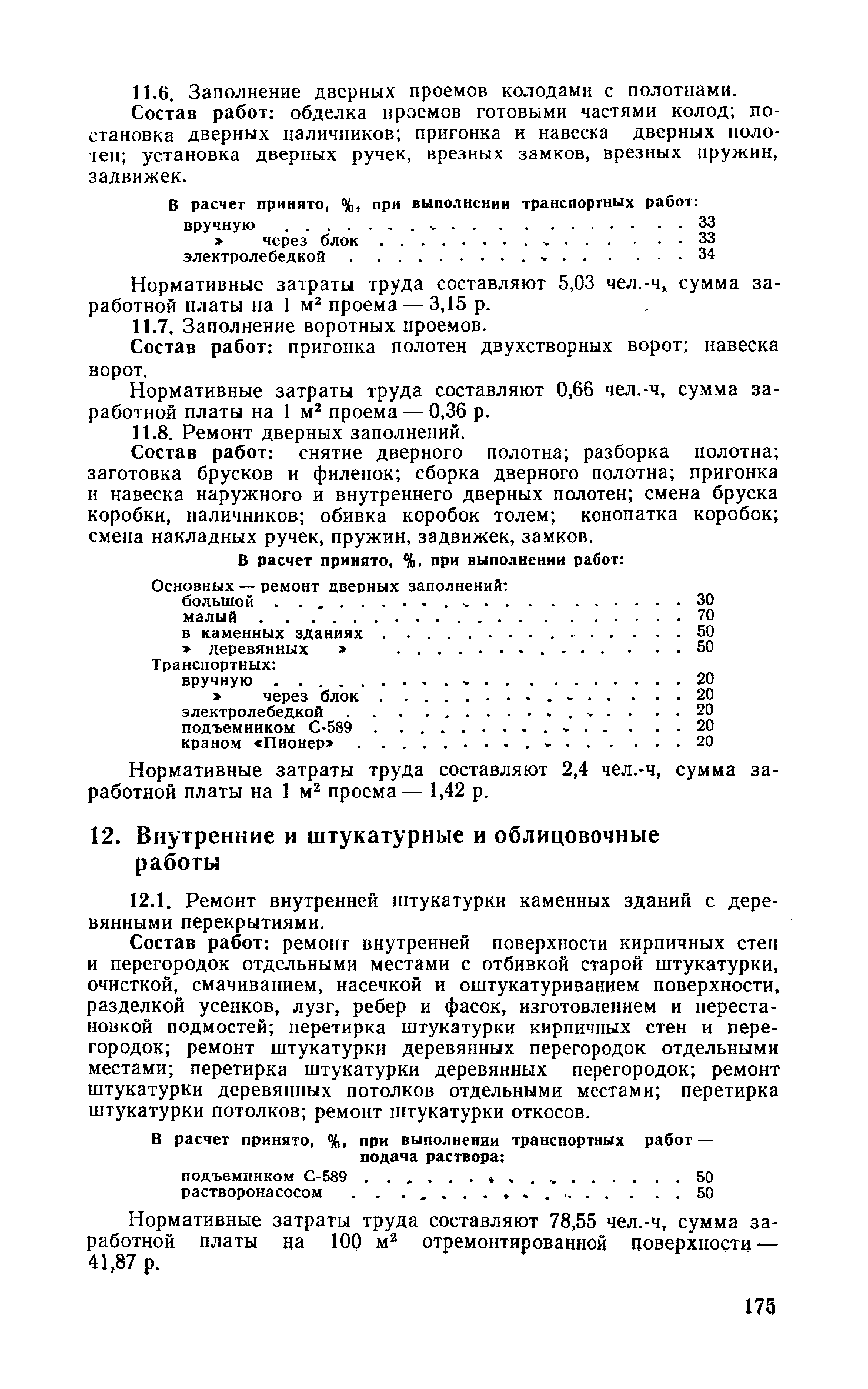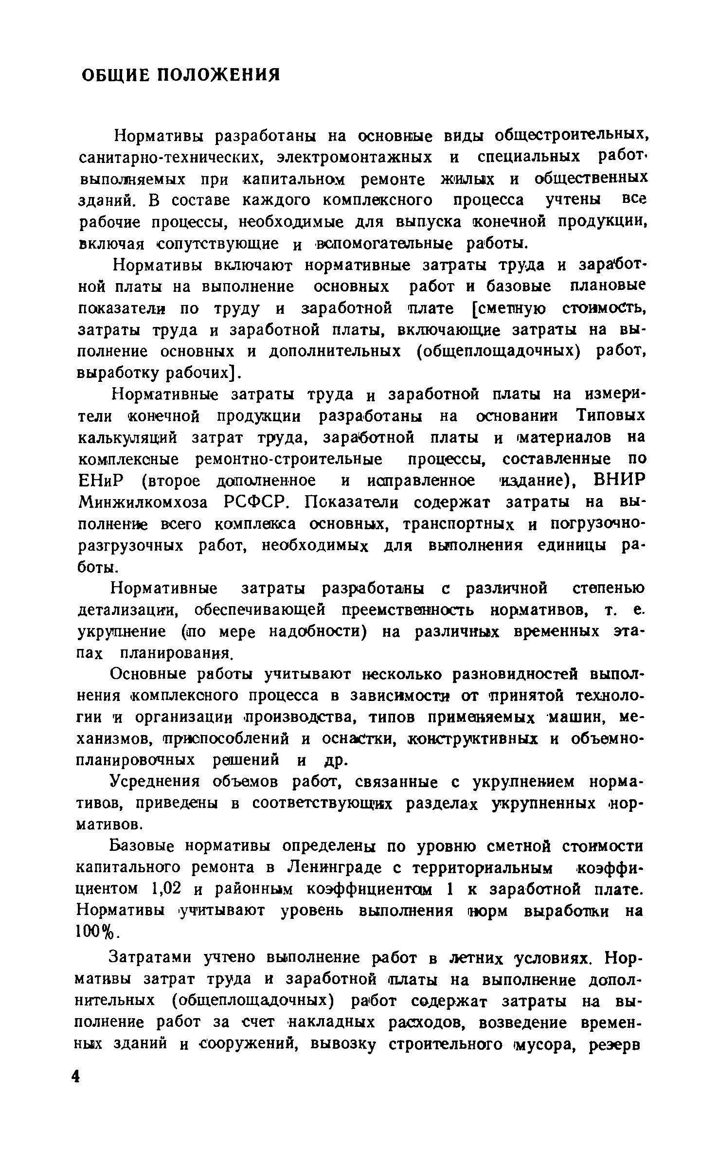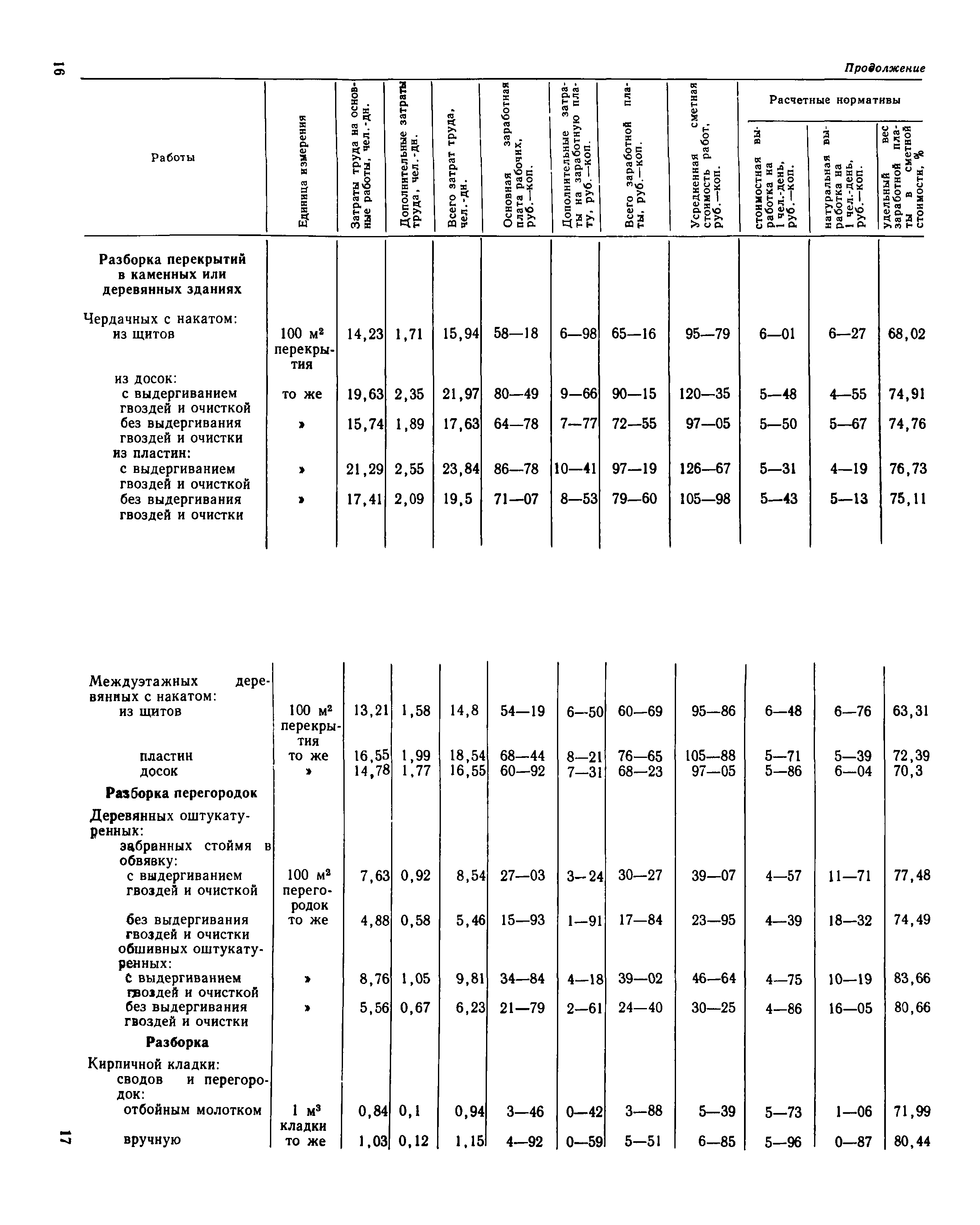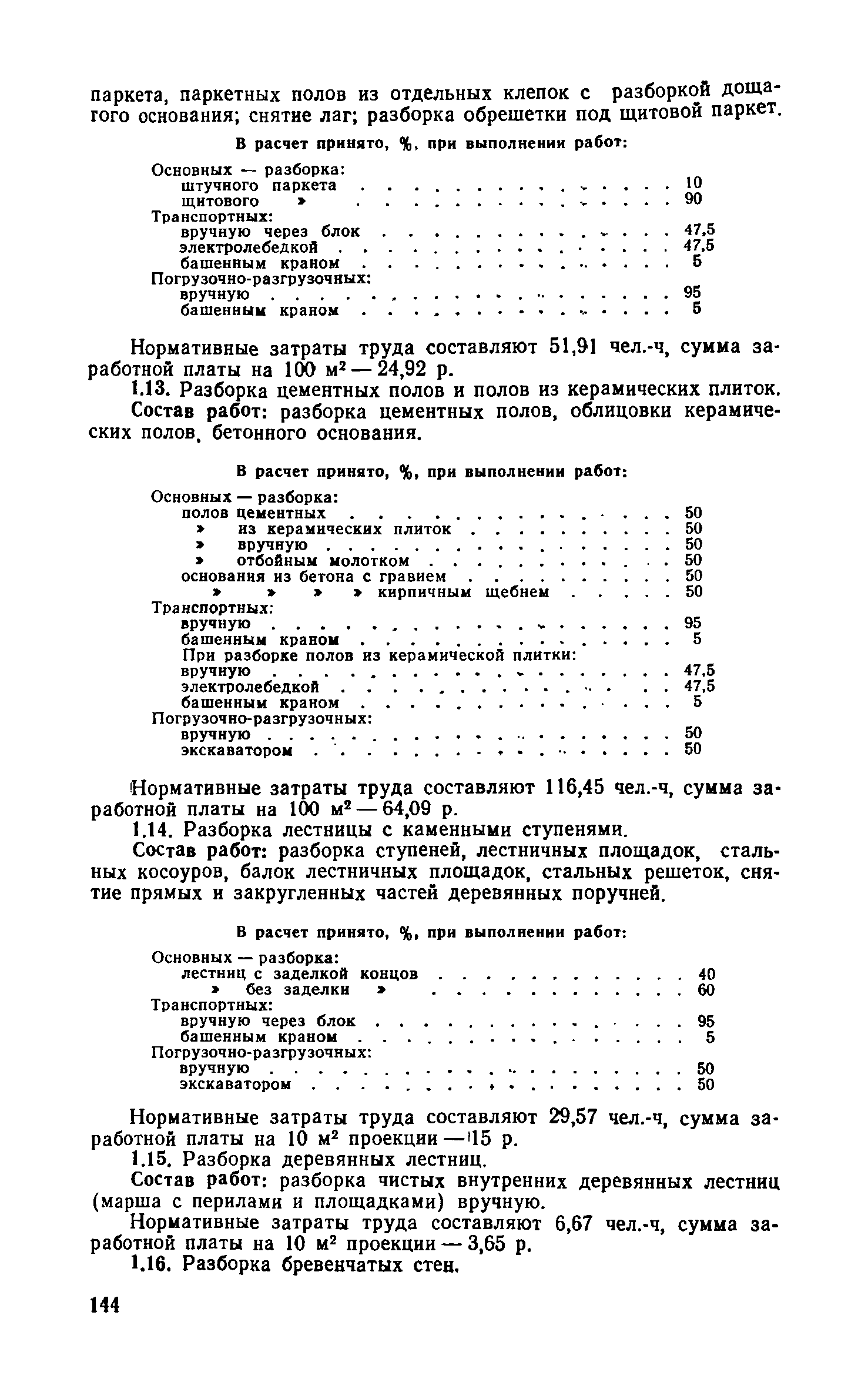 Нормативы для планирования труда, заработной платы и материально-технического обеспечения в ремонтно-строительных организациях| Статус: | справочные материалы, мп, тпр | | Название рус.: | Нормативы для планирования труда, заработной платы и материально-технического обеспечения в ремонтно-строительных организациях | | Дата добавления в базу: | 01.09.2013 | | Дата актуализации: | 01.01.2021 | | Область применения: | В документе приведены нормативы на основные виды общестроительных, электромонтажных и специальных работ, выполняемых при капитальном ремонте жилых и общественных зданий, нормативные затраты труда и заработной платы на измерители конечной продукции, затраты на выполнение всего комплекса основных, транспортных и погрузочно-разгрузочных работ, необходимых для выполнения единицы работы. Для инженерно-технических работников ремонтно-строительных и проектно-сметных организаций. | | Оглавление: | Предисловие Общие положения Базовые стоимостные нормативы затрат труда и заработной платы 1. Разборка строительных конструкций 2. Демонтаж инженерного оборудования 3. Фундаменты 4. Стены 5. Перекрытия 6. Перегородки 7. Лестницы н крыльца 8. Крыши 9. Печи и трубы 10. Полы 11. Оконные и дверные проемы 12. Внутренние штукатурные и облицовочные работы 13. Малярные и стекольные работы 14. Ремонт фасадов 15. Разные работы 16. Внутренние санитарно-технические работы 17. Внутренние электромонтажные и слаботочные работы 18. Наружные сети (с земляными работами) 19. Благоустройство 20. Оборудование отопительных котельных Укрупненные нормативные затраты труда и заработной платы на комплексные ремонтно-строительные процессы с подразделением на основные, транспортные и погрузочно-разгрузочные работы Общая часть 1. Разборка строительных конструкций 2. Демонтаж инженерного оборудования 3. Фундаменты 4. Стены 5. Перекрытия 6. Перегородки 7. Лестницы и крыльца 8. Крыши 9. Печи и трубы 10. Полы 11. Оконные и дверные проемы 12. Внутренние штукатурные и облицовочные работы 13. Малярные и стекольные работы 14. Ремонт фасадов 15. Разные работы 16. Внутренние санитарно-технические работы 17. Внутренние электромонтажные и слаботочные работы 18. Наружные сети (с земляными работами) 19. Благоустройство 20. Оборудование отопительных котельных Укрупненные нормативные затраты труда и заработной платы на комплексные ремонтно-строительные процессы Общая часть 1. Разборка строительных конструкций 2. Демонтаж инженерного оборудования 3. Фундаменты 4. Стены 5. Перекрытия 6. Перегородки 7. Лестницы и крыльца 8. Крыши 9. Печи и трубы 10. Полы 11. Оконные и дверные проемы 12. Внутренние штукатурные и облицовочные работы 13. Малярные и стекольные работы 14. Ремонт фасадов 15. Разные работы 16. Внутренние санитарно-технические работы 17. Внутренние электромонтажные и слаботочные работы 18. Наружные сети (с земляными работами) 19. Благоустройство 20. Оборудование отопительных котельных | | Разработан: | Ленинградский НИИ АКХ им. К.Д. Памфилова ЦНИС МЖКХ РСФСР Трест Оргремжилстрой