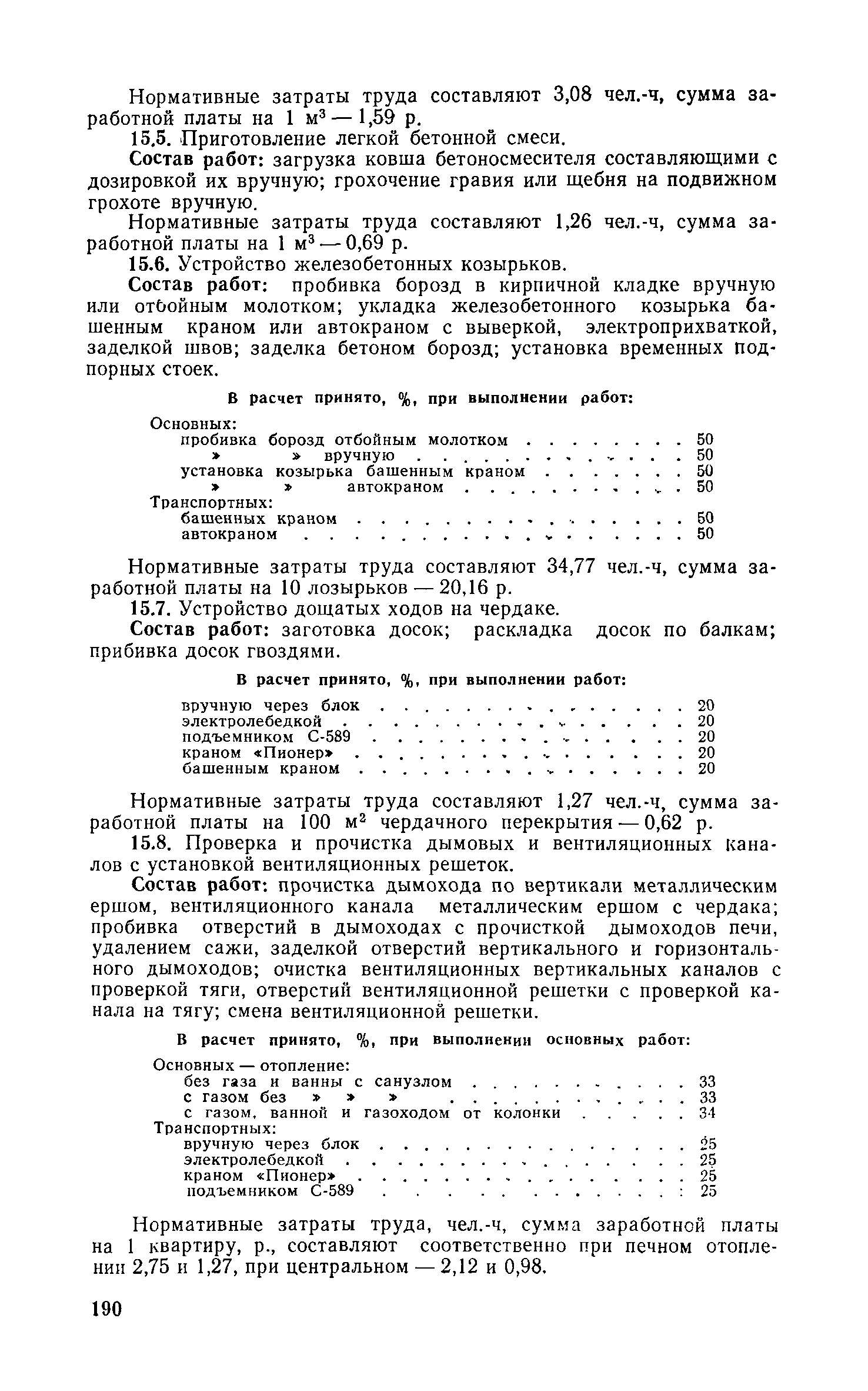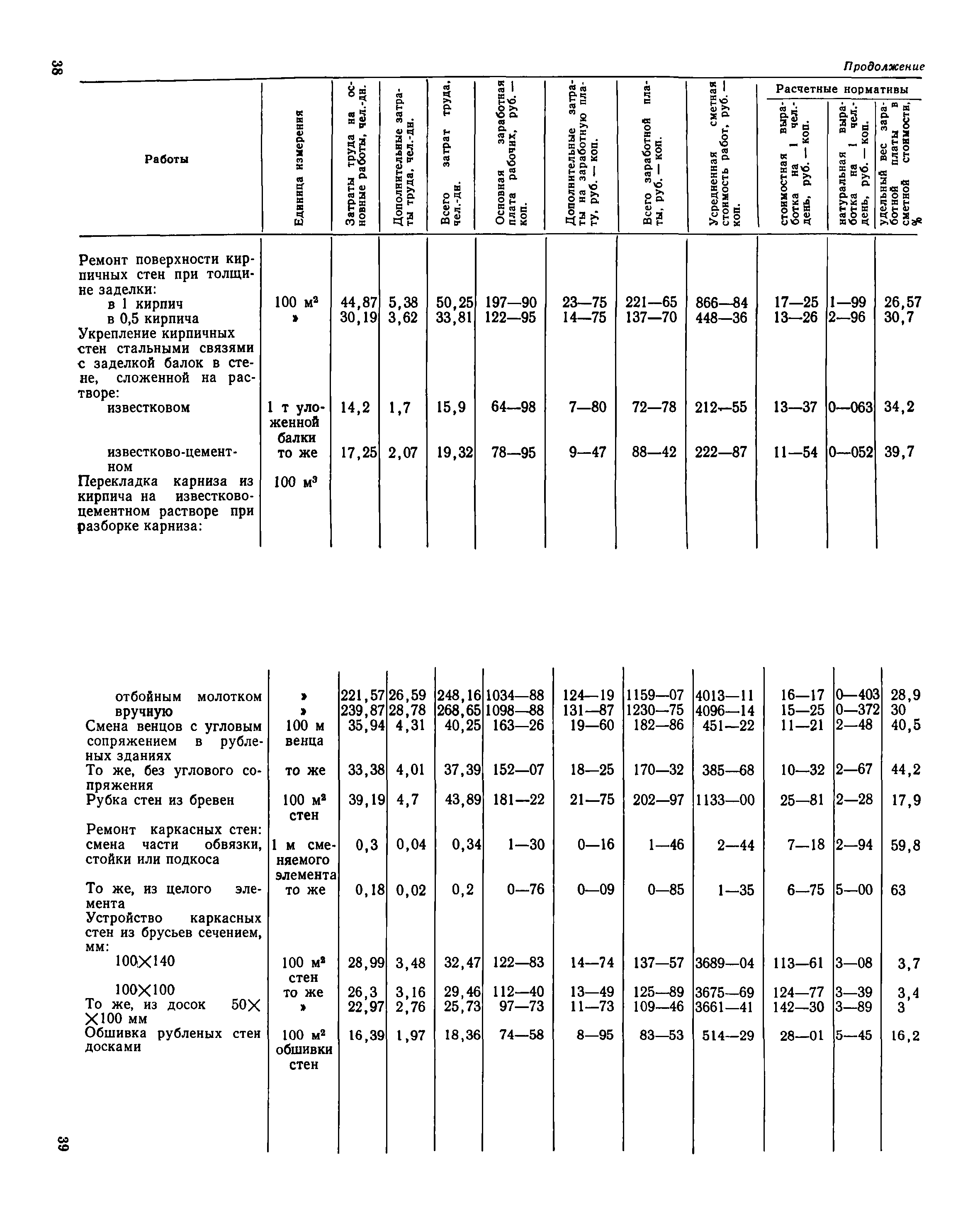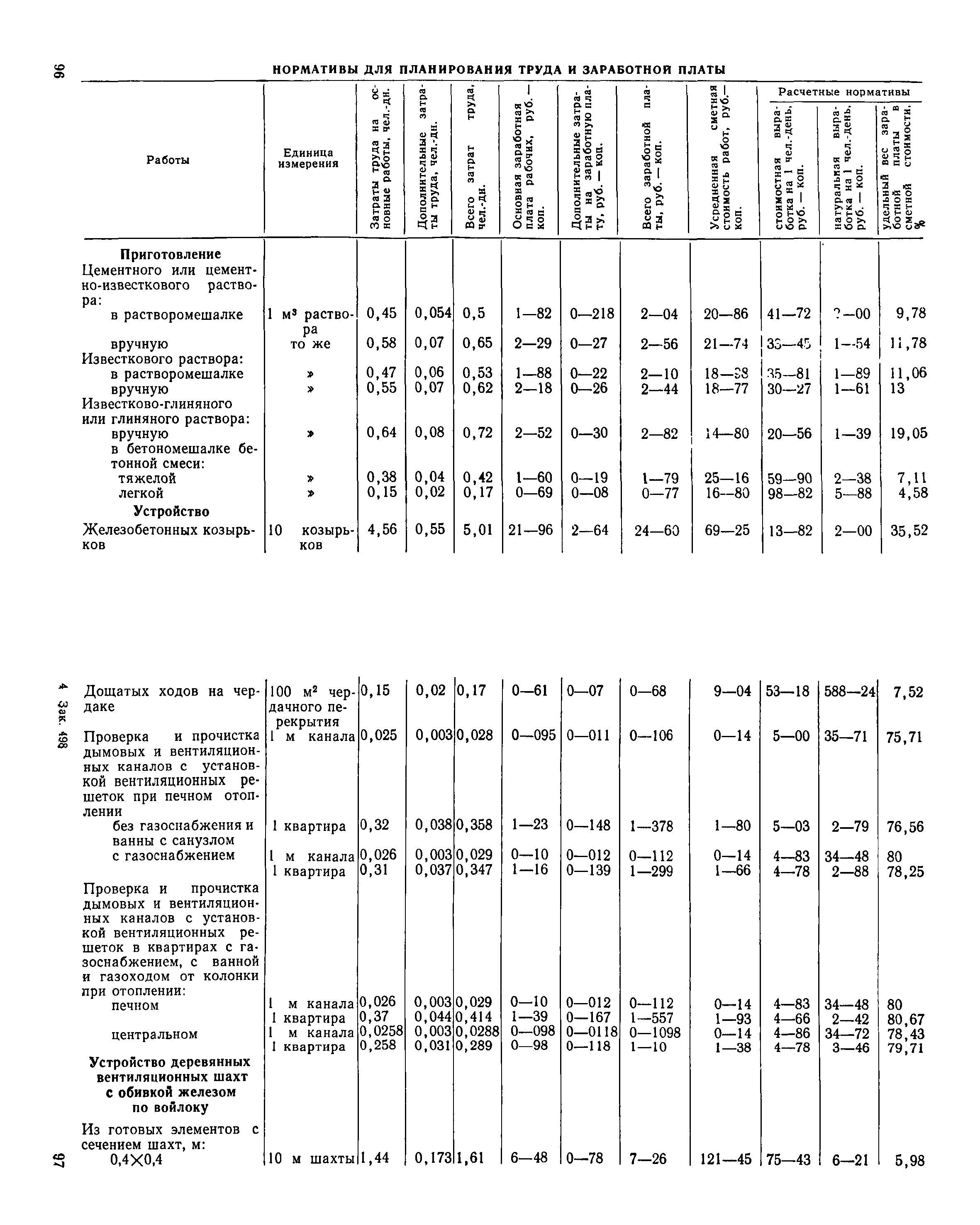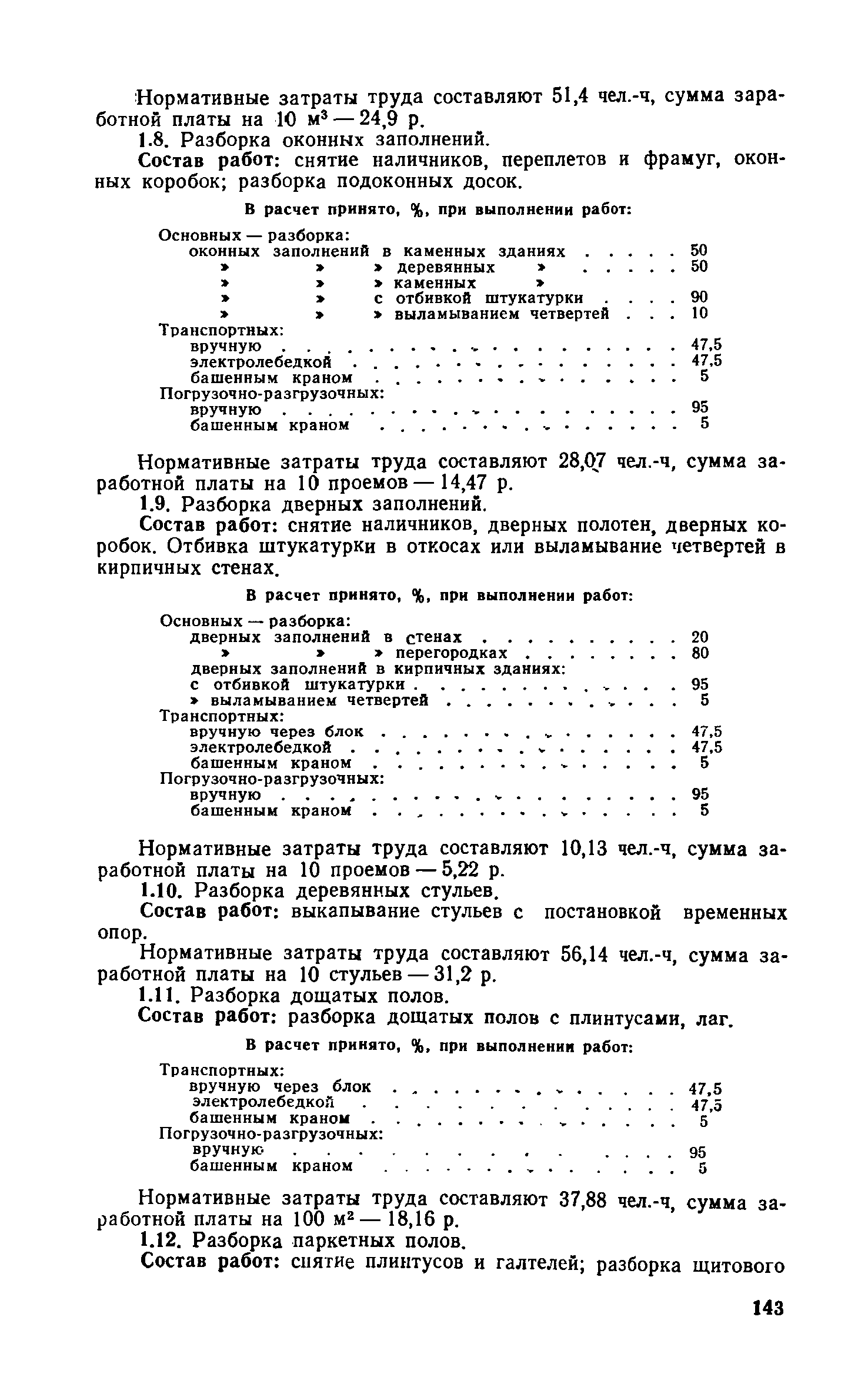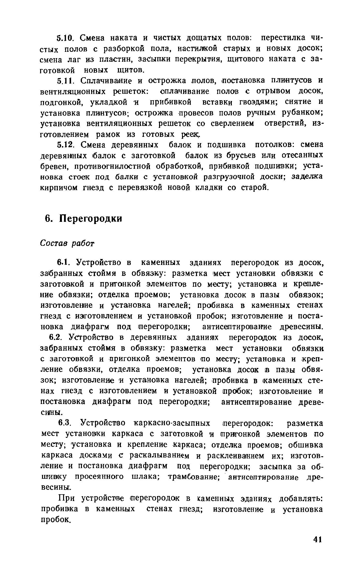 Нормативы для планирования труда, заработной платы и материально-технического обеспечения в ремонтно-строительных организациях| Статус: | справочные материалы, мп, тпр | | Название рус.: | Нормативы для планирования труда, заработной платы и материально-технического обеспечения в ремонтно-строительных организациях | | Дата добавления в базу: | 01.09.2013 | | Дата актуализации: | 01.01.2021 | | Область применения: | В документе приведены нормативы на основные виды общестроительных, электромонтажных и специальных работ, выполняемых при капитальном ремонте жилых и общественных зданий, нормативные затраты труда и заработной платы на измерители конечной продукции, затраты на выполнение всего комплекса основных, транспортных и погрузочно-разгрузочных работ, необходимых для выполнения единицы работы. Для инженерно-технических работников ремонтно-строительных и проектно-сметных организаций. | | Оглавление: | Предисловие Общие положения Базовые стоимостные нормативы затрат труда и заработной платы 1. Разборка строительных конструкций 2. Демонтаж инженерного оборудования 3. Фундаменты 4. Стены 5. Перекрытия 6. Перегородки 7. Лестницы н крыльца 8. Крыши 9. Печи и трубы 10. Полы 11. Оконные и дверные проемы 12. Внутренние штукатурные и облицовочные работы 13. Малярные и стекольные работы 14. Ремонт фасадов 15. Разные работы 16. Внутренние санитарно-технические работы 17. Внутренние электромонтажные и слаботочные работы 18. Наружные сети (с земляными работами) 19. Благоустройство 20. Оборудование отопительных котельных Укрупненные нормативные затраты труда и заработной платы на комплексные ремонтно-строительные процессы с подразделением на основные, транспортные и погрузочно-разгрузочные работы Общая часть 1. Разборка строительных конструкций 2. Демонтаж инженерного оборудования 3. Фундаменты 4. Стены 5. Перекрытия 6. Перегородки 7. Лестницы и крыльца 8. Крыши 9. Печи и трубы 10. Полы 11. Оконные и дверные проемы 12. Внутренние штукатурные и облицовочные работы 13. Малярные и стекольные работы 14. Ремонт фасадов 15. Разные работы 16. Внутренние санитарно-технические работы 17. Внутренние электромонтажные и слаботочные работы 18. Наружные сети (с земляными работами) 19. Благоустройство 20. Оборудование отопительных котельных Укрупненные нормативные затраты труда и заработной платы на комплексные ремонтно-строительные процессы Общая часть 1. Разборка строительных конструкций 2. Демонтаж инженерного оборудования 3. Фундаменты 4. Стены 5. Перекрытия 6. Перегородки 7. Лестницы и крыльца 8. Крыши 9. Печи и трубы 10. Полы 11. Оконные и дверные проемы 12. Внутренние штукатурные и облицовочные работы 13. Малярные и стекольные работы 14. Ремонт фасадов 15. Разные работы 16. Внутренние санитарно-технические работы 17. Внутренние электромонтажные и слаботочные работы 18. Наружные сети (с земляными работами) 19. Благоустройство 20. Оборудование отопительных котельных | | Разработан: | Ленинградский НИИ АКХ им. К.Д. Памфилова ЦНИС МЖКХ РСФСР Трест Оргремжилстрой