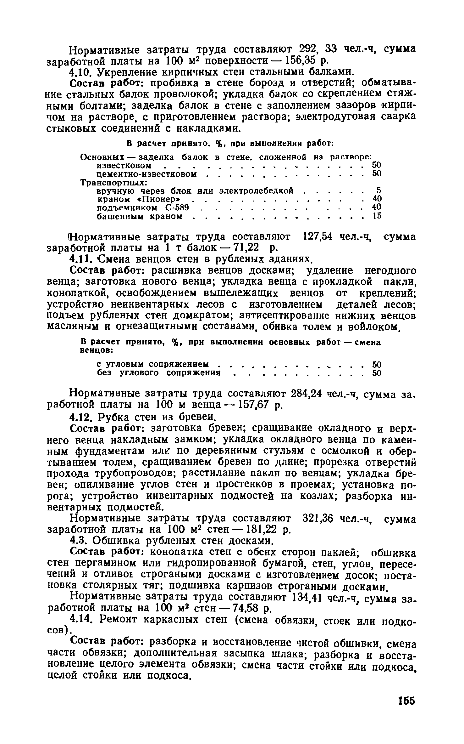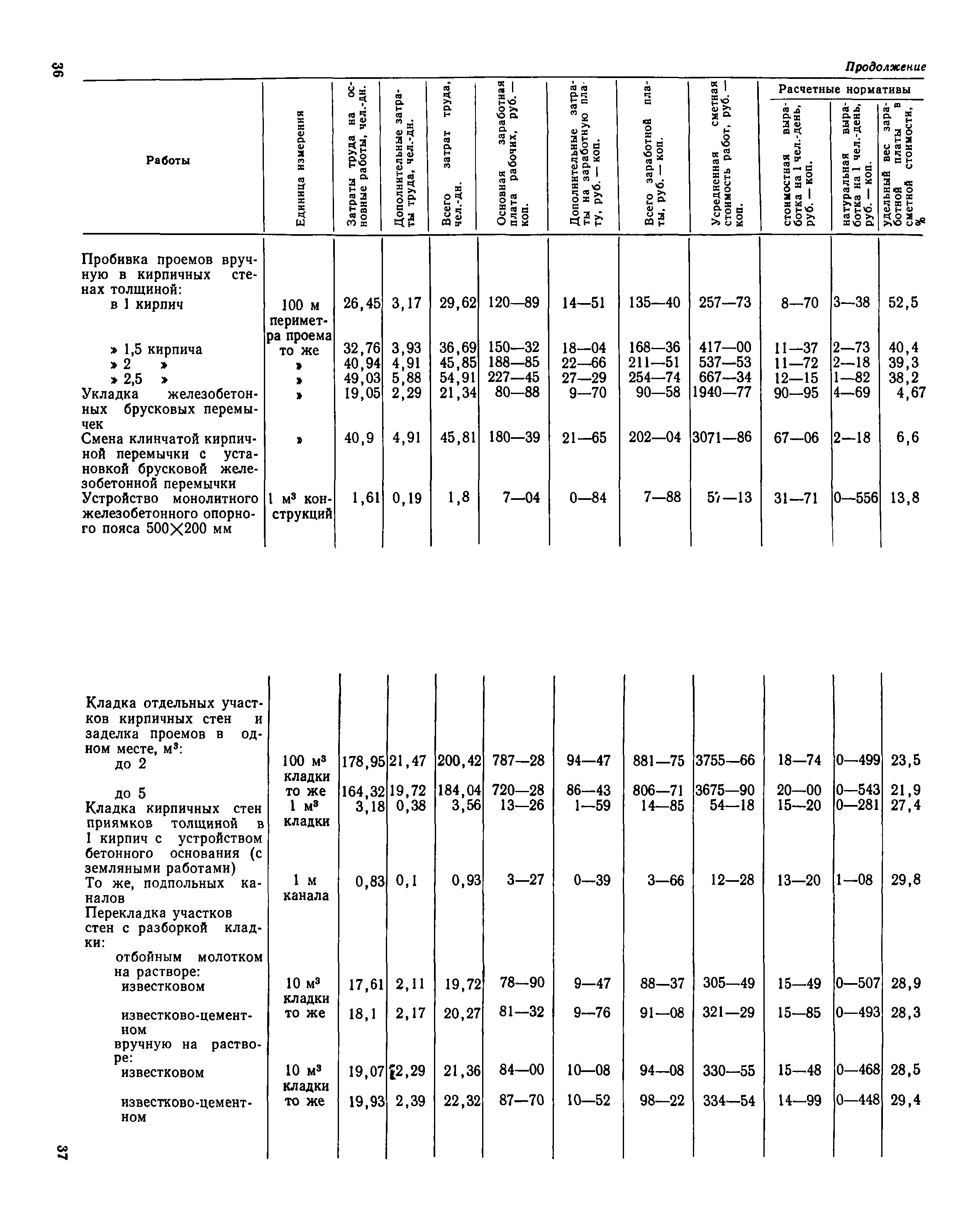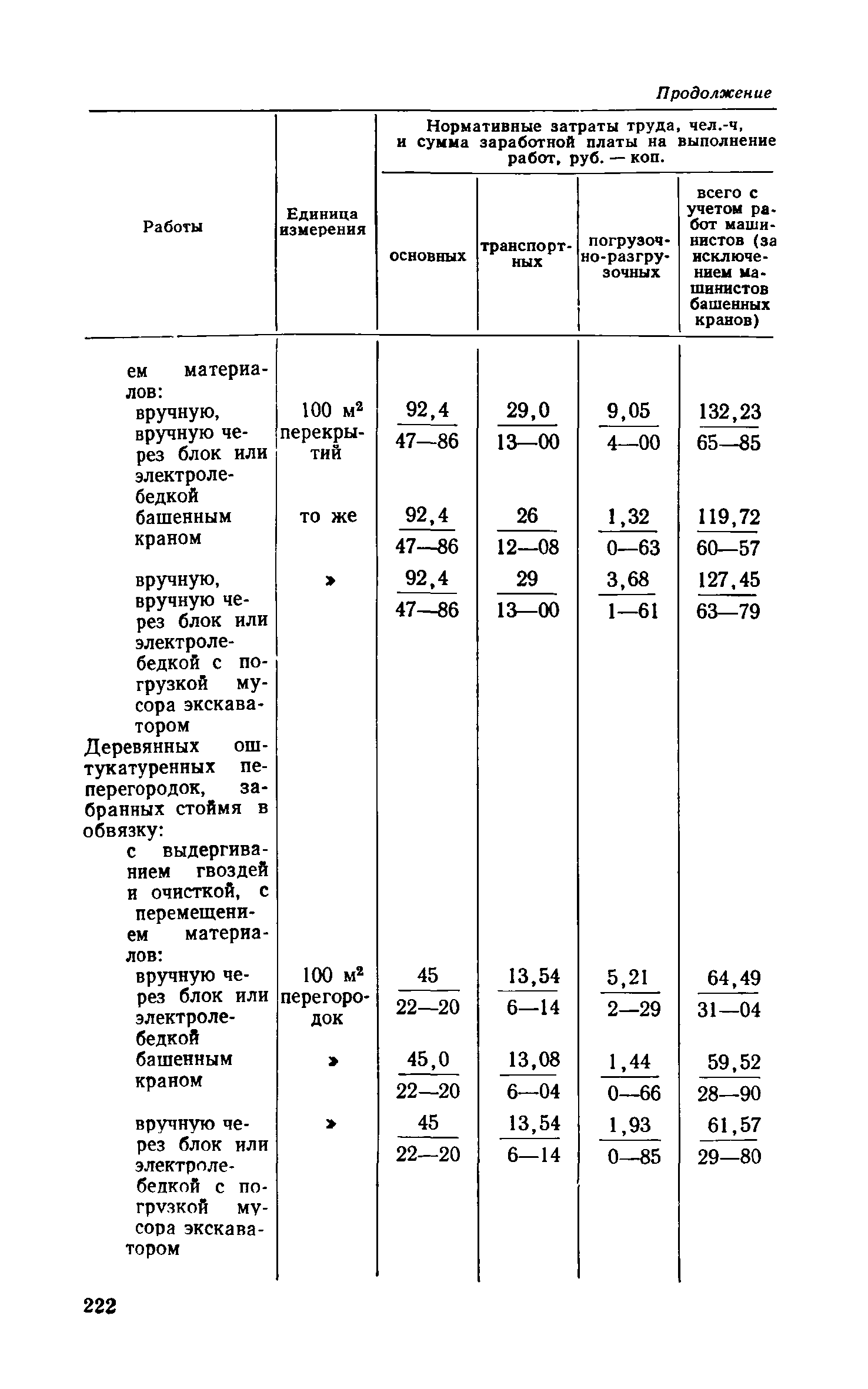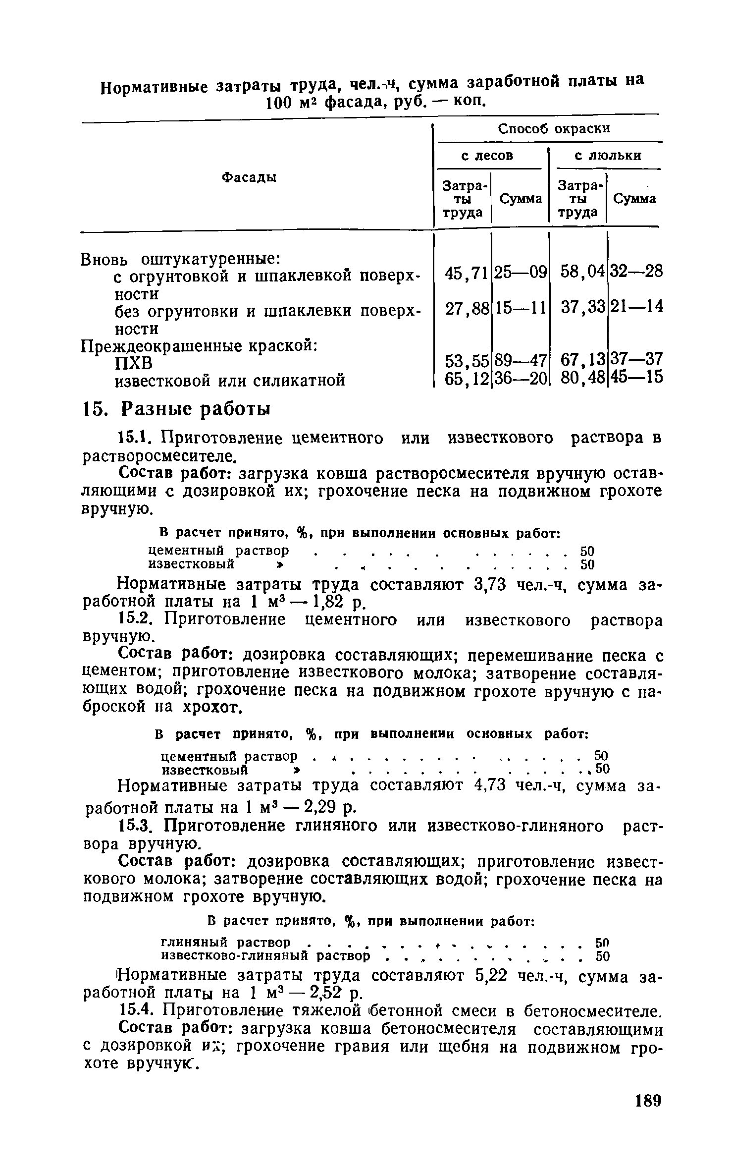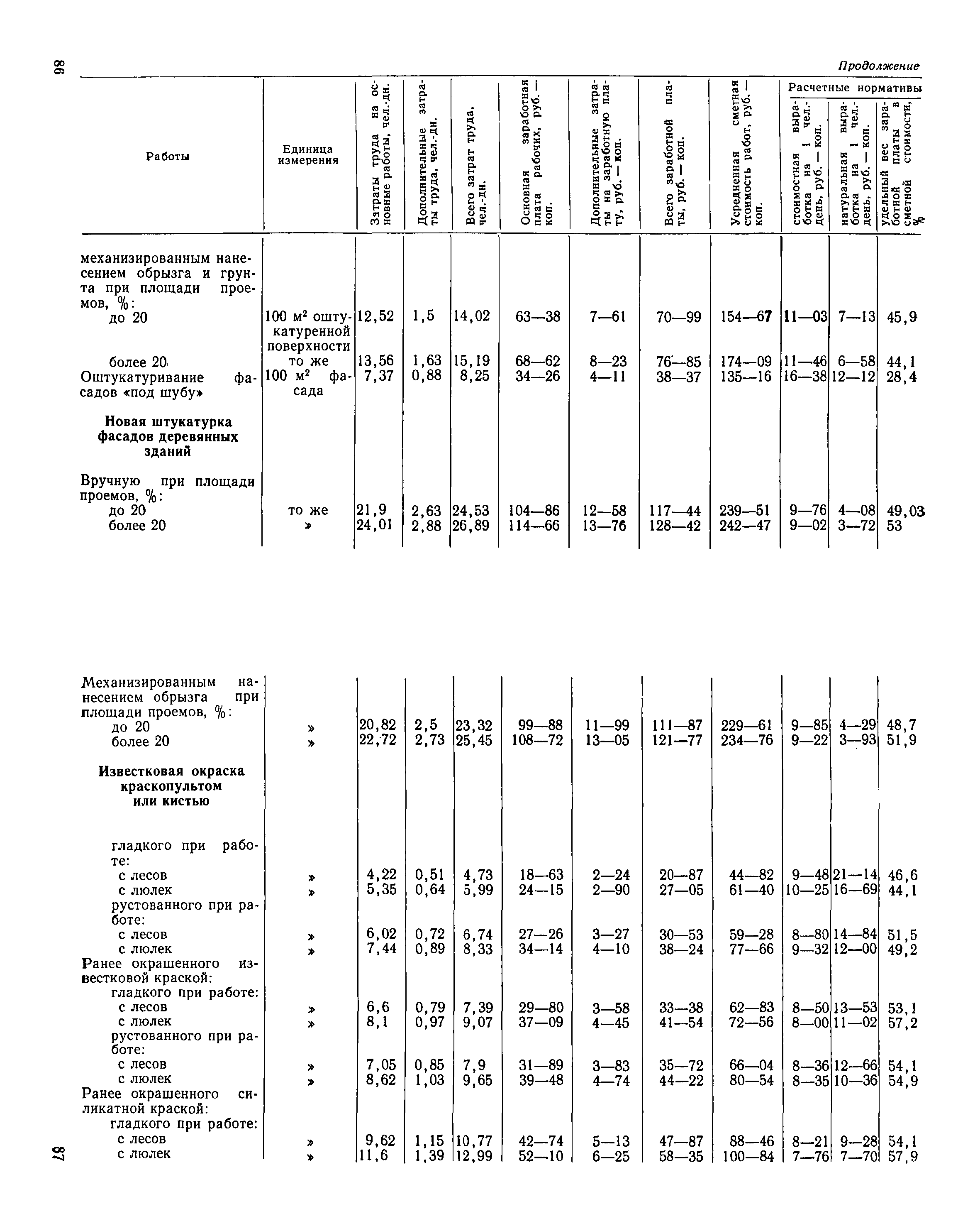 Нормативы для планирования труда, заработной платы и материально-технического обеспечения в ремонтно-строительных организациях| Статус: | справочные материалы, мп, тпр | | Название рус.: | Нормативы для планирования труда, заработной платы и материально-технического обеспечения в ремонтно-строительных организациях | | Дата добавления в базу: | 01.09.2013 | | Дата актуализации: | 01.01.2021 | | Область применения: | В документе приведены нормативы на основные виды общестроительных, электромонтажных и специальных работ, выполняемых при капитальном ремонте жилых и общественных зданий, нормативные затраты труда и заработной платы на измерители конечной продукции, затраты на выполнение всего комплекса основных, транспортных и погрузочно-разгрузочных работ, необходимых для выполнения единицы работы. Для инженерно-технических работников ремонтно-строительных и проектно-сметных организаций. | | Оглавление: | Предисловие Общие положения Базовые стоимостные нормативы затрат труда и заработной платы 1. Разборка строительных конструкций 2. Демонтаж инженерного оборудования 3. Фундаменты 4. Стены 5. Перекрытия 6. Перегородки 7. Лестницы н крыльца 8. Крыши 9. Печи и трубы 10. Полы 11. Оконные и дверные проемы 12. Внутренние штукатурные и облицовочные работы 13. Малярные и стекольные работы 14. Ремонт фасадов 15. Разные работы 16. Внутренние санитарно-технические работы 17. Внутренние электромонтажные и слаботочные работы 18. Наружные сети (с земляными работами) 19. Благоустройство 20. Оборудование отопительных котельных Укрупненные нормативные затраты труда и заработной платы на комплексные ремонтно-строительные процессы с подразделением на основные, транспортные и погрузочно-разгрузочные работы Общая часть 1. Разборка строительных конструкций 2. Демонтаж инженерного оборудования 3. Фундаменты 4. Стены 5. Перекрытия 6. Перегородки 7. Лестницы и крыльца 8. Крыши 9. Печи и трубы 10. Полы 11. Оконные и дверные проемы 12. Внутренние штукатурные и облицовочные работы 13. Малярные и стекольные работы 14. Ремонт фасадов 15. Разные работы 16. Внутренние санитарно-технические работы 17. Внутренние электромонтажные и слаботочные работы 18. Наружные сети (с земляными работами) 19. Благоустройство 20. Оборудование отопительных котельных Укрупненные нормативные затраты труда и заработной платы на комплексные ремонтно-строительные процессы Общая часть 1. Разборка строительных конструкций 2. Демонтаж инженерного оборудования 3. Фундаменты 4. Стены 5. Перекрытия 6. Перегородки 7. Лестницы и крыльца 8. Крыши 9. Печи и трубы 10. Полы 11. Оконные и дверные проемы 12. Внутренние штукатурные и облицовочные работы 13. Малярные и стекольные работы 14. Ремонт фасадов 15. Разные работы 16. Внутренние санитарно-технические работы 17. Внутренние электромонтажные и слаботочные работы 18. Наружные сети (с земляными работами) 19. Благоустройство 20. Оборудование отопительных котельных | | Разработан: | Ленинградский НИИ АКХ им. К.Д. Памфилова ЦНИС МЖКХ РСФСР Трест Оргремжилстрой