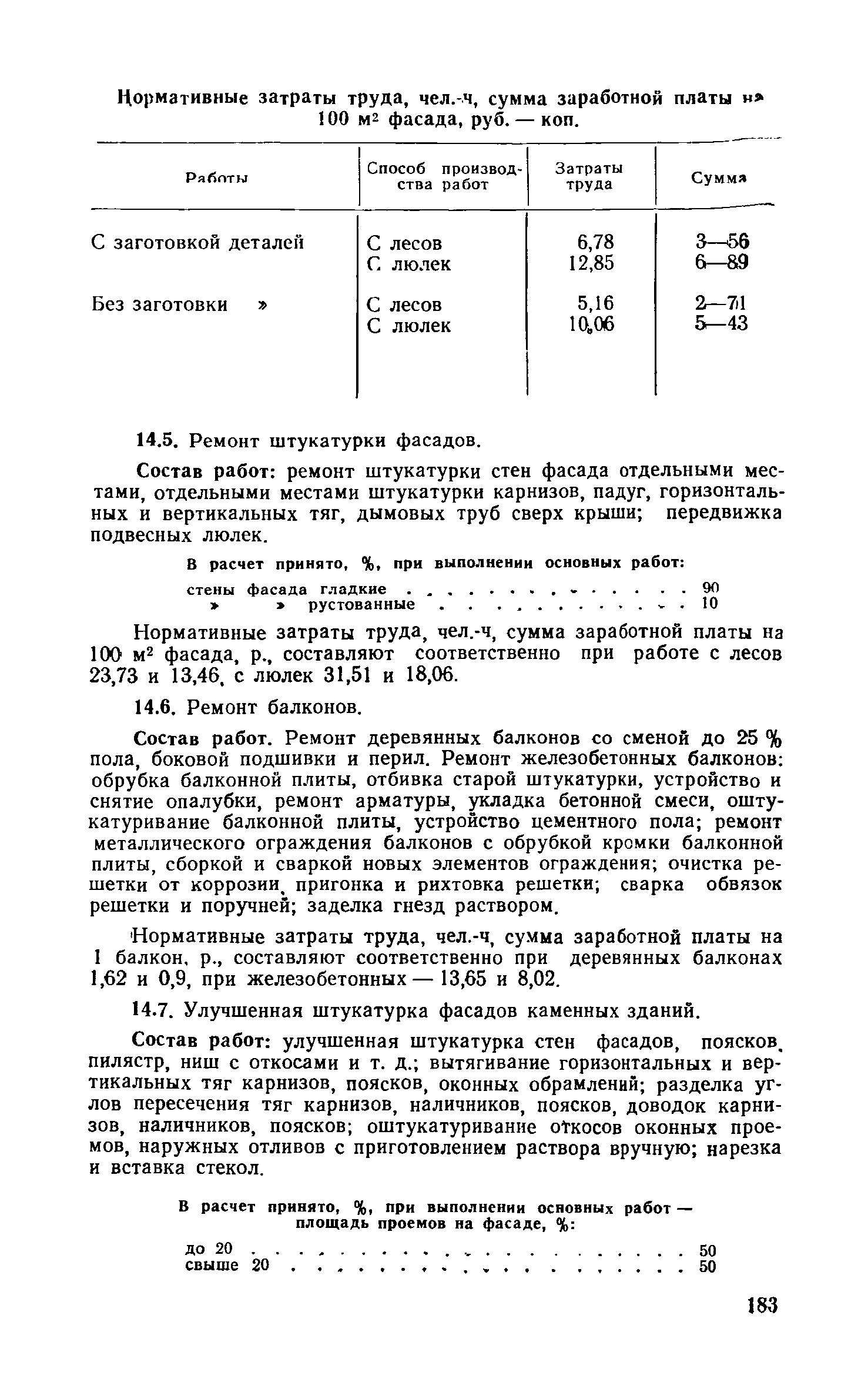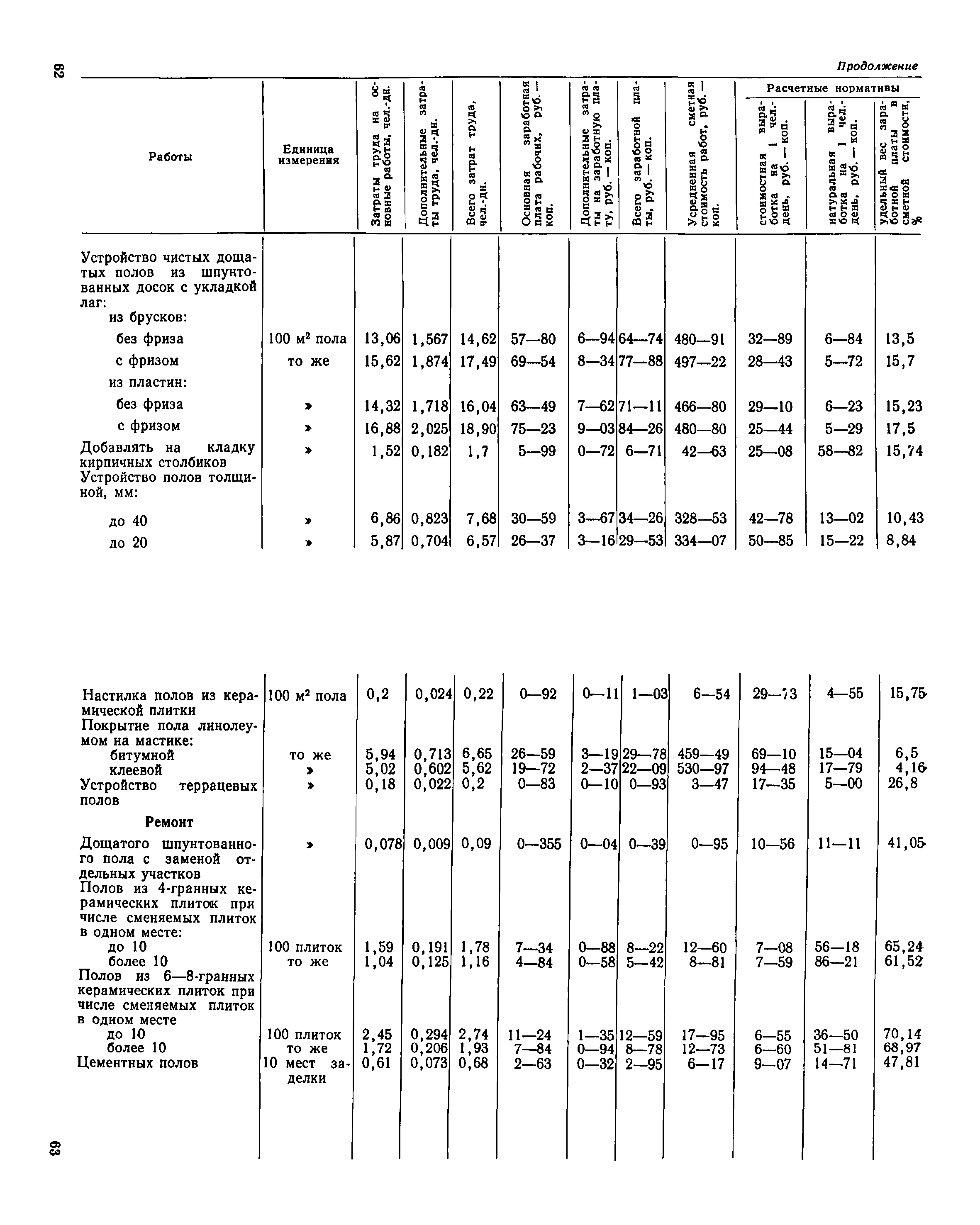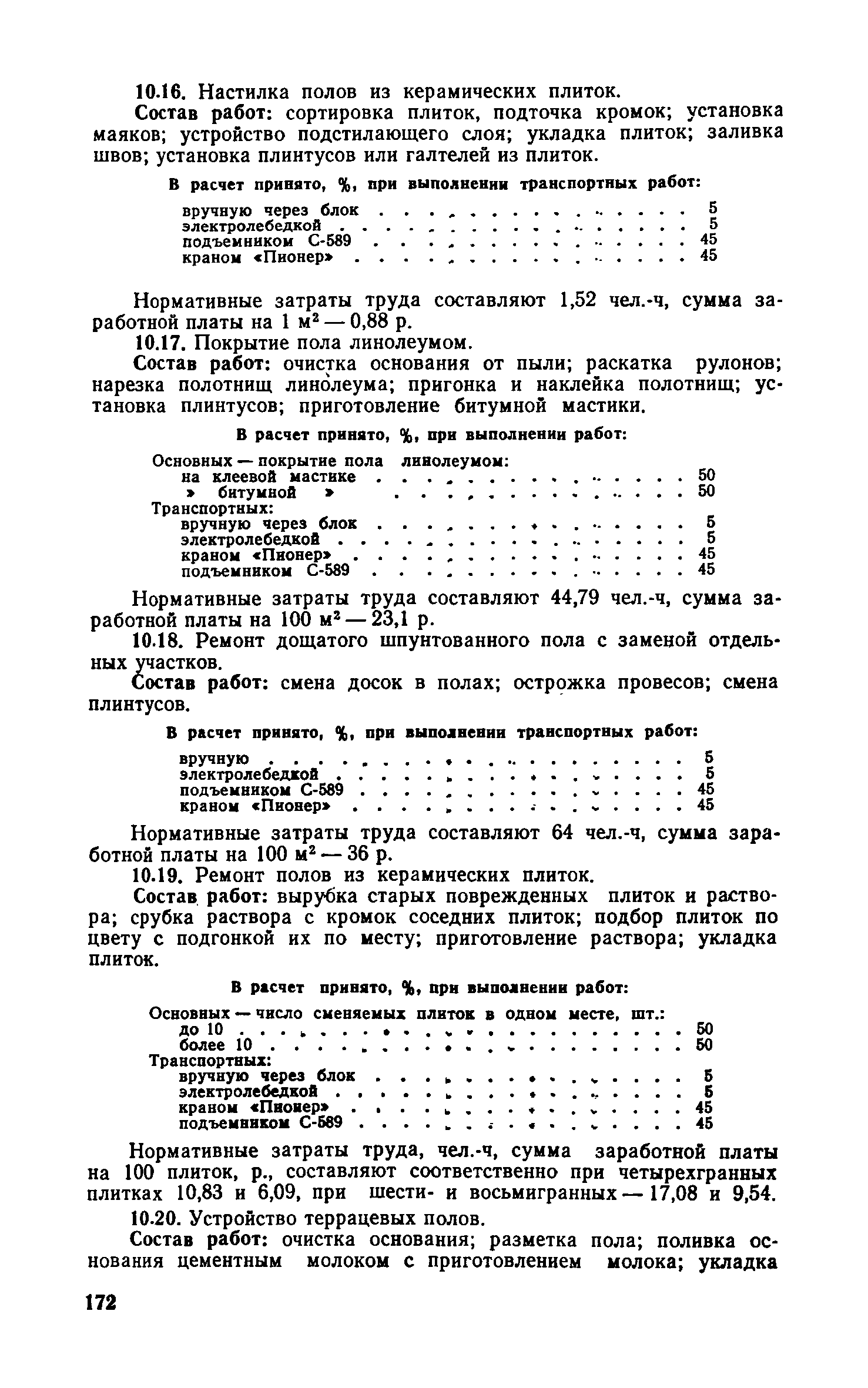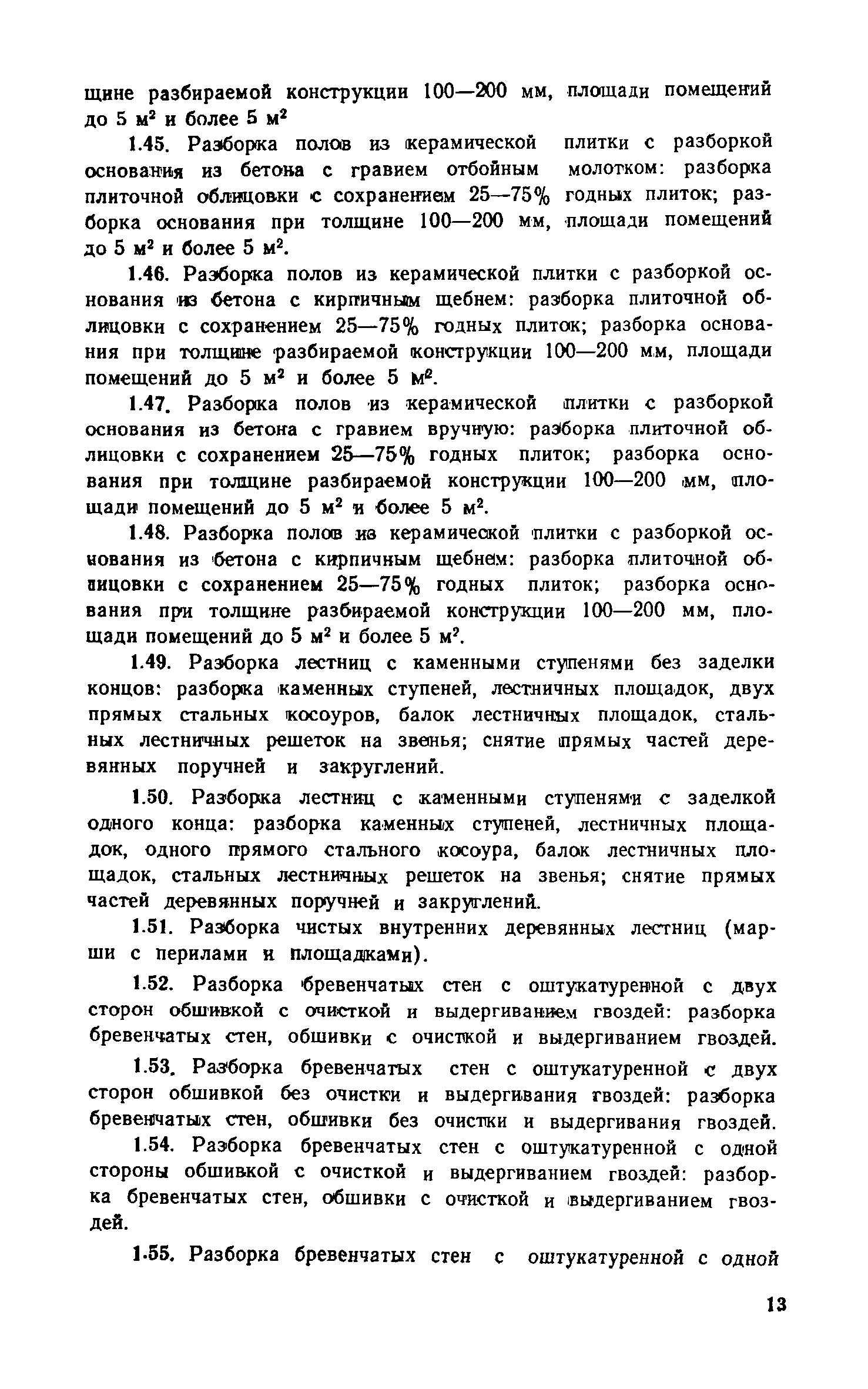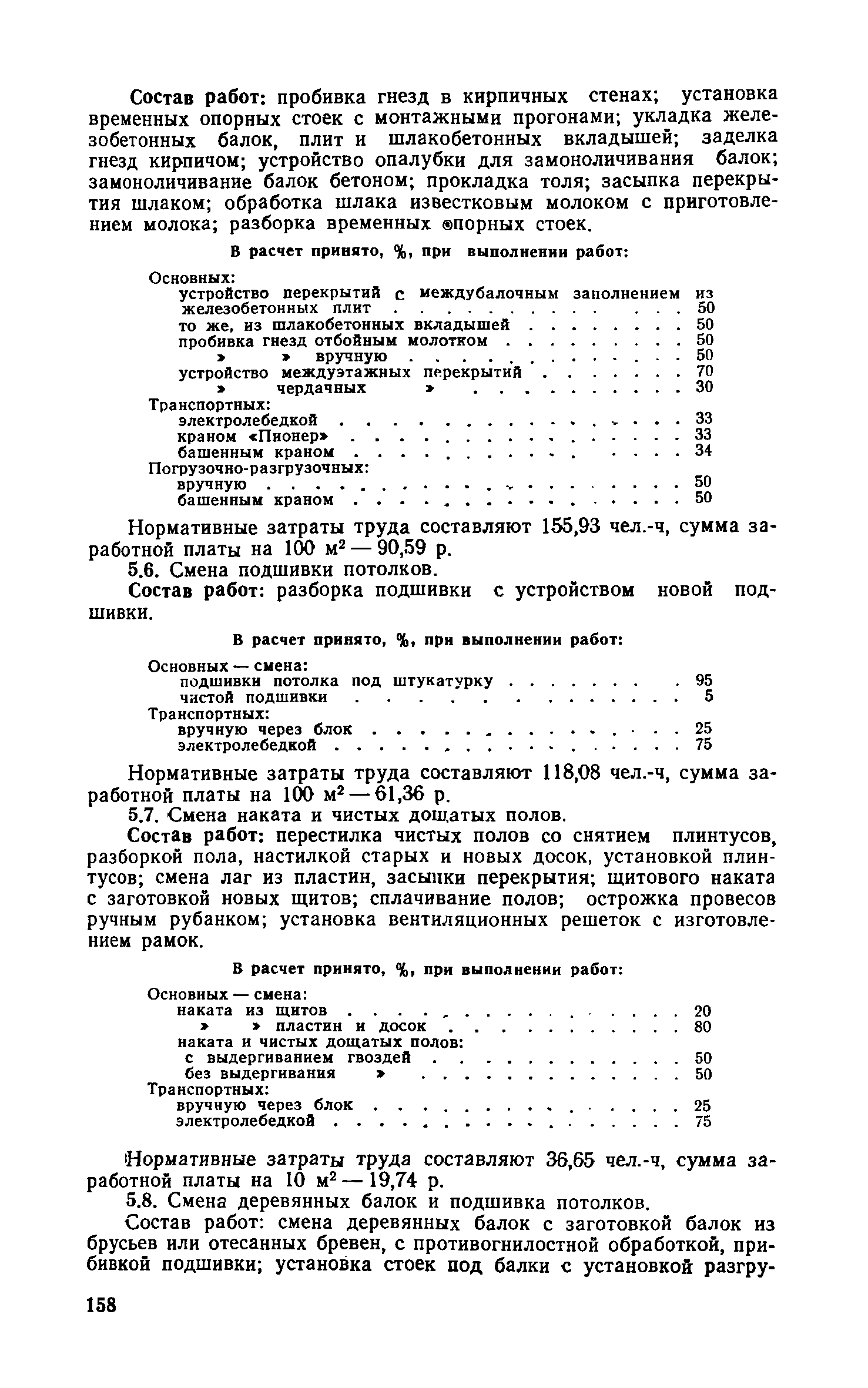 Нормативы для планирования труда, заработной платы и материально-технического обеспечения в ремонтно-строительных организациях| Статус: | справочные материалы, мп, тпр | | Название рус.: | Нормативы для планирования труда, заработной платы и материально-технического обеспечения в ремонтно-строительных организациях | | Дата добавления в базу: | 01.09.2013 | | Дата актуализации: | 01.01.2021 | | Область применения: | В документе приведены нормативы на основные виды общестроительных, электромонтажных и специальных работ, выполняемых при капитальном ремонте жилых и общественных зданий, нормативные затраты труда и заработной платы на измерители конечной продукции, затраты на выполнение всего комплекса основных, транспортных и погрузочно-разгрузочных работ, необходимых для выполнения единицы работы. Для инженерно-технических работников ремонтно-строительных и проектно-сметных организаций. | | Оглавление: | Предисловие Общие положения Базовые стоимостные нормативы затрат труда и заработной платы 1. Разборка строительных конструкций 2. Демонтаж инженерного оборудования 3. Фундаменты 4. Стены 5. Перекрытия 6. Перегородки 7. Лестницы н крыльца 8. Крыши 9. Печи и трубы 10. Полы 11. Оконные и дверные проемы 12. Внутренние штукатурные и облицовочные работы 13. Малярные и стекольные работы 14. Ремонт фасадов 15. Разные работы 16. Внутренние санитарно-технические работы 17. Внутренние электромонтажные и слаботочные работы 18. Наружные сети (с земляными работами) 19. Благоустройство 20. Оборудование отопительных котельных Укрупненные нормативные затраты труда и заработной платы на комплексные ремонтно-строительные процессы с подразделением на основные, транспортные и погрузочно-разгрузочные работы Общая часть 1. Разборка строительных конструкций 2. Демонтаж инженерного оборудования 3. Фундаменты 4. Стены 5. Перекрытия 6. Перегородки 7. Лестницы и крыльца 8. Крыши 9. Печи и трубы 10. Полы 11. Оконные и дверные проемы 12. Внутренние штукатурные и облицовочные работы 13. Малярные и стекольные работы 14. Ремонт фасадов 15. Разные работы 16. Внутренние санитарно-технические работы 17. Внутренние электромонтажные и слаботочные работы 18. Наружные сети (с земляными работами) 19. Благоустройство 20. Оборудование отопительных котельных Укрупненные нормативные затраты труда и заработной платы на комплексные ремонтно-строительные процессы Общая часть 1. Разборка строительных конструкций 2. Демонтаж инженерного оборудования 3. Фундаменты 4. Стены 5. Перекрытия 6. Перегородки 7. Лестницы и крыльца 8. Крыши 9. Печи и трубы 10. Полы 11. Оконные и дверные проемы 12. Внутренние штукатурные и облицовочные работы 13. Малярные и стекольные работы 14. Ремонт фасадов 15. Разные работы 16. Внутренние санитарно-технические работы 17. Внутренние электромонтажные и слаботочные работы 18. Наружные сети (с земляными работами) 19. Благоустройство 20. Оборудование отопительных котельных | | Разработан: | Ленинградский НИИ АКХ им. К.Д. Памфилова ЦНИС МЖКХ РСФСР Трест Оргремжилстрой