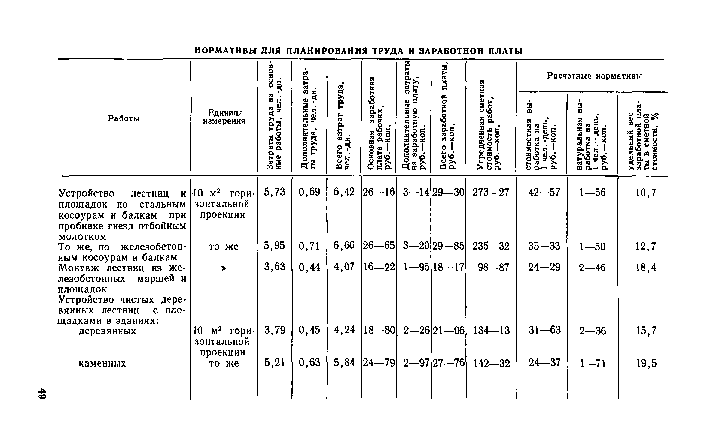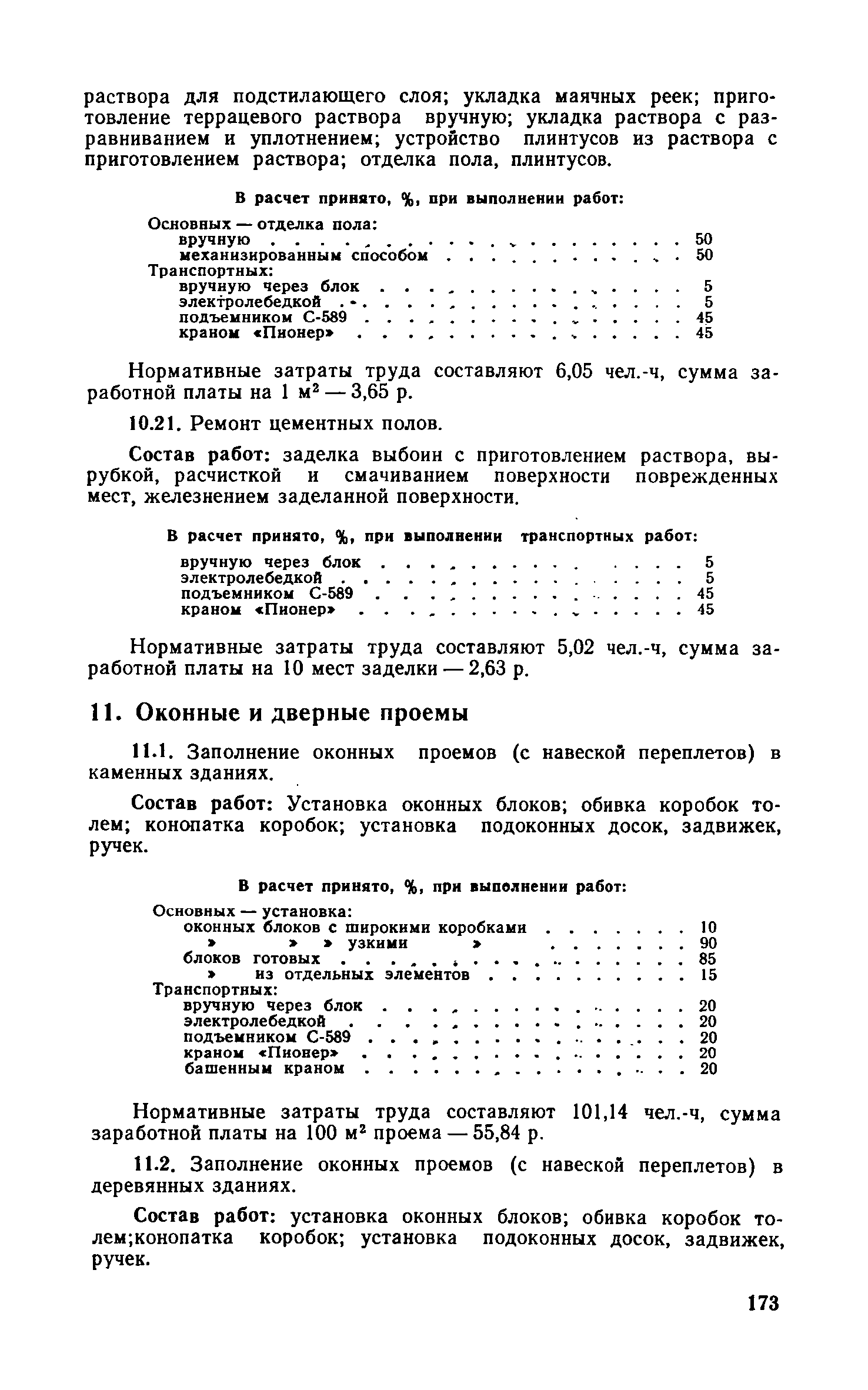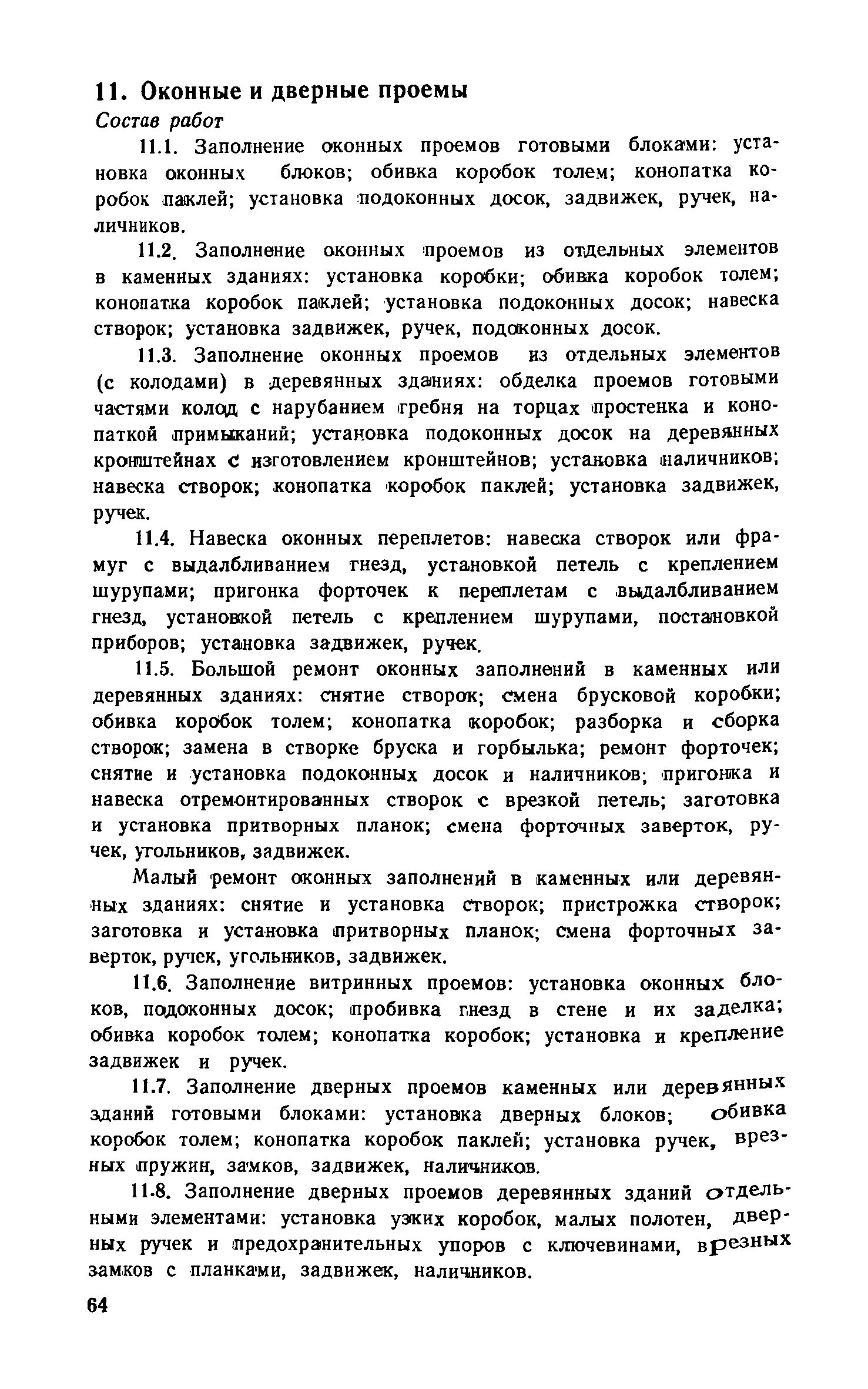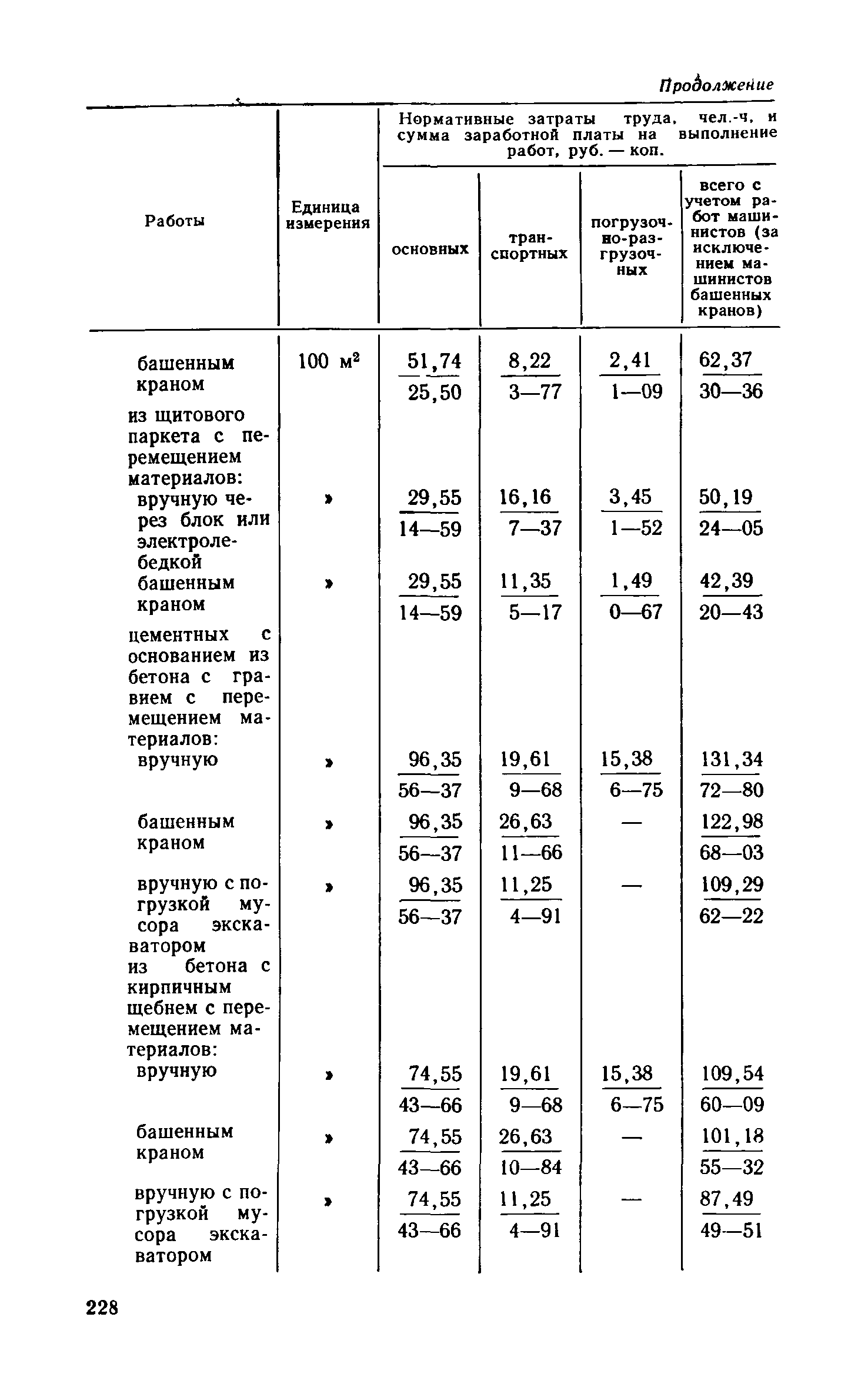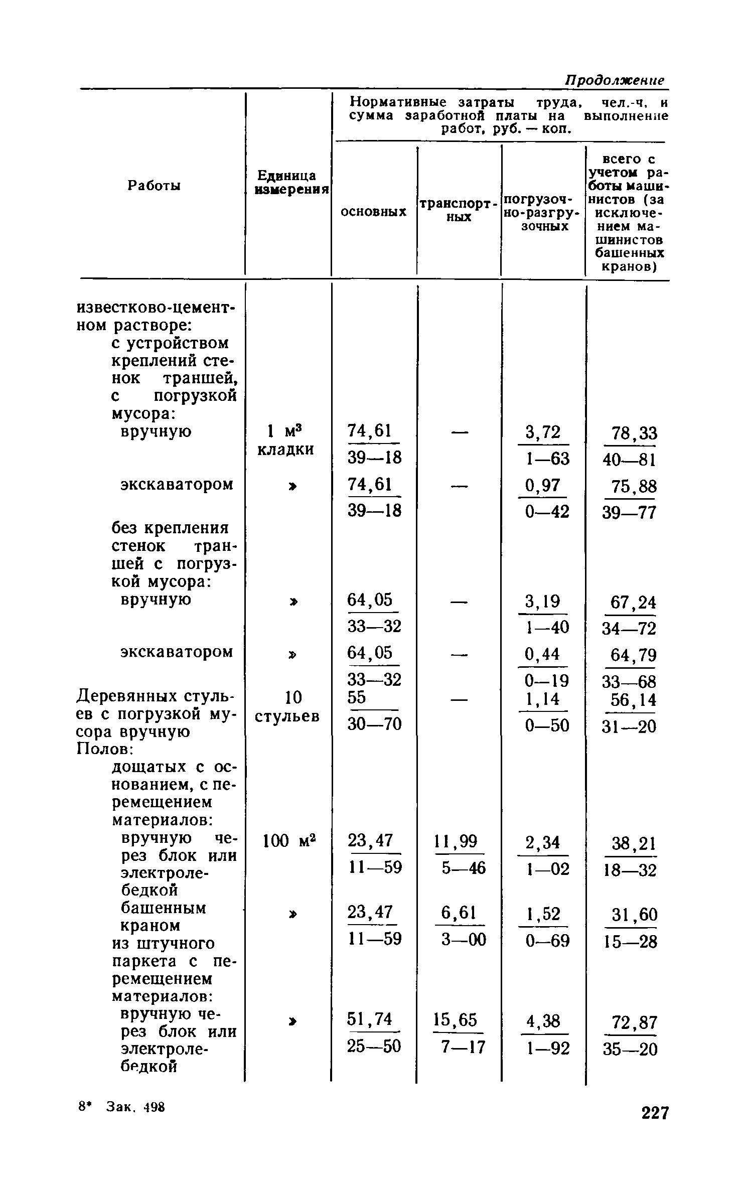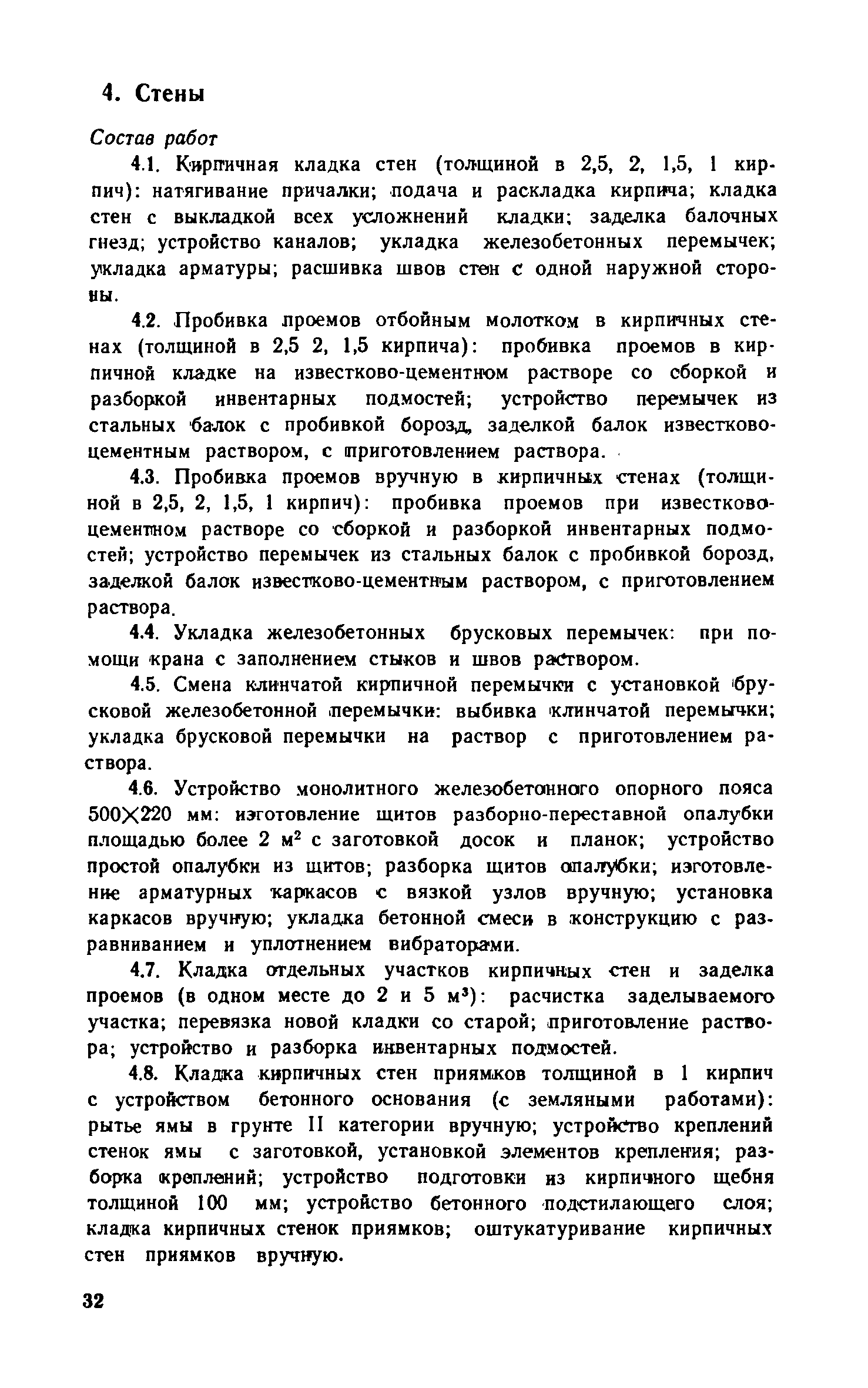 Нормативы для планирования труда, заработной платы и материально-технического обеспечения в ремонтно-строительных организациях| Статус: | справочные материалы, мп, тпр | | Название рус.: | Нормативы для планирования труда, заработной платы и материально-технического обеспечения в ремонтно-строительных организациях | | Дата добавления в базу: | 01.09.2013 | | Дата актуализации: | 01.01.2021 | | Область применения: | В документе приведены нормативы на основные виды общестроительных, электромонтажных и специальных работ, выполняемых при капитальном ремонте жилых и общественных зданий, нормативные затраты труда и заработной платы на измерители конечной продукции, затраты на выполнение всего комплекса основных, транспортных и погрузочно-разгрузочных работ, необходимых для выполнения единицы работы. Для инженерно-технических работников ремонтно-строительных и проектно-сметных организаций. | | Оглавление: | Предисловие Общие положения Базовые стоимостные нормативы затрат труда и заработной платы 1. Разборка строительных конструкций 2. Демонтаж инженерного оборудования 3. Фундаменты 4. Стены 5. Перекрытия 6. Перегородки 7. Лестницы н крыльца 8. Крыши 9. Печи и трубы 10. Полы 11. Оконные и дверные проемы 12. Внутренние штукатурные и облицовочные работы 13. Малярные и стекольные работы 14. Ремонт фасадов 15. Разные работы 16. Внутренние санитарно-технические работы 17. Внутренние электромонтажные и слаботочные работы 18. Наружные сети (с земляными работами) 19. Благоустройство 20. Оборудование отопительных котельных Укрупненные нормативные затраты труда и заработной платы на комплексные ремонтно-строительные процессы с подразделением на основные, транспортные и погрузочно-разгрузочные работы Общая часть 1. Разборка строительных конструкций 2. Демонтаж инженерного оборудования 3. Фундаменты 4. Стены 5. Перекрытия 6. Перегородки 7. Лестницы и крыльца 8. Крыши 9. Печи и трубы 10. Полы 11. Оконные и дверные проемы 12. Внутренние штукатурные и облицовочные работы 13. Малярные и стекольные работы 14. Ремонт фасадов 15. Разные работы 16. Внутренние санитарно-технические работы 17. Внутренние электромонтажные и слаботочные работы 18. Наружные сети (с земляными работами) 19. Благоустройство 20. Оборудование отопительных котельных Укрупненные нормативные затраты труда и заработной платы на комплексные ремонтно-строительные процессы Общая часть 1. Разборка строительных конструкций 2. Демонтаж инженерного оборудования 3. Фундаменты 4. Стены 5. Перекрытия 6. Перегородки 7. Лестницы и крыльца 8. Крыши 9. Печи и трубы 10. Полы 11. Оконные и дверные проемы 12. Внутренние штукатурные и облицовочные работы 13. Малярные и стекольные работы 14. Ремонт фасадов 15. Разные работы 16. Внутренние санитарно-технические работы 17. Внутренние электромонтажные и слаботочные работы 18. Наружные сети (с земляными работами) 19. Благоустройство 20. Оборудование отопительных котельных | | Разработан: | Ленинградский НИИ АКХ им. К.Д. Памфилова ЦНИС МЖКХ РСФСР Трест Оргремжилстрой
