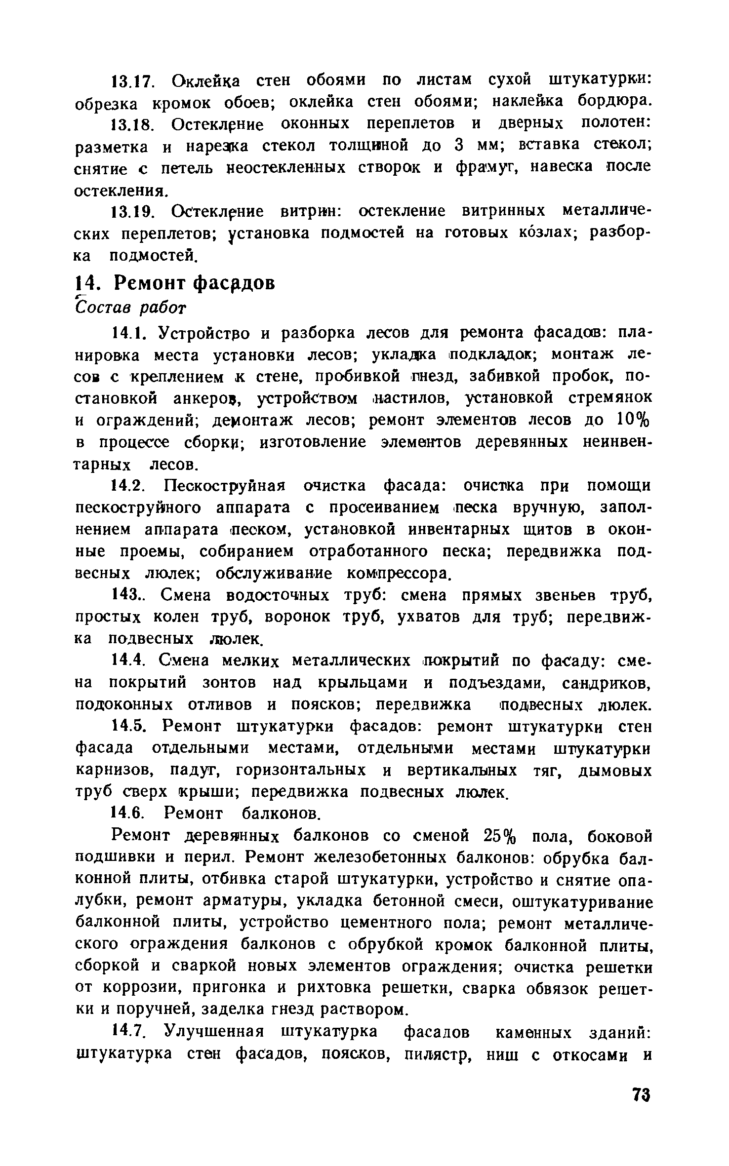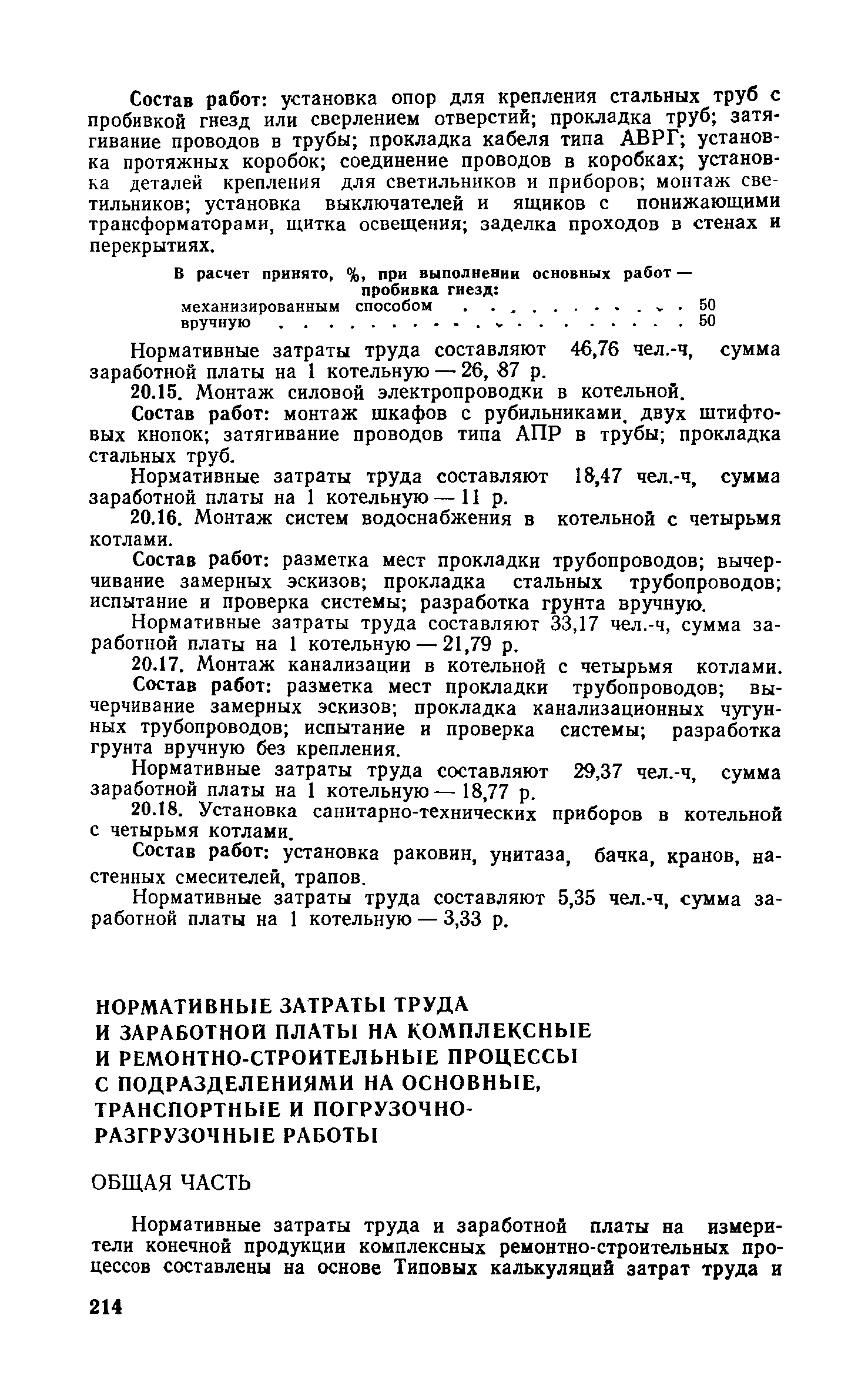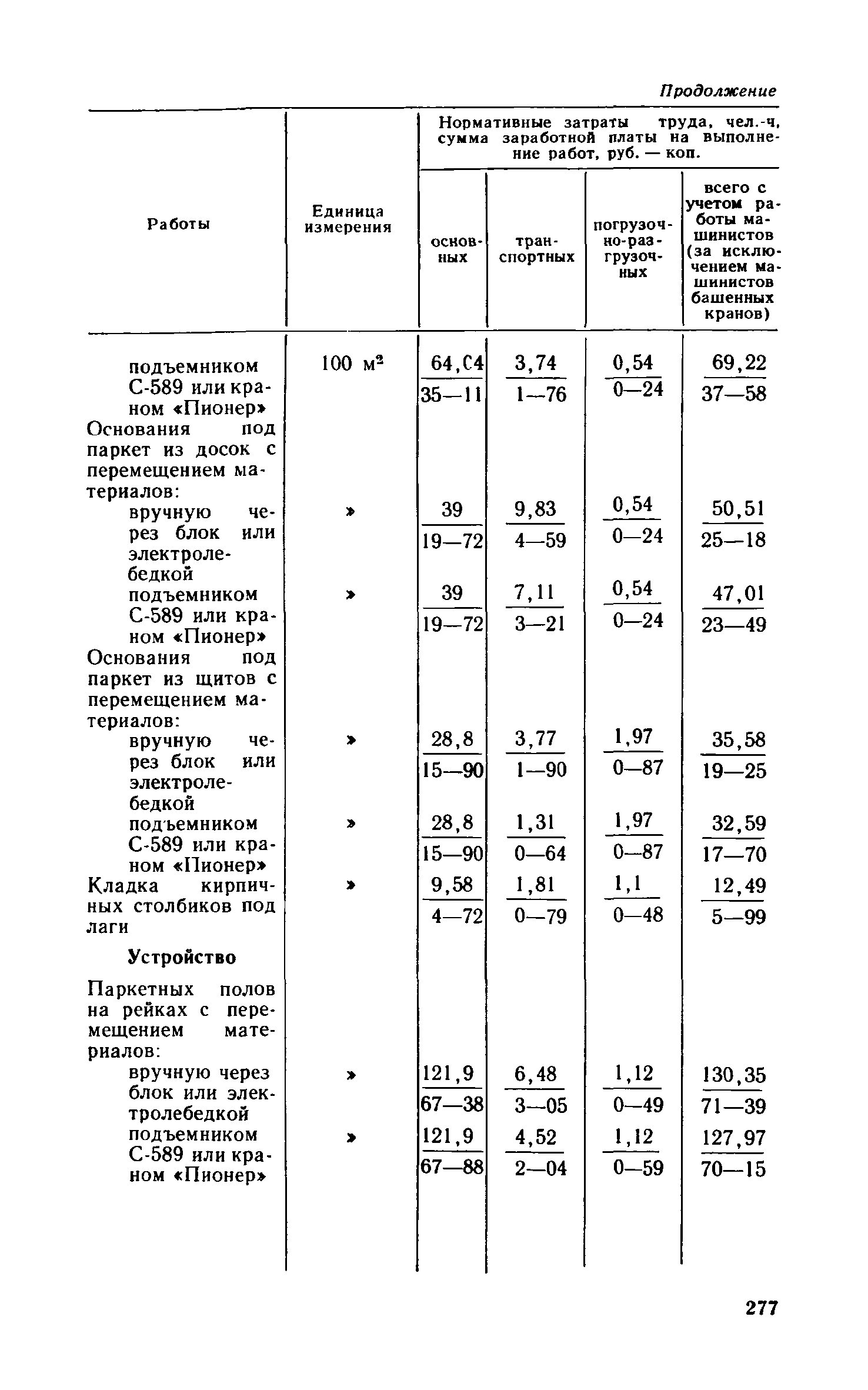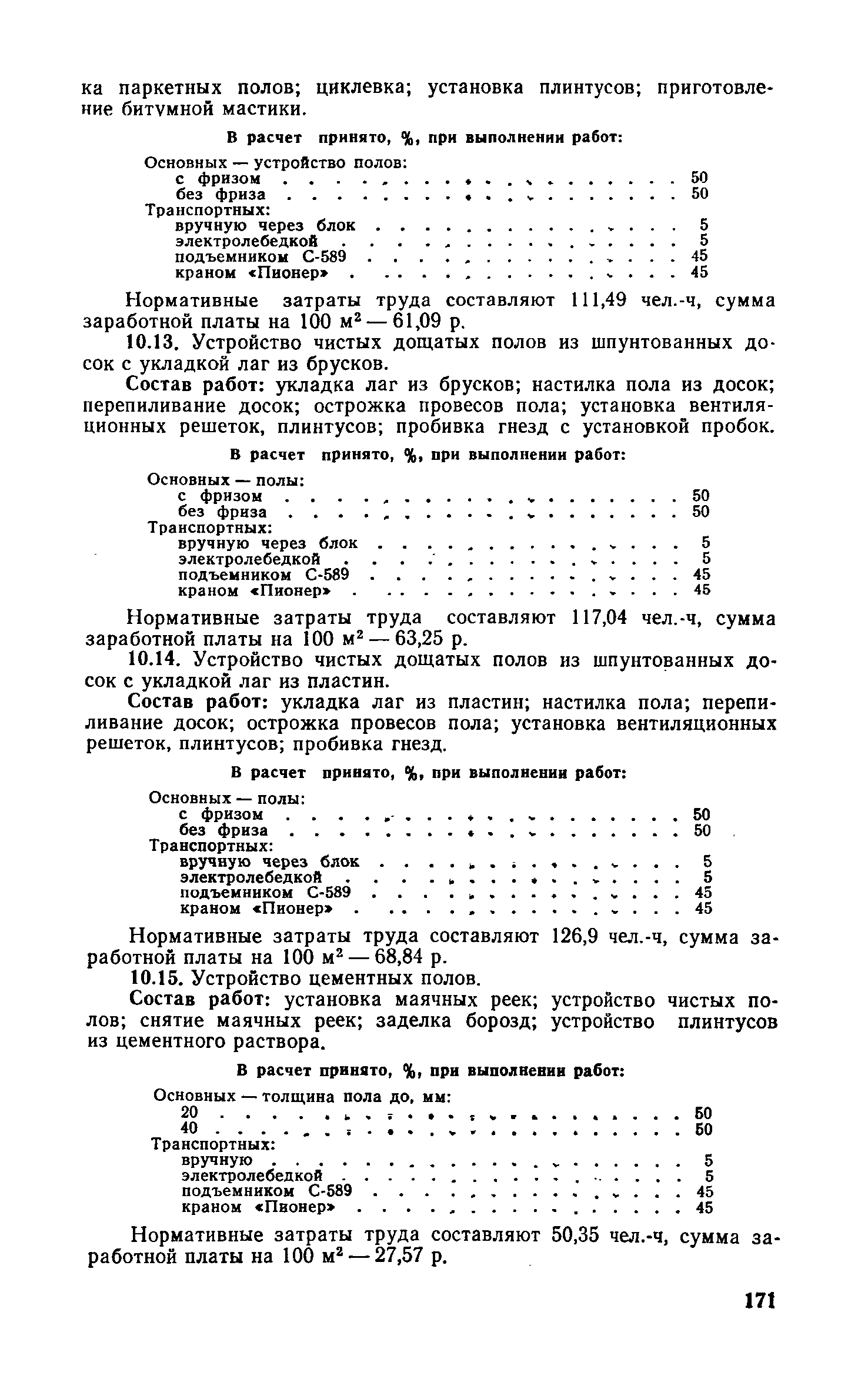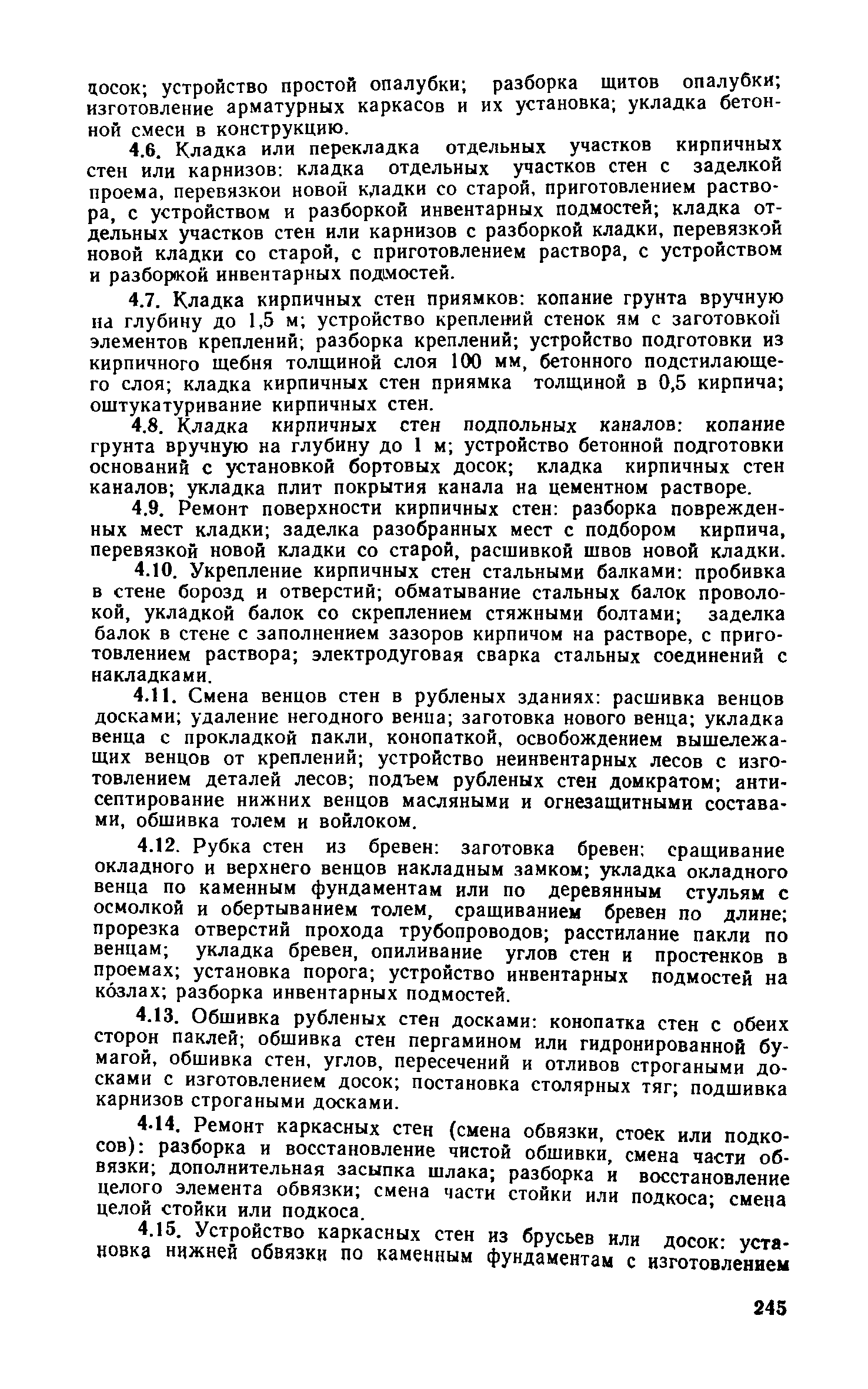 Нормативы для планирования труда, заработной платы и материально-технического обеспечения в ремонтно-строительных организациях| Статус: | справочные материалы, мп, тпр | | Название рус.: | Нормативы для планирования труда, заработной платы и материально-технического обеспечения в ремонтно-строительных организациях | | Дата добавления в базу: | 01.09.2013 | | Дата актуализации: | 01.01.2021 | | Область применения: | В документе приведены нормативы на основные виды общестроительных, электромонтажных и специальных работ, выполняемых при капитальном ремонте жилых и общественных зданий, нормативные затраты труда и заработной платы на измерители конечной продукции, затраты на выполнение всего комплекса основных, транспортных и погрузочно-разгрузочных работ, необходимых для выполнения единицы работы. Для инженерно-технических работников ремонтно-строительных и проектно-сметных организаций. | | Оглавление: | Предисловие Общие положения Базовые стоимостные нормативы затрат труда и заработной платы 1. Разборка строительных конструкций 2. Демонтаж инженерного оборудования 3. Фундаменты 4. Стены 5. Перекрытия 6. Перегородки 7. Лестницы н крыльца 8. Крыши 9. Печи и трубы 10. Полы 11. Оконные и дверные проемы 12. Внутренние штукатурные и облицовочные работы 13. Малярные и стекольные работы 14. Ремонт фасадов 15. Разные работы 16. Внутренние санитарно-технические работы 17. Внутренние электромонтажные и слаботочные работы 18. Наружные сети (с земляными работами) 19. Благоустройство 20. Оборудование отопительных котельных Укрупненные нормативные затраты труда и заработной платы на комплексные ремонтно-строительные процессы с подразделением на основные, транспортные и погрузочно-разгрузочные работы Общая часть 1. Разборка строительных конструкций 2. Демонтаж инженерного оборудования 3. Фундаменты 4. Стены 5. Перекрытия 6. Перегородки 7. Лестницы и крыльца 8. Крыши 9. Печи и трубы 10. Полы 11. Оконные и дверные проемы 12. Внутренние штукатурные и облицовочные работы 13. Малярные и стекольные работы 14. Ремонт фасадов 15. Разные работы 16. Внутренние санитарно-технические работы 17. Внутренние электромонтажные и слаботочные работы 18. Наружные сети (с земляными работами) 19. Благоустройство 20. Оборудование отопительных котельных Укрупненные нормативные затраты труда и заработной платы на комплексные ремонтно-строительные процессы Общая часть 1. Разборка строительных конструкций 2. Демонтаж инженерного оборудования 3. Фундаменты 4. Стены 5. Перекрытия 6. Перегородки 7. Лестницы и крыльца 8. Крыши 9. Печи и трубы 10. Полы 11. Оконные и дверные проемы 12. Внутренние штукатурные и облицовочные работы 13. Малярные и стекольные работы 14. Ремонт фасадов 15. Разные работы 16. Внутренние санитарно-технические работы 17. Внутренние электромонтажные и слаботочные работы 18. Наружные сети (с земляными работами) 19. Благоустройство 20. Оборудование отопительных котельных | | Разработан: | Ленинградский НИИ АКХ им. К.Д. Памфилова ЦНИС МЖКХ РСФСР Трест Оргремжилстрой