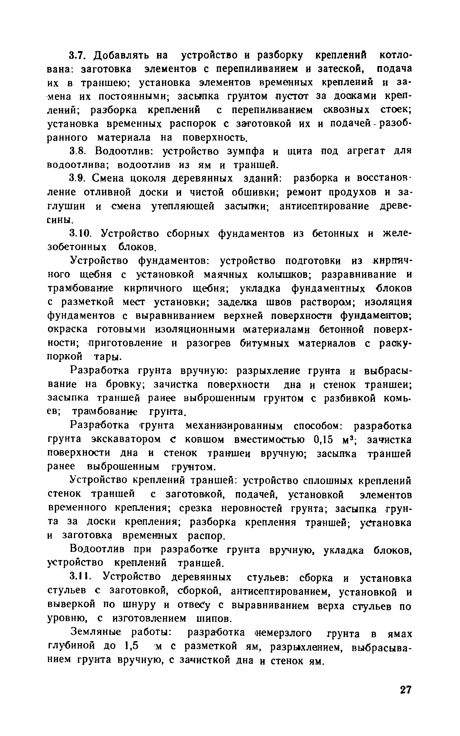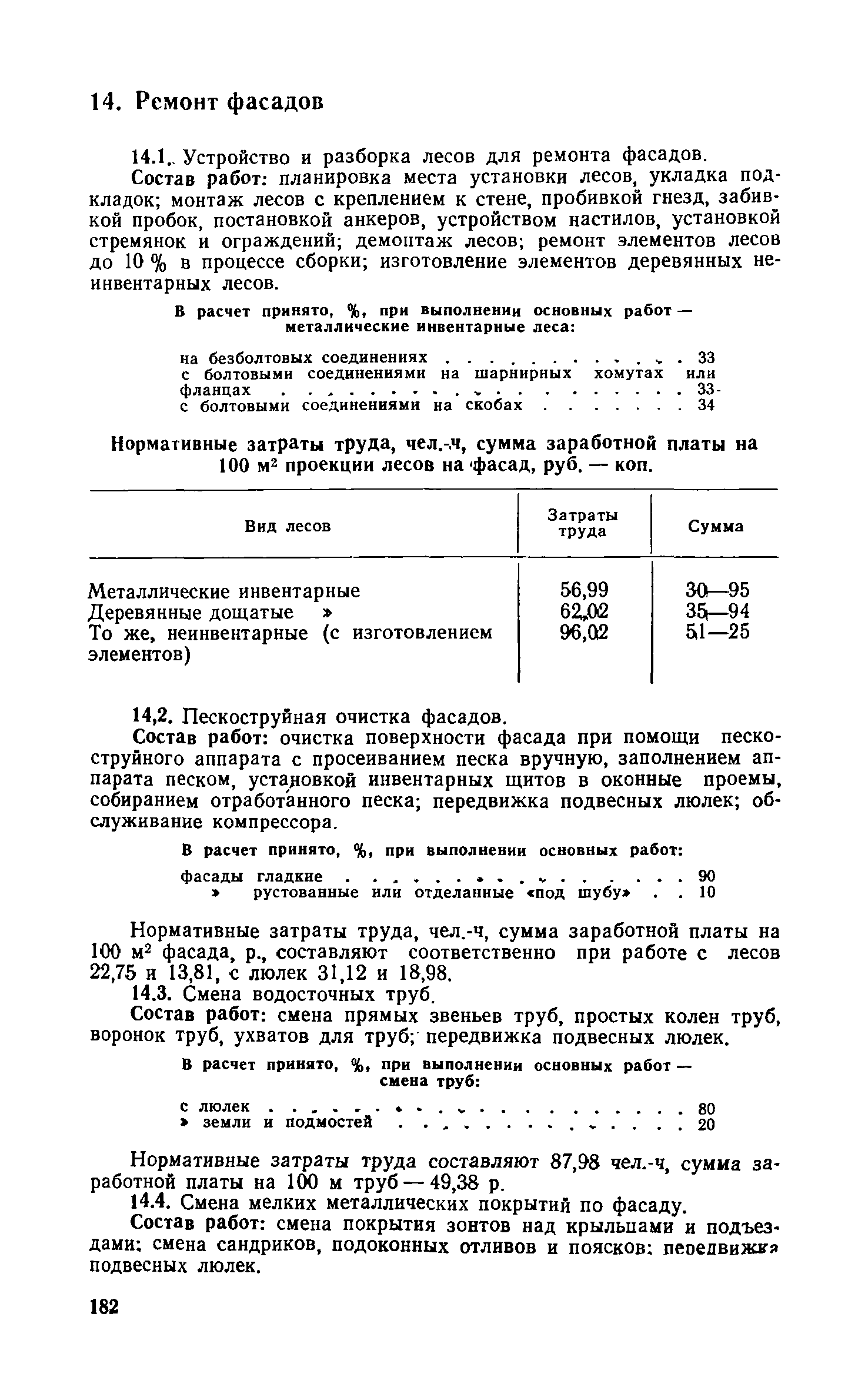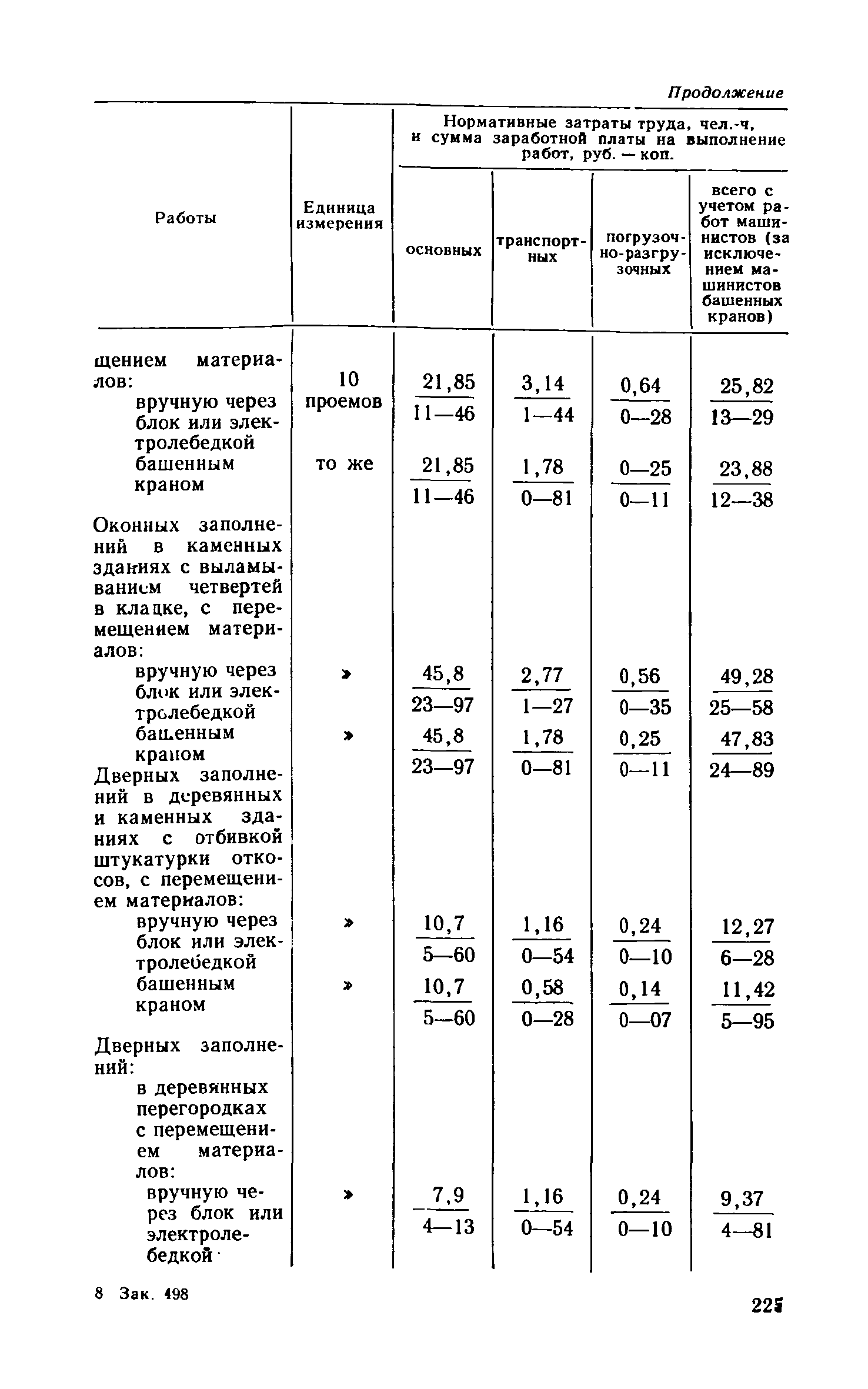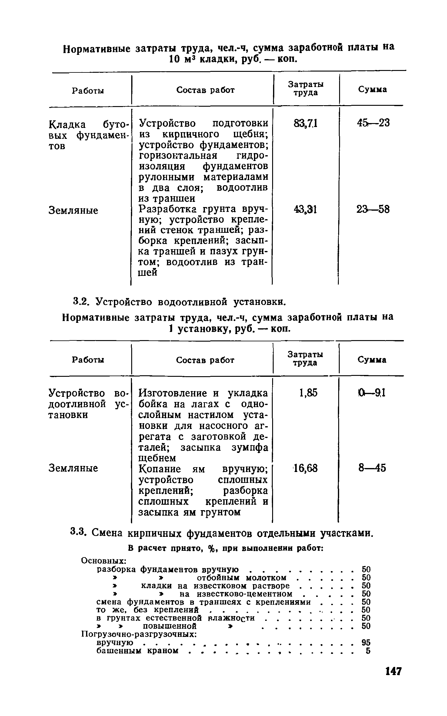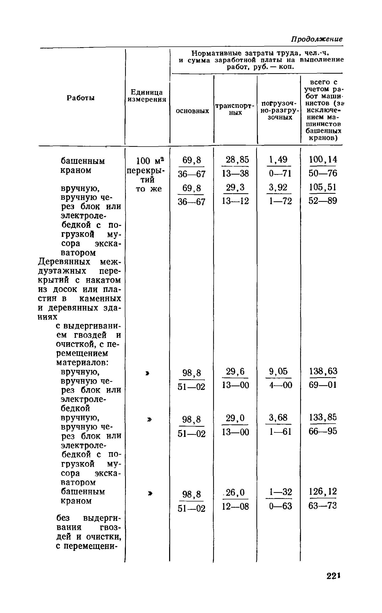 Нормативы для планирования труда, заработной платы и материально-технического обеспечения в ремонтно-строительных организациях| Статус: | справочные материалы, мп, тпр | | Название рус.: | Нормативы для планирования труда, заработной платы и материально-технического обеспечения в ремонтно-строительных организациях | | Дата добавления в базу: | 01.09.2013 | | Дата актуализации: | 01.01.2021 | | Область применения: | В документе приведены нормативы на основные виды общестроительных, электромонтажных и специальных работ, выполняемых при капитальном ремонте жилых и общественных зданий, нормативные затраты труда и заработной платы на измерители конечной продукции, затраты на выполнение всего комплекса основных, транспортных и погрузочно-разгрузочных работ, необходимых для выполнения единицы работы. Для инженерно-технических работников ремонтно-строительных и проектно-сметных организаций. | | Оглавление: | Предисловие Общие положения Базовые стоимостные нормативы затрат труда и заработной платы 1. Разборка строительных конструкций 2. Демонтаж инженерного оборудования 3. Фундаменты 4. Стены 5. Перекрытия 6. Перегородки 7. Лестницы н крыльца 8. Крыши 9. Печи и трубы 10. Полы 11. Оконные и дверные проемы 12. Внутренние штукатурные и облицовочные работы 13. Малярные и стекольные работы 14. Ремонт фасадов 15. Разные работы 16. Внутренние санитарно-технические работы 17. Внутренние электромонтажные и слаботочные работы 18. Наружные сети (с земляными работами) 19. Благоустройство 20. Оборудование отопительных котельных Укрупненные нормативные затраты труда и заработной платы на комплексные ремонтно-строительные процессы с подразделением на основные, транспортные и погрузочно-разгрузочные работы Общая часть 1. Разборка строительных конструкций 2. Демонтаж инженерного оборудования 3. Фундаменты 4. Стены 5. Перекрытия 6. Перегородки 7. Лестницы и крыльца 8. Крыши 9. Печи и трубы 10. Полы 11. Оконные и дверные проемы 12. Внутренние штукатурные и облицовочные работы 13. Малярные и стекольные работы 14. Ремонт фасадов 15. Разные работы 16. Внутренние санитарно-технические работы 17. Внутренние электромонтажные и слаботочные работы 18. Наружные сети (с земляными работами) 19. Благоустройство 20. Оборудование отопительных котельных Укрупненные нормативные затраты труда и заработной платы на комплексные ремонтно-строительные процессы Общая часть 1. Разборка строительных конструкций 2. Демонтаж инженерного оборудования 3. Фундаменты 4. Стены 5. Перекрытия 6. Перегородки 7. Лестницы и крыльца 8. Крыши 9. Печи и трубы 10. Полы 11. Оконные и дверные проемы 12. Внутренние штукатурные и облицовочные работы 13. Малярные и стекольные работы 14. Ремонт фасадов 15. Разные работы 16. Внутренние санитарно-технические работы 17. Внутренние электромонтажные и слаботочные работы 18. Наружные сети (с земляными работами) 19. Благоустройство 20. Оборудование отопительных котельных | | Разработан: | Ленинградский НИИ АКХ им. К.Д. Памфилова ЦНИС МЖКХ РСФСР Трест Оргремжилстрой