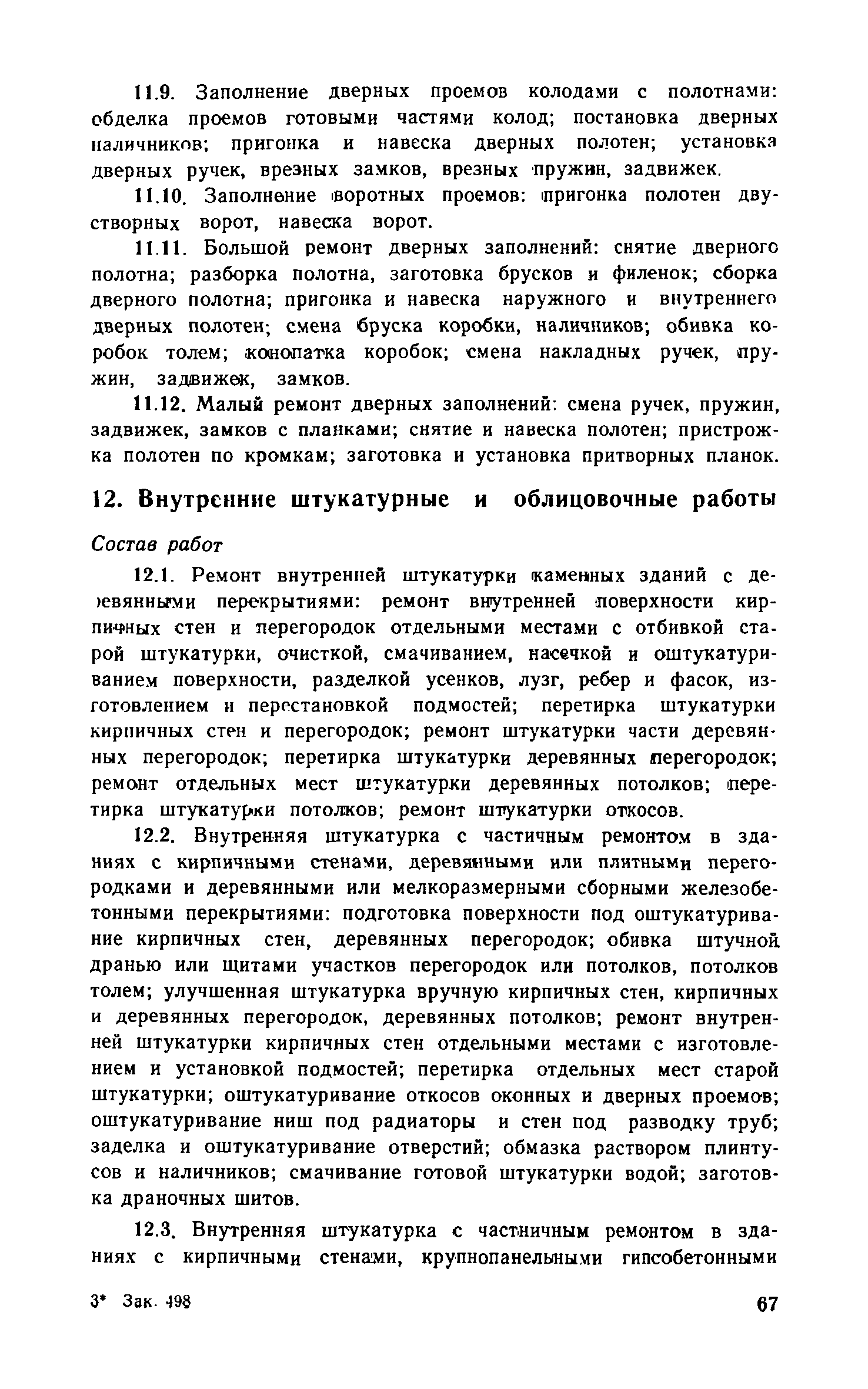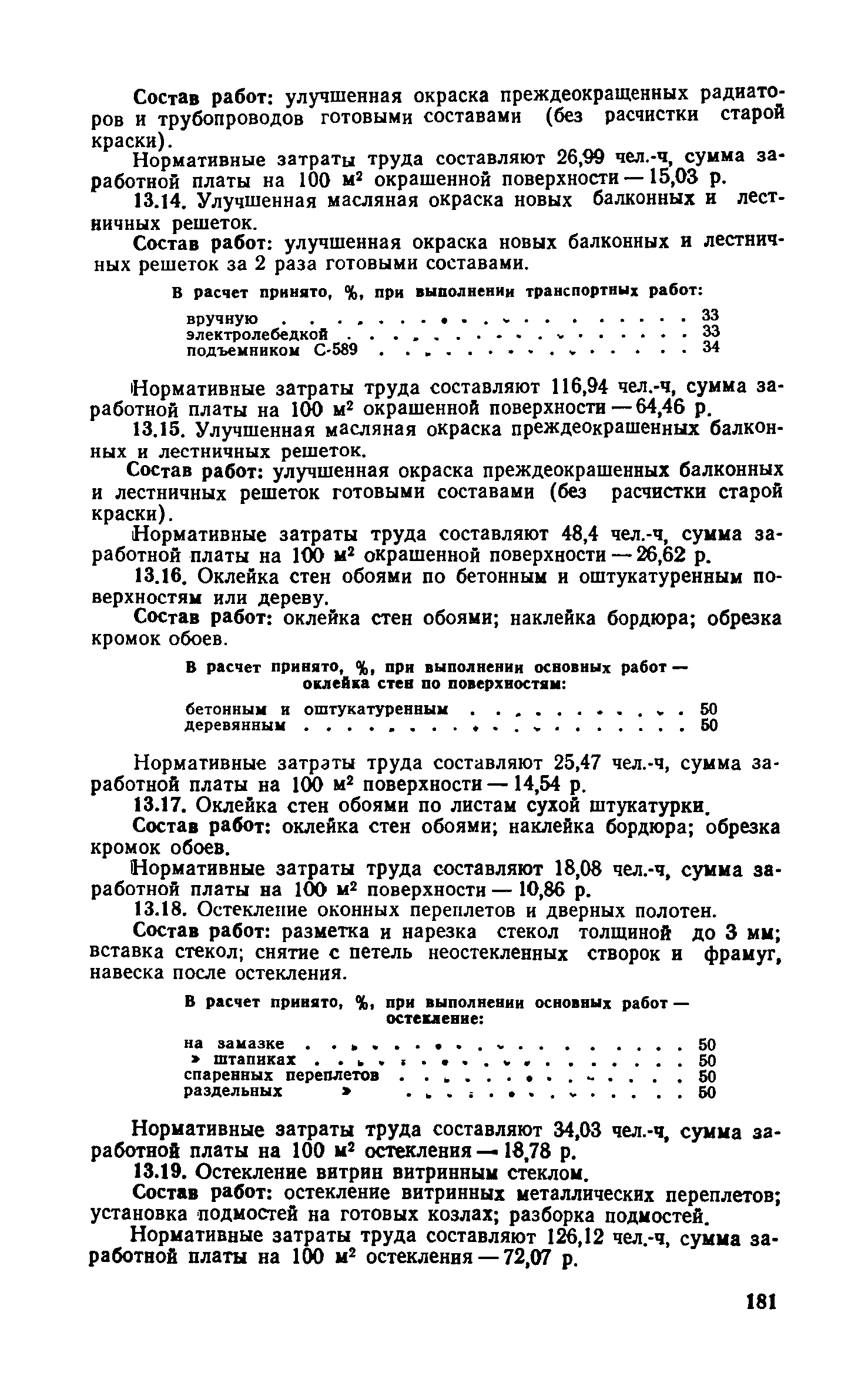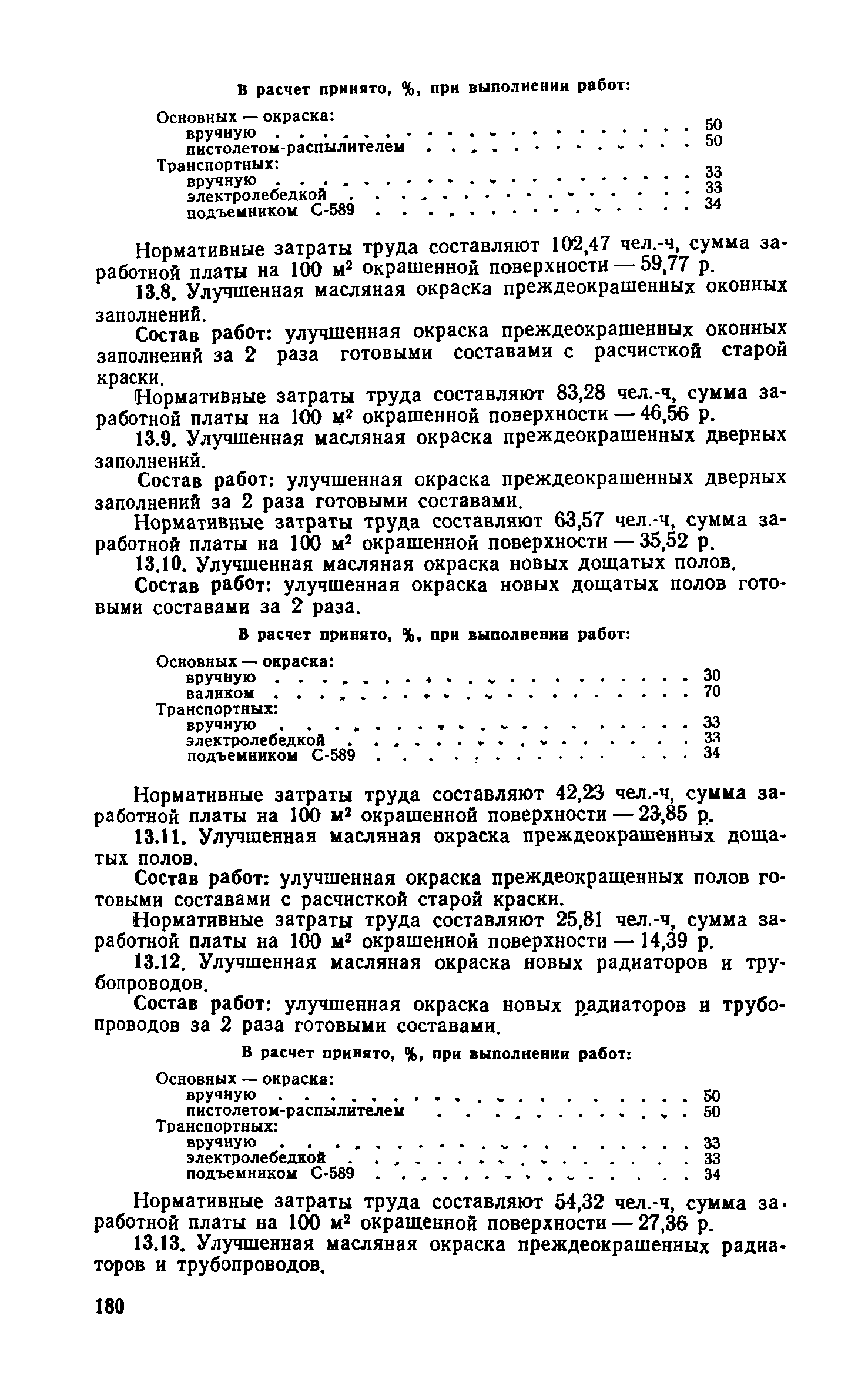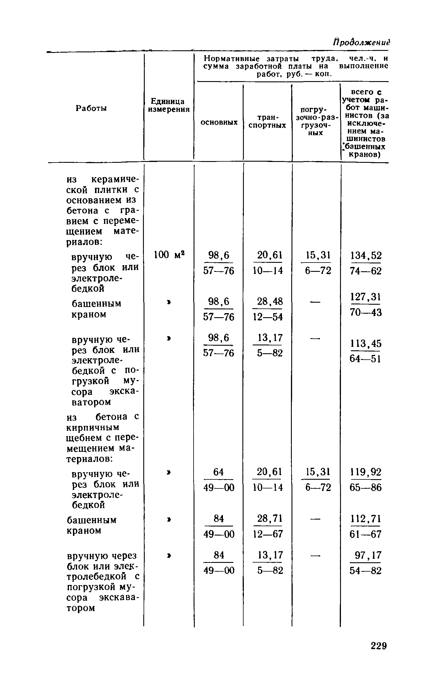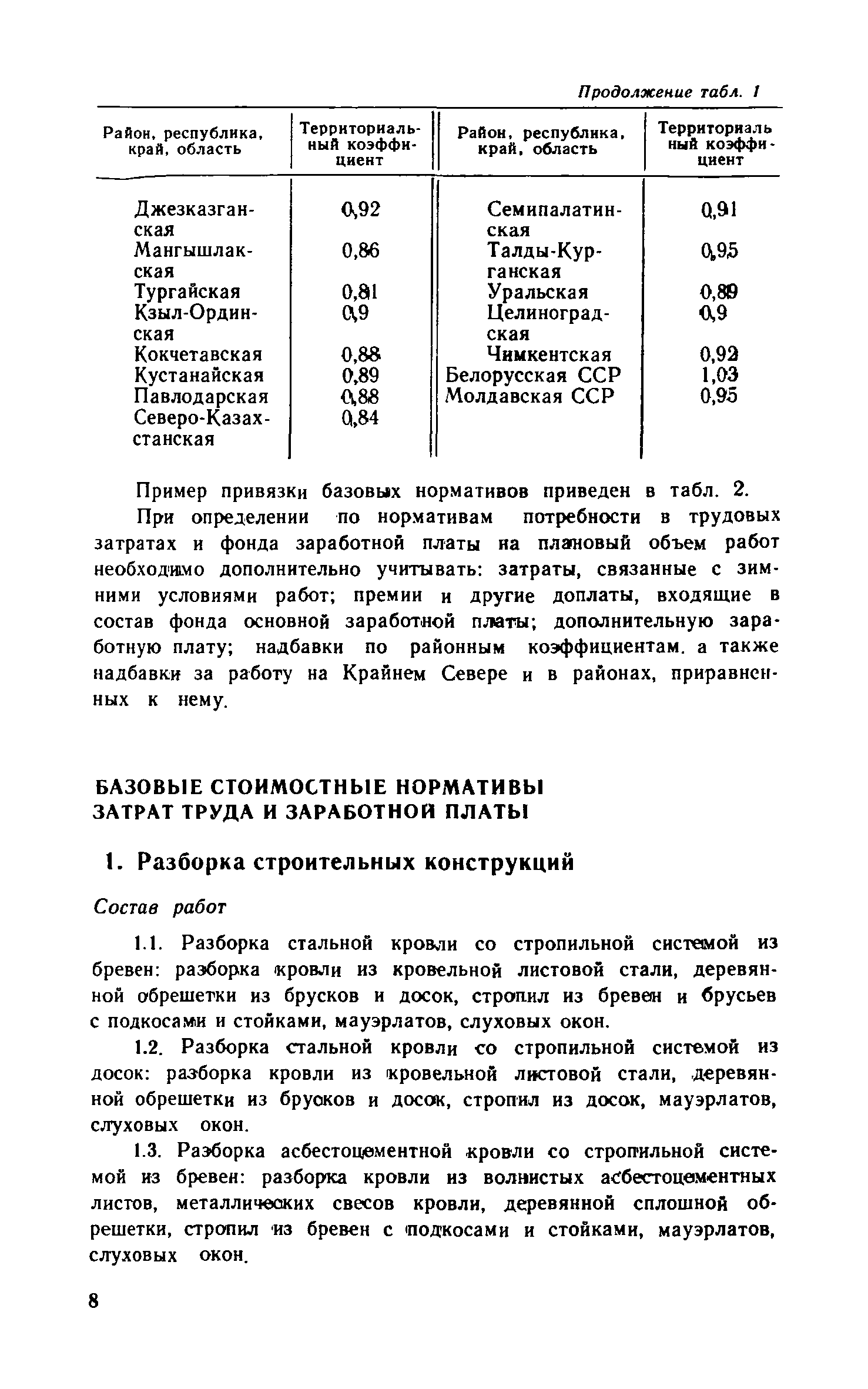 Нормативы для планирования труда, заработной платы и материально-технического обеспечения в ремонтно-строительных организациях| Статус: | справочные материалы, мп, тпр | | Название рус.: | Нормативы для планирования труда, заработной платы и материально-технического обеспечения в ремонтно-строительных организациях | | Дата добавления в базу: | 01.09.2013 | | Дата актуализации: | 01.01.2021 | | Область применения: | В документе приведены нормативы на основные виды общестроительных, электромонтажных и специальных работ, выполняемых при капитальном ремонте жилых и общественных зданий, нормативные затраты труда и заработной платы на измерители конечной продукции, затраты на выполнение всего комплекса основных, транспортных и погрузочно-разгрузочных работ, необходимых для выполнения единицы работы. Для инженерно-технических работников ремонтно-строительных и проектно-сметных организаций. | | Оглавление: | Предисловие Общие положения Базовые стоимостные нормативы затрат труда и заработной платы 1. Разборка строительных конструкций 2. Демонтаж инженерного оборудования 3. Фундаменты 4. Стены 5. Перекрытия 6. Перегородки 7. Лестницы н крыльца 8. Крыши 9. Печи и трубы 10. Полы 11. Оконные и дверные проемы 12. Внутренние штукатурные и облицовочные работы 13. Малярные и стекольные работы 14. Ремонт фасадов 15. Разные работы 16. Внутренние санитарно-технические работы 17. Внутренние электромонтажные и слаботочные работы 18. Наружные сети (с земляными работами) 19. Благоустройство 20. Оборудование отопительных котельных Укрупненные нормативные затраты труда и заработной платы на комплексные ремонтно-строительные процессы с подразделением на основные, транспортные и погрузочно-разгрузочные работы Общая часть 1. Разборка строительных конструкций 2. Демонтаж инженерного оборудования 3. Фундаменты 4. Стены 5. Перекрытия 6. Перегородки 7. Лестницы и крыльца 8. Крыши 9. Печи и трубы 10. Полы 11. Оконные и дверные проемы 12. Внутренние штукатурные и облицовочные работы 13. Малярные и стекольные работы 14. Ремонт фасадов 15. Разные работы 16. Внутренние санитарно-технические работы 17. Внутренние электромонтажные и слаботочные работы 18. Наружные сети (с земляными работами) 19. Благоустройство 20. Оборудование отопительных котельных Укрупненные нормативные затраты труда и заработной платы на комплексные ремонтно-строительные процессы Общая часть 1. Разборка строительных конструкций 2. Демонтаж инженерного оборудования 3. Фундаменты 4. Стены 5. Перекрытия 6. Перегородки 7. Лестницы и крыльца 8. Крыши 9. Печи и трубы 10. Полы 11. Оконные и дверные проемы 12. Внутренние штукатурные и облицовочные работы 13. Малярные и стекольные работы 14. Ремонт фасадов 15. Разные работы 16. Внутренние санитарно-технические работы 17. Внутренние электромонтажные и слаботочные работы 18. Наружные сети (с земляными работами) 19. Благоустройство 20. Оборудование отопительных котельных | | Разработан: | Ленинградский НИИ АКХ им. К.Д. Памфилова ЦНИС МЖКХ РСФСР Трест Оргремжилстрой