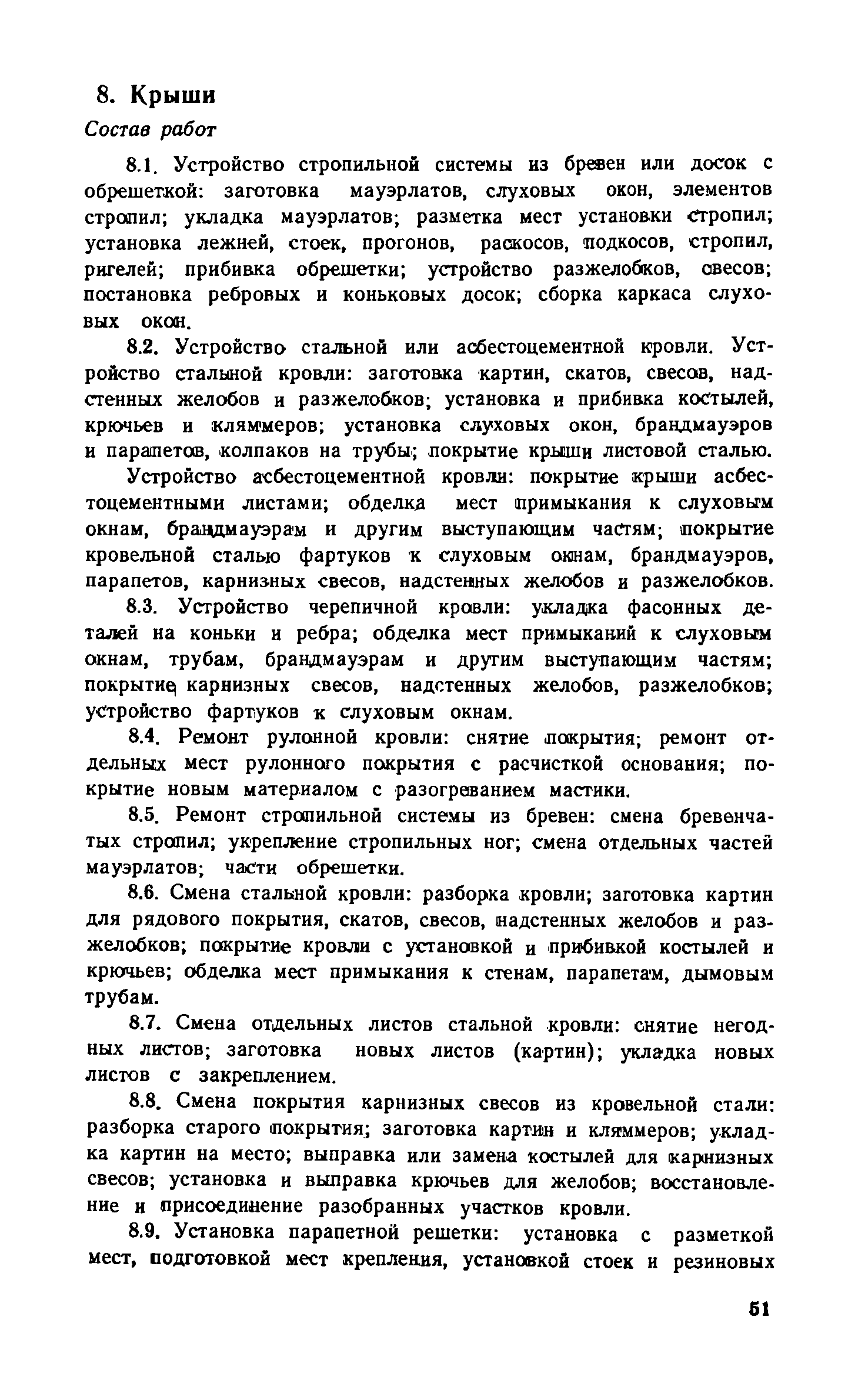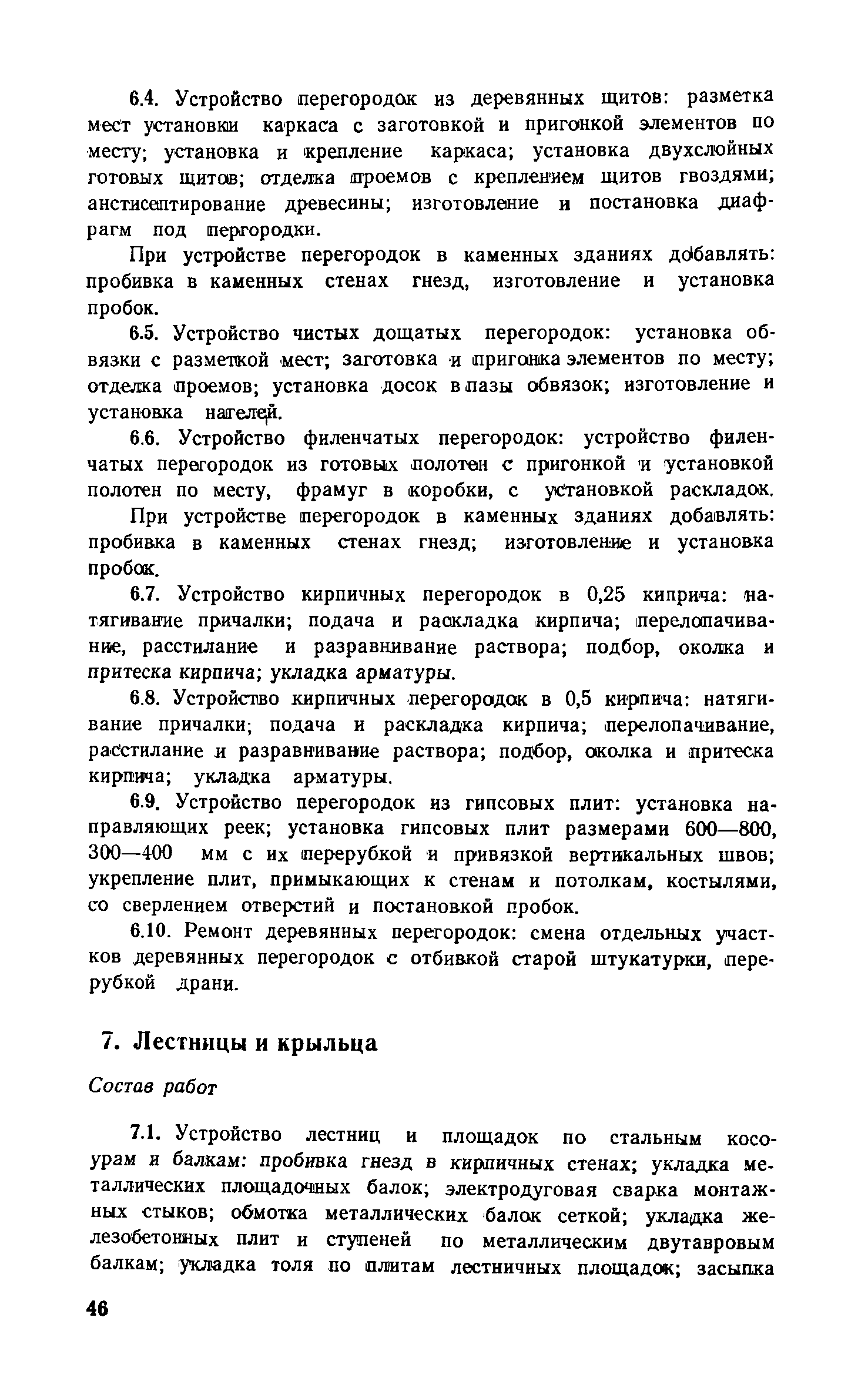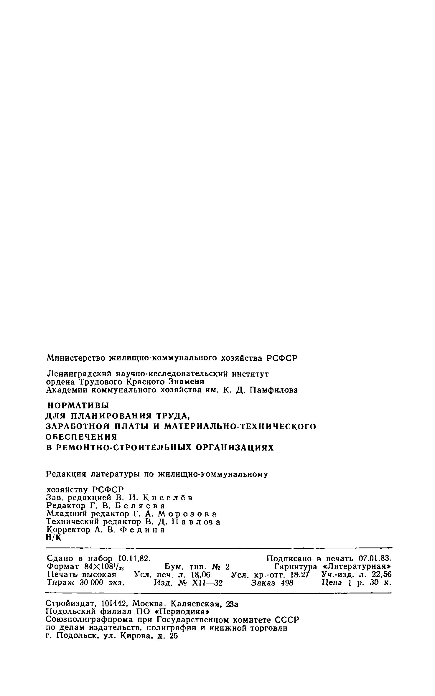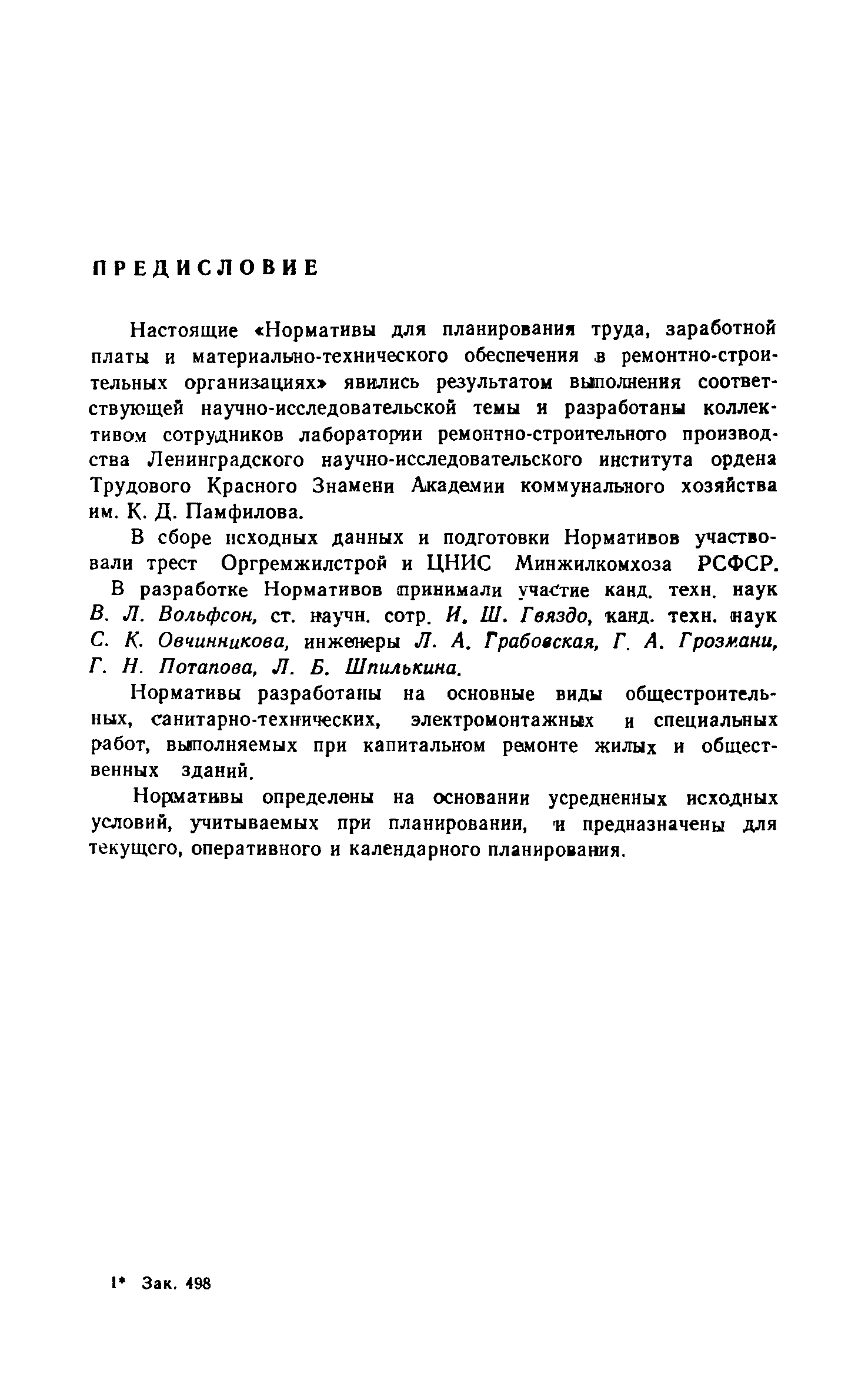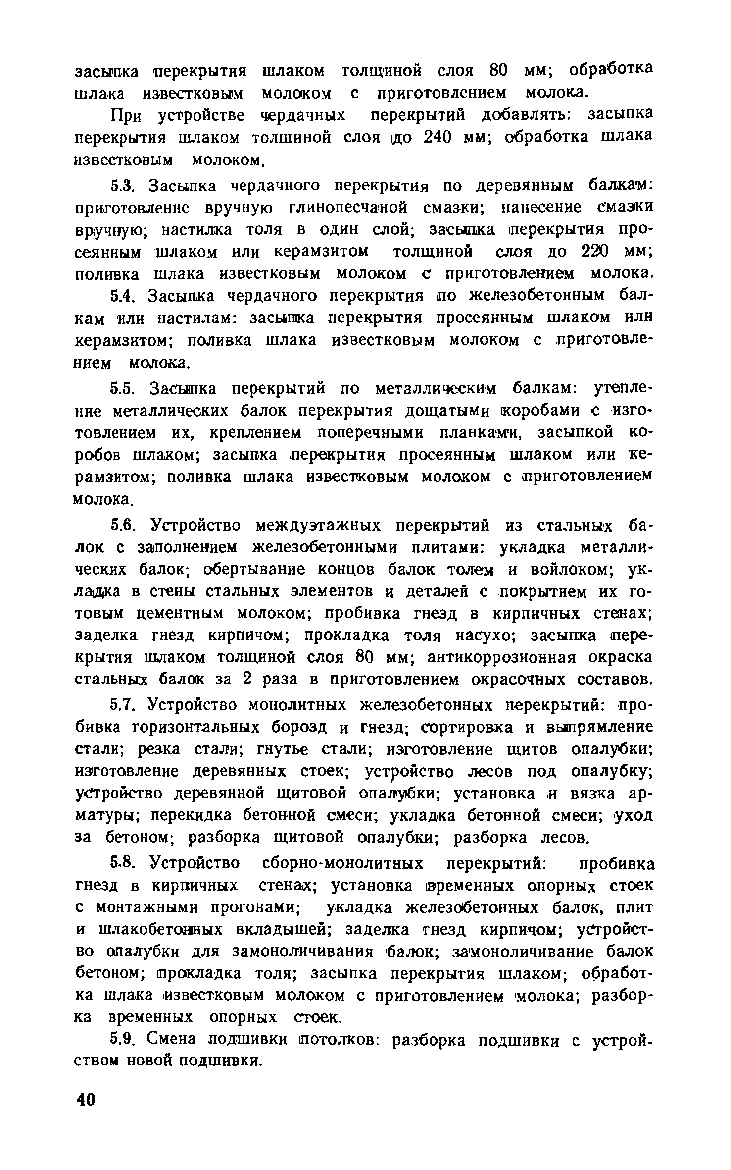 Нормативы для планирования труда, заработной платы и материально-технического обеспечения в ремонтно-строительных организациях| Статус: | справочные материалы, мп, тпр | | Название рус.: | Нормативы для планирования труда, заработной платы и материально-технического обеспечения в ремонтно-строительных организациях | | Дата добавления в базу: | 01.09.2013 | | Дата актуализации: | 01.01.2021 | | Область применения: | В документе приведены нормативы на основные виды общестроительных, электромонтажных и специальных работ, выполняемых при капитальном ремонте жилых и общественных зданий, нормативные затраты труда и заработной платы на измерители конечной продукции, затраты на выполнение всего комплекса основных, транспортных и погрузочно-разгрузочных работ, необходимых для выполнения единицы работы. Для инженерно-технических работников ремонтно-строительных и проектно-сметных организаций. | | Оглавление: | Предисловие Общие положения Базовые стоимостные нормативы затрат труда и заработной платы 1. Разборка строительных конструкций 2. Демонтаж инженерного оборудования 3. Фундаменты 4. Стены 5. Перекрытия 6. Перегородки 7. Лестницы н крыльца 8. Крыши 9. Печи и трубы 10. Полы 11. Оконные и дверные проемы 12. Внутренние штукатурные и облицовочные работы 13. Малярные и стекольные работы 14. Ремонт фасадов 15. Разные работы 16. Внутренние санитарно-технические работы 17. Внутренние электромонтажные и слаботочные работы 18. Наружные сети (с земляными работами) 19. Благоустройство 20. Оборудование отопительных котельных Укрупненные нормативные затраты труда и заработной платы на комплексные ремонтно-строительные процессы с подразделением на основные, транспортные и погрузочно-разгрузочные работы Общая часть 1. Разборка строительных конструкций 2. Демонтаж инженерного оборудования 3. Фундаменты 4. Стены 5. Перекрытия 6. Перегородки 7. Лестницы и крыльца 8. Крыши 9. Печи и трубы 10. Полы 11. Оконные и дверные проемы 12. Внутренние штукатурные и облицовочные работы 13. Малярные и стекольные работы 14. Ремонт фасадов 15. Разные работы 16. Внутренние санитарно-технические работы 17. Внутренние электромонтажные и слаботочные работы 18. Наружные сети (с земляными работами) 19. Благоустройство 20. Оборудование отопительных котельных Укрупненные нормативные затраты труда и заработной платы на комплексные ремонтно-строительные процессы Общая часть 1. Разборка строительных конструкций 2. Демонтаж инженерного оборудования 3. Фундаменты 4. Стены 5. Перекрытия 6. Перегородки 7. Лестницы и крыльца 8. Крыши 9. Печи и трубы 10. Полы 11. Оконные и дверные проемы 12. Внутренние штукатурные и облицовочные работы 13. Малярные и стекольные работы 14. Ремонт фасадов 15. Разные работы 16. Внутренние санитарно-технические работы 17. Внутренние электромонтажные и слаботочные работы 18. Наружные сети (с земляными работами) 19. Благоустройство 20. Оборудование отопительных котельных | | Разработан: | Ленинградский НИИ АКХ им. К.Д. Памфилова ЦНИС МЖКХ РСФСР Трест Оргремжилстрой