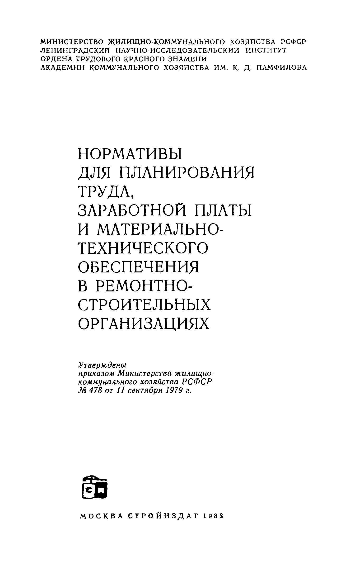| | Утверждён: | 11.09.1979 Министерство жилищно-коммунального хозяйства РСФСР (478)
