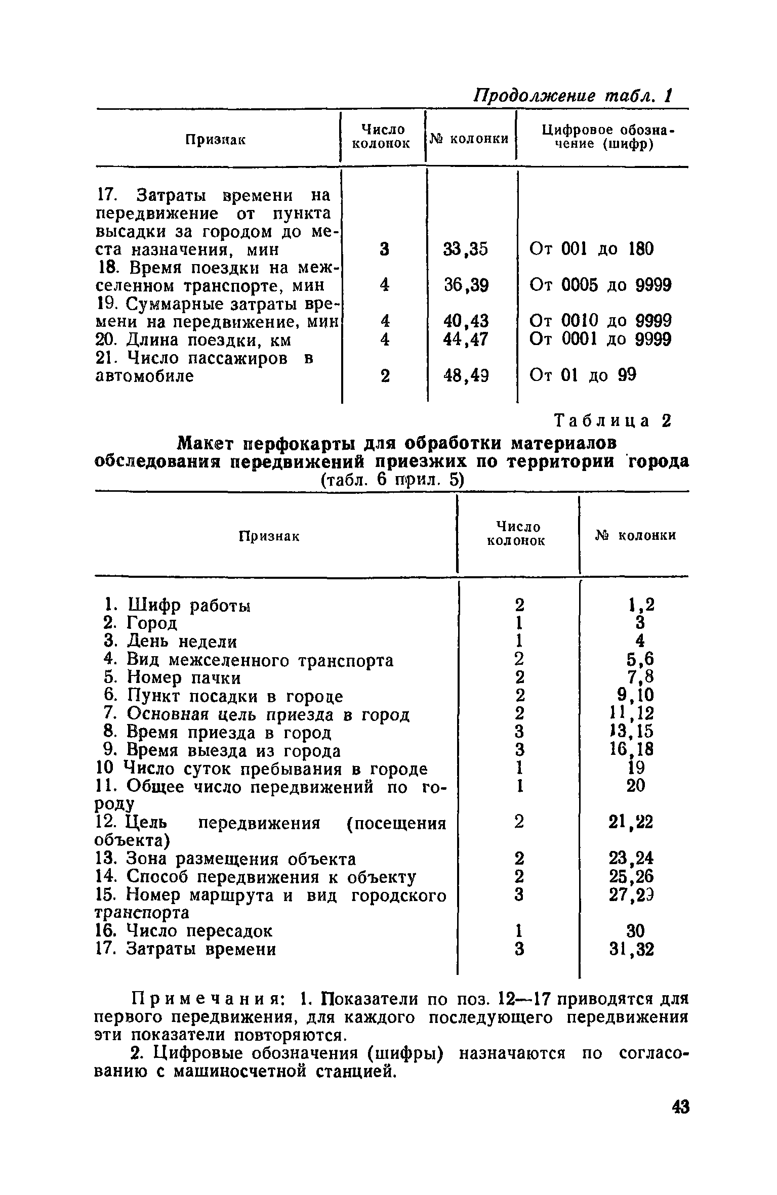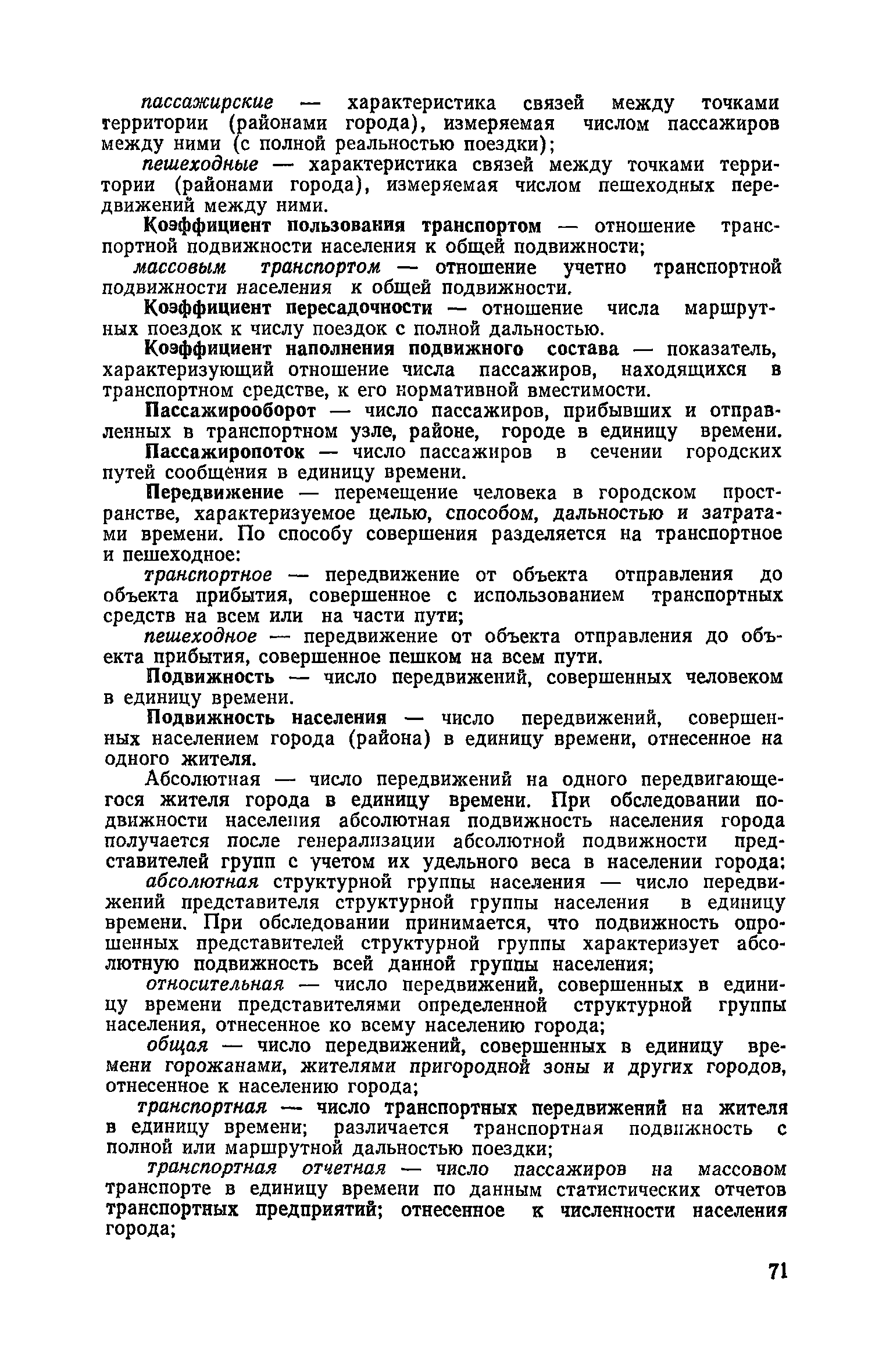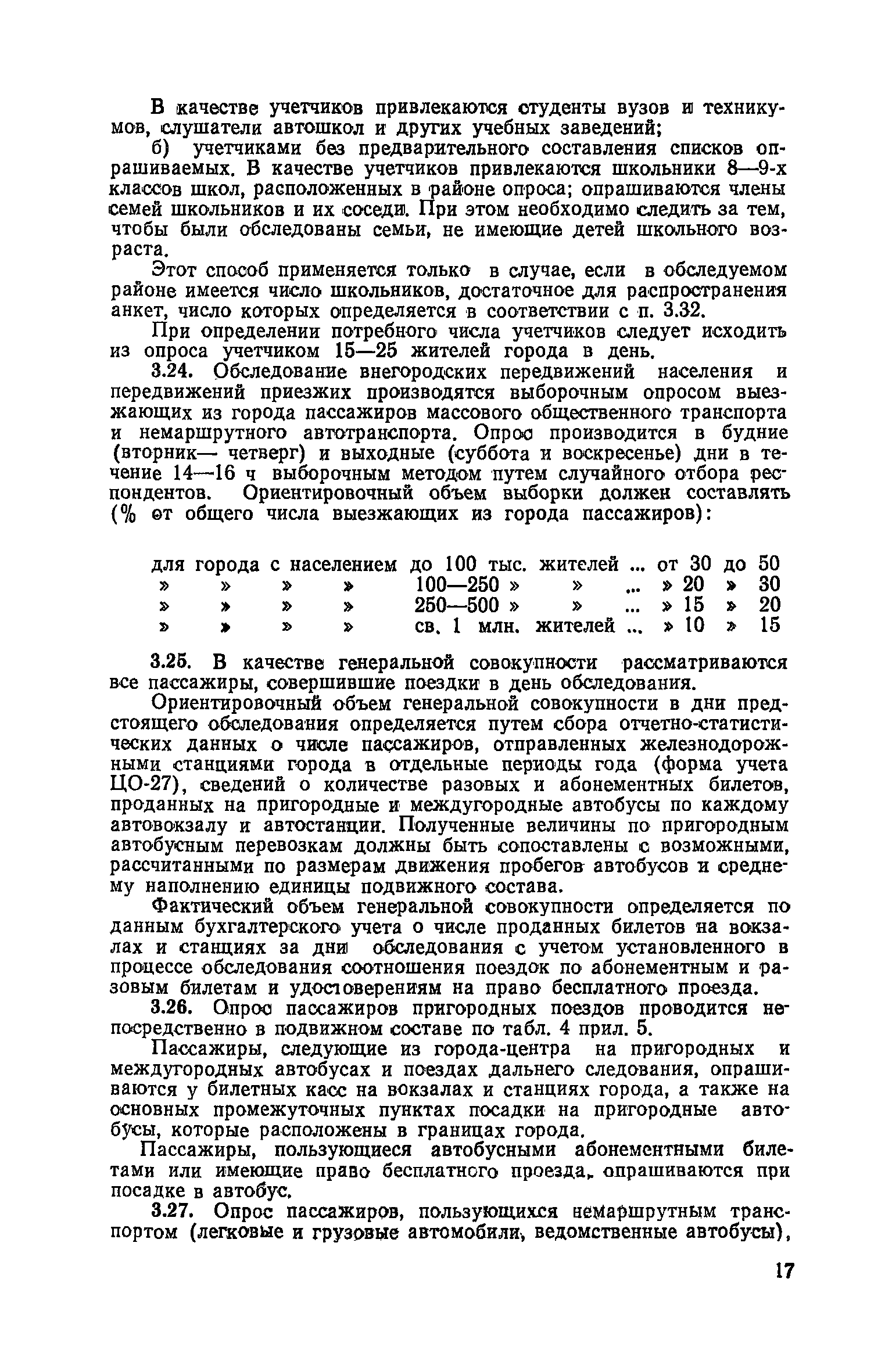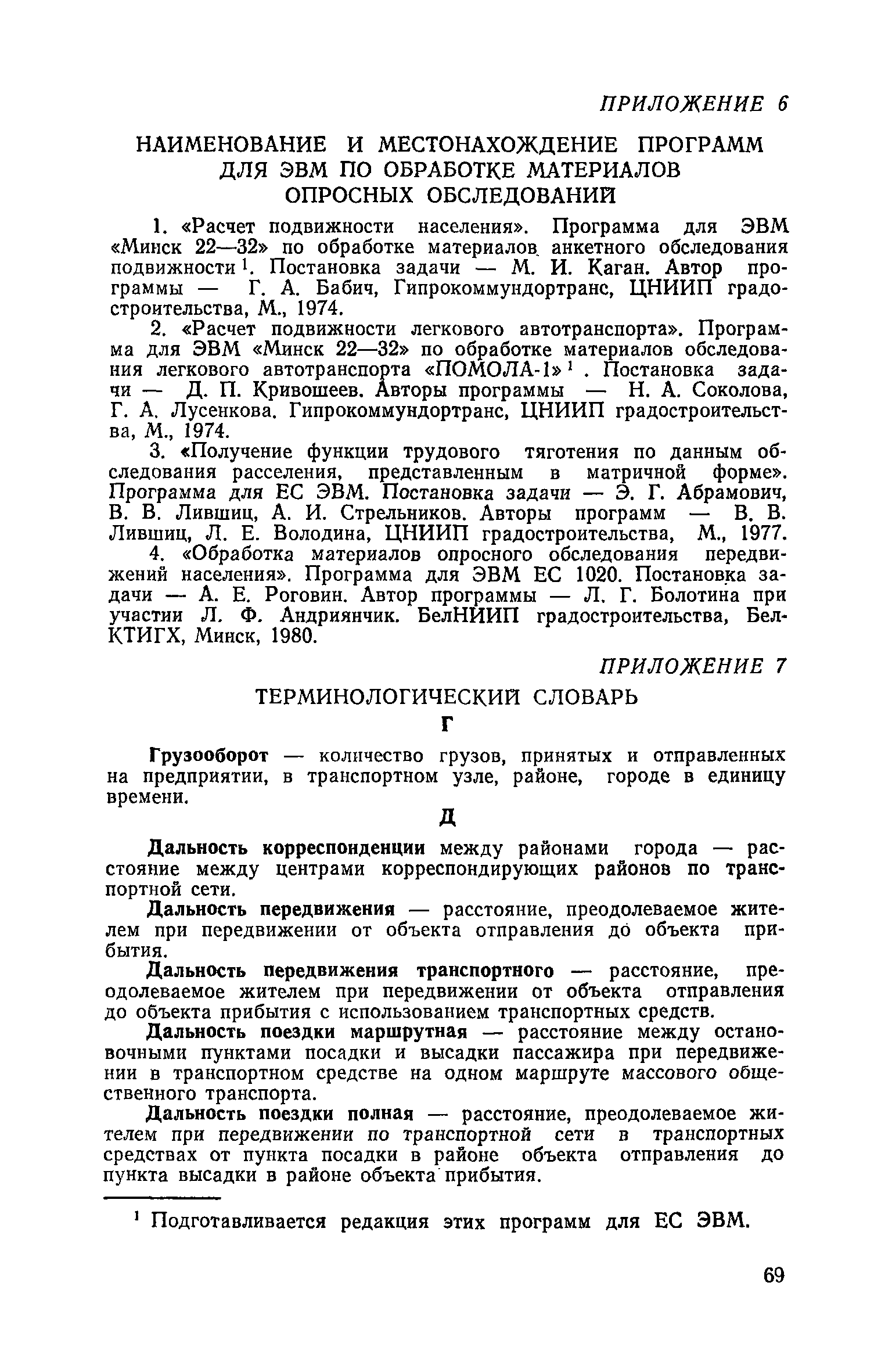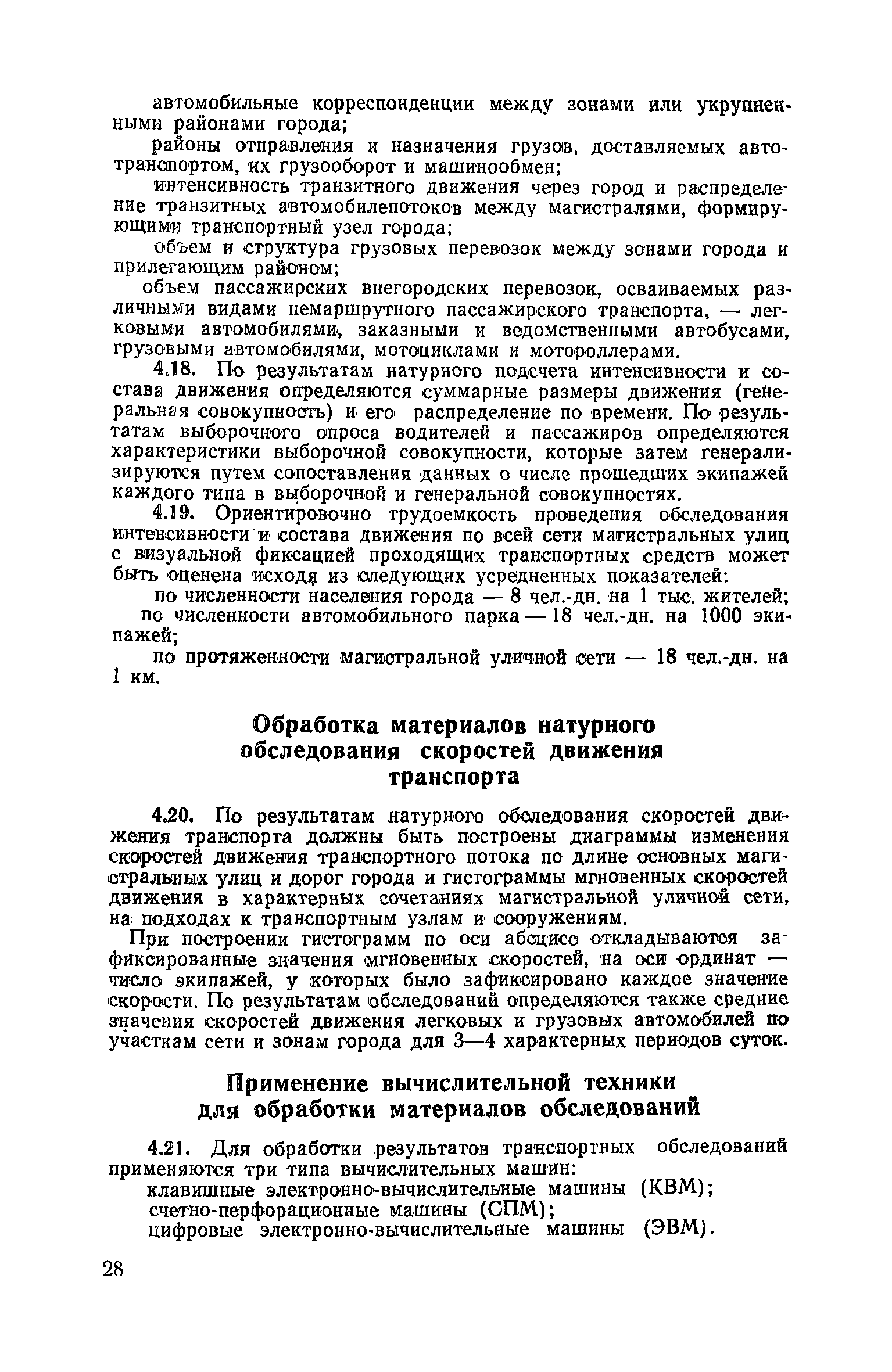 | Оглавление: | 1. Общие положения 2. Организация комплекса транспортных обследований 3. Проведение обследований и получение исходной информации Обследование путей сообщения и характеристика городского движения Обследование пассажирского транспорта Обследование трудового расселения и подвижности населения Обследование грузовых связей и условий их реализации Обследование транспортного хозяйства 4. Обработка информации н получение результатов обследований Обработка отчетно-статистических материалов Обработка результатов опросного обследования передвижений населения города Обработка результатов обследований внегородских передвижений населения и передвижений приезжих по территории города Обработка результатов опросного обследования использования легковых автомобилей Обработка результатов натурного обследования пассажиропотоков массового транспорта Обработка материалов обследований интенсивности состава движения на улицах и дорогах Обработка материалов натурного обследования скоростей движения транспорта Применение вычислительной техники для обработки материалов обследований Оформление результатов транспортных обследований Приложение 1. Рекомендуемый состав комплекса транспортных обследований по стадиям градостроительного проектирования Приложение 2. Перечень показателей, подлежащих сбору на основе отчетных данных транспортных предприятий Приложение 3. Рекомендации по кодированию опросных листов (анкет) обследования передвижений населения города Приложение 4. Рекомендации по шифровке и макеты перфокарт для обработки материалов обследований внегородских передвижений населения и передвижения приезжих по территории города Приложение 5. Опросные листы (анкеты) и бланки обследований приложение 6. Наименование и местонахождение программ для ЭВМ по обработке материалов опросных обследований Приложение 7. Терминологический словарь |