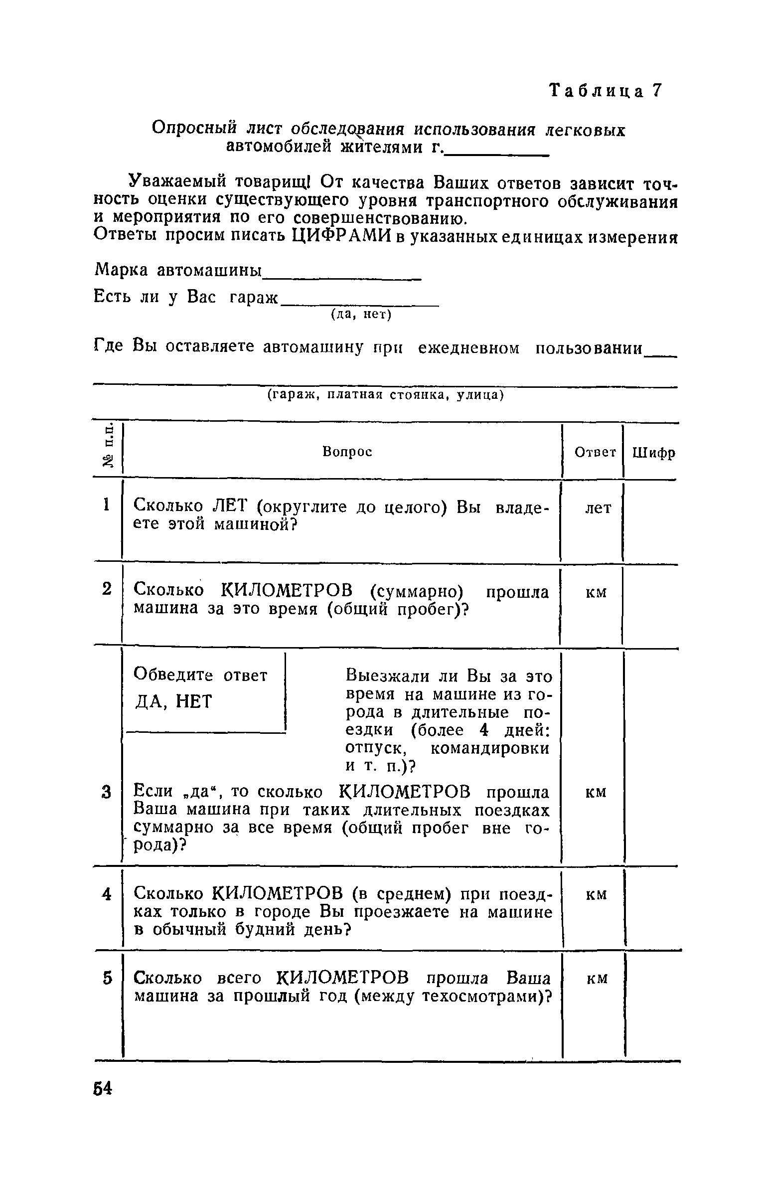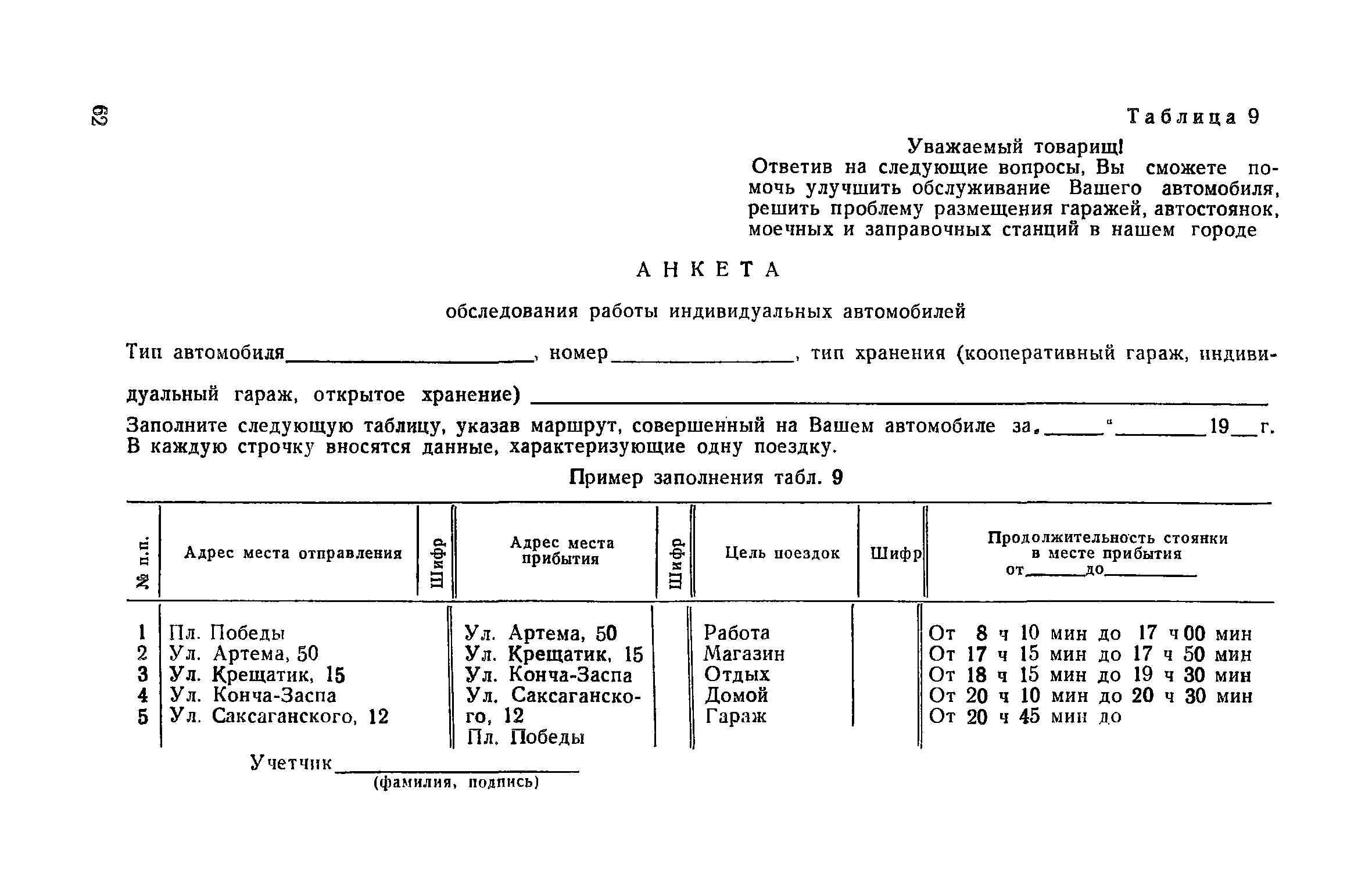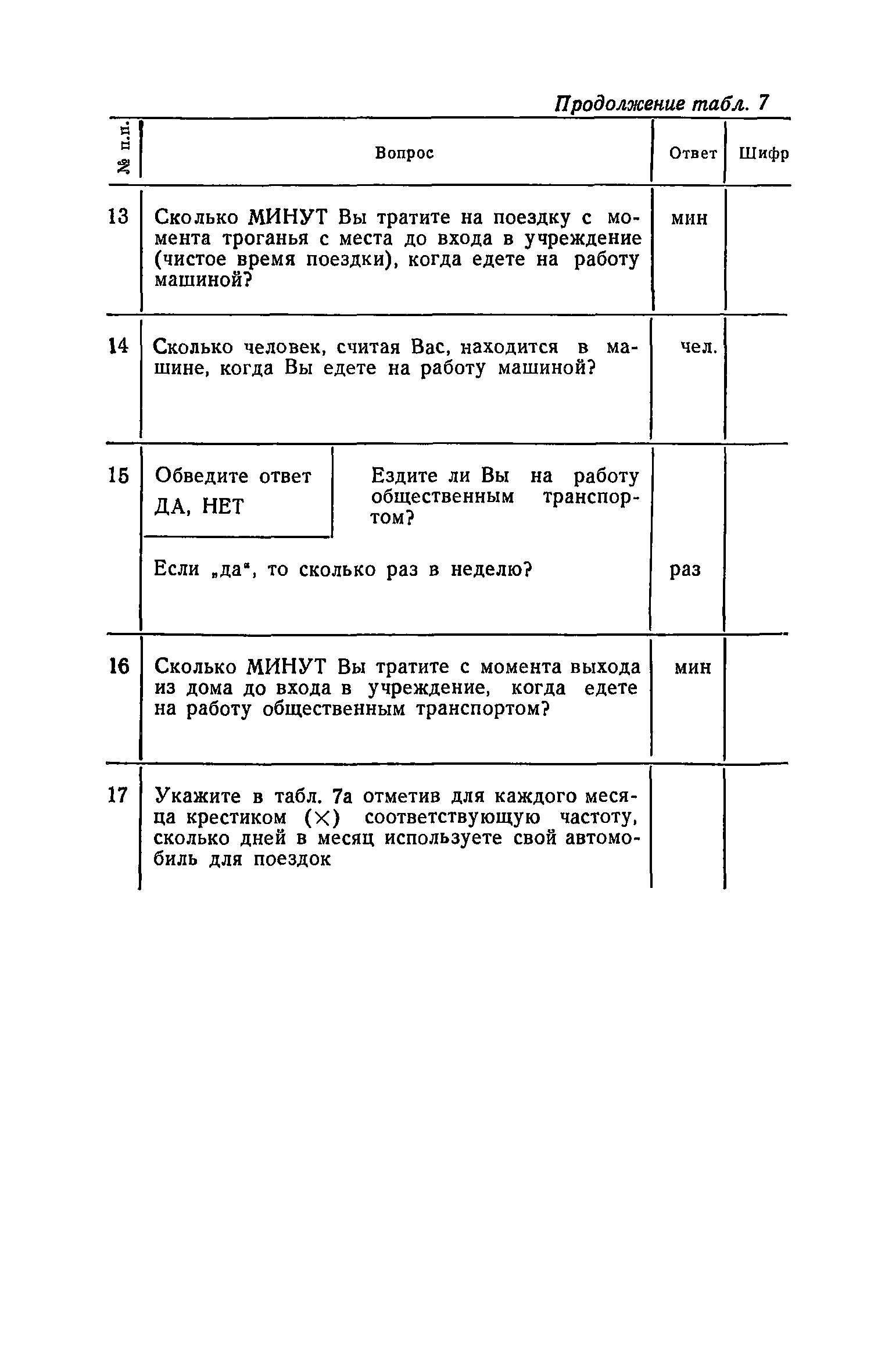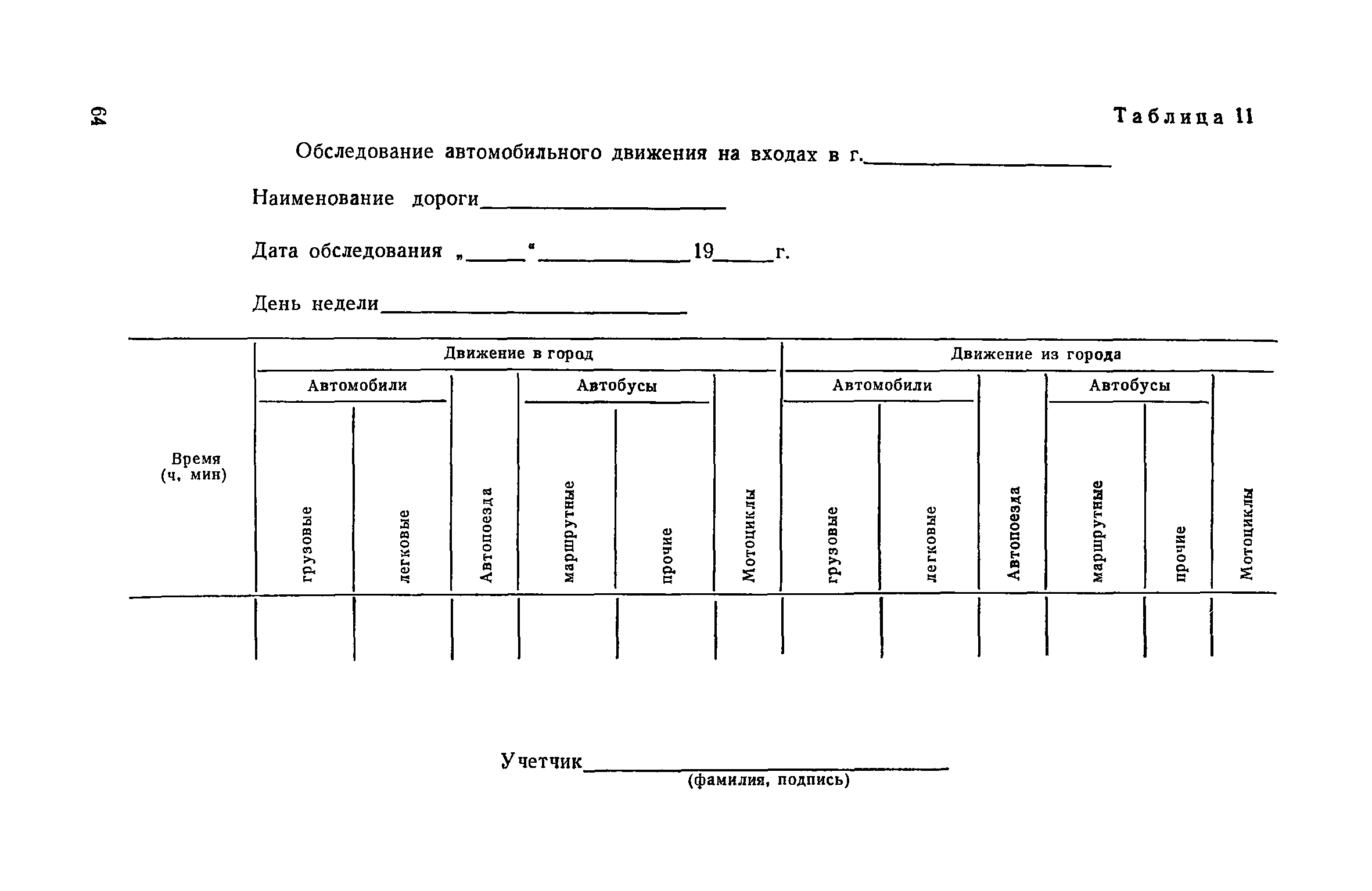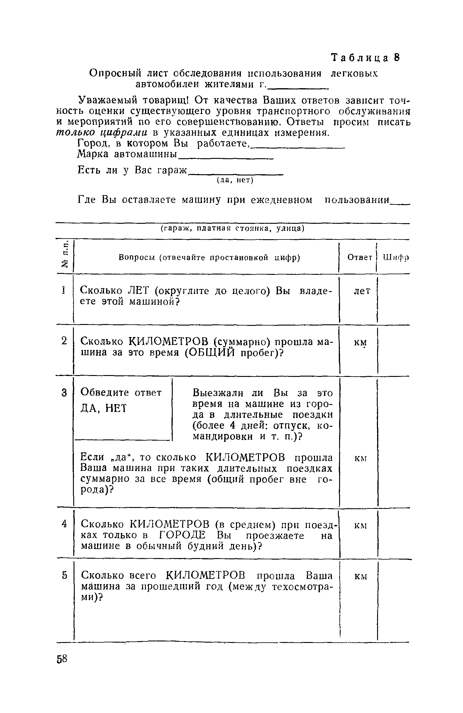 | Оглавление: | 1. Общие положения 2. Организация комплекса транспортных обследований 3. Проведение обследований и получение исходной информации Обследование путей сообщения и характеристика городского движения Обследование пассажирского транспорта Обследование трудового расселения и подвижности населения Обследование грузовых связей и условий их реализации Обследование транспортного хозяйства 4. Обработка информации н получение результатов обследований Обработка отчетно-статистических материалов Обработка результатов опросного обследования передвижений населения города Обработка результатов обследований внегородских передвижений населения и передвижений приезжих по территории города Обработка результатов опросного обследования использования легковых автомобилей Обработка результатов натурного обследования пассажиропотоков массового транспорта Обработка материалов обследований интенсивности состава движения на улицах и дорогах Обработка материалов натурного обследования скоростей движения транспорта Применение вычислительной техники для обработки материалов обследований Оформление результатов транспортных обследований Приложение 1. Рекомендуемый состав комплекса транспортных обследований по стадиям градостроительного проектирования Приложение 2. Перечень показателей, подлежащих сбору на основе отчетных данных транспортных предприятий Приложение 3. Рекомендации по кодированию опросных листов (анкет) обследования передвижений населения города Приложение 4. Рекомендации по шифровке и макеты перфокарт для обработки материалов обследований внегородских передвижений населения и передвижения приезжих по территории города Приложение 5. Опросные листы (анкеты) и бланки обследований приложение 6. Наименование и местонахождение программ для ЭВМ по обработке материалов опросных обследований Приложение 7. Терминологический словарь |