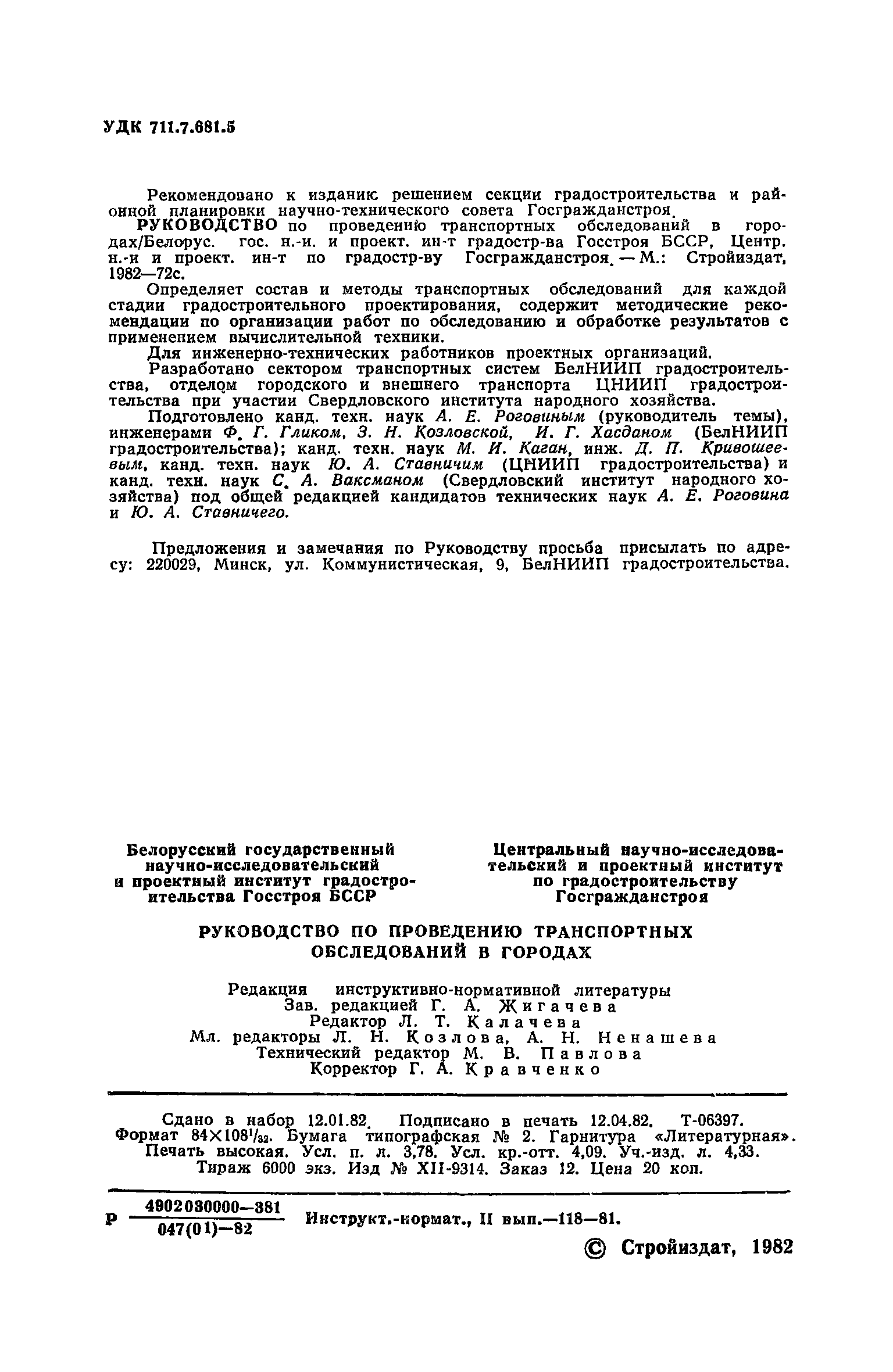 | Разработан: | ЦНИИП градостроительства БелНИИП градостроительства Госстроя БССР