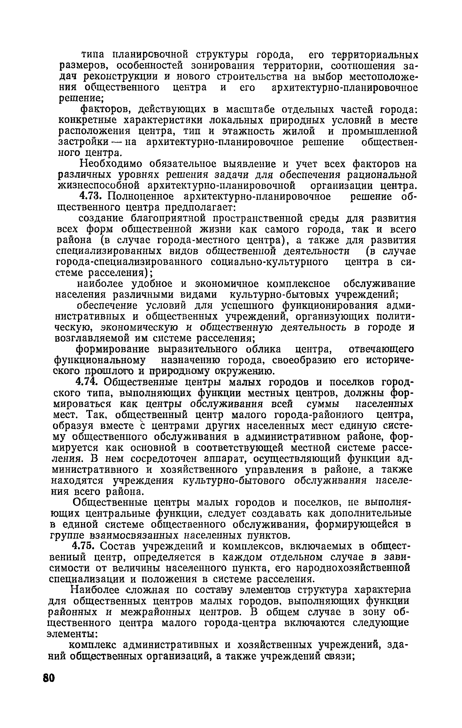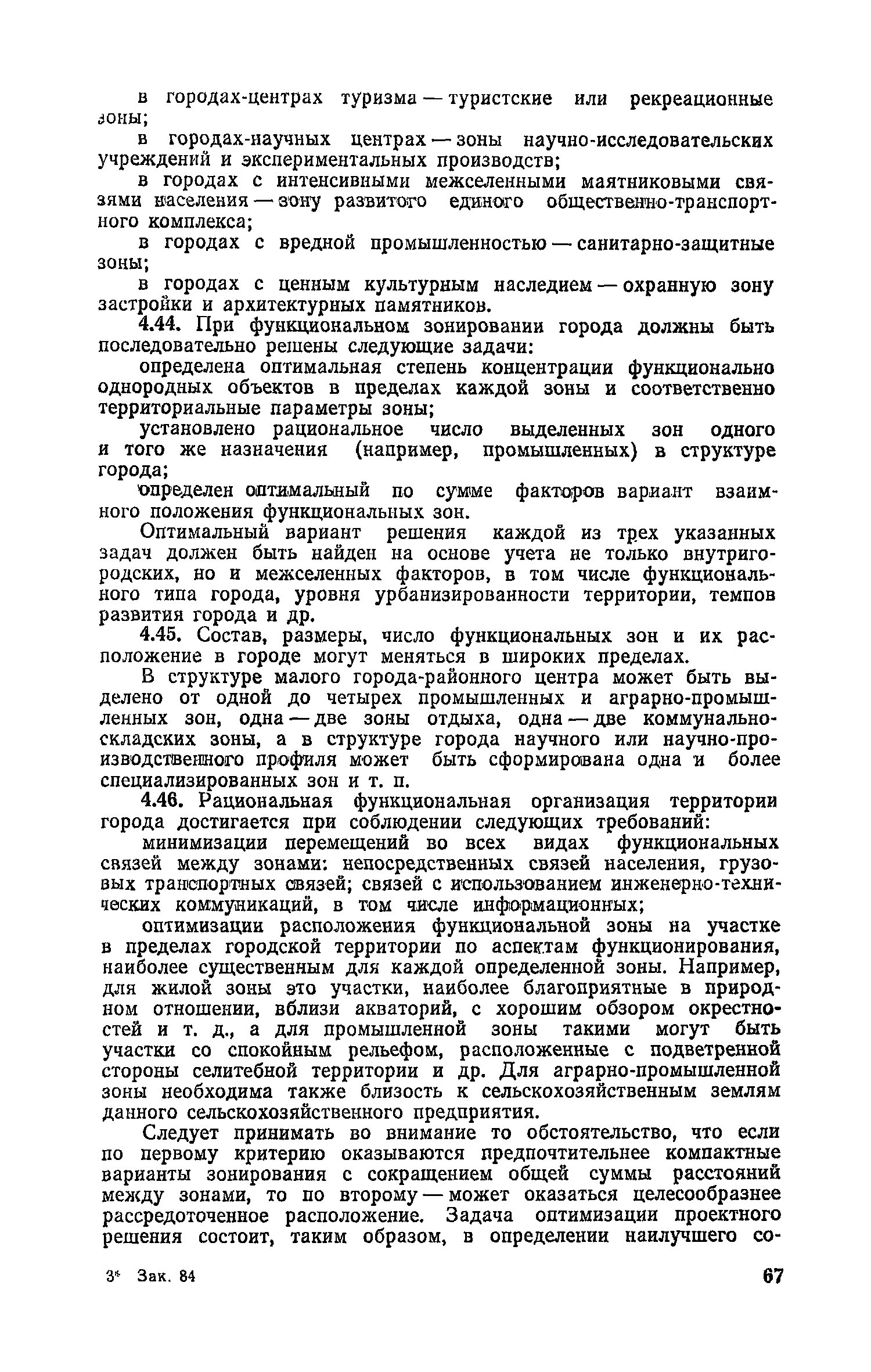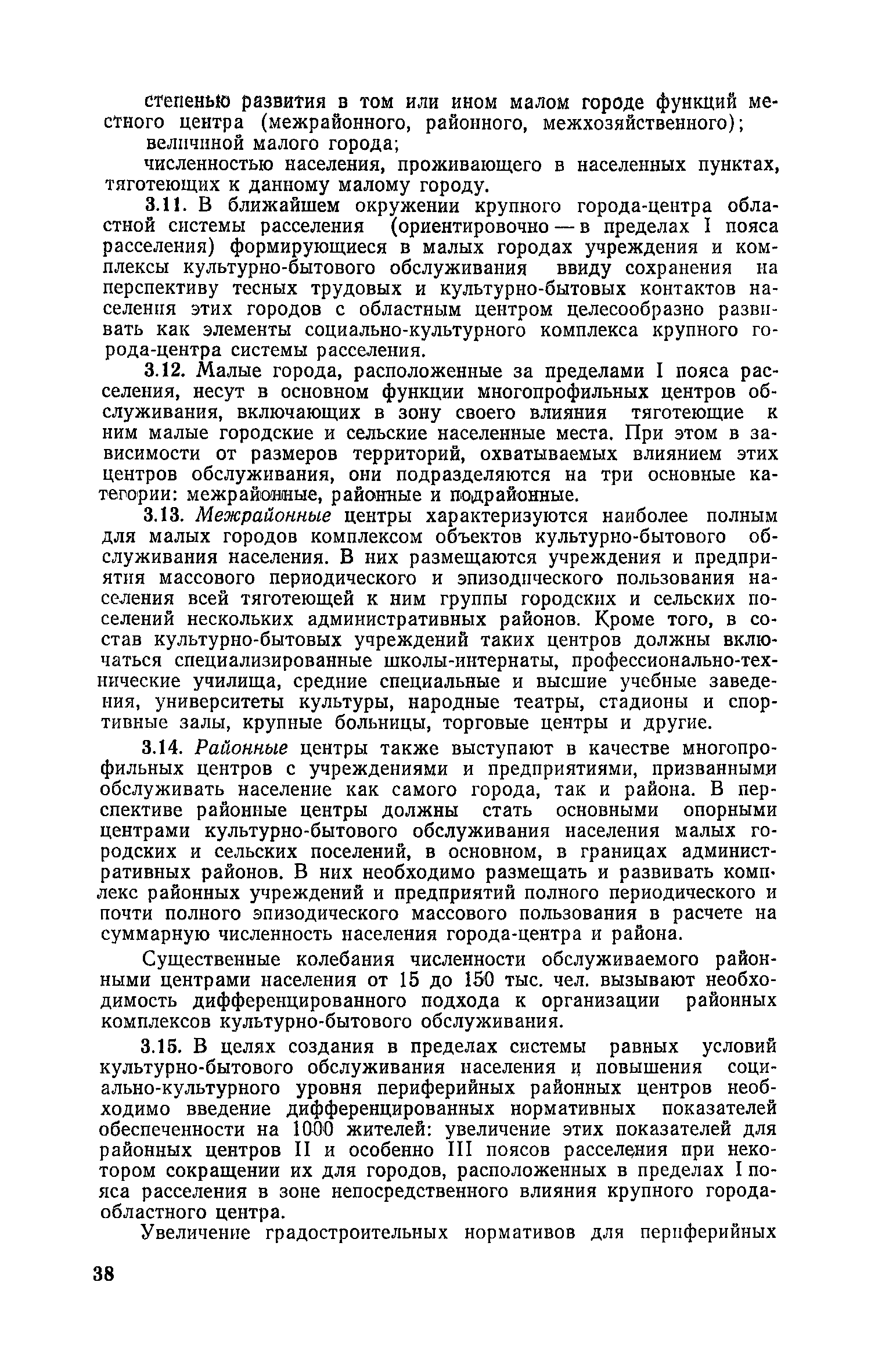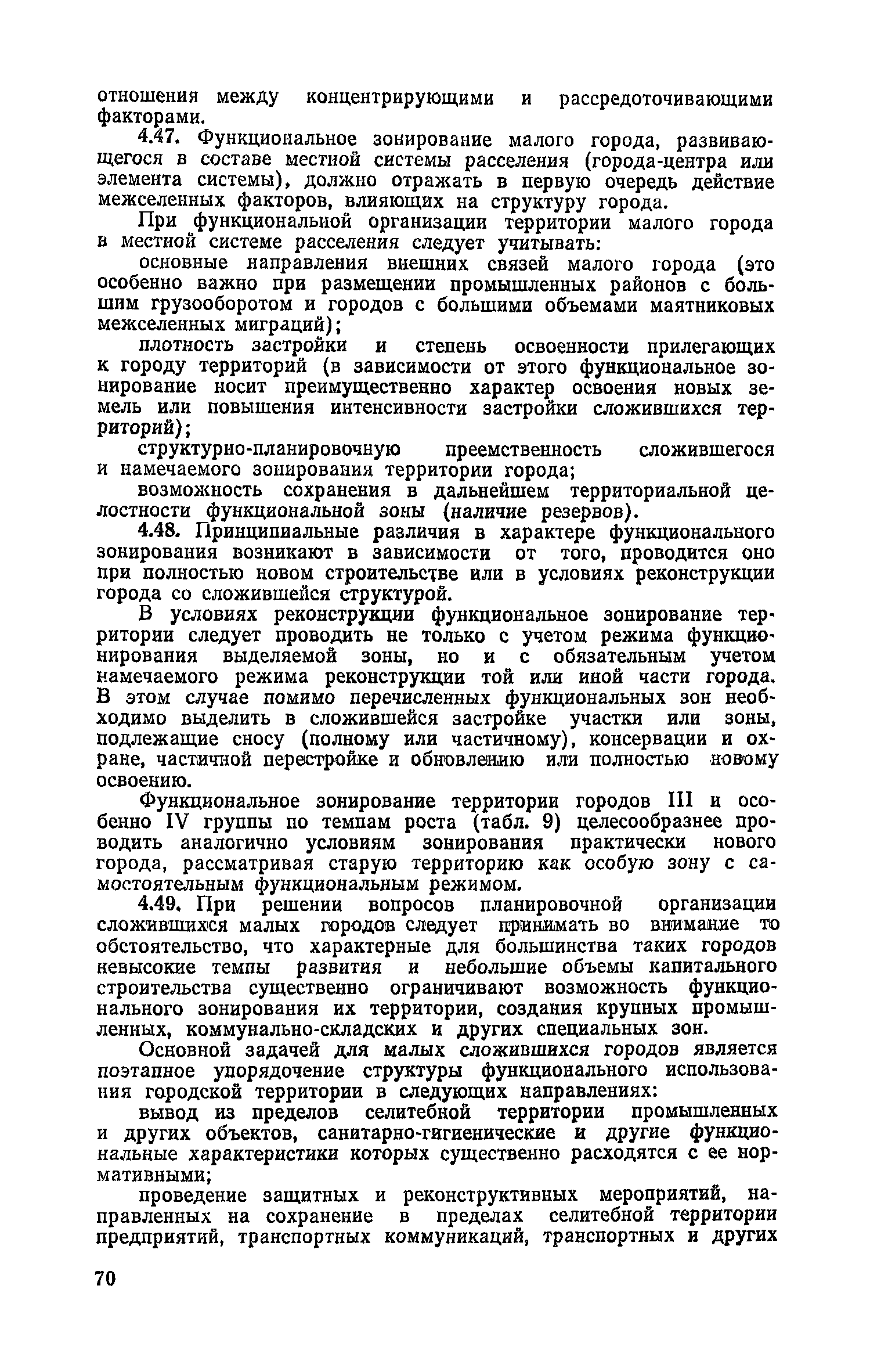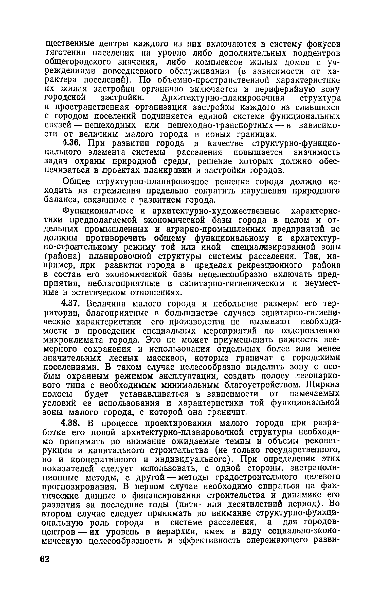 Руководство по проектированию малых городов в системах расселения| Статус: | справочные материалы, мп, тпр | | Название рус.: | Руководство по проектированию малых городов в системах расселения | | Дата добавления в базу: | 01.09.2013 | | Дата актуализации: | 01.01.2021 | | Область применения: | В Руководстве изложен подход к проектированию населенных мест и условиях формирования систем расселения различных иерархических уровней с учетом положении, функциональной роли и перспектив развития малых городов в этих системах. Рассмотрены вопросы формирования архитектурно-планировочной структуры малых городов под влиянием комплекса межселенных связей (производственных, трудовых, культурно-бытовых, территориально-планировочных и др.), а также особенности организации транспорта, систем общественного обслуживания и инженерного оборудования малых городов как структурно-функциональных элементов систем расселения. Руководство предназначено для проектировщиков, градостроителей, составляющих проекты планировки и застройки городов, схемы и проекты районной планировки, а также для работников местных архитектурно-планировочных и плановых органов. | | Оглавление: | Предисловие 1. Основные положения по развитию малых городов в системах расселения Задачи и условия формирования малых городов как элементов систем расселения Межселенные связи и организация транспорта малых городов 2. Определение перспектив развития малых городов Формирование экономической базы Расчет численности населения 3. Формирование систем культурно-бытового обслуживания населения в малых городах Общие положения Учреждения и комплексы культурно-бытового обслуживания Методика расчета учреждений культурно-бытового обслуживания 4. Архитектурно-планировочная организация малых городов Общие положения Зонирование территории города Жилая застройка Общественный центр Места приложения труда Формирование внешней зоны 5. Инженерное оборудование малых городов Общие положения Водоснабжение и водоотведение городов Энергоснабжение Приложение 1. Местные сырьевые и трудовые ресурсы (формы) Приложение 2. Перечень промышленных предприятий, размещение которых возможно в малых городах Приложение 3. Градостроительная характеристика предприятий аграрно-промышленного комплекса, размещаемых в малых городах Приложение 4. Основной состав учреждений и объектов общегородских центров малых городов Приложение 5. Ориентировочные перспективные скорости сообщения и транспортная доступность города-центра областной системы расселения Приложение 6. Показатели типовых проектов пассажирских станций | | Разработан: | ЦНИИП градостроительства