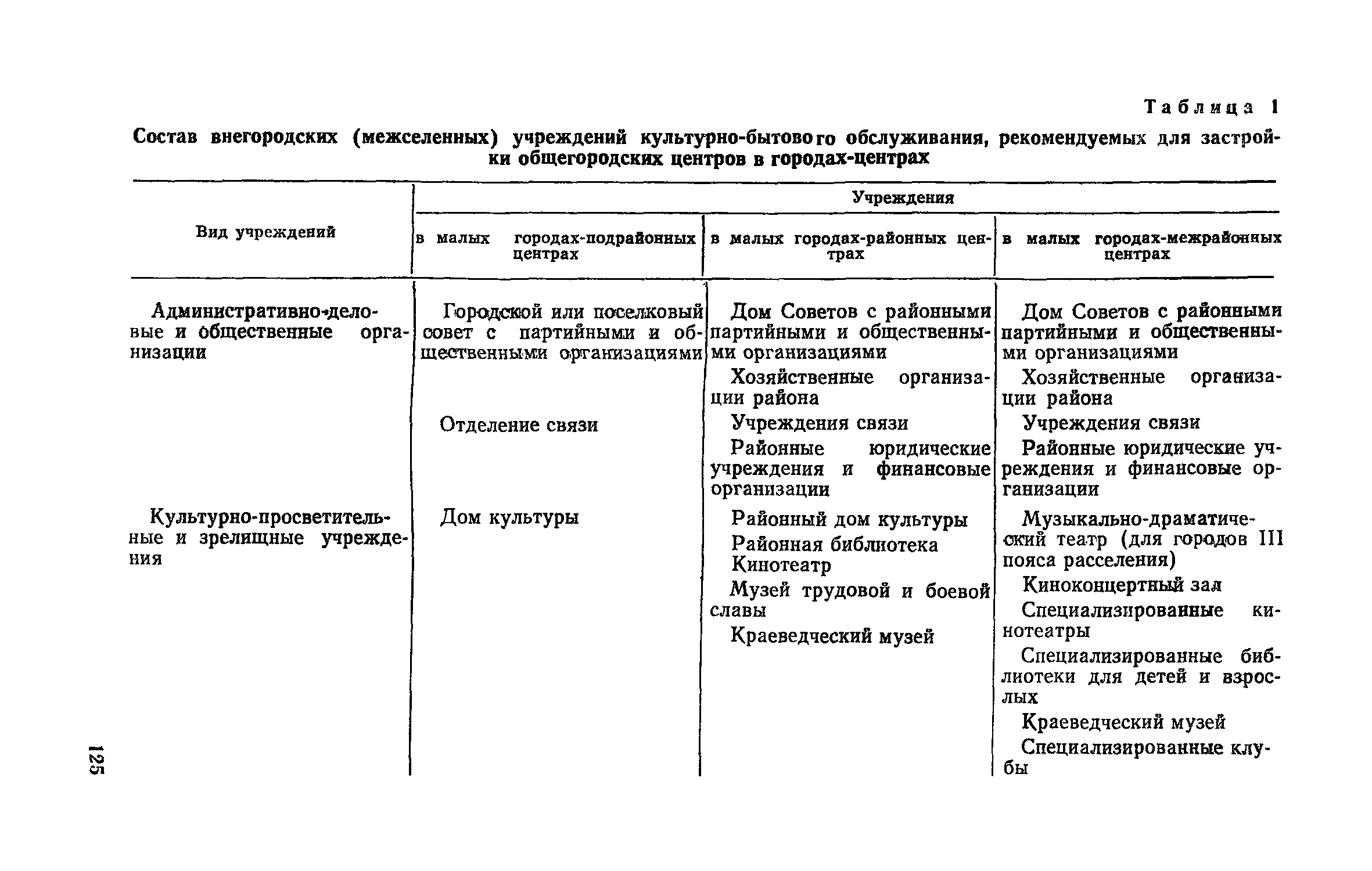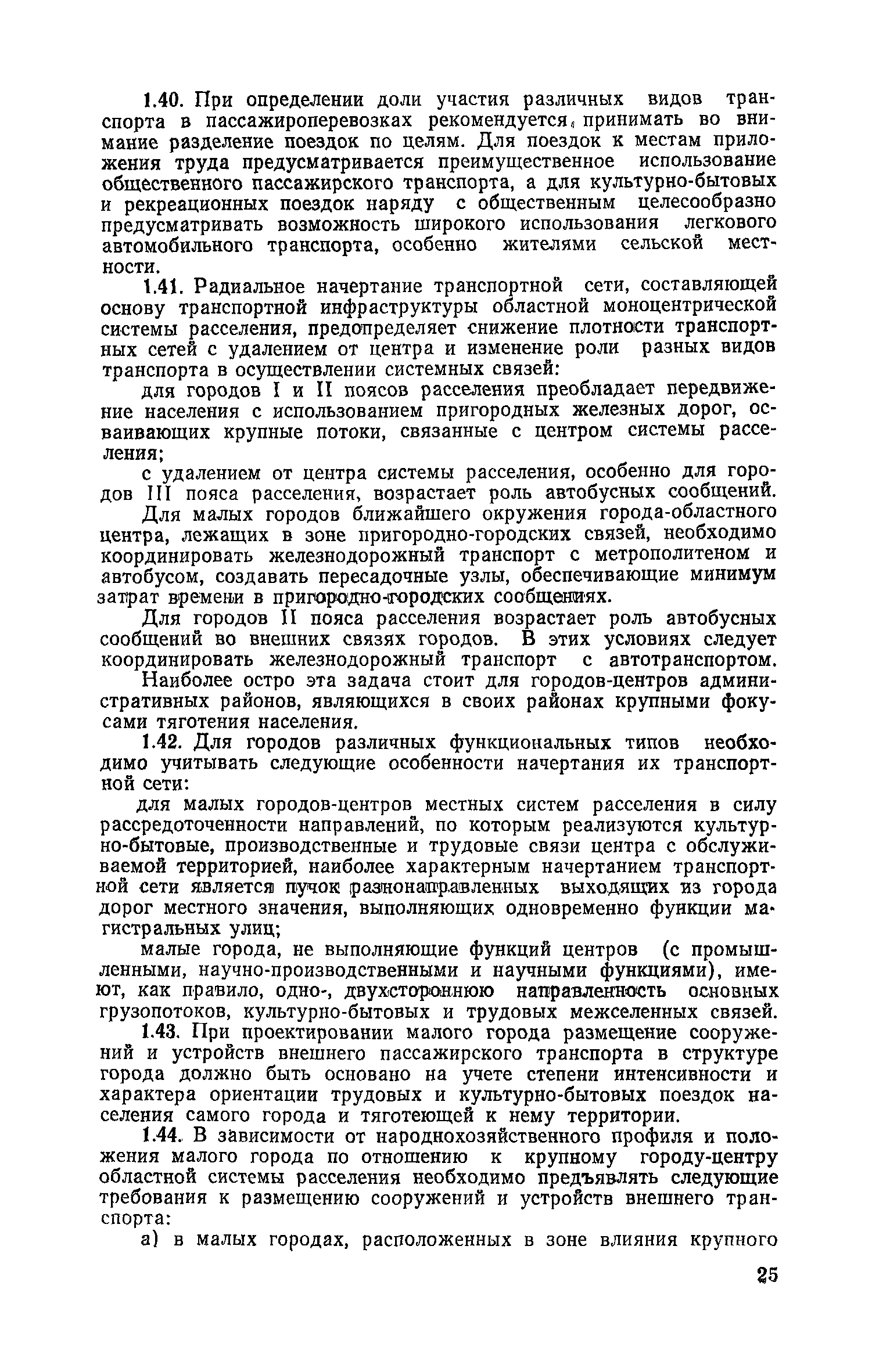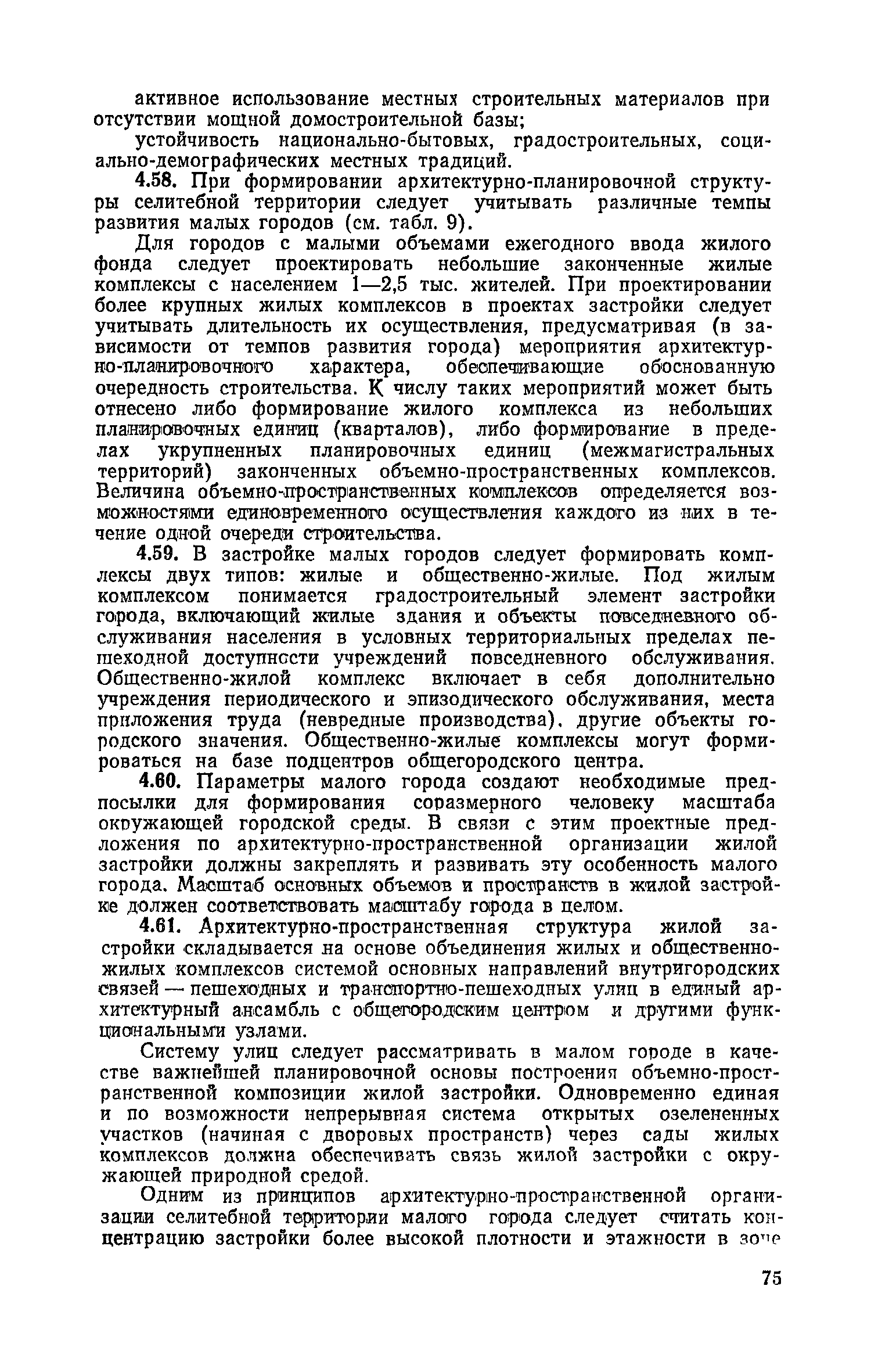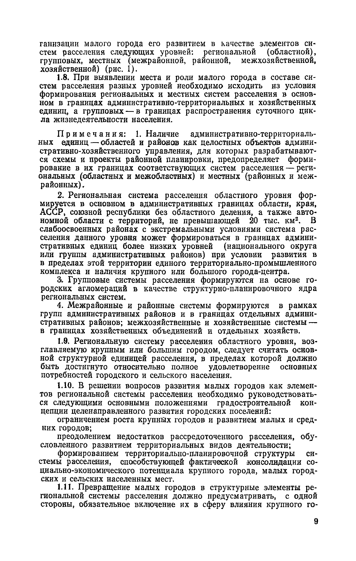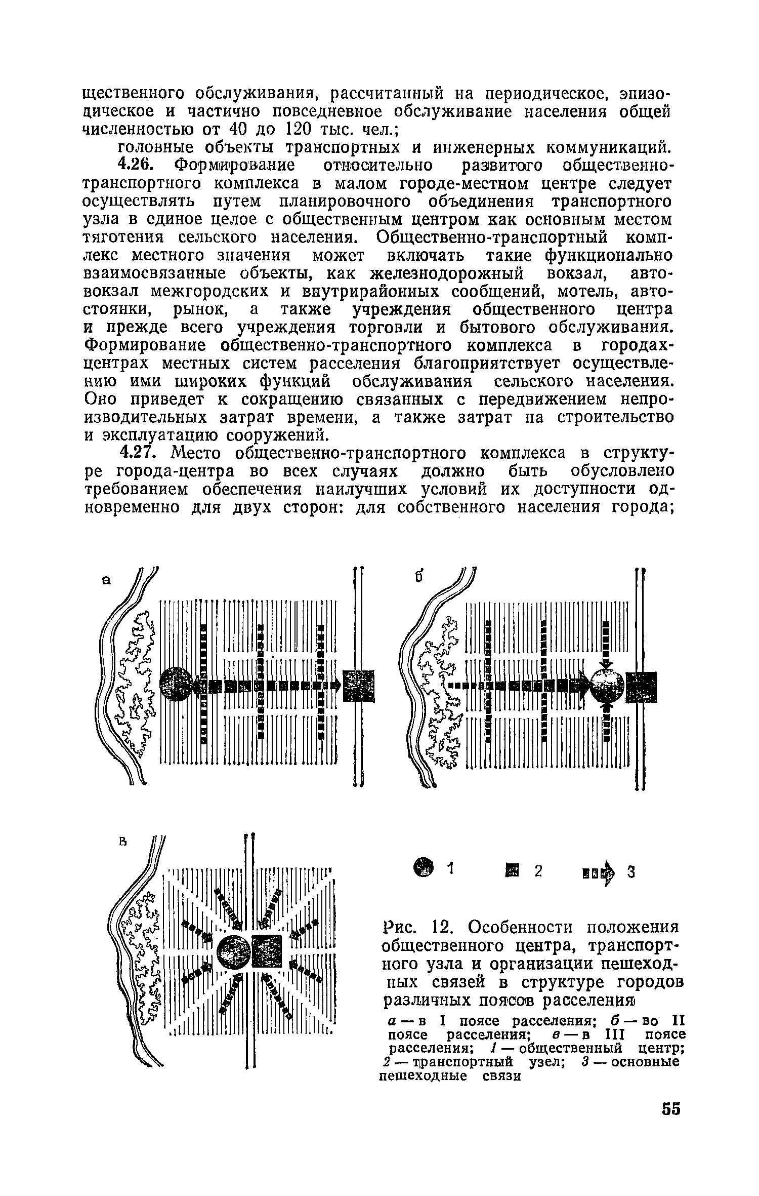Руководство по проектированию малых городов в системах расселения| Статус: | справочные материалы, мп, тпр | | Название рус.: | Руководство по проектированию малых городов в системах расселения | | Дата добавления в базу: | 01.09.2013 | | Дата актуализации: | 01.01.2021 | | Область применения: | В Руководстве изложен подход к проектированию населенных мест и условиях формирования систем расселения различных иерархических уровней с учетом положении, функциональной роли и перспектив развития малых городов в этих системах. Рассмотрены вопросы формирования архитектурно-планировочной структуры малых городов под влиянием комплекса межселенных связей (производственных, трудовых, культурно-бытовых, территориально-планировочных и др.), а также особенности организации транспорта, систем общественного обслуживания и инженерного оборудования малых городов как структурно-функциональных элементов систем расселения. Руководство предназначено для проектировщиков, градостроителей, составляющих проекты планировки и застройки городов, схемы и проекты районной планировки, а также для работников местных архитектурно-планировочных и плановых органов. | | Оглавление: | Предисловие 1. Основные положения по развитию малых городов в системах расселения Задачи и условия формирования малых городов как элементов систем расселения Межселенные связи и организация транспорта малых городов 2. Определение перспектив развития малых городов Формирование экономической базы Расчет численности населения 3. Формирование систем культурно-бытового обслуживания населения в малых городах Общие положения Учреждения и комплексы культурно-бытового обслуживания Методика расчета учреждений культурно-бытового обслуживания 4. Архитектурно-планировочная организация малых городов Общие положения Зонирование территории города Жилая застройка Общественный центр Места приложения труда Формирование внешней зоны 5. Инженерное оборудование малых городов Общие положения Водоснабжение и водоотведение городов Энергоснабжение Приложение 1. Местные сырьевые и трудовые ресурсы (формы) Приложение 2. Перечень промышленных предприятий, размещение которых возможно в малых городах Приложение 3. Градостроительная характеристика предприятий аграрно-промышленного комплекса, размещаемых в малых городах Приложение 4. Основной состав учреждений и объектов общегородских центров малых городов Приложение 5. Ориентировочные перспективные скорости сообщения и транспортная доступность города-центра областной системы расселения Приложение 6. Показатели типовых проектов пассажирских станций | | Разработан: | ЦНИИП градостроительства