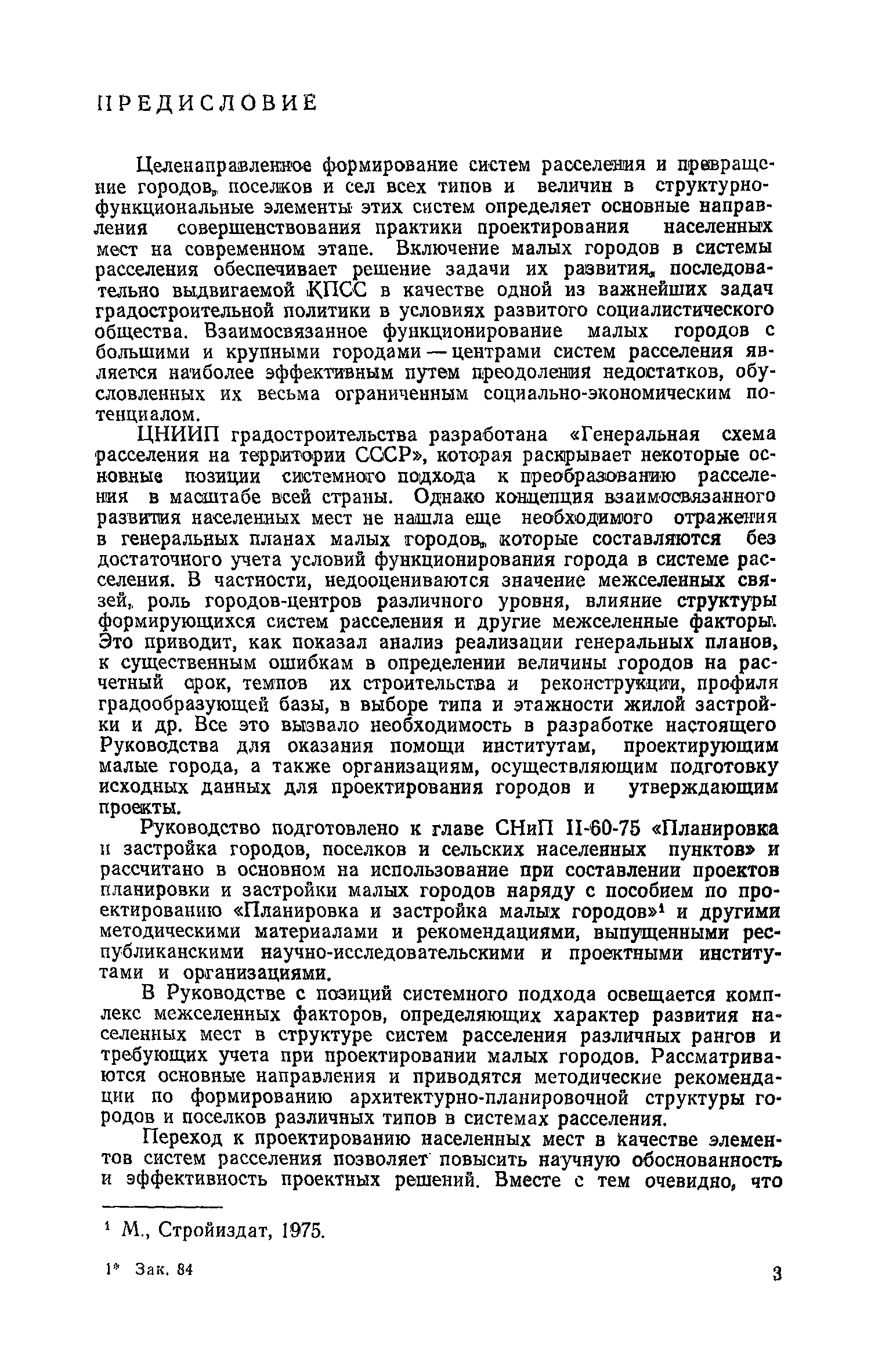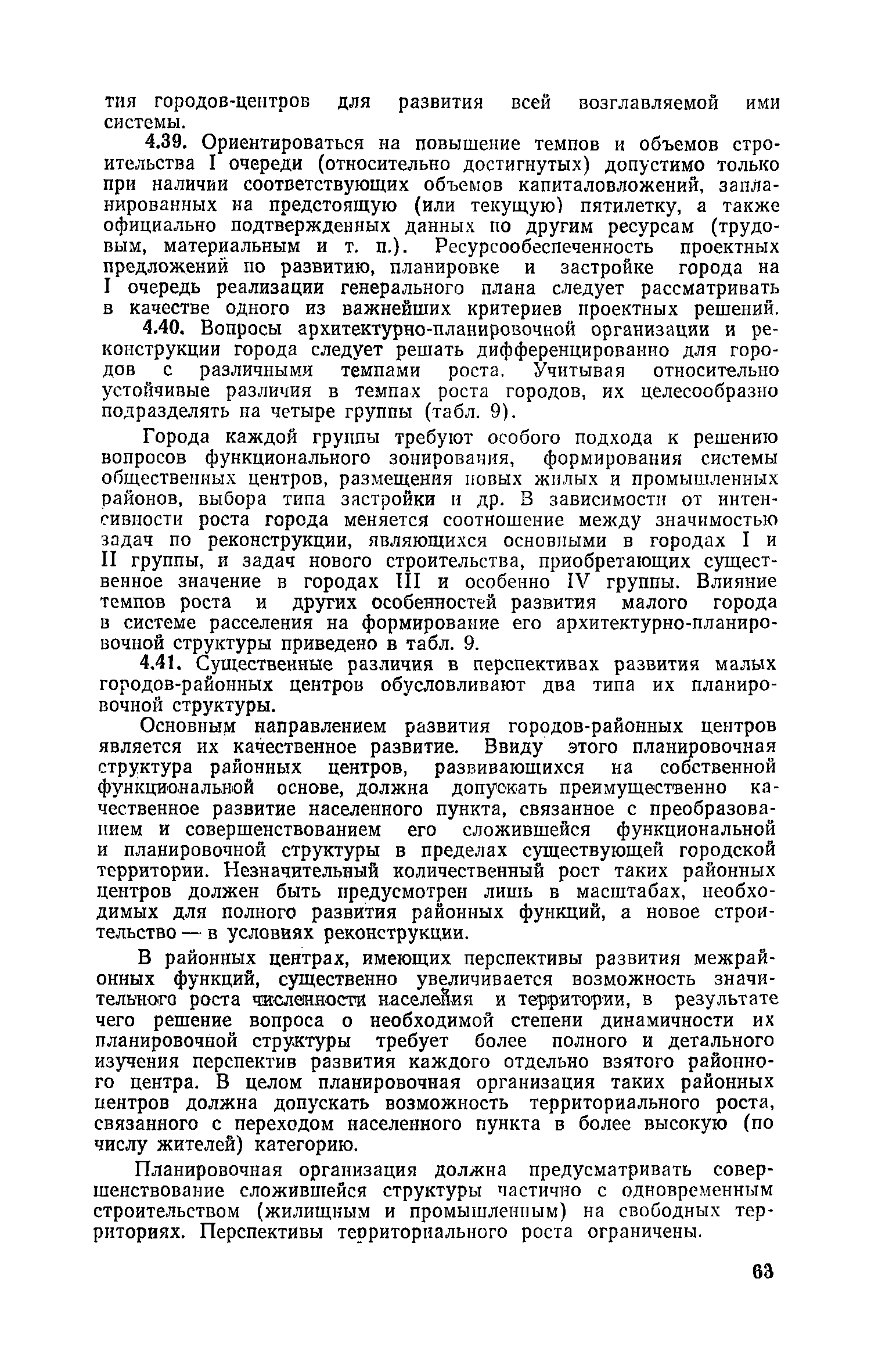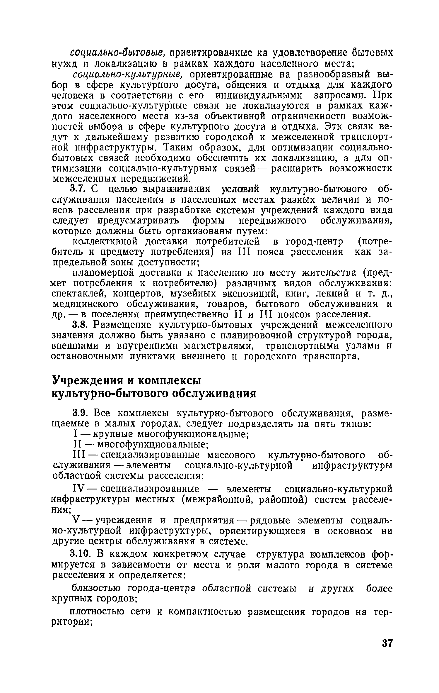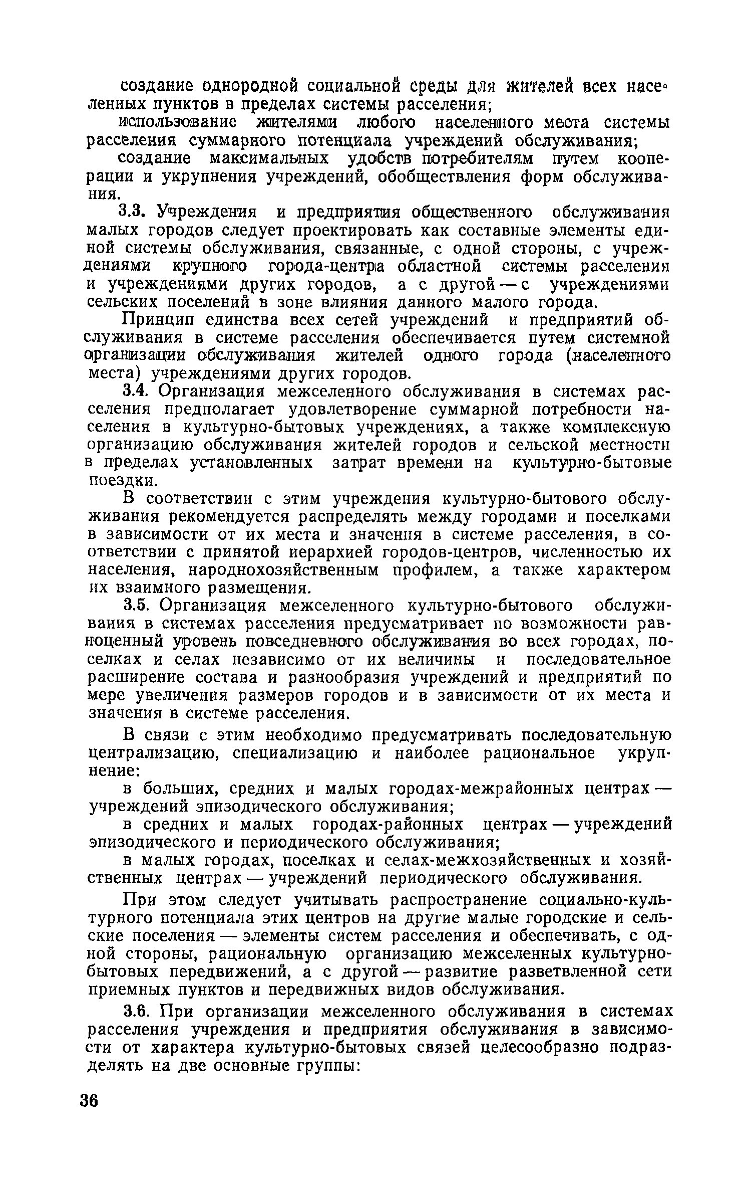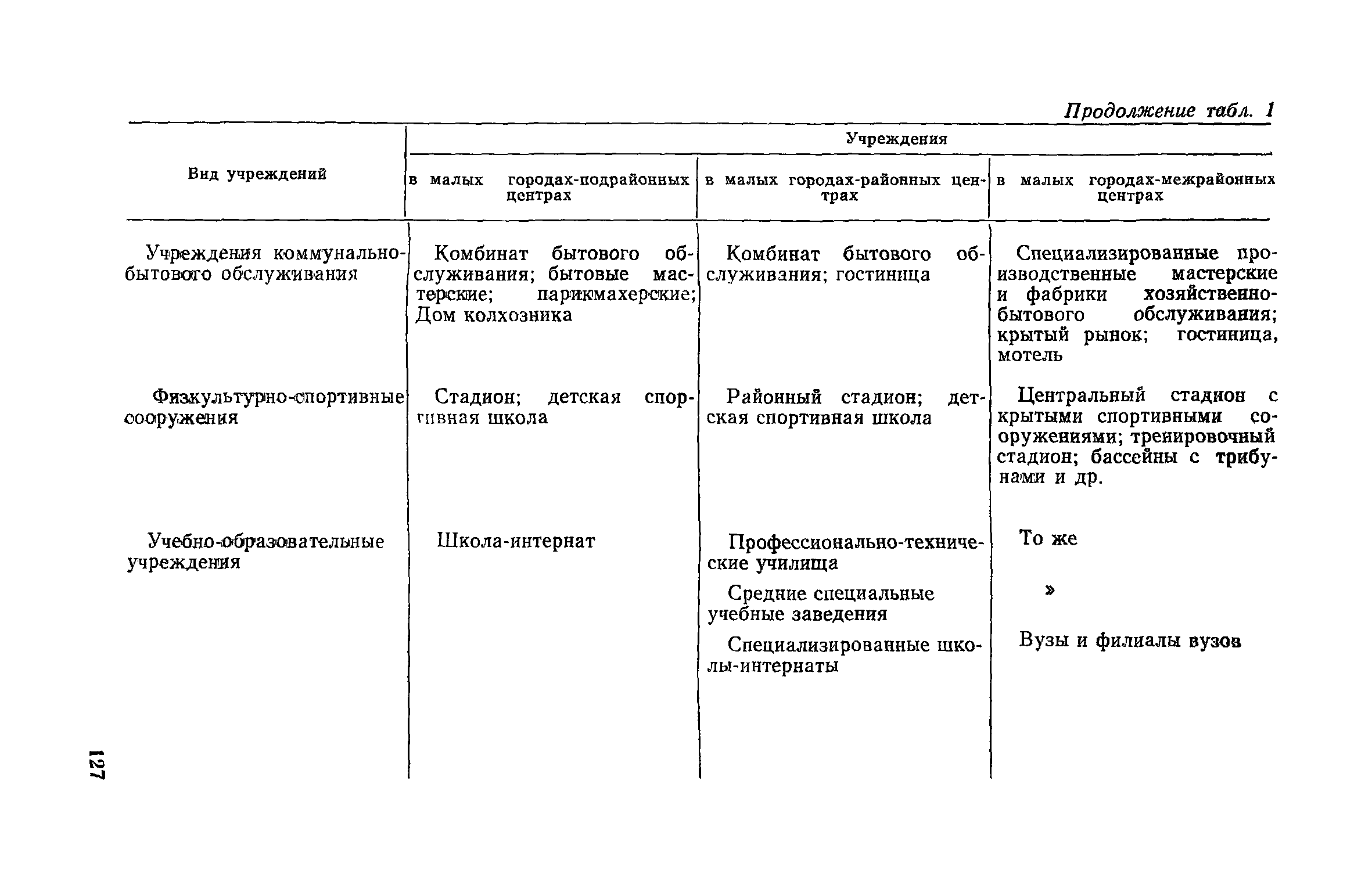 Руководство по проектированию малых городов в системах расселения| Статус: | справочные материалы, мп, тпр | | Название рус.: | Руководство по проектированию малых городов в системах расселения | | Дата добавления в базу: | 01.09.2013 | | Дата актуализации: | 01.01.2021 | | Область применения: | В Руководстве изложен подход к проектированию населенных мест и условиях формирования систем расселения различных иерархических уровней с учетом положении, функциональной роли и перспектив развития малых городов в этих системах. Рассмотрены вопросы формирования архитектурно-планировочной структуры малых городов под влиянием комплекса межселенных связей (производственных, трудовых, культурно-бытовых, территориально-планировочных и др.), а также особенности организации транспорта, систем общественного обслуживания и инженерного оборудования малых городов как структурно-функциональных элементов систем расселения. Руководство предназначено для проектировщиков, градостроителей, составляющих проекты планировки и застройки городов, схемы и проекты районной планировки, а также для работников местных архитектурно-планировочных и плановых органов. | | Оглавление: | Предисловие 1. Основные положения по развитию малых городов в системах расселения Задачи и условия формирования малых городов как элементов систем расселения Межселенные связи и организация транспорта малых городов 2. Определение перспектив развития малых городов Формирование экономической базы Расчет численности населения 3. Формирование систем культурно-бытового обслуживания населения в малых городах Общие положения Учреждения и комплексы культурно-бытового обслуживания Методика расчета учреждений культурно-бытового обслуживания 4. Архитектурно-планировочная организация малых городов Общие положения Зонирование территории города Жилая застройка Общественный центр Места приложения труда Формирование внешней зоны 5. Инженерное оборудование малых городов Общие положения Водоснабжение и водоотведение городов Энергоснабжение Приложение 1. Местные сырьевые и трудовые ресурсы (формы) Приложение 2. Перечень промышленных предприятий, размещение которых возможно в малых городах Приложение 3. Градостроительная характеристика предприятий аграрно-промышленного комплекса, размещаемых в малых городах Приложение 4. Основной состав учреждений и объектов общегородских центров малых городов Приложение 5. Ориентировочные перспективные скорости сообщения и транспортная доступность города-центра областной системы расселения Приложение 6. Показатели типовых проектов пассажирских станций | | Разработан: | ЦНИИП градостроительства