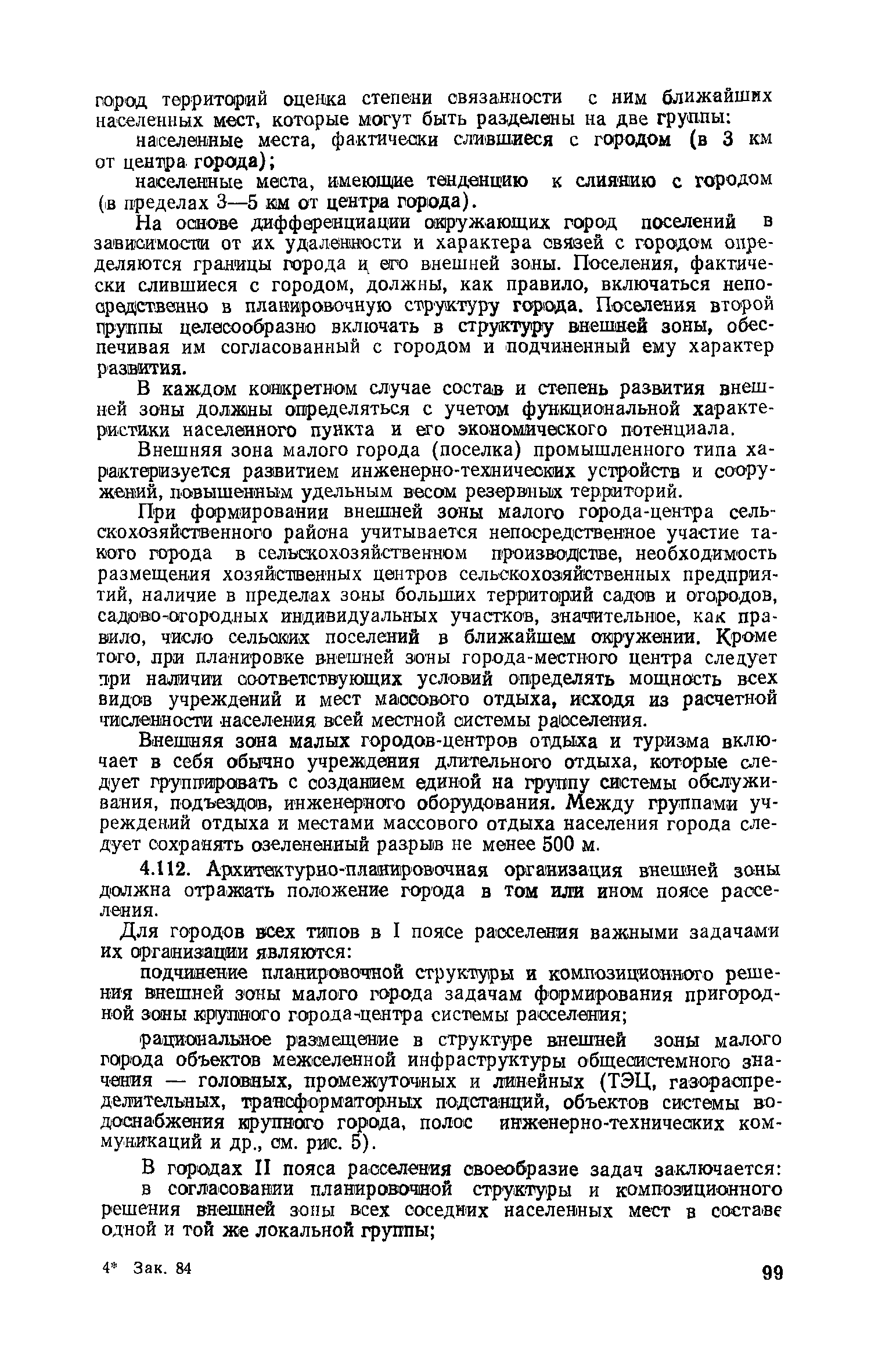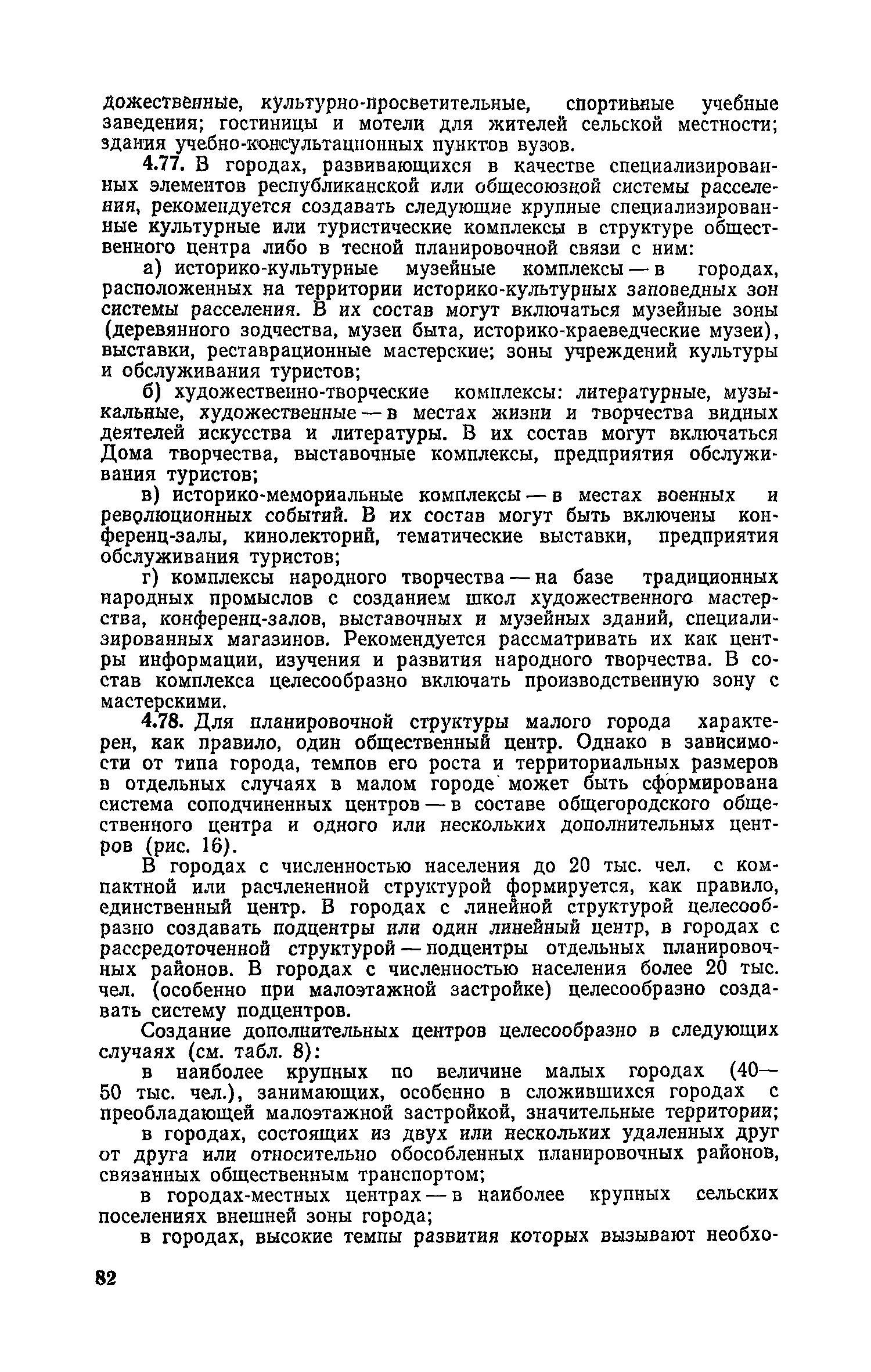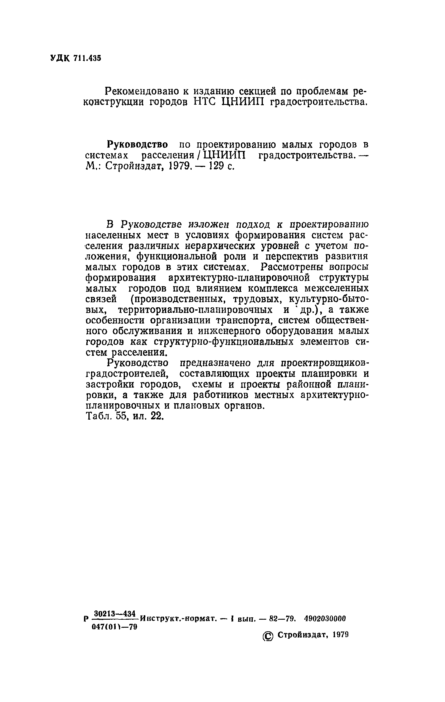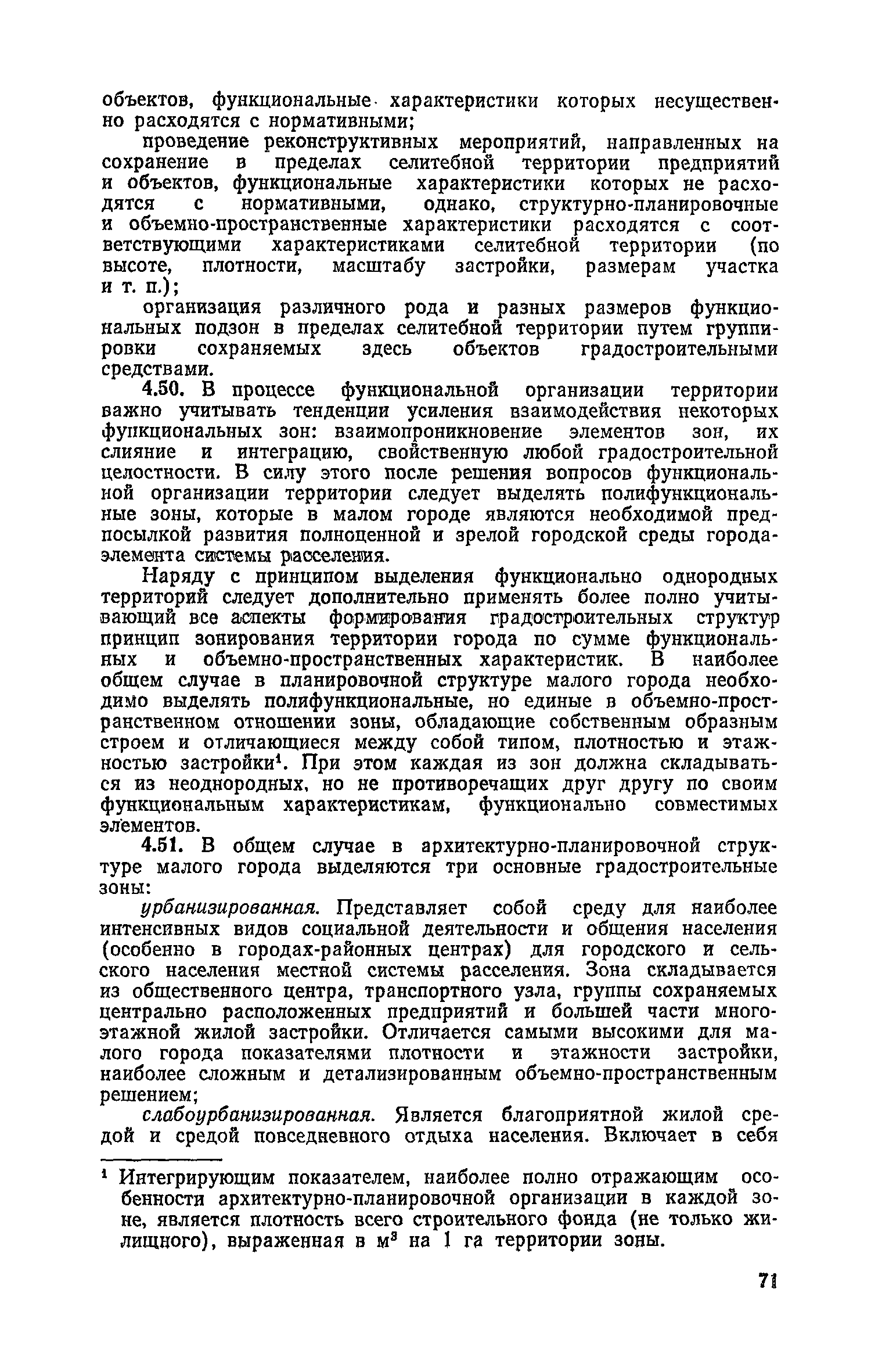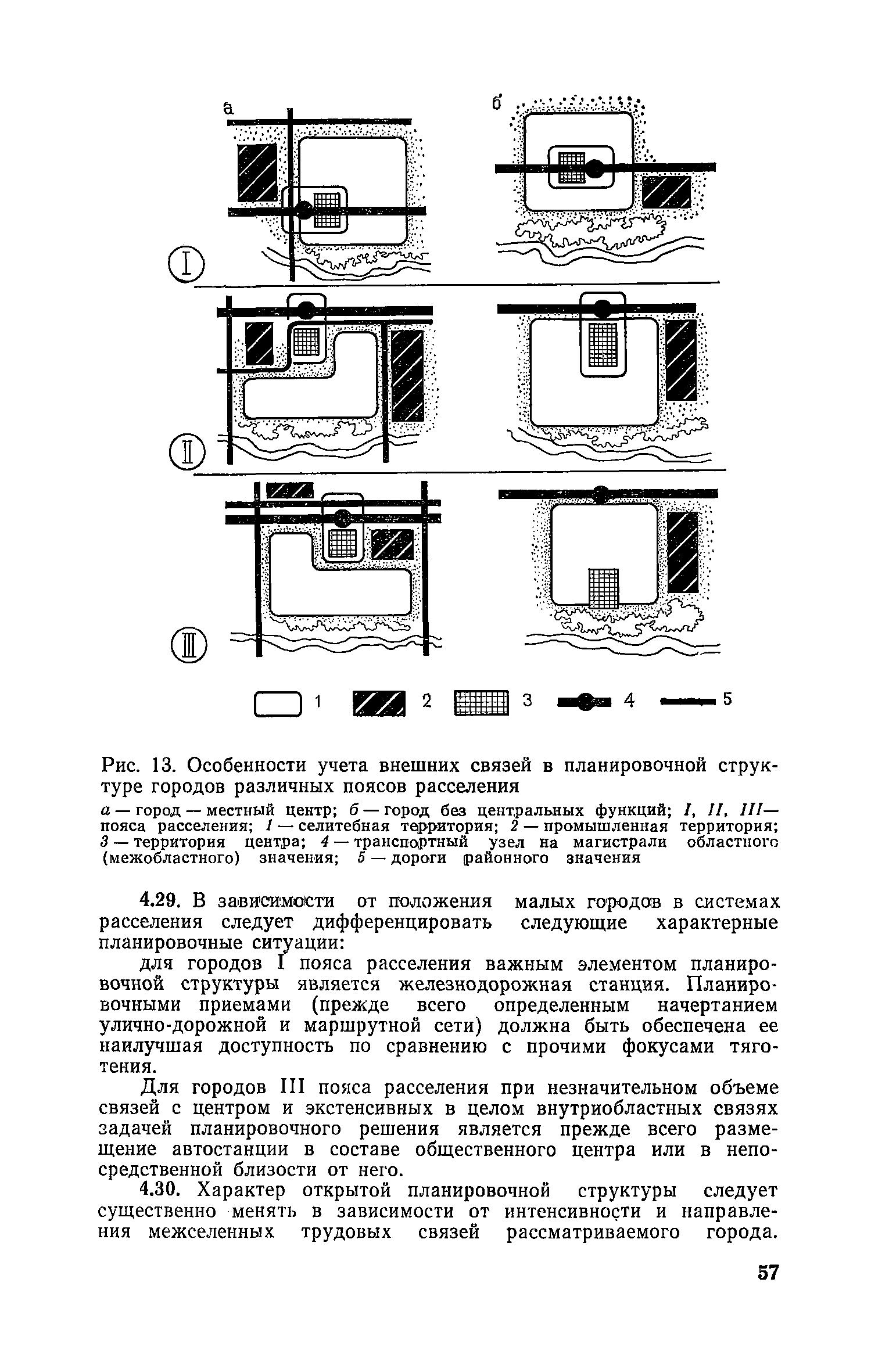 Руководство по проектированию малых городов в системах расселения| Статус: | справочные материалы, мп, тпр | | Название рус.: | Руководство по проектированию малых городов в системах расселения | | Дата добавления в базу: | 01.09.2013 | | Дата актуализации: | 01.01.2021 | | Область применения: | В Руководстве изложен подход к проектированию населенных мест и условиях формирования систем расселения различных иерархических уровней с учетом положении, функциональной роли и перспектив развития малых городов в этих системах. Рассмотрены вопросы формирования архитектурно-планировочной структуры малых городов под влиянием комплекса межселенных связей (производственных, трудовых, культурно-бытовых, территориально-планировочных и др.), а также особенности организации транспорта, систем общественного обслуживания и инженерного оборудования малых городов как структурно-функциональных элементов систем расселения. Руководство предназначено для проектировщиков, градостроителей, составляющих проекты планировки и застройки городов, схемы и проекты районной планировки, а также для работников местных архитектурно-планировочных и плановых органов. | | Оглавление: | Предисловие 1. Основные положения по развитию малых городов в системах расселения Задачи и условия формирования малых городов как элементов систем расселения Межселенные связи и организация транспорта малых городов 2. Определение перспектив развития малых городов Формирование экономической базы Расчет численности населения 3. Формирование систем культурно-бытового обслуживания населения в малых городах Общие положения Учреждения и комплексы культурно-бытового обслуживания Методика расчета учреждений культурно-бытового обслуживания 4. Архитектурно-планировочная организация малых городов Общие положения Зонирование территории города Жилая застройка Общественный центр Места приложения труда Формирование внешней зоны 5. Инженерное оборудование малых городов Общие положения Водоснабжение и водоотведение городов Энергоснабжение Приложение 1. Местные сырьевые и трудовые ресурсы (формы) Приложение 2. Перечень промышленных предприятий, размещение которых возможно в малых городах Приложение 3. Градостроительная характеристика предприятий аграрно-промышленного комплекса, размещаемых в малых городах Приложение 4. Основной состав учреждений и объектов общегородских центров малых городов Приложение 5. Ориентировочные перспективные скорости сообщения и транспортная доступность города-центра областной системы расселения Приложение 6. Показатели типовых проектов пассажирских станций | | Разработан: | ЦНИИП градостроительства