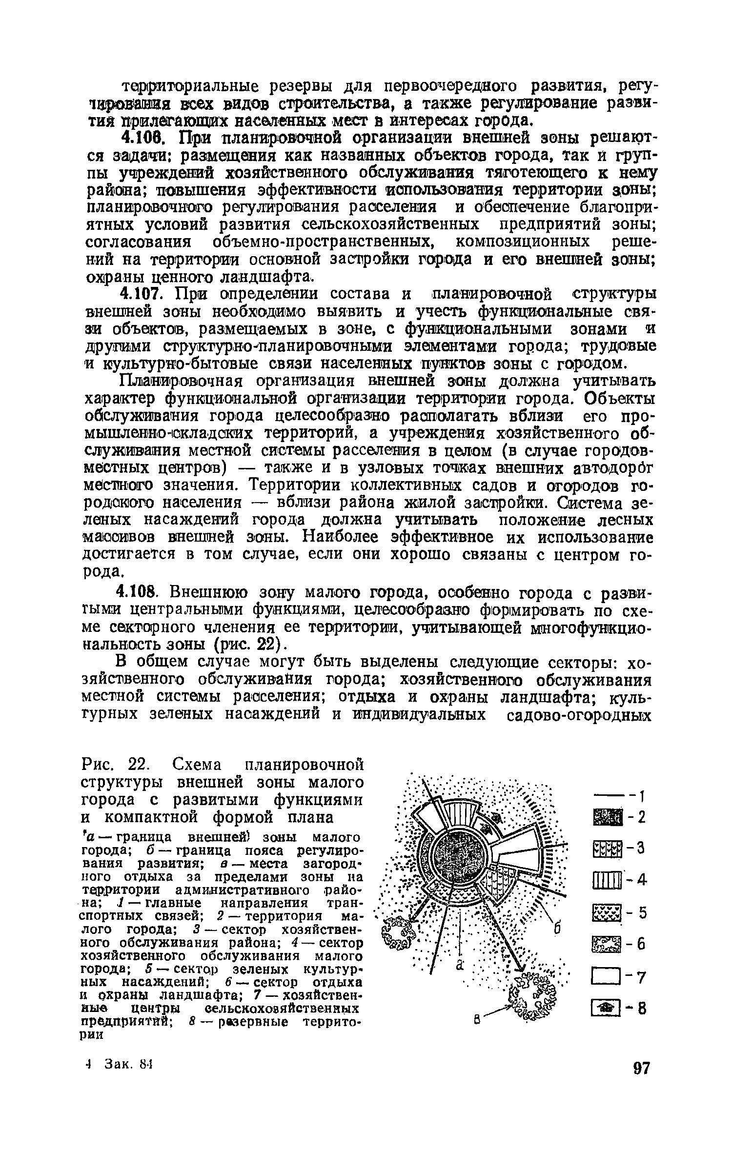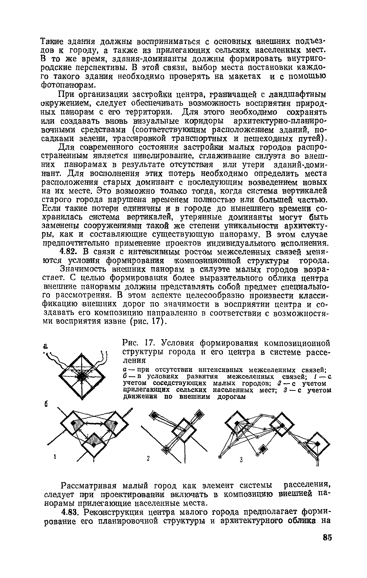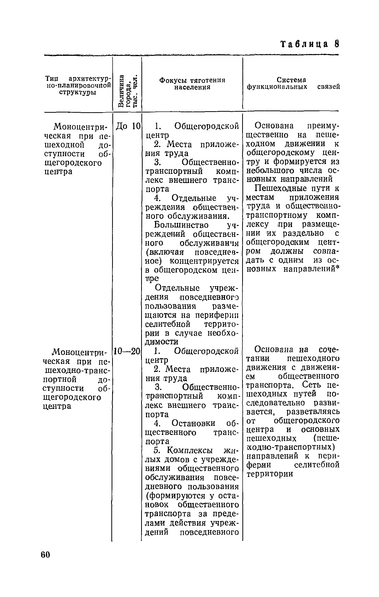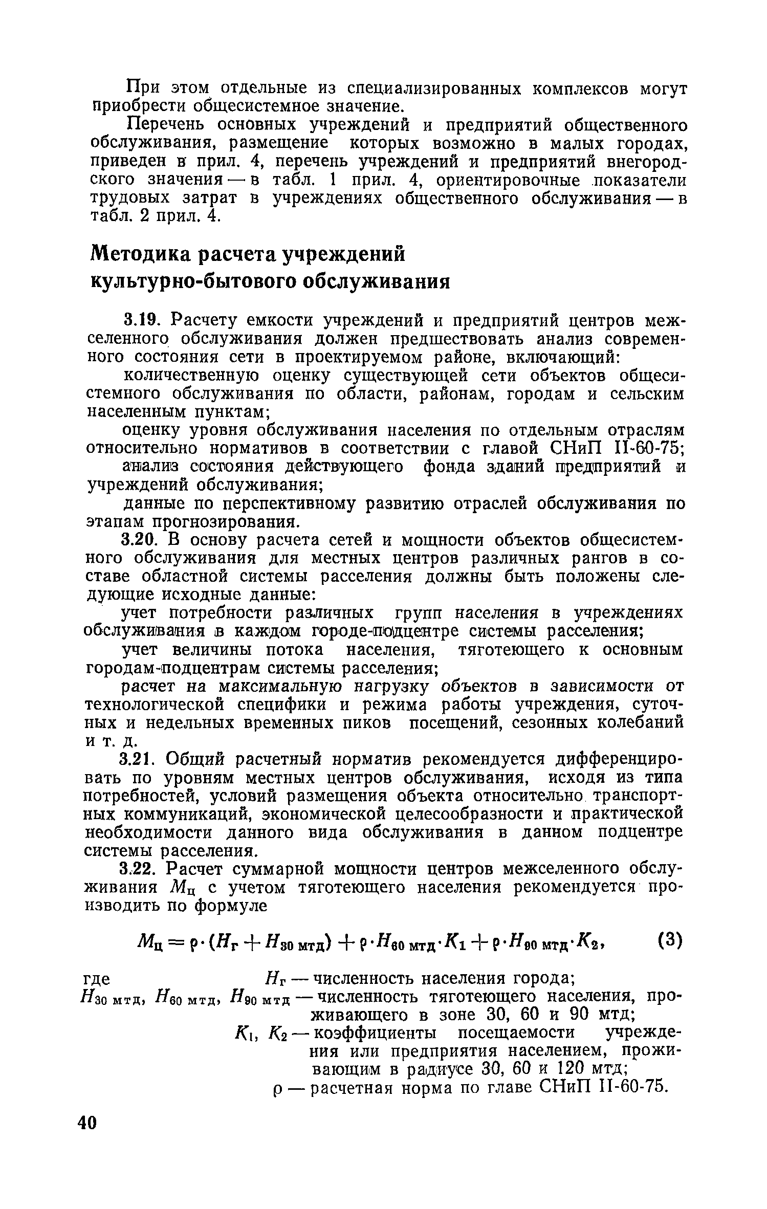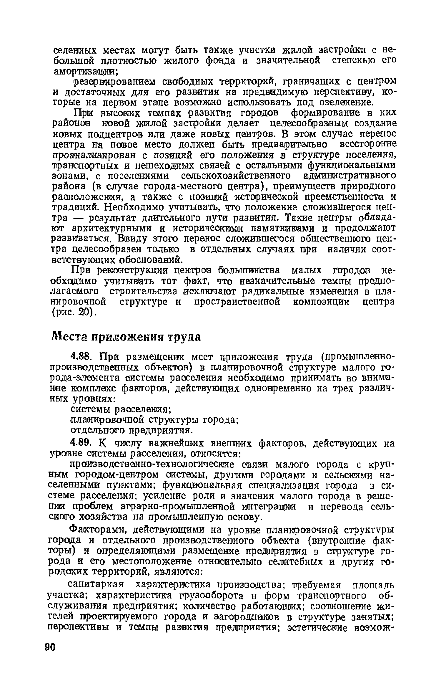 Руководство по проектированию малых городов в системах расселения| Статус: | справочные материалы, мп, тпр | | Название рус.: | Руководство по проектированию малых городов в системах расселения | | Дата добавления в базу: | 01.09.2013 | | Дата актуализации: | 01.01.2021 | | Область применения: | В Руководстве изложен подход к проектированию населенных мест и условиях формирования систем расселения различных иерархических уровней с учетом положении, функциональной роли и перспектив развития малых городов в этих системах. Рассмотрены вопросы формирования архитектурно-планировочной структуры малых городов под влиянием комплекса межселенных связей (производственных, трудовых, культурно-бытовых, территориально-планировочных и др.), а также особенности организации транспорта, систем общественного обслуживания и инженерного оборудования малых городов как структурно-функциональных элементов систем расселения. Руководство предназначено для проектировщиков, градостроителей, составляющих проекты планировки и застройки городов, схемы и проекты районной планировки, а также для работников местных архитектурно-планировочных и плановых органов. | | Оглавление: | Предисловие 1. Основные положения по развитию малых городов в системах расселения Задачи и условия формирования малых городов как элементов систем расселения Межселенные связи и организация транспорта малых городов 2. Определение перспектив развития малых городов Формирование экономической базы Расчет численности населения 3. Формирование систем культурно-бытового обслуживания населения в малых городах Общие положения Учреждения и комплексы культурно-бытового обслуживания Методика расчета учреждений культурно-бытового обслуживания 4. Архитектурно-планировочная организация малых городов Общие положения Зонирование территории города Жилая застройка Общественный центр Места приложения труда Формирование внешней зоны 5. Инженерное оборудование малых городов Общие положения Водоснабжение и водоотведение городов Энергоснабжение Приложение 1. Местные сырьевые и трудовые ресурсы (формы) Приложение 2. Перечень промышленных предприятий, размещение которых возможно в малых городах Приложение 3. Градостроительная характеристика предприятий аграрно-промышленного комплекса, размещаемых в малых городах Приложение 4. Основной состав учреждений и объектов общегородских центров малых городов Приложение 5. Ориентировочные перспективные скорости сообщения и транспортная доступность города-центра областной системы расселения Приложение 6. Показатели типовых проектов пассажирских станций | | Разработан: | ЦНИИП градостроительства