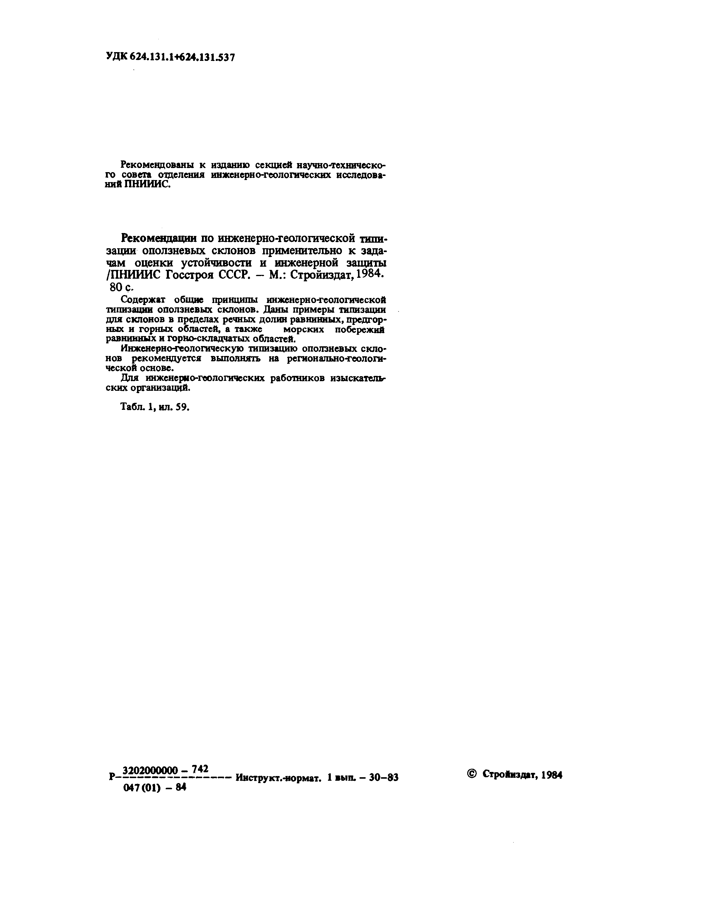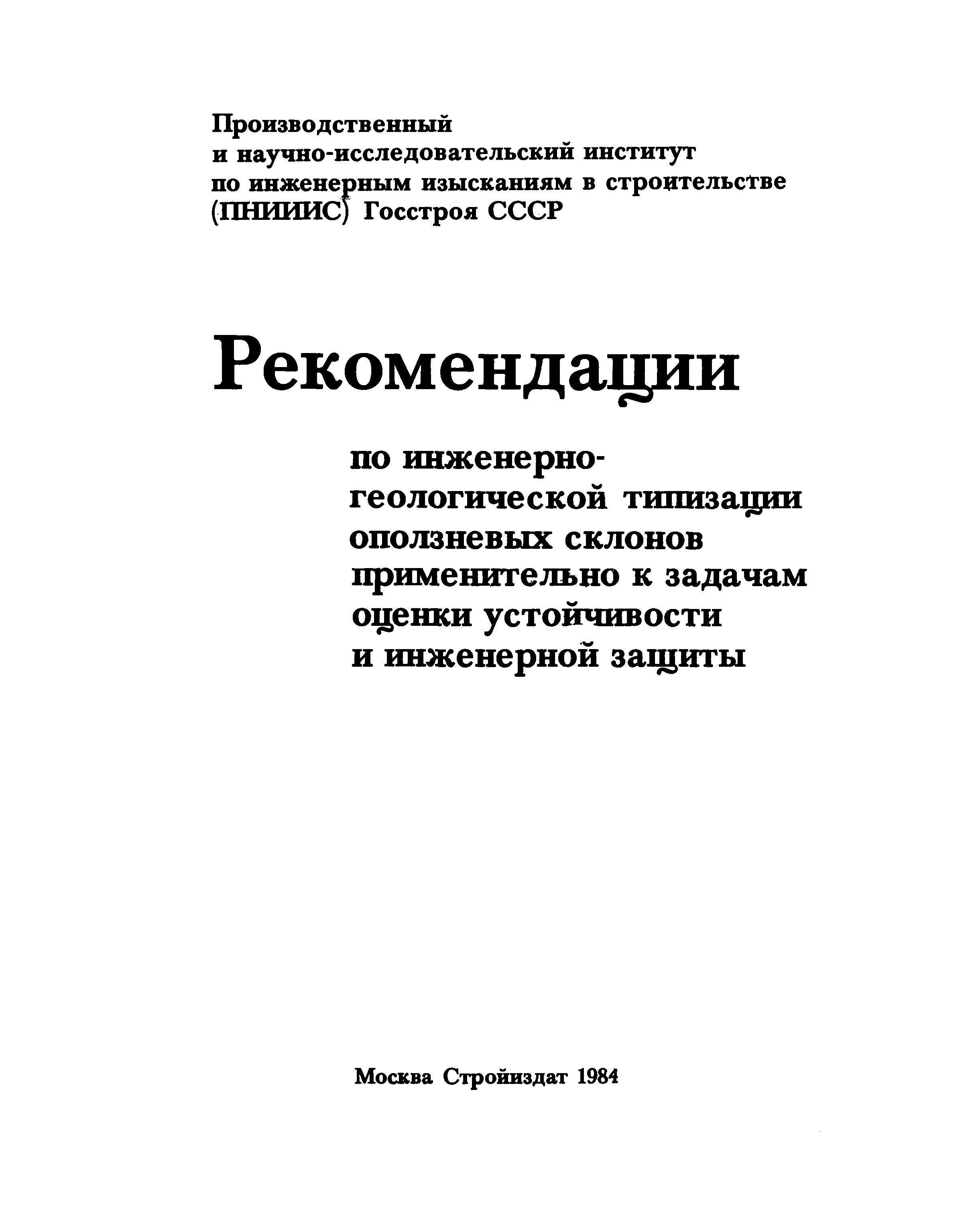 | Название рус.: | Рекомендации по инженерно-геологической типизации оползневых склонов применительно к задачам оценки устойчивости и инженерной защиты |