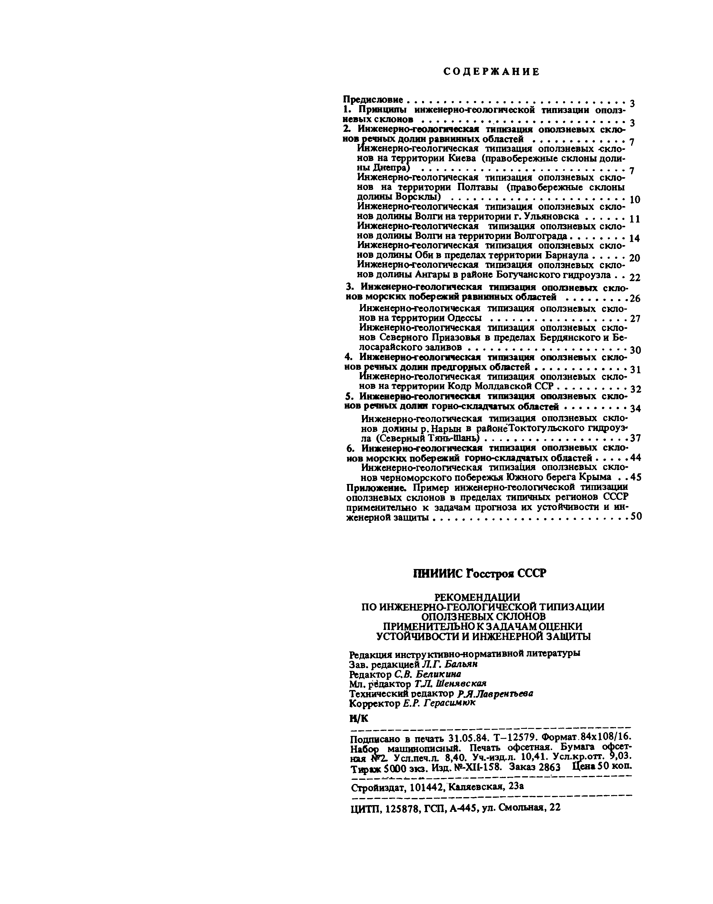 | Оглавление: | Предисловие 1. Принципы инженерно-геологической типизации оползневых склонов 2. Инженерно-геологическая типизация оползневых склонов речных долин равнинных областей Инженерно-геологическая типизация оползневых склонов на территории Киева (правобережные склоны долины Днепра) Инженерно-геологическая типизация оползневых склонов на территории Полтавы (правобережные склоны долины Ворсклы) Инженерно-геологическая типизация оползневых склонов долины Волги на территории г. Ульяновска Инженерно-геологическая типизация оползневых склонов долины Волги на территории Волгограда Инженерно-геологическая типизация оползневых склонов долины Оби в пределах территории Барнаула Инженерно-геологическая типизация оползневых склонов долины Ангары в районе Богучанского гидроузла 3. Инженерно-геологическая типизация оползневых склонов морских побережий равнинных областей Инженерно-геологическая типизация оползневых склонов на территории Одессы Инженерно-геологическая типизация оползневых склонов Северного Приазовья в пределах Бердянского и Белосарайского заливов 4. Инженерно-геологическая типизация оползневых склонов речных долин предгорных областей Инженерно-геологическая типизация оползневых склонов на территории Кодр Молдавской ССР 5. Инженерно-геологическая типизация оползневых склонов речных долин горно-складчатых областей Инженерно-геологическая типизация оползневых склонов долины р. Нарын в районе Токтогульского гидроузла (Северный Тянь-Шань) 6. Инженерно-геологическая типизация оползневых склонов морских побережий горно-складчатых областей Инженерно-геологическая типизация оползневых склонов черноморского побережья Южного берега Крыма Приложение. Пример инженерно-геологической типизации оползневых склонов в пределах типичных регионов СССР применительно к задачам прогноза их устойчивости и инженерной защиты |