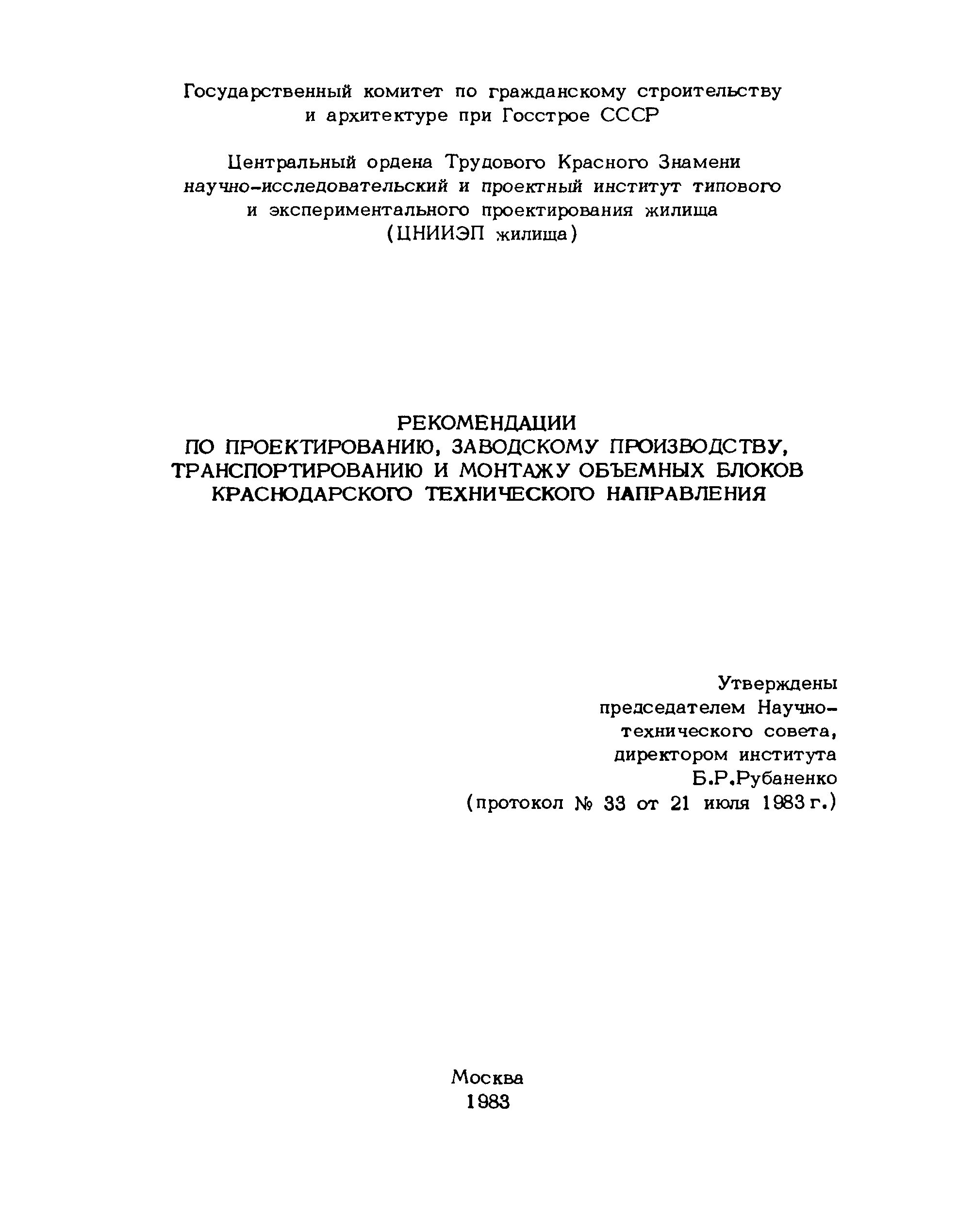 | | Утверждён: | 21.07.1983 ЦНИИЭП жилища (TsNIIEPzhilishcha 33)