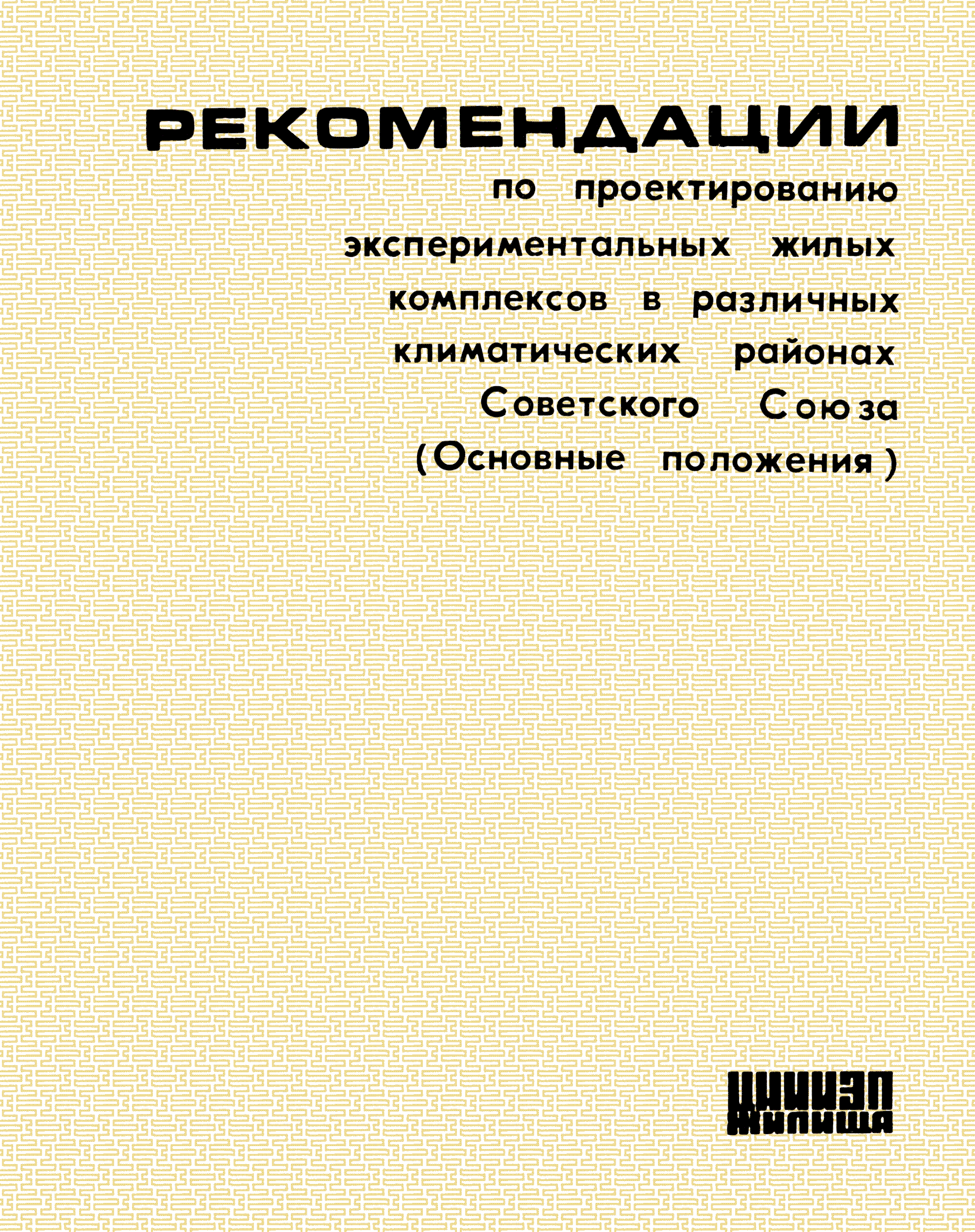| Название рус.: | Рекомендации по проектированию экспериментальных жилых комплексов в различных климатических районах Советского Союза (основные положения) |