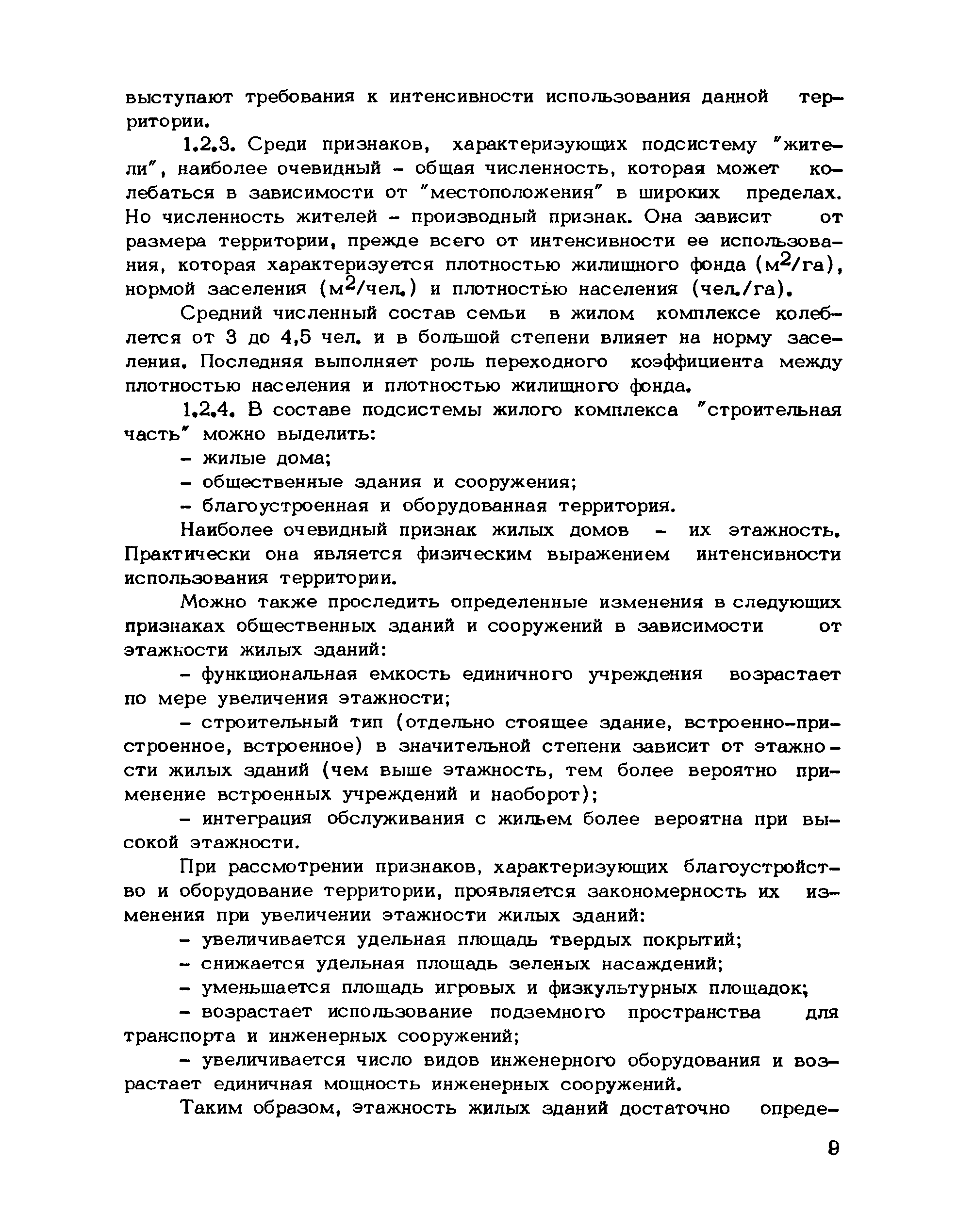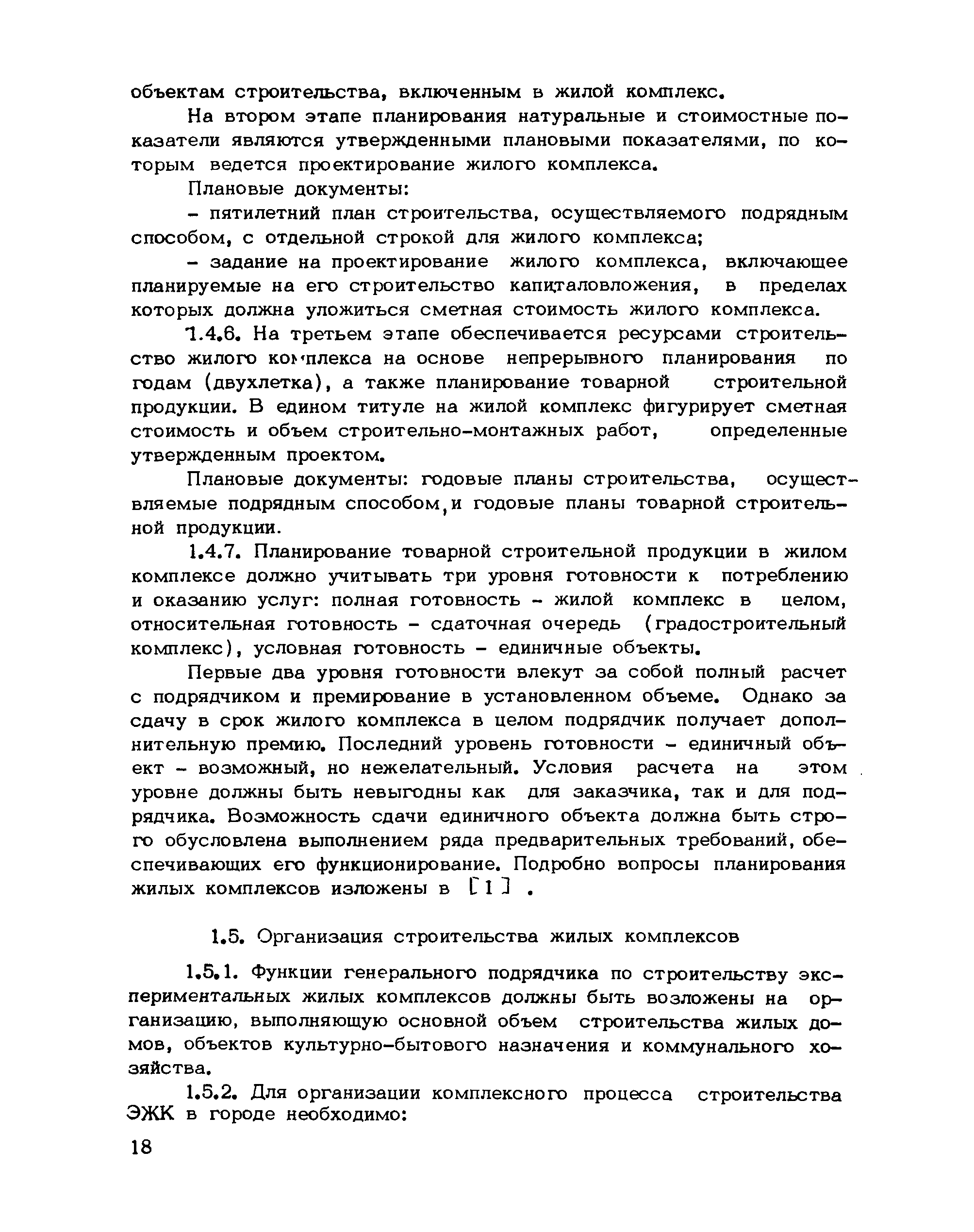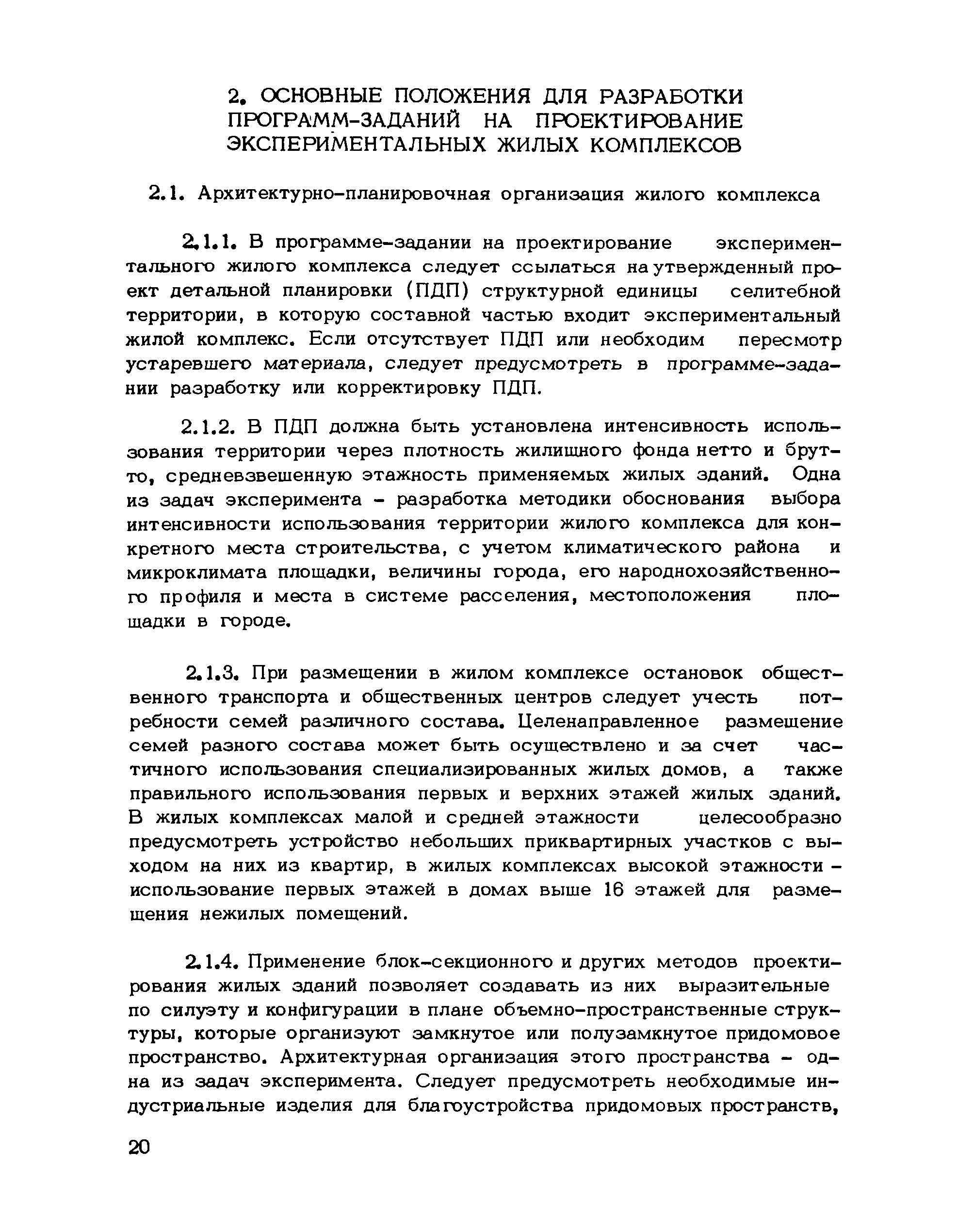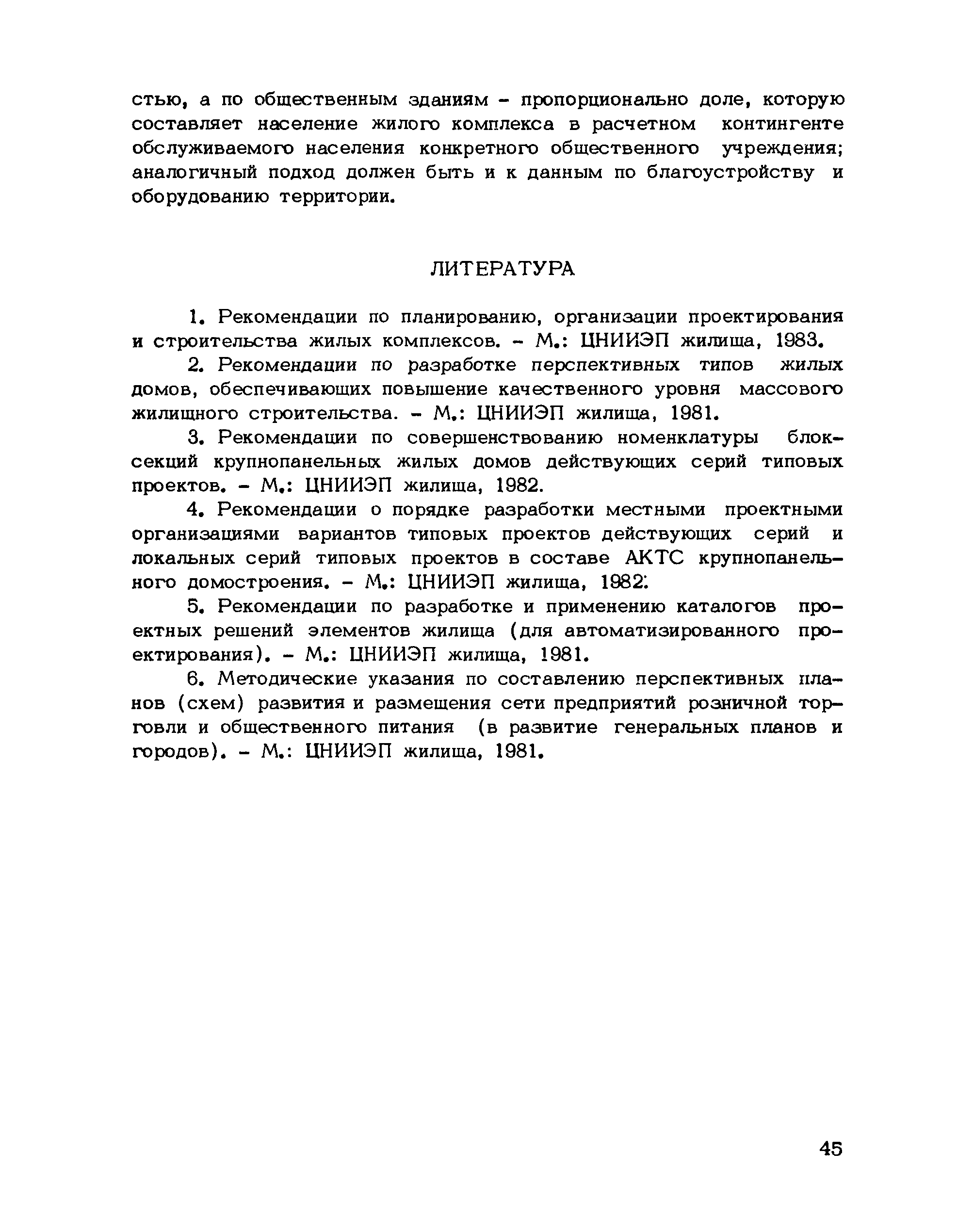 | Оглавление: | Введение 1. Концепция жилого комплекса 1.1. Определение и содержание понятия "Жилой - комплекс" 1.2. Классификация жилых комплексов 1.3. Жилые комплексы малой, средней и высокой этажности 1.4. Планирование жилых комплексов 1.5. Организация строительства жилых комплексов 2. Основные положения для разработки программ-заданий на проектирование экспериментальных жилых комплексов 2.1. Архитектурно-планировочная организация жилого комплекса 2.2. Квартиры и жилые здания 2.3. Общественное обслуживание населения жилого комплекса 2.4. Архитектурное благоустройство 2.5. Инженерное оборудование 3. Другие задачи эксперимента и обобщение результатов 3.1. Организационные и методические принципы проектирования жилища в ЭЖК на основе базисных и региональных серий 3.2. Эксплуатация 3.3. Этапы эксперимента 3.4. Обобщение и использование результатов эксперимента Литература |