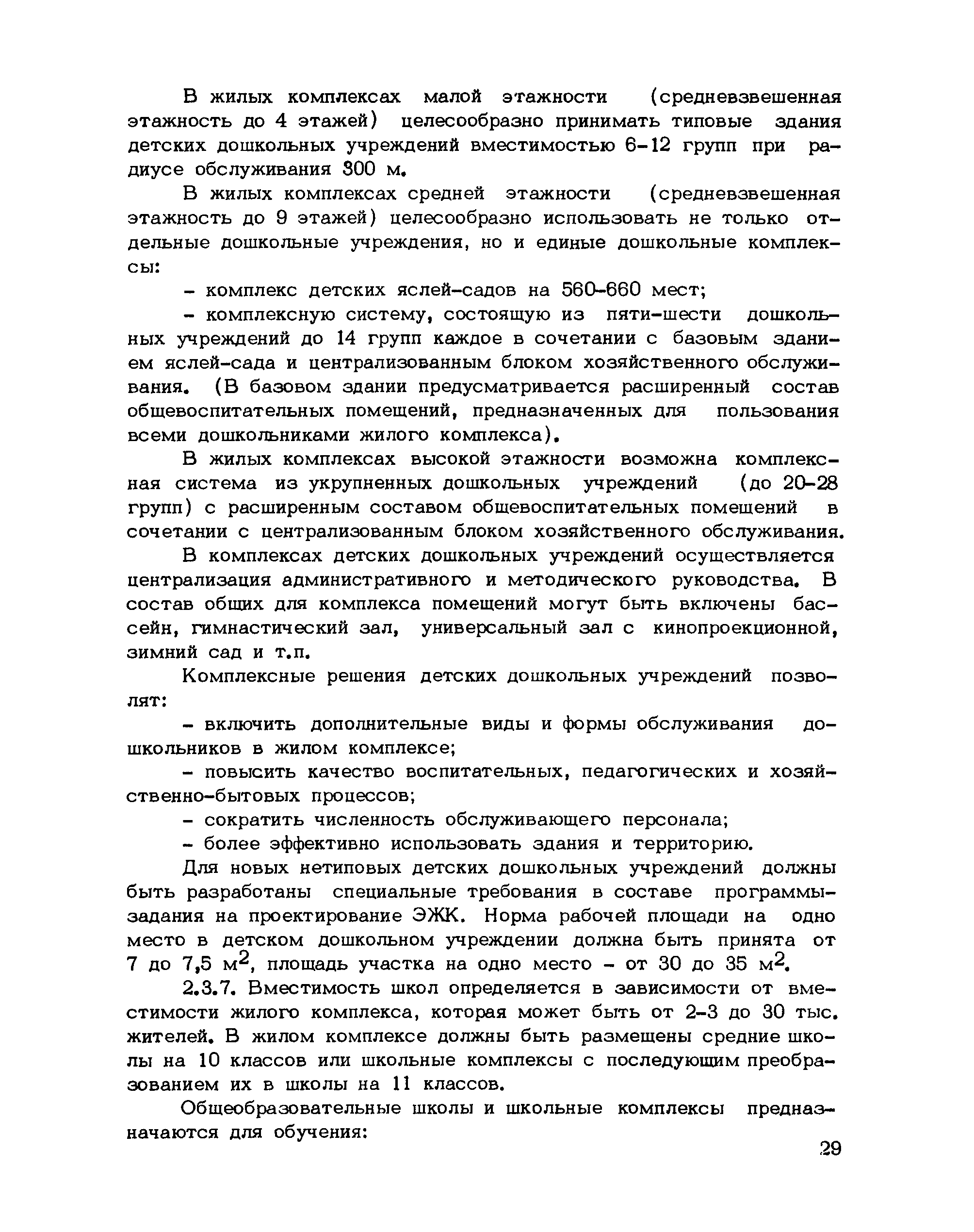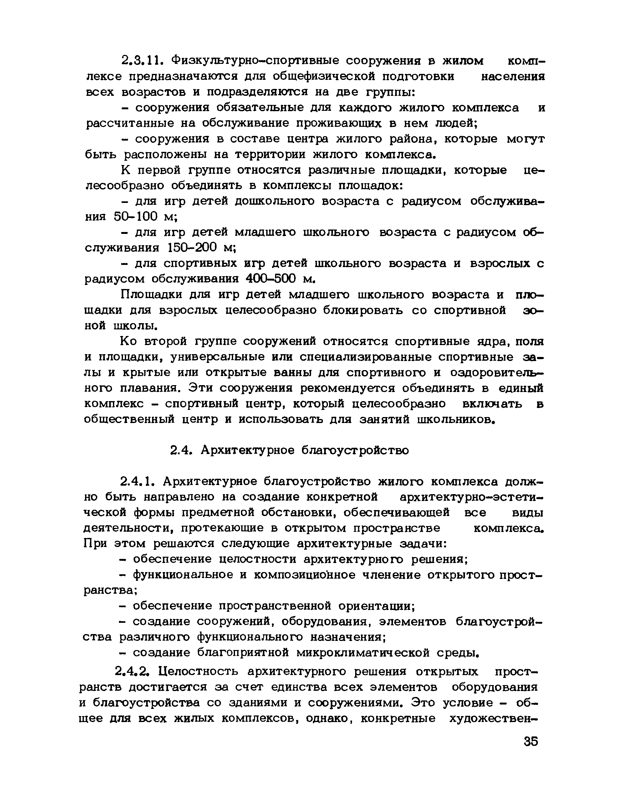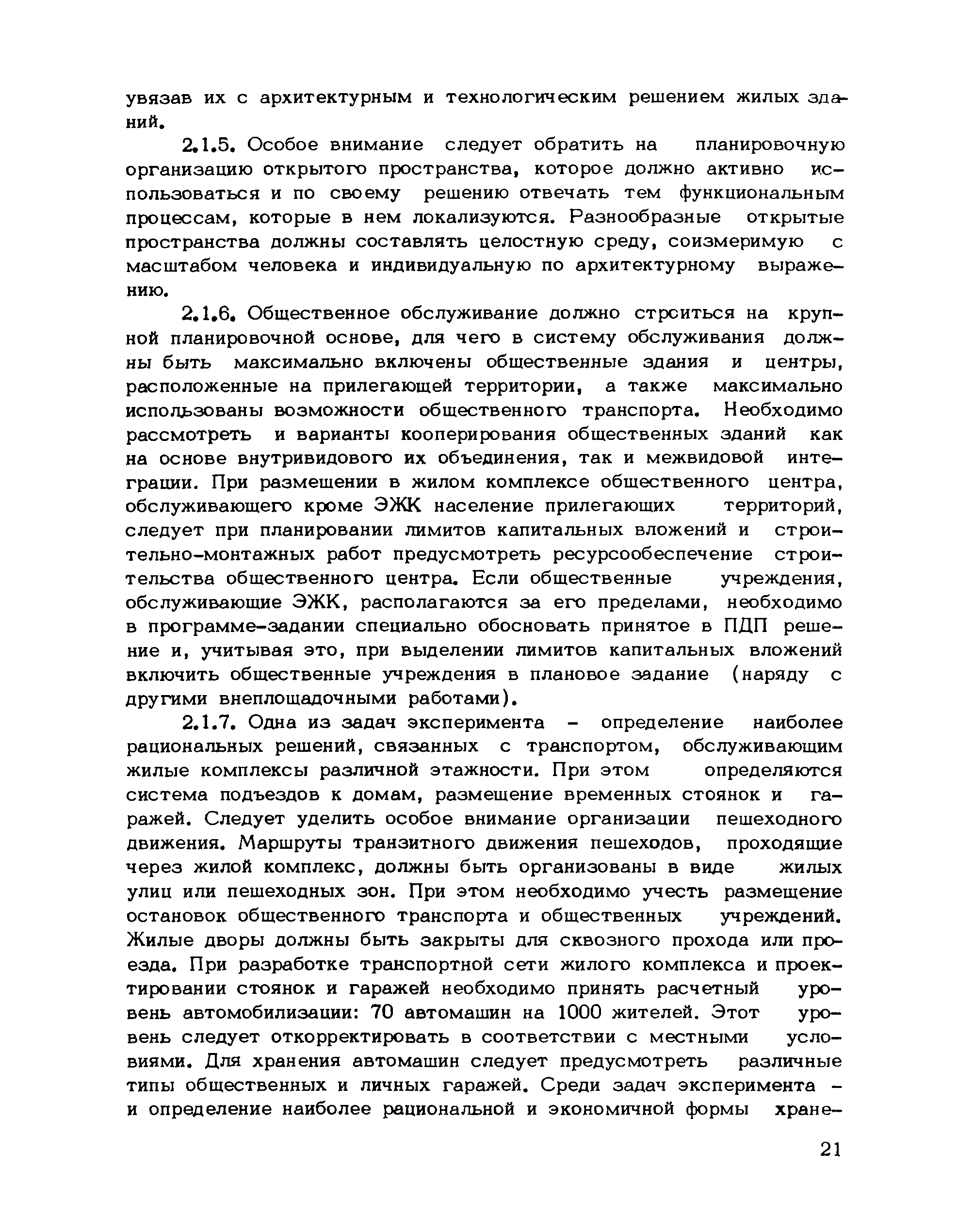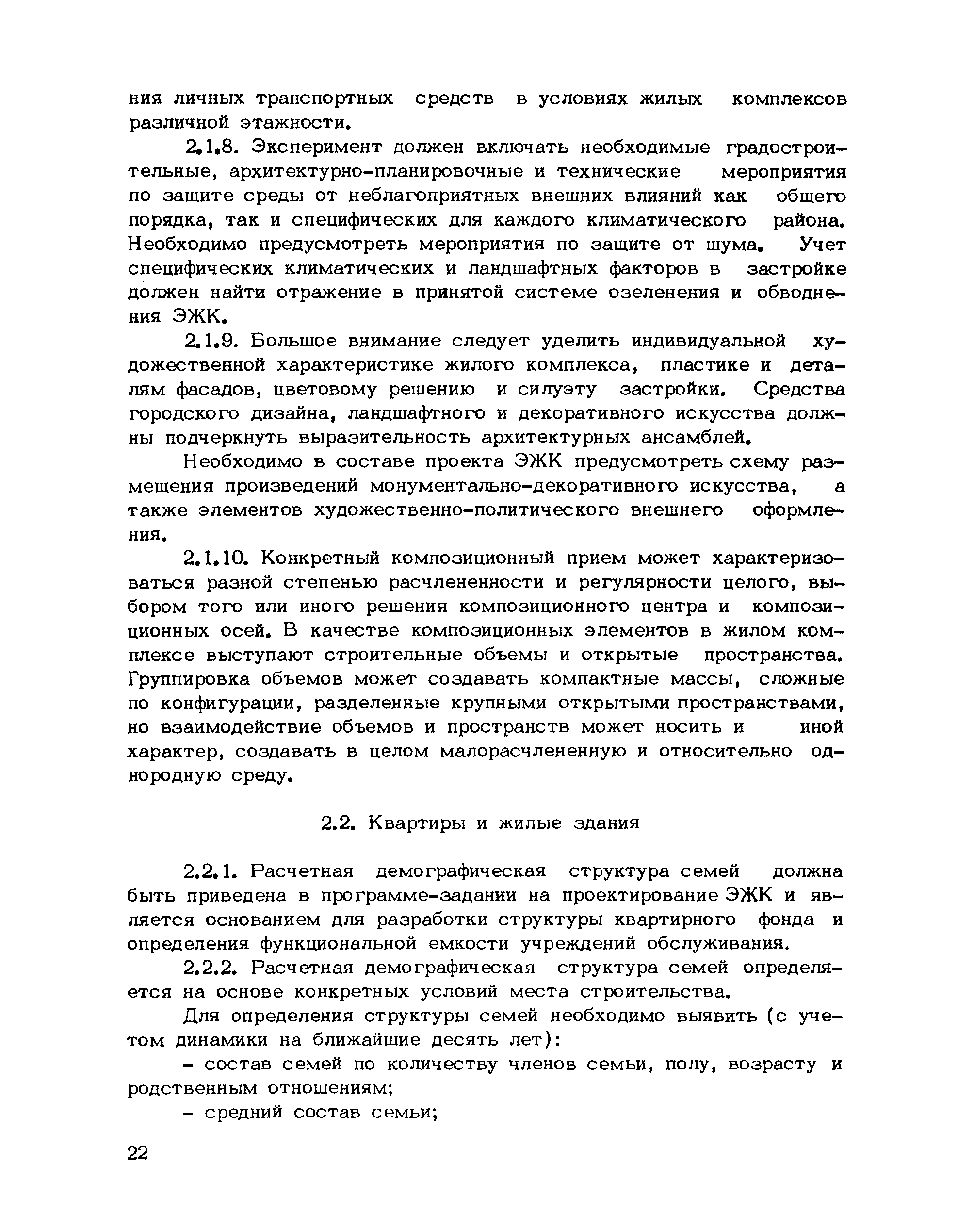 | Оглавление: | Введение 1. Концепция жилого комплекса 1.1. Определение и содержание понятия "Жилой - комплекс" 1.2. Классификация жилых комплексов 1.3. Жилые комплексы малой, средней и высокой этажности 1.4. Планирование жилых комплексов 1.5. Организация строительства жилых комплексов 2. Основные положения для разработки программ-заданий на проектирование экспериментальных жилых комплексов 2.1. Архитектурно-планировочная организация жилого комплекса 2.2. Квартиры и жилые здания 2.3. Общественное обслуживание населения жилого комплекса 2.4. Архитектурное благоустройство 2.5. Инженерное оборудование 3. Другие задачи эксперимента и обобщение результатов 3.1. Организационные и методические принципы проектирования жилища в ЭЖК на основе базисных и региональных серий 3.2. Эксплуатация 3.3. Этапы эксперимента 3.4. Обобщение и использование результатов эксперимента Литература |