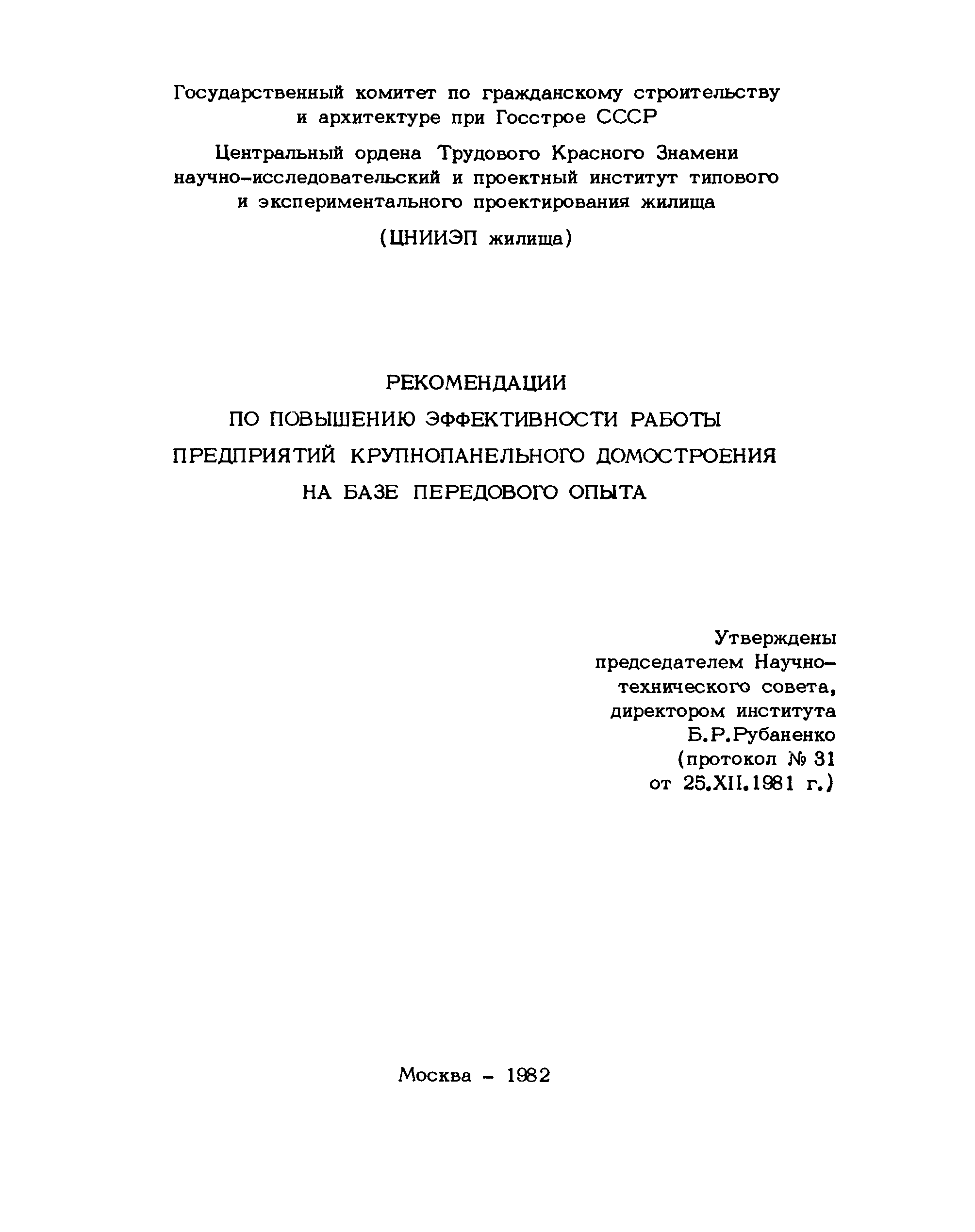 | Название рус.: | Рекомендации по повышению эффективности работы предприятий крупнопанельного домостроения на базе передового опыта |