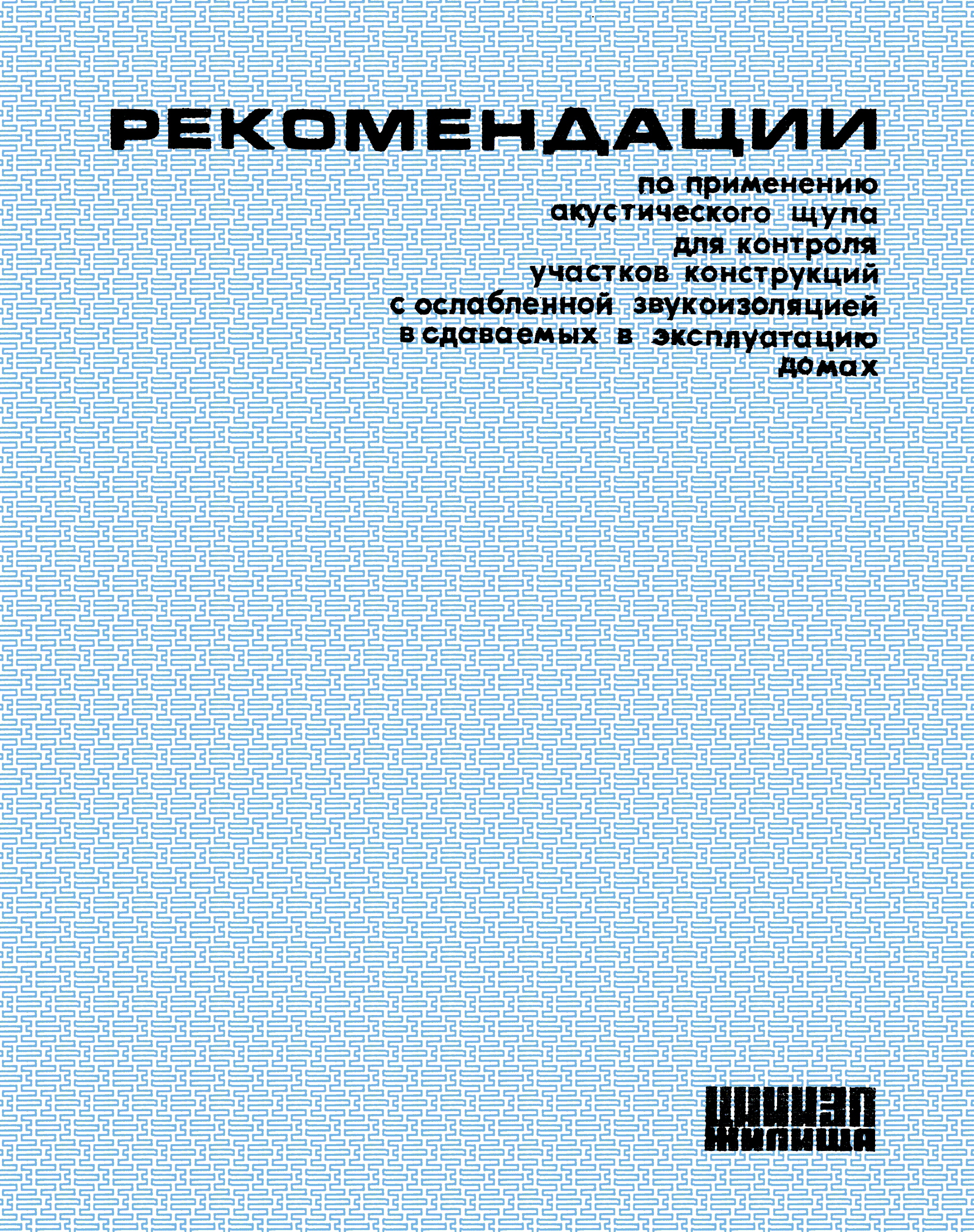 | Название рус.: | Рекомендации по применению акустического щупа для контроля участков конструкций с ослабленной звукоизоляцией в сдаваемых в эксплуатацию домах |