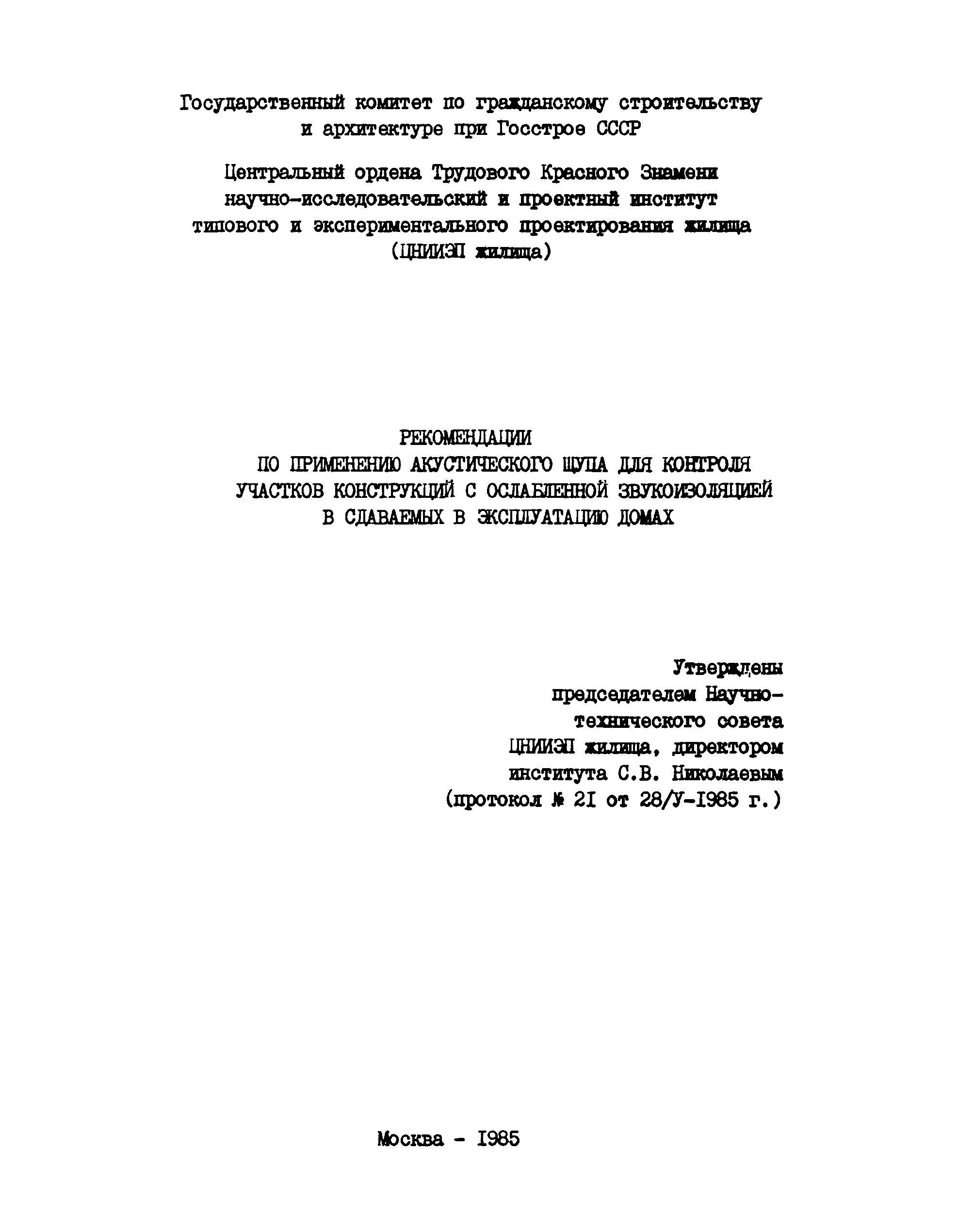 | Утверждён: | 28.05.1985 ЦНИИЭП жилища (TsNIIEPzhilishcha 21)