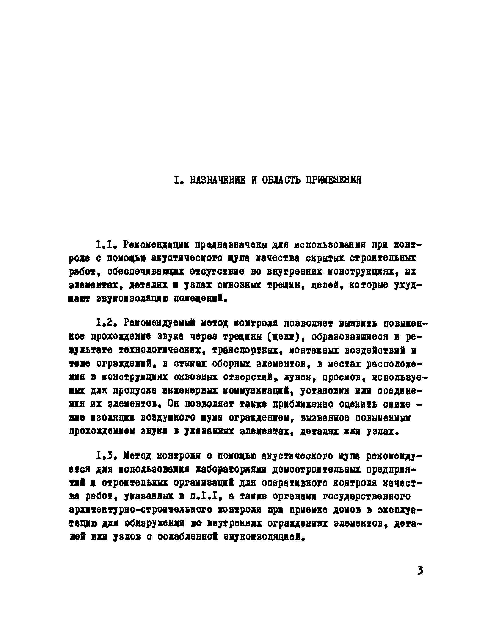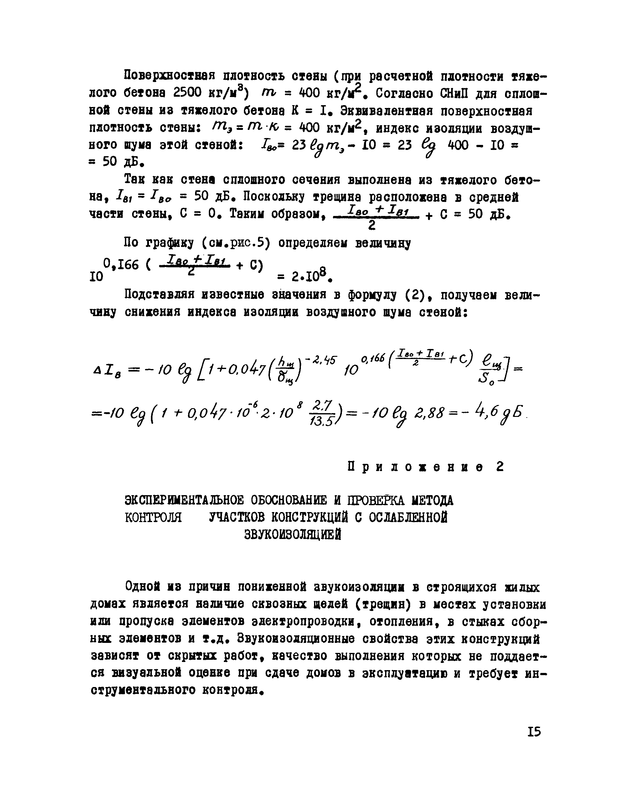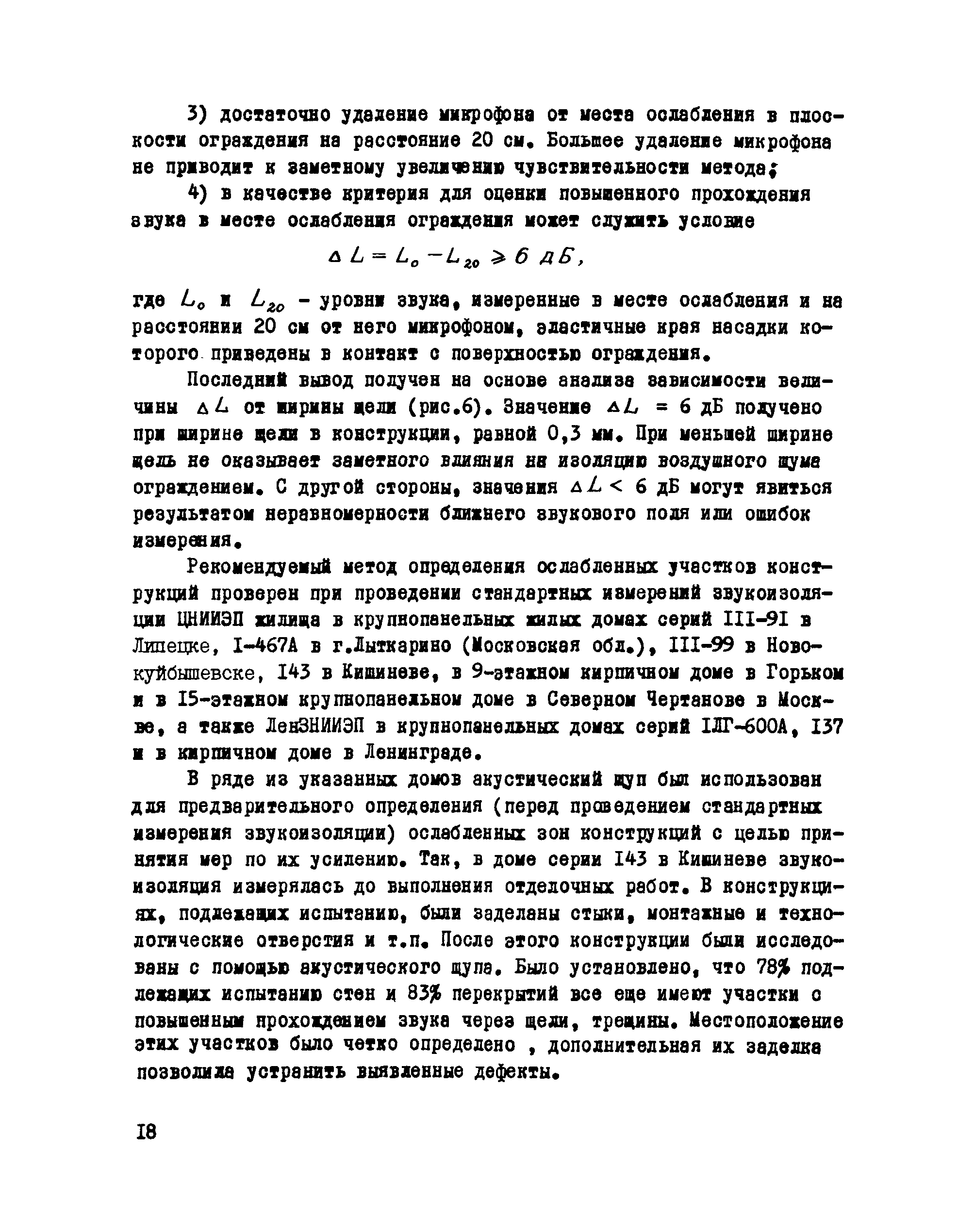 | Оглавление: | 1. Назначение и область применения 2. Методика контроля 2.1 Общие 2.2 Используемая аппаратура 2.3 Выбор объектов и условия проведения контроля 2.4 Оценка результатов контроля Приложение 1. Пример расчета снижения звукоизоляции в результате ослабления конструкции Приложение 2. Экспериментальное обоснование и проверка метода контроля участков конструкций с ослабленной звукоизоляцией |