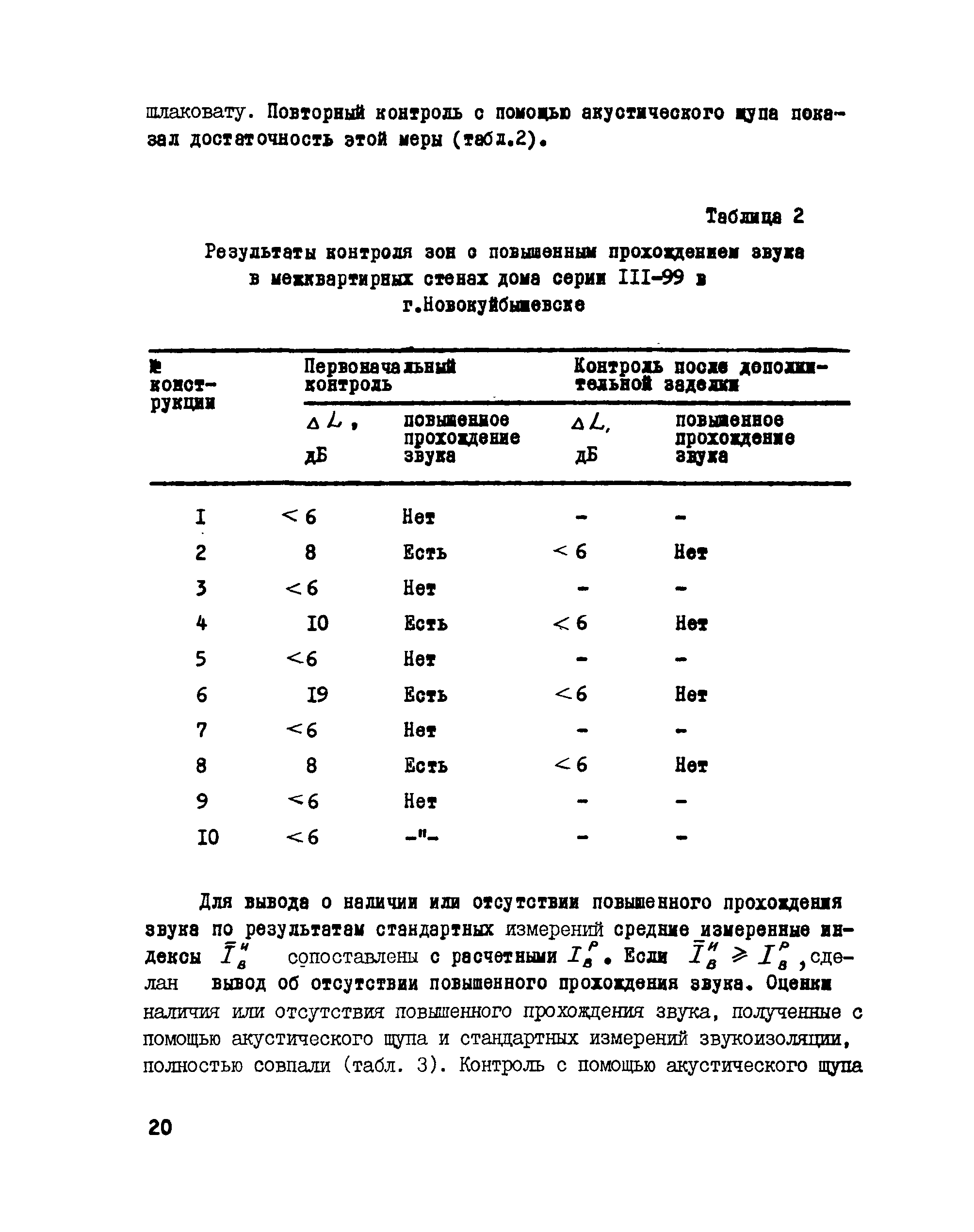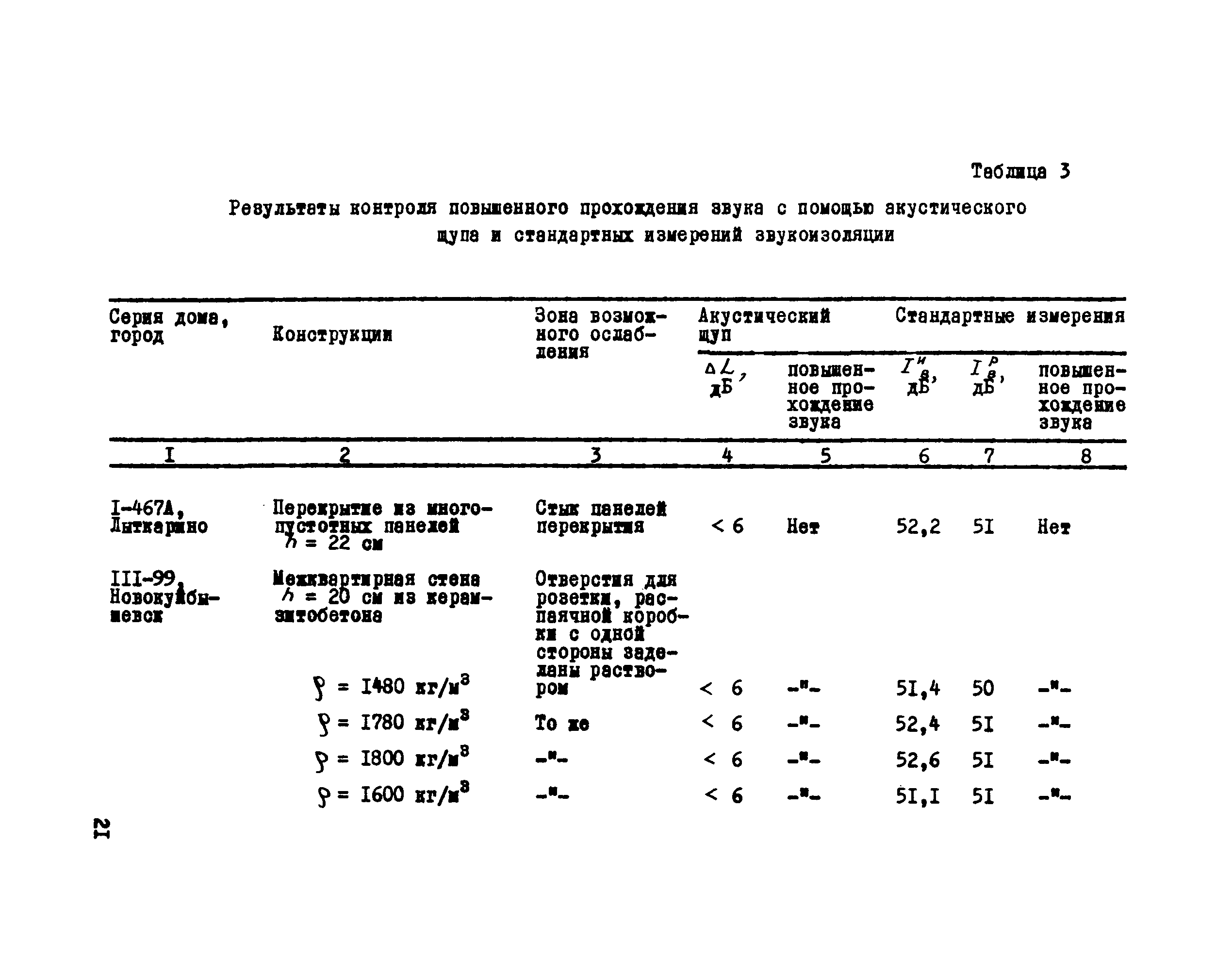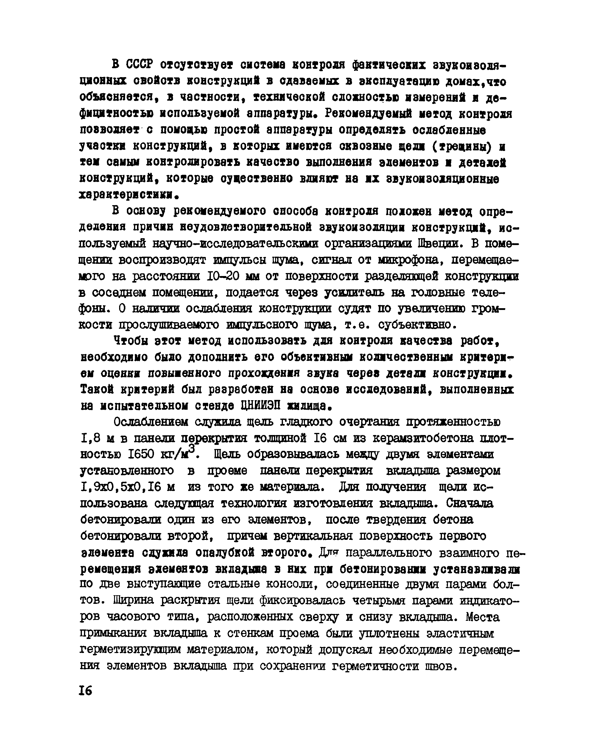 | Оглавление: | 1. Назначение и область применения 2. Методика контроля 2.1 Общие 2.2 Используемая аппаратура 2.3 Выбор объектов и условия проведения контроля 2.4 Оценка результатов контроля Приложение 1. Пример расчета снижения звукоизоляции в результате ослабления конструкции Приложение 2. Экспериментальное обоснование и проверка метода контроля участков конструкций с ослабленной звукоизоляцией |