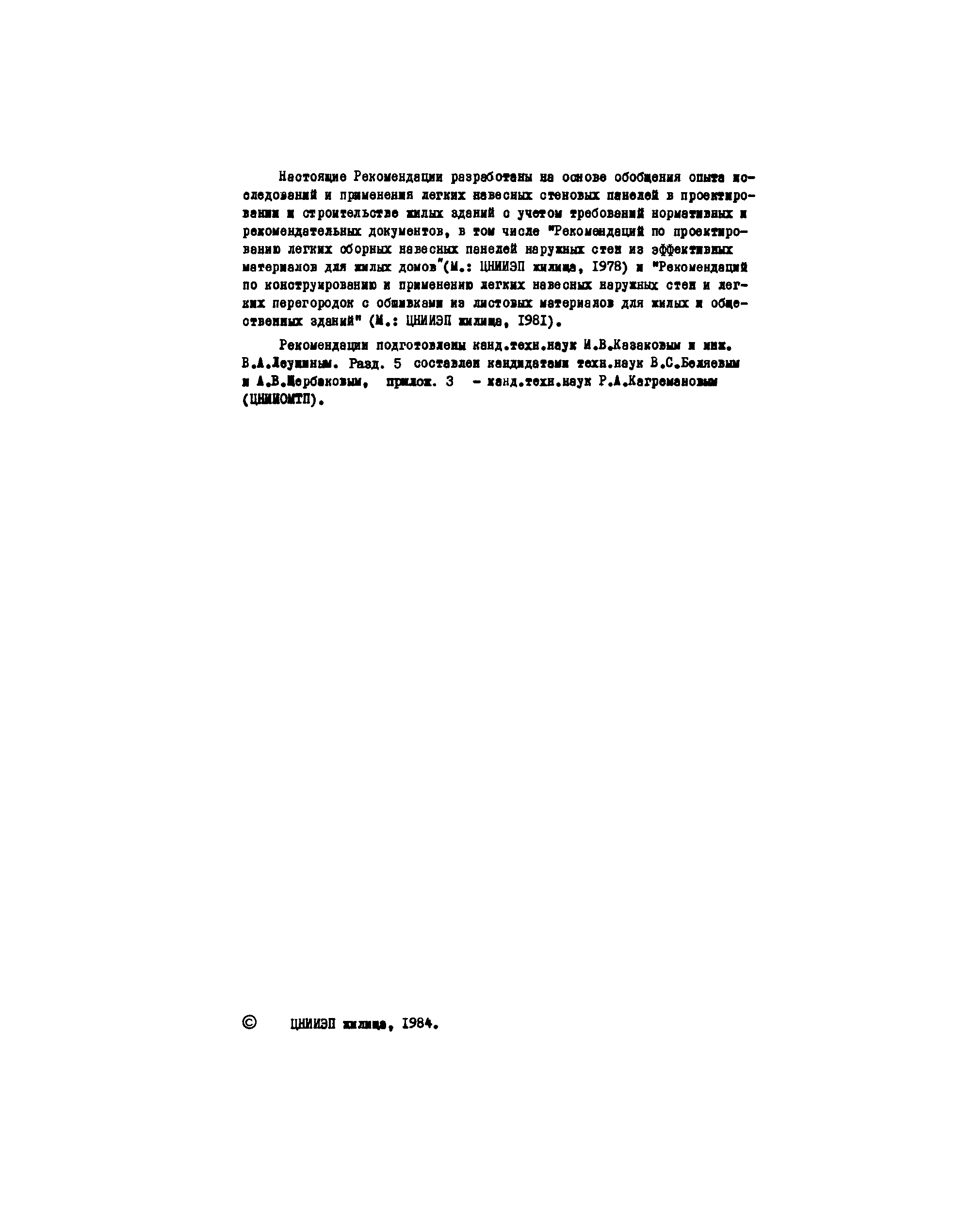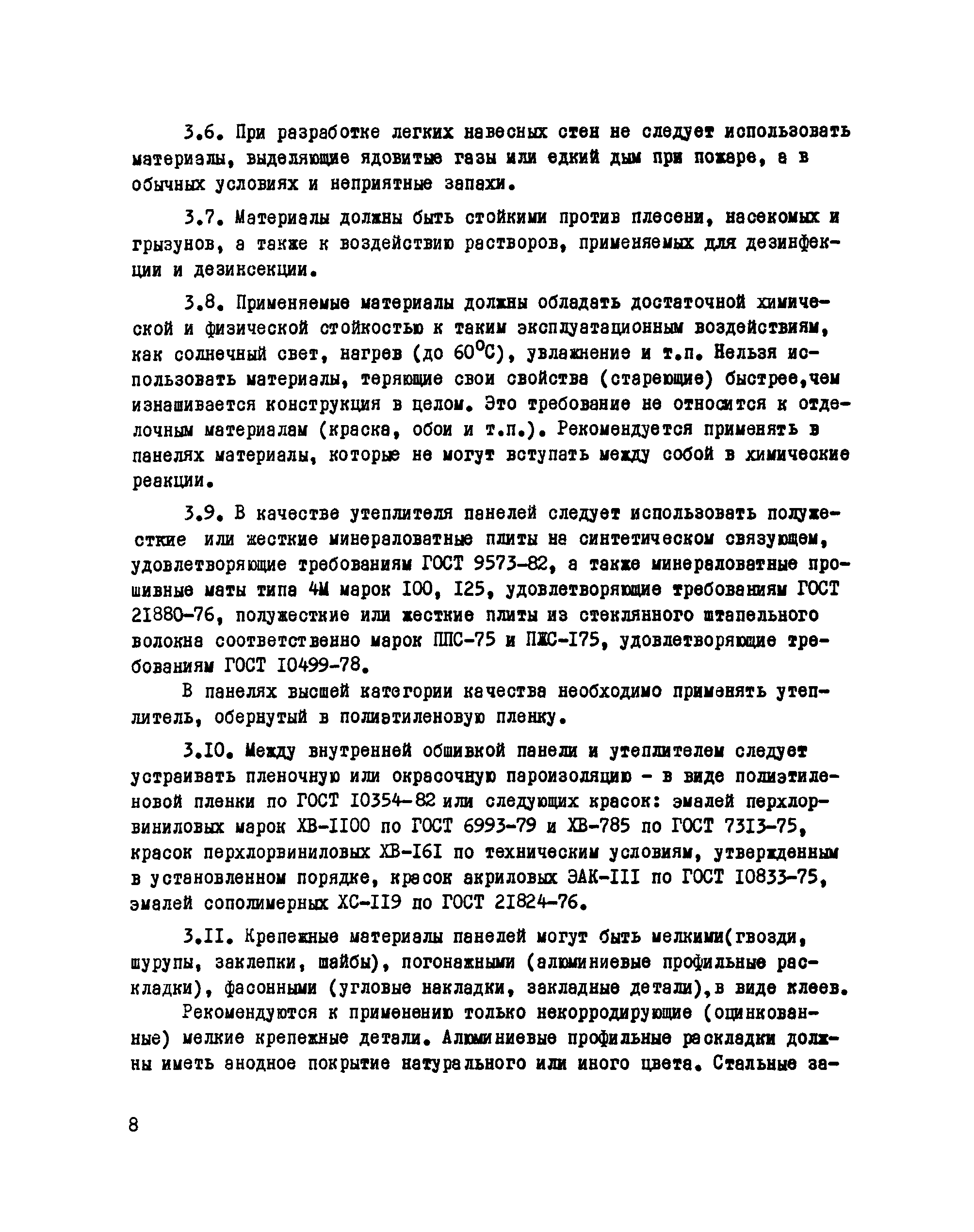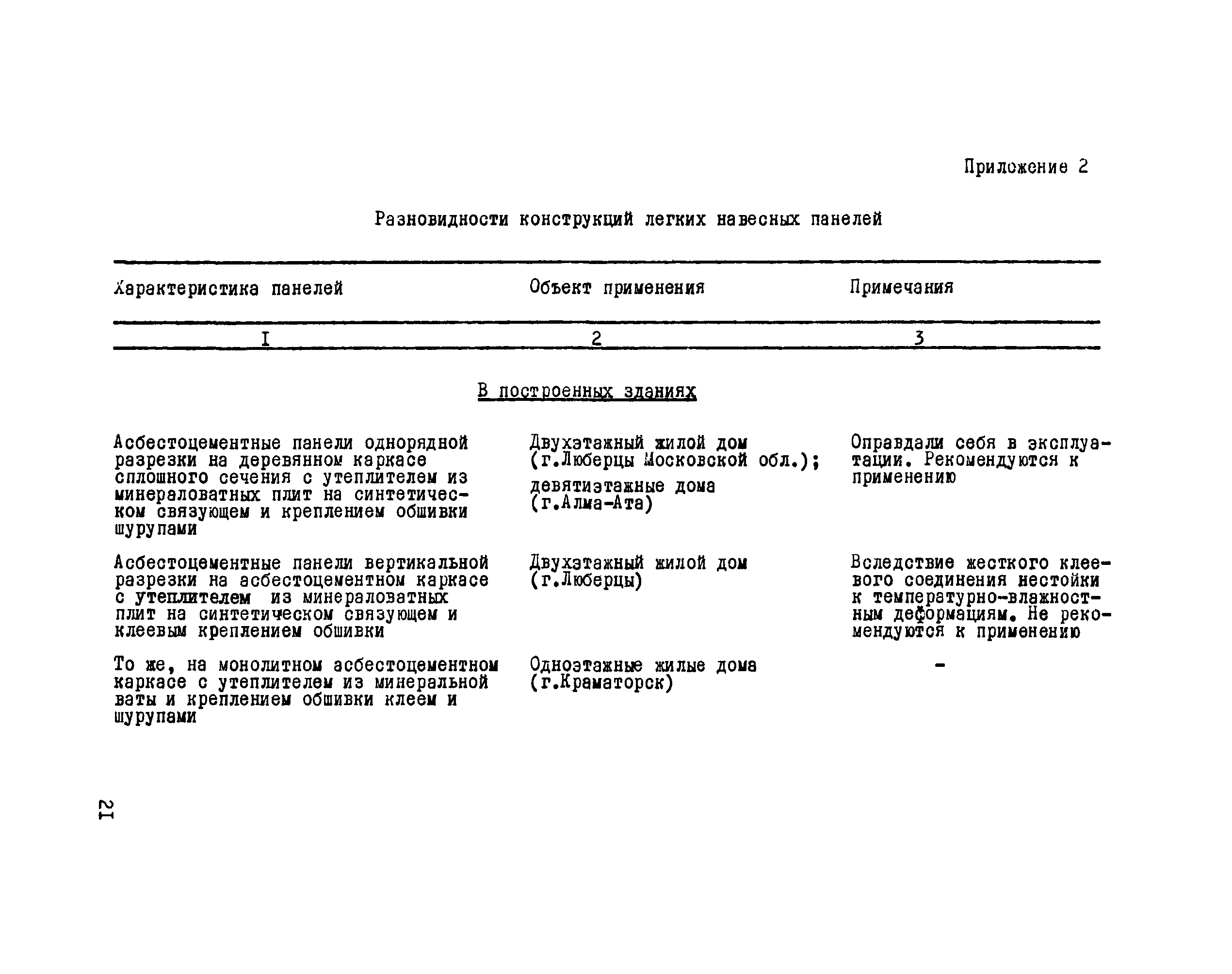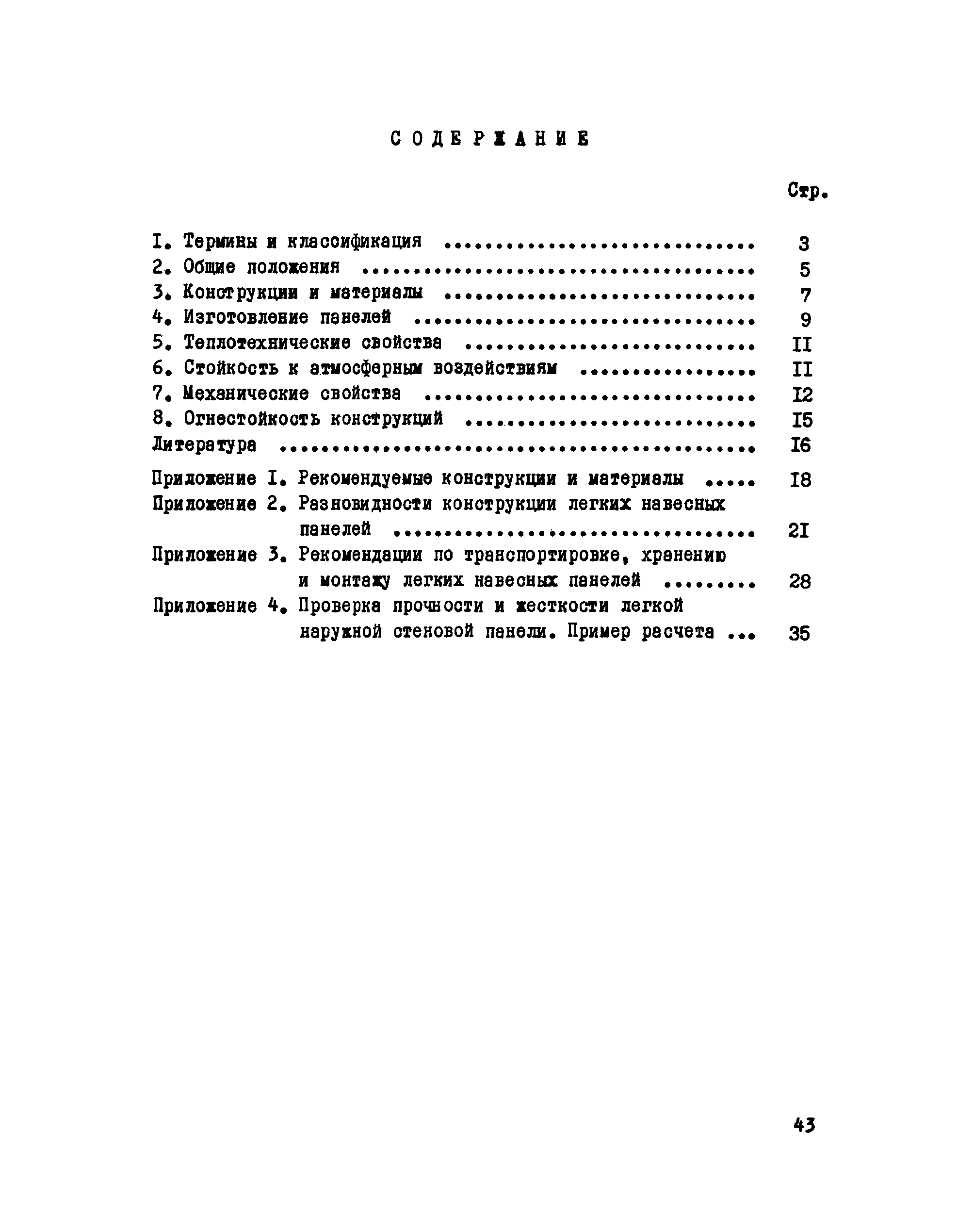 | Оглавление: | 1. Термины и классификация 2. Общие положения 3. Конструкции и материалы 4. Изготовление панелей 5. Теплотехнические свойства 6. Стойкость к атмосферным воздействиям 7. Механические свойства 8. Огнестойкость конструкций Литература Приложение 1. Рекомендуемые конструкции и материалы Приложение 2. Разновидности конструкции легких навесных панелей Приложение 3. Рекомендации по транспортировке, хранению и монтажу легких навесных панелей Приложение 4. Проверка прочности и жесткости легкой наружной стеновой панели. Пример расчета |