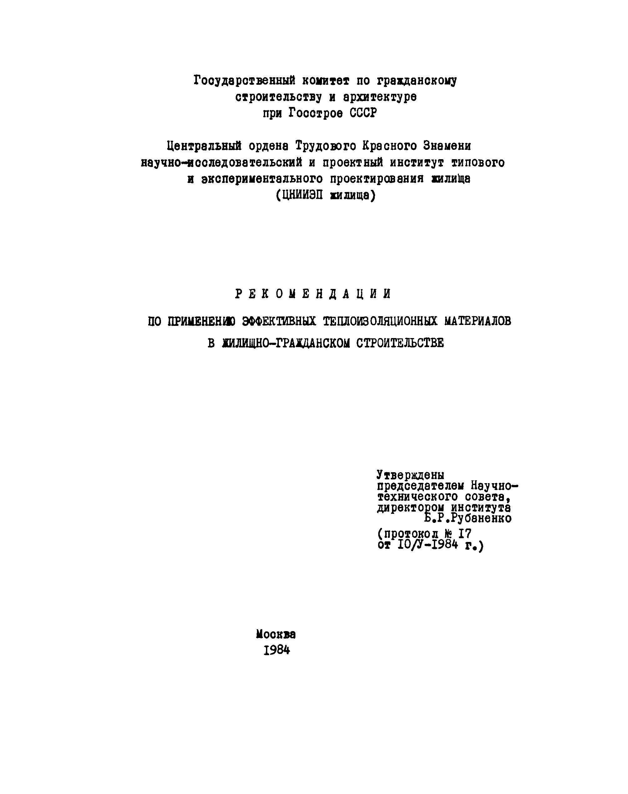 | Область применения: | В документе освещены рациональные направления использования в ограждающих конструкциях жилых и массовых гражданских зданий (гостиницы, школы и т. п.) эффективных теплоизоляционных материалов (минераловатных и стекловатных плит и пенопластов), имеющих малую объемную массу и малый коэффициент теплопроводимости, что позволяет получить значительную экономию топлива, уменьшить вес наружных ограждений и повысить комфорт помещений |