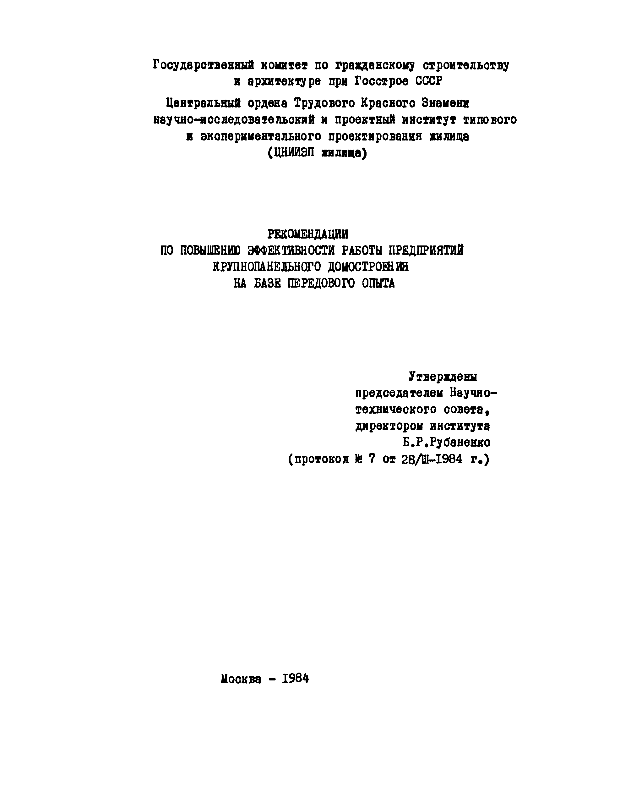 | Название рус.: | Рекомендации по повышению эффективности работы предприятий крупнопанельного домостроения на базе передового опыта |