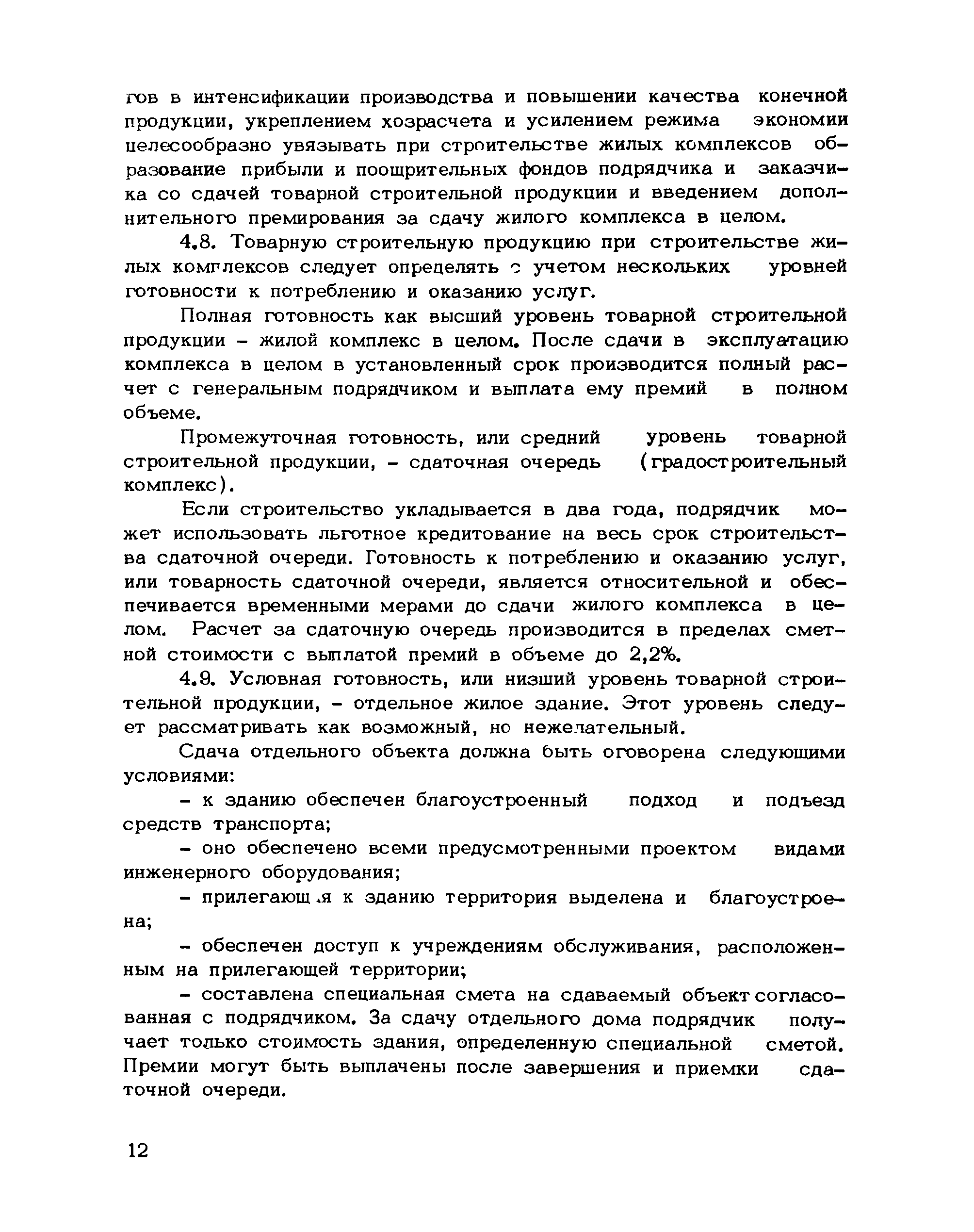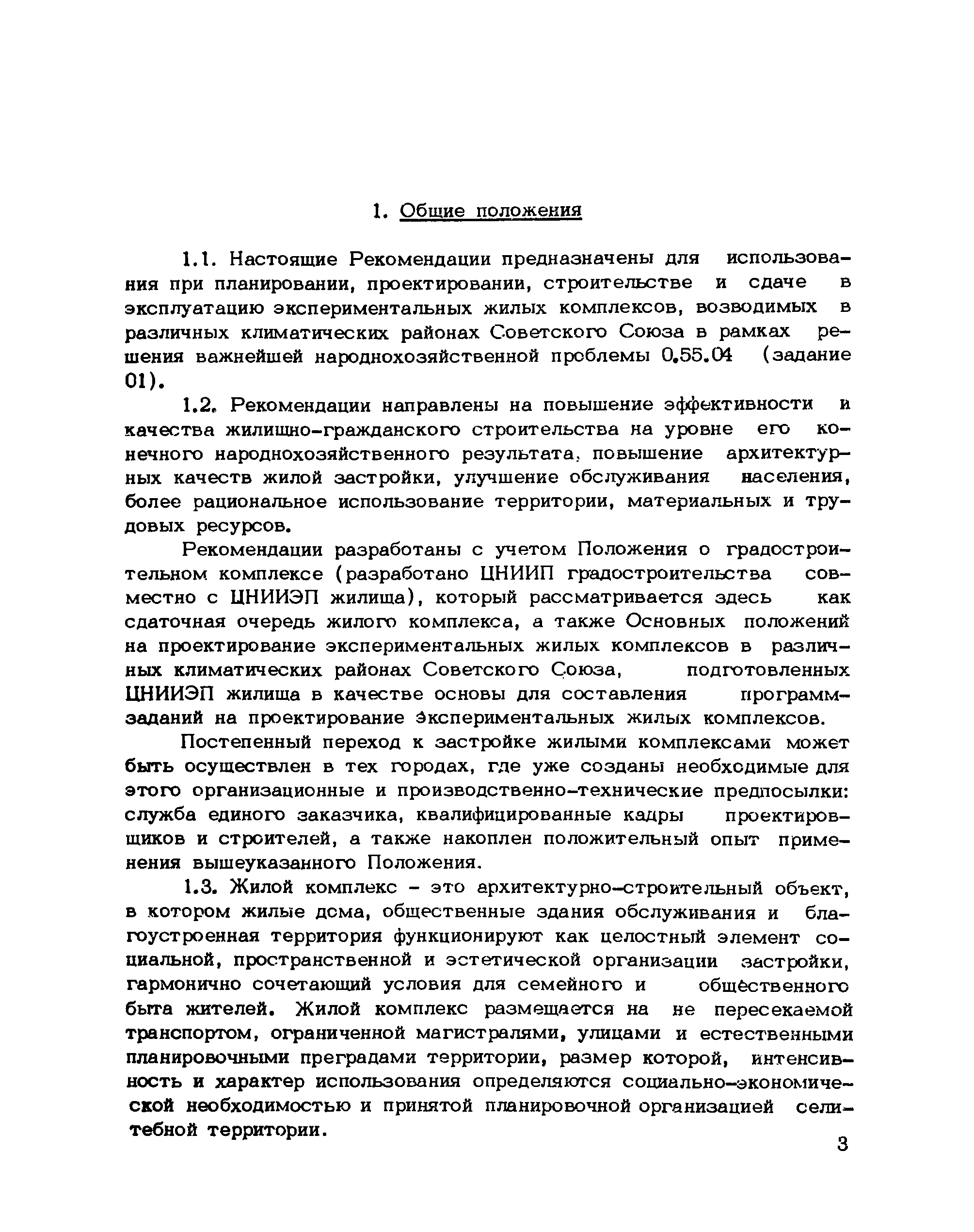 Рекомендации по планированию, организации проектирования и строительства жилых комплексов| Статус: | справочные материалы, мп, тпр | | Название рус.: | Рекомендации по планированию, организации проектирования и строительства жилых комплексов | | Дата добавления в базу: | 01.09.2013 | | Дата актуализации: | 01.01.2021 | | Область применения: | Рекомендации предназначены для использования при планировании, проектировании. строительстве и сдаче в эксплуатацию экспериментальных жилых комплексов, возводимых в различных климатических районах | | Оглавление: | 1. Общие положения 2. Предпроектный этап 3. Проектирование 4. Строительство 5. Приемка и ввод в эксплуатацию | | Разработан: | ЦНИИП градостроительства ЦНИИЭП учебных зданий Госгражданстроя при Госстрое СССР ЦНИИЭП жилища