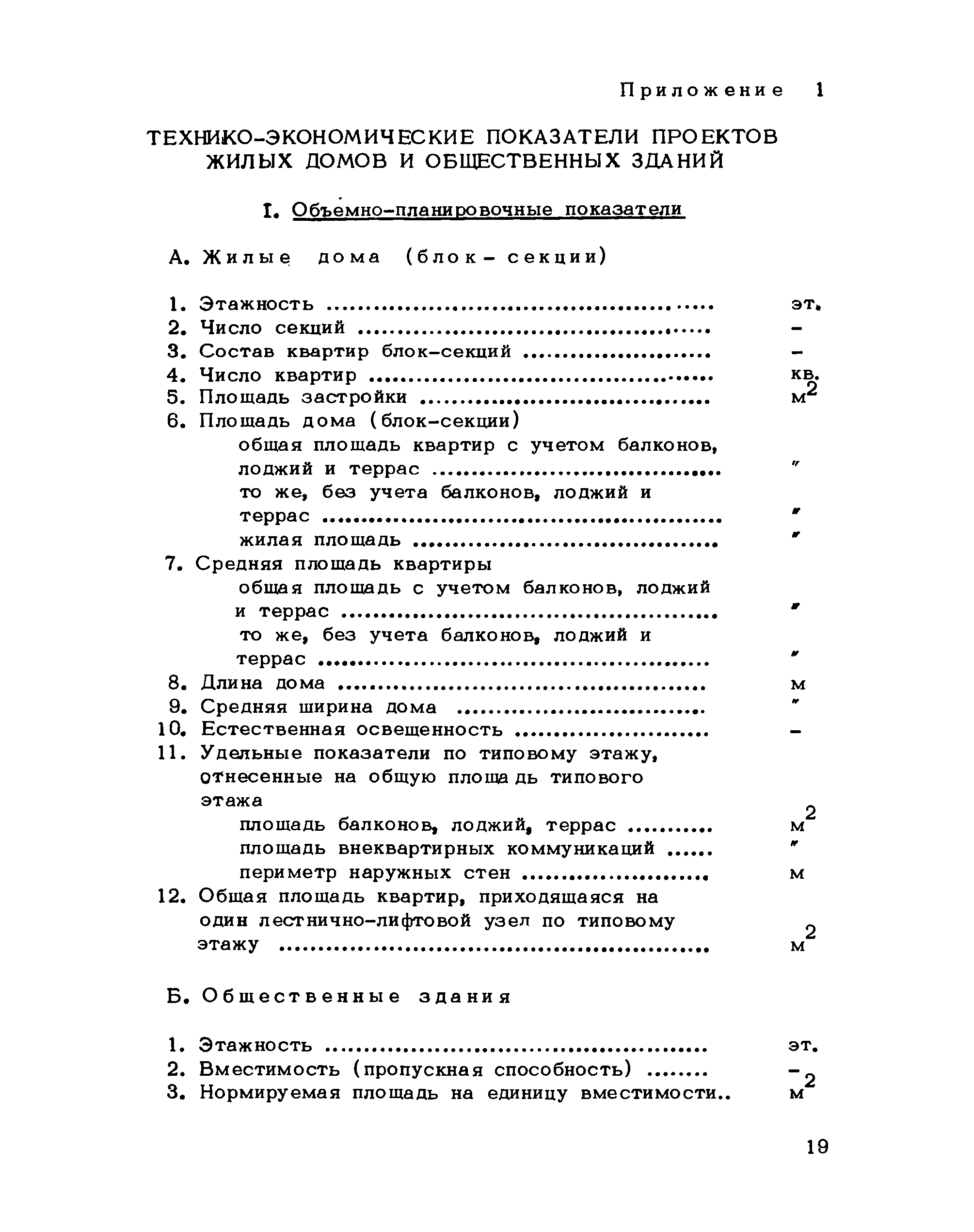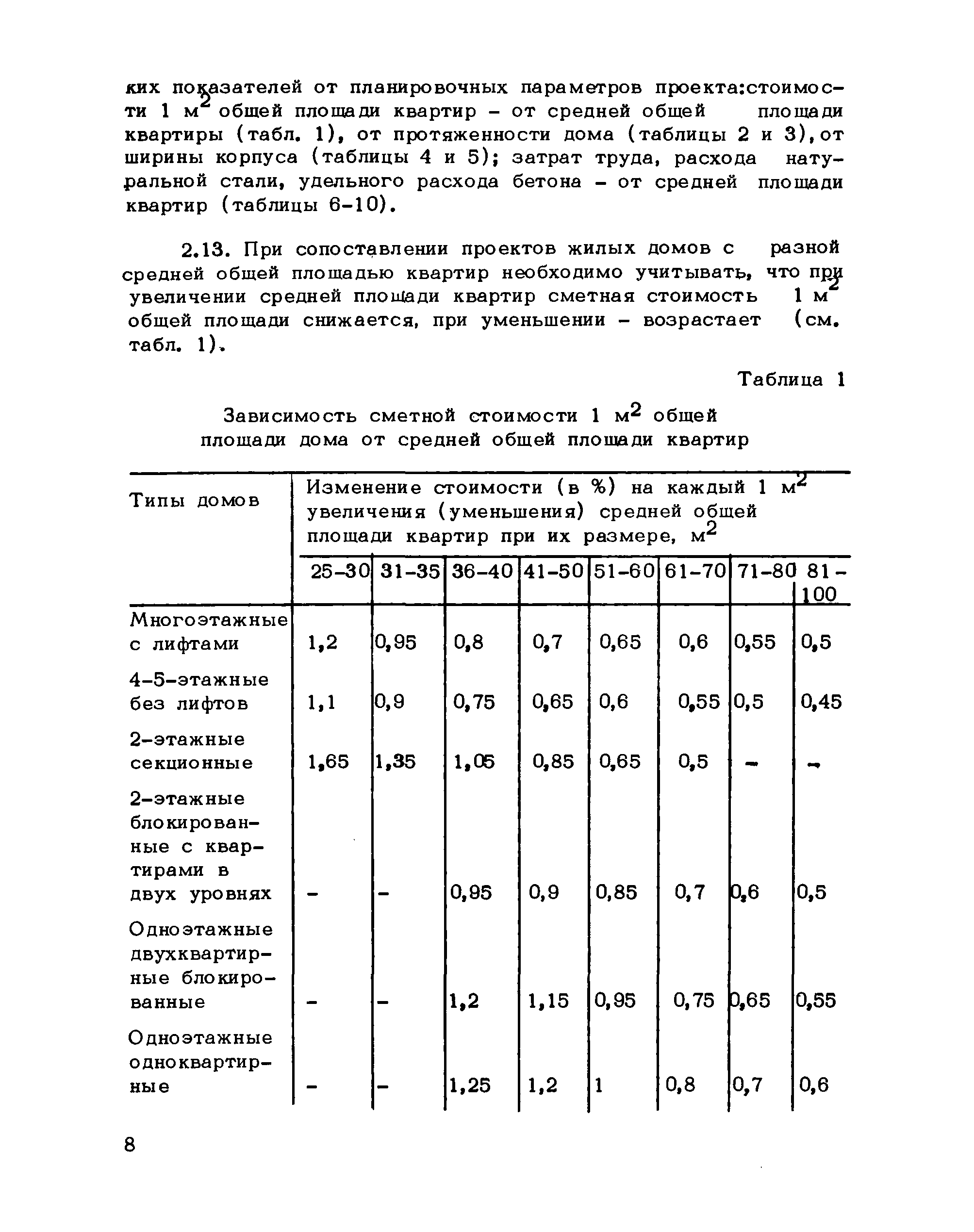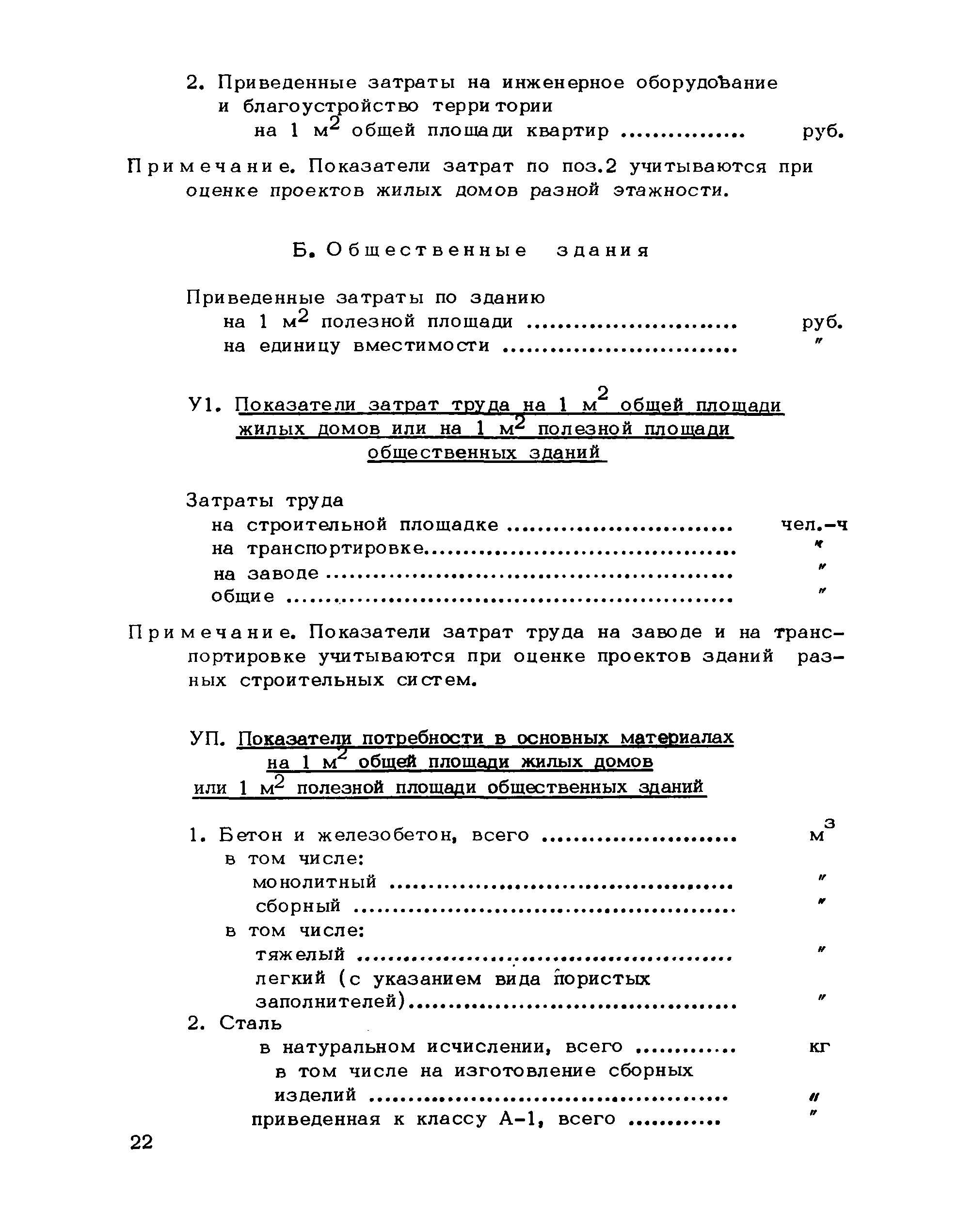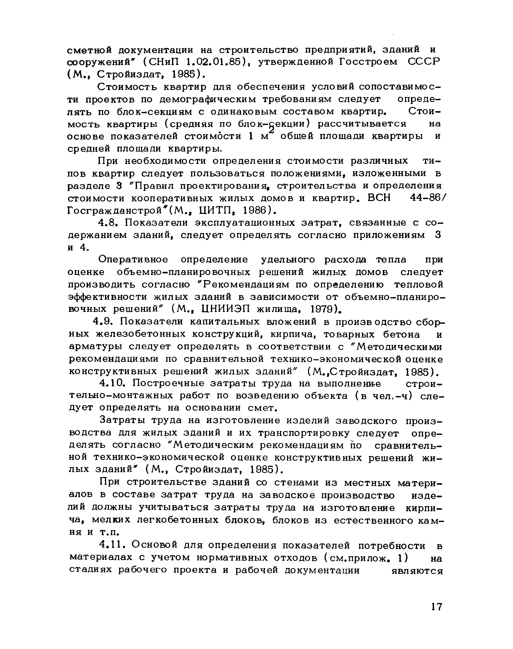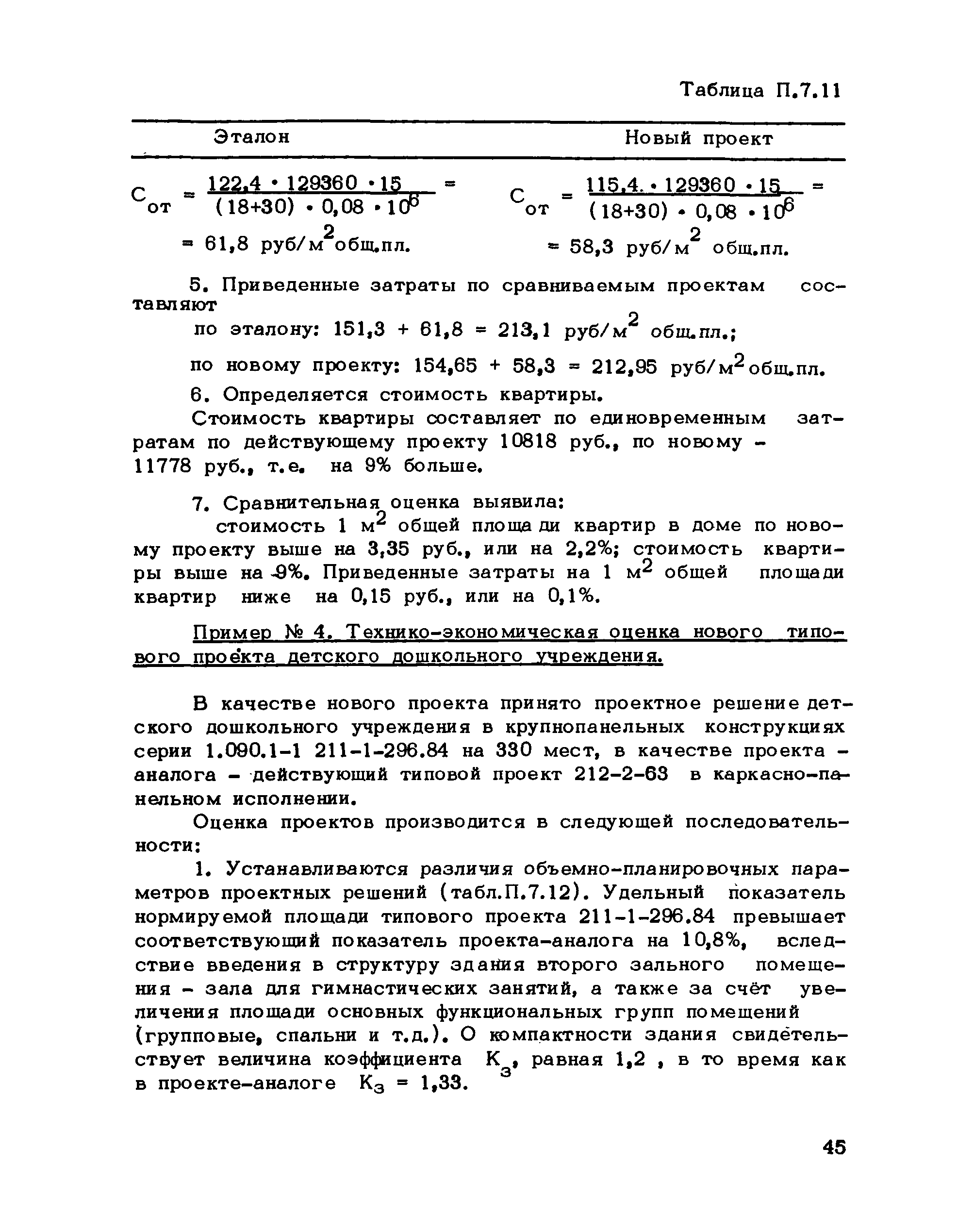 | Оглавление: | 1. Общие положения 2. Методика технико-экономической оценки проектов 3. Состав технико-экономических показателей и расчетные единицы измерения 4. Определение технико-экономических показателей Приложение 1. Технико-экономические показатели проектов жилых домов и общественных зданий Приложение 2. Расчётные единицы измерения А. Расчётные единицы измерения при оценке проектов жилых домов и общественных зданий и сооружений Б. Расчётные единицы измерения при оценке отдельных конструктивных элементов Приложение 3. Годовые эксплуатационные расходы по лифтовым установкам Приложение 4. Расчет затрат на отопление зданий Приложение 5. I. Коэффициенты приведения материалов II. Коэффициенты, учитывающие потери материалов при изготовлении конструкций Приложение 6. Рекомендуемая норма для проведения оценки проектных решений Приложение 7. Примеры технико-экономической оценки проектов Пример 1. Технико-экономическая оценка типовых проектов жилых домов для разных этапов строительства Пример 2. Технико-экономическая оценка объемно-планировочных решений проектов жилых домов Пример 3. Технико-экономическая оценка жилых домов усадебного типа Пример 4. Технико-экономическая оценка нового типового проекта детского дошкольного учреждения Пример 5. Технико-экономическая оценка типового проекта школы |