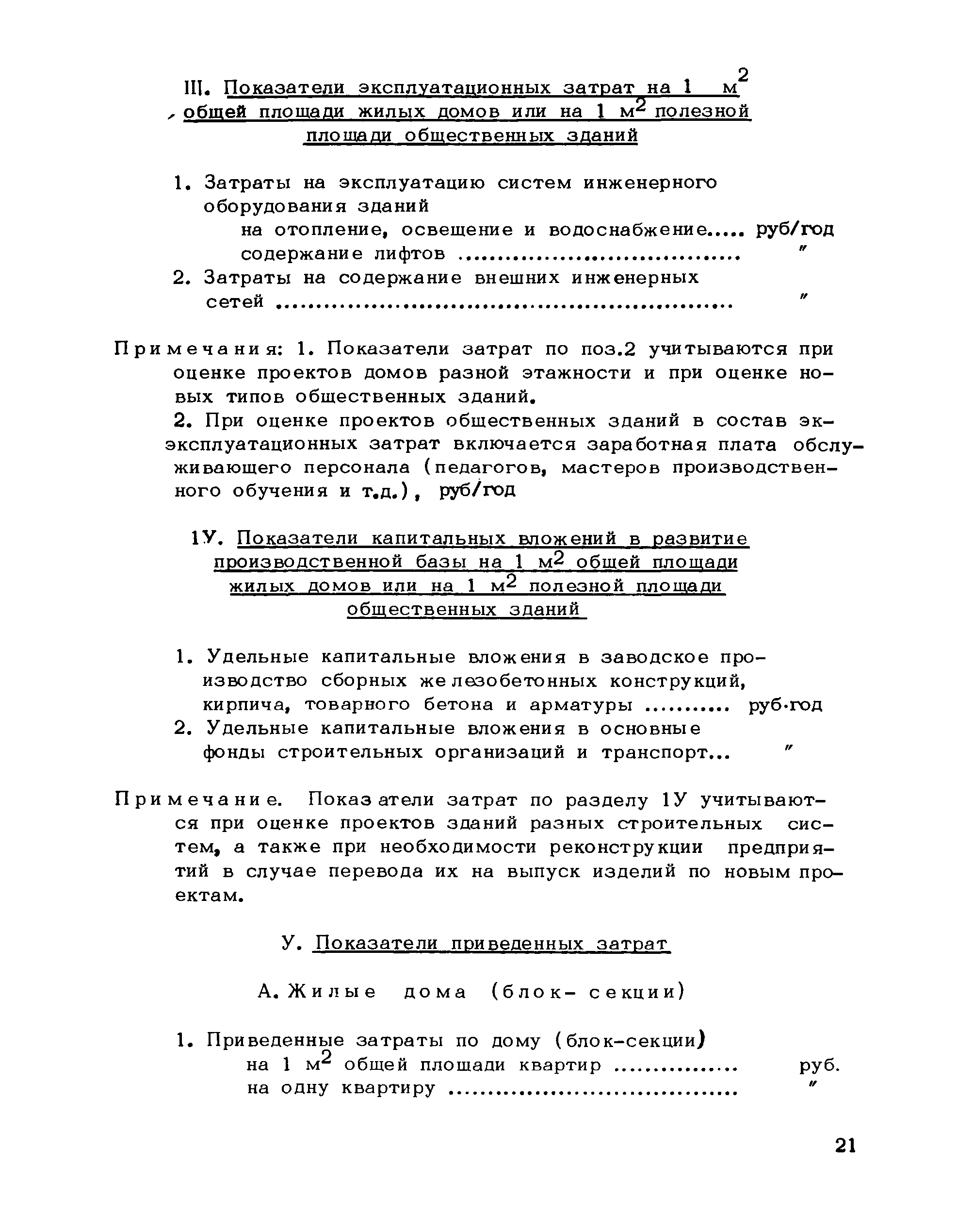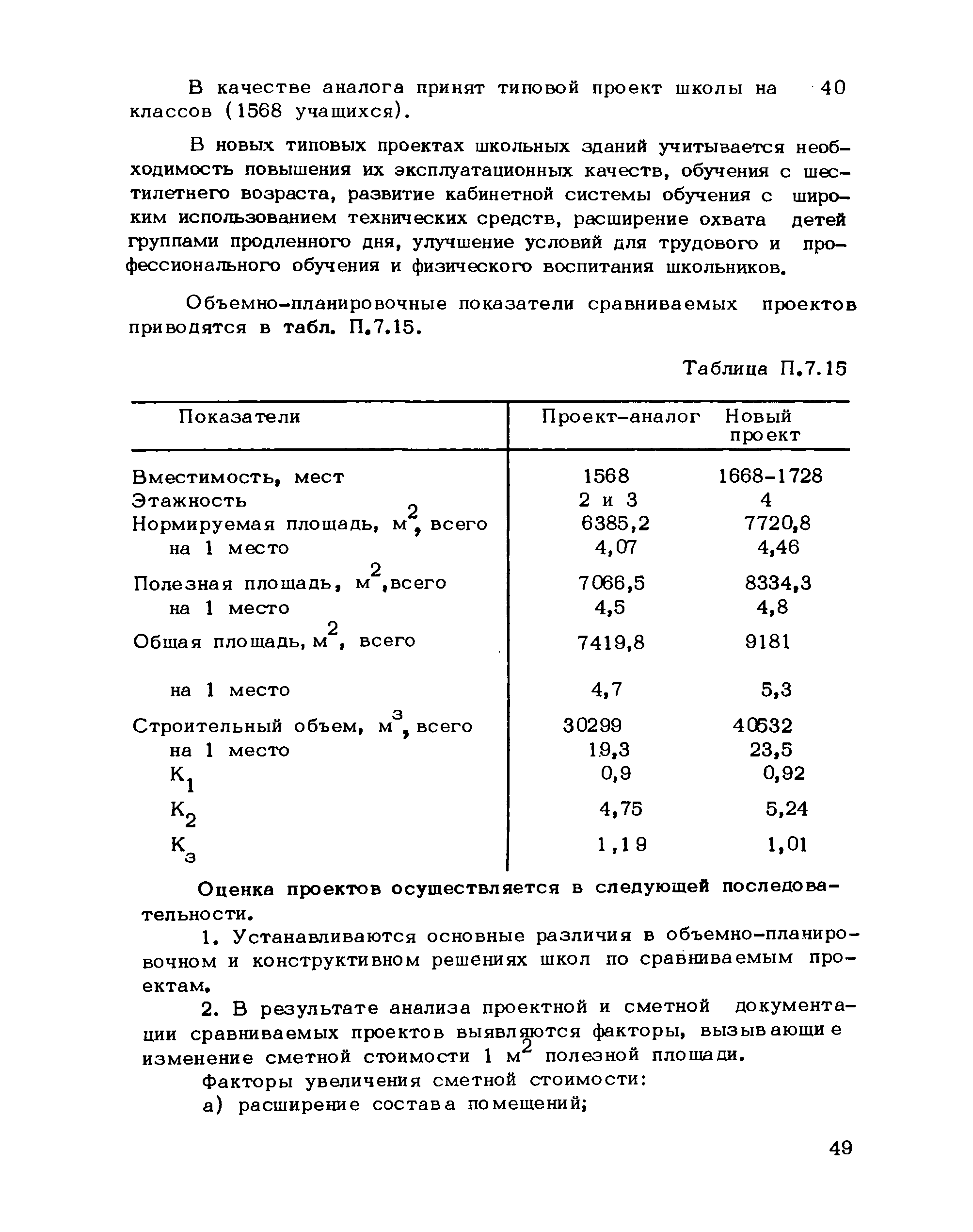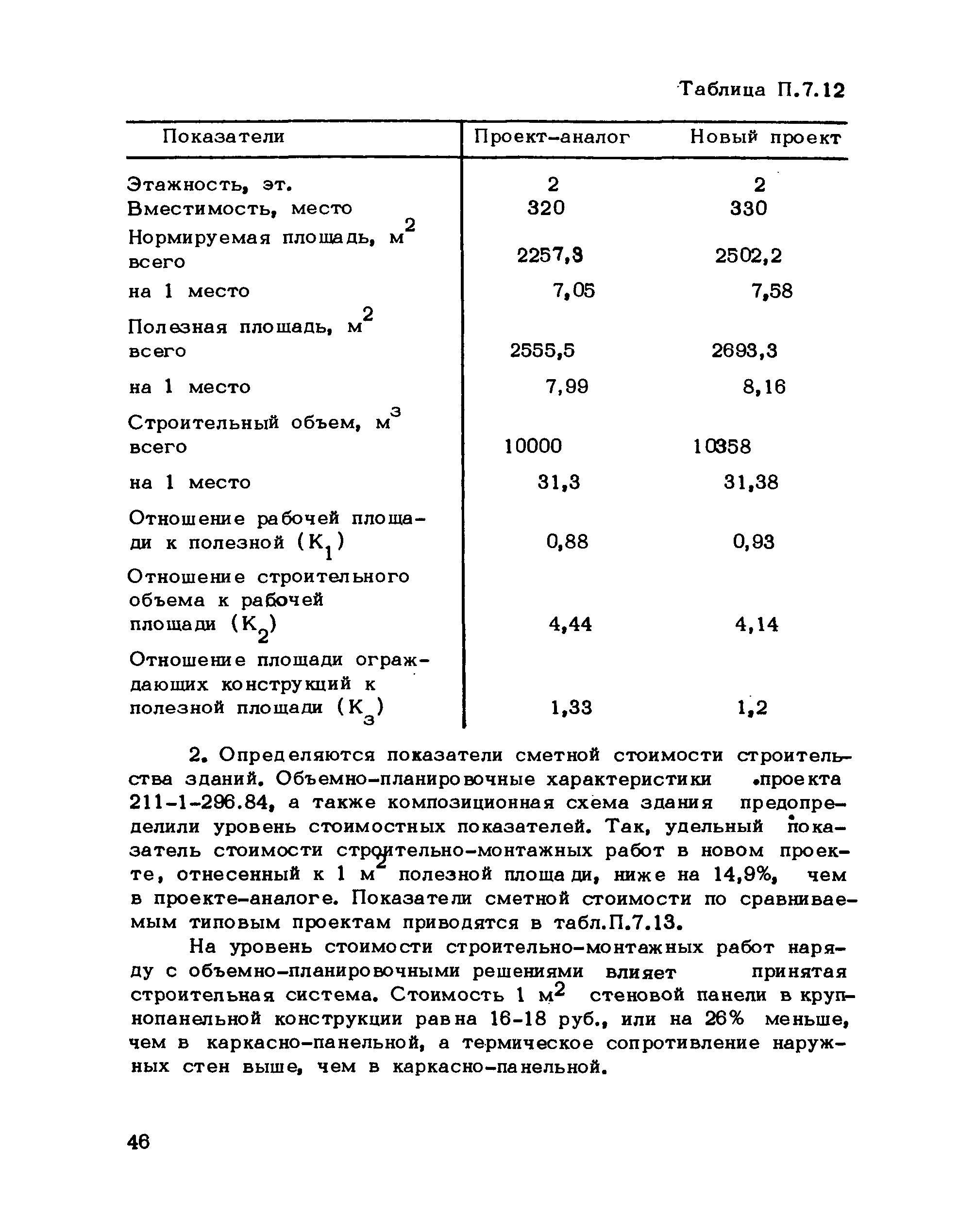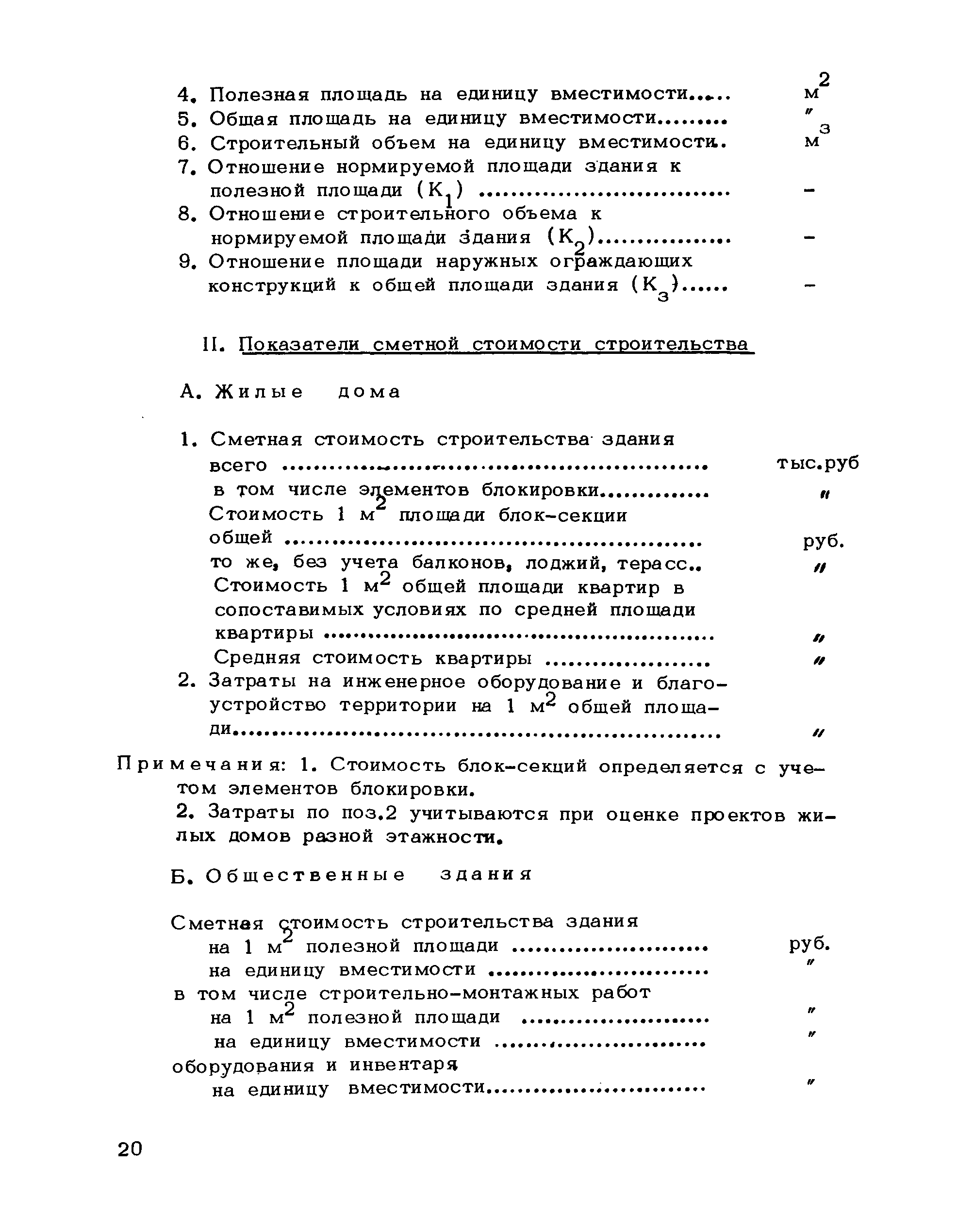 | Оглавление: | 1. Общие положения 2. Методика технико-экономической оценки проектов 3. Состав технико-экономических показателей и расчетные единицы измерения 4. Определение технико-экономических показателей Приложение 1. Технико-экономические показатели проектов жилых домов и общественных зданий Приложение 2. Расчётные единицы измерения А. Расчётные единицы измерения при оценке проектов жилых домов и общественных зданий и сооружений Б. Расчётные единицы измерения при оценке отдельных конструктивных элементов Приложение 3. Годовые эксплуатационные расходы по лифтовым установкам Приложение 4. Расчет затрат на отопление зданий Приложение 5. I. Коэффициенты приведения материалов II. Коэффициенты, учитывающие потери материалов при изготовлении конструкций Приложение 6. Рекомендуемая норма для проведения оценки проектных решений Приложение 7. Примеры технико-экономической оценки проектов Пример 1. Технико-экономическая оценка типовых проектов жилых домов для разных этапов строительства Пример 2. Технико-экономическая оценка объемно-планировочных решений проектов жилых домов Пример 3. Технико-экономическая оценка жилых домов усадебного типа Пример 4. Технико-экономическая оценка нового типового проекта детского дошкольного учреждения Пример 5. Технико-экономическая оценка типового проекта школы |