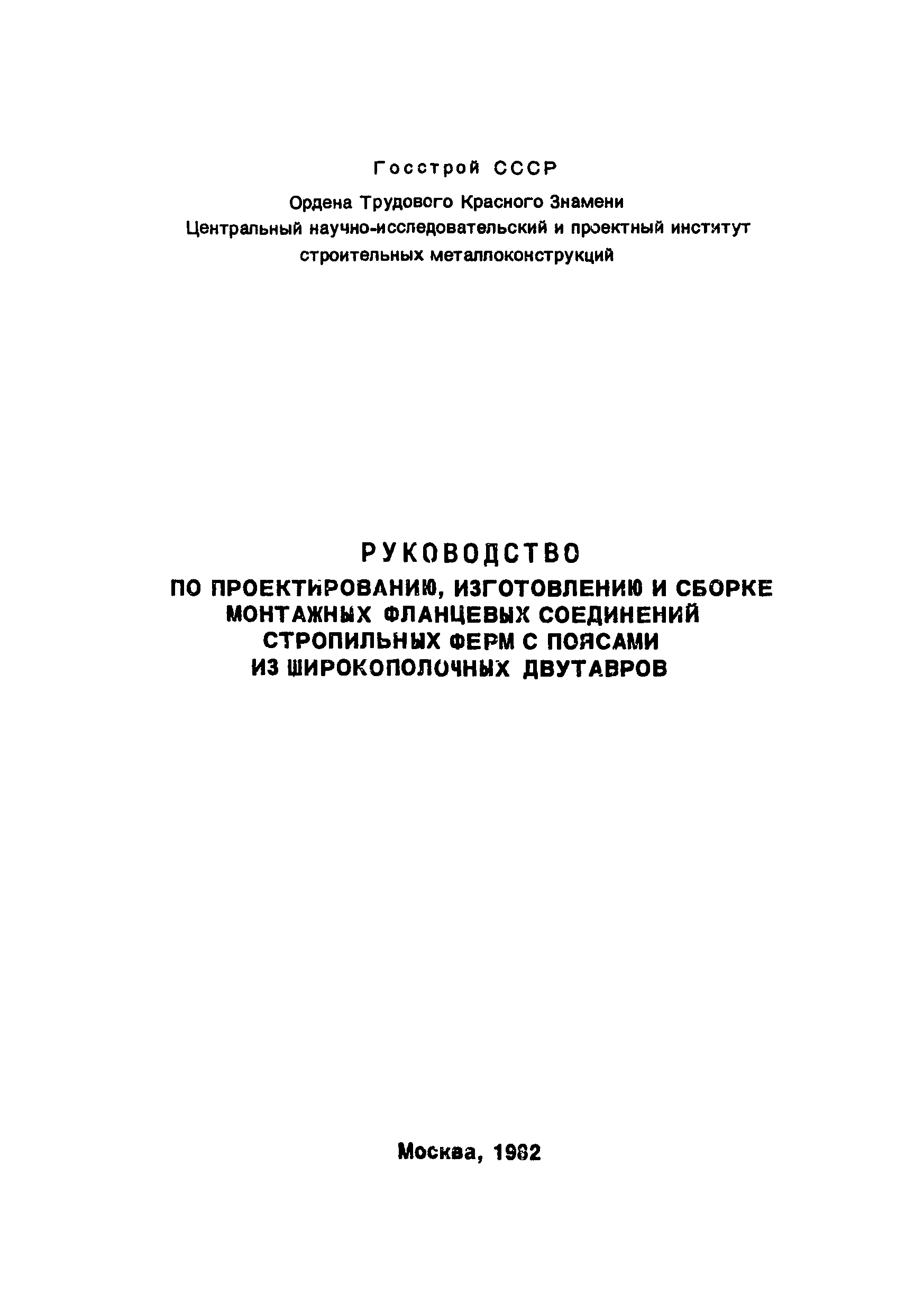 | Название рус.: | Руководство по проектированию, изготовлению и сборке монтажных фланцевых соединений стропильных ферм с поясами из широкополочных двутавров |