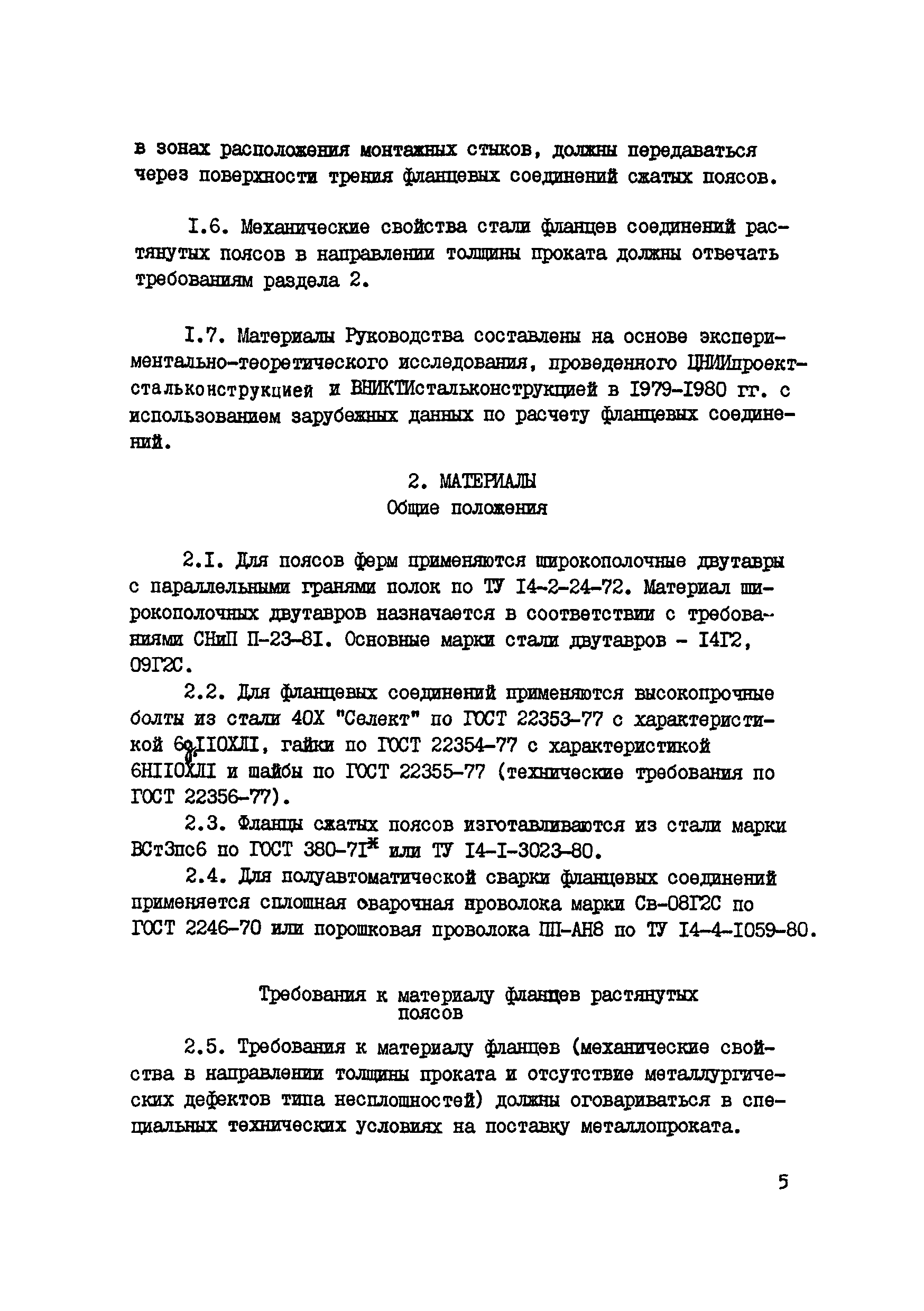 | Заменяет собой: | - ОЭИ 268 «Руководство по проектированию, изготовлению и сборке монтажных фланцевых соединений стропильных ферм с поясами из широкополочных двутавров»