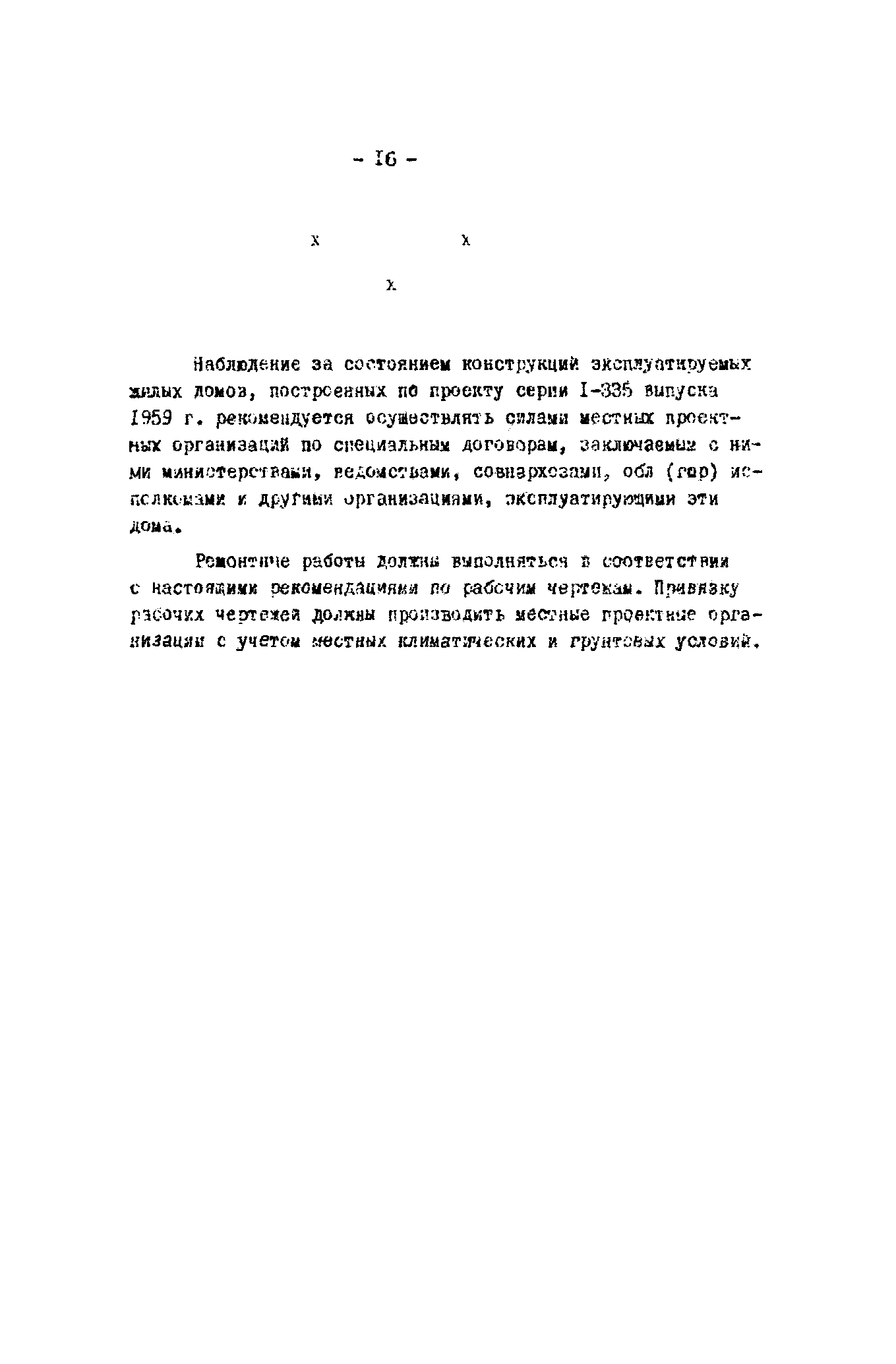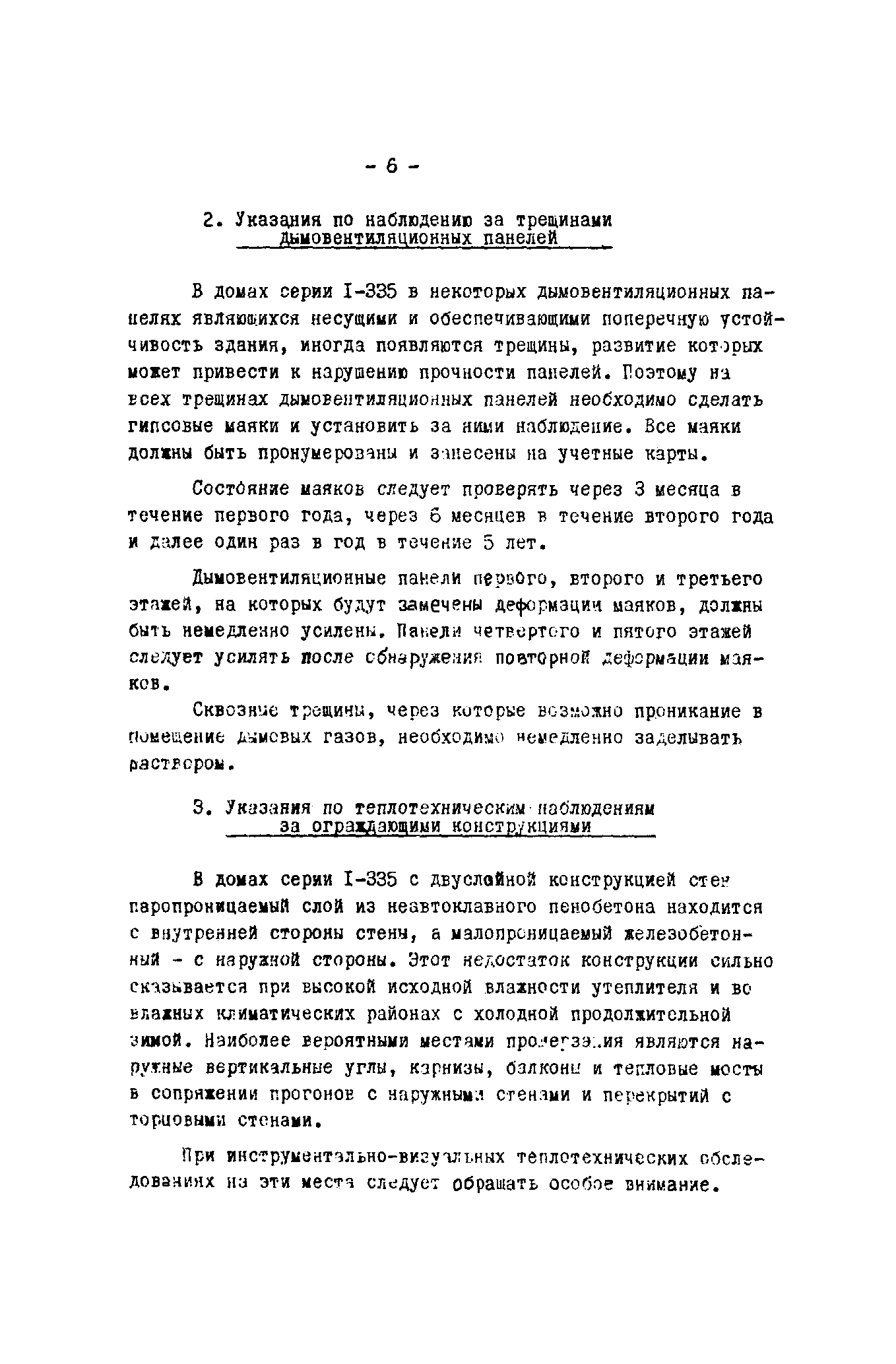 | Оглавление: | Раздел 1. Методические указания по наблюдению за состоянием несущих и ограждающих конструкций эксплуатируемых домов Серии I-335 1. Указания по определению прогибов перекрытий 2. Указания по наблюдению за трещинами дымовентиляционных панелей 3. Указания по теплотехническим наблюдениям за ограждающими конструкциями Раздел 2. Рекомендации по устранению недостатков в построенных домах Серии I-335 Схемы |