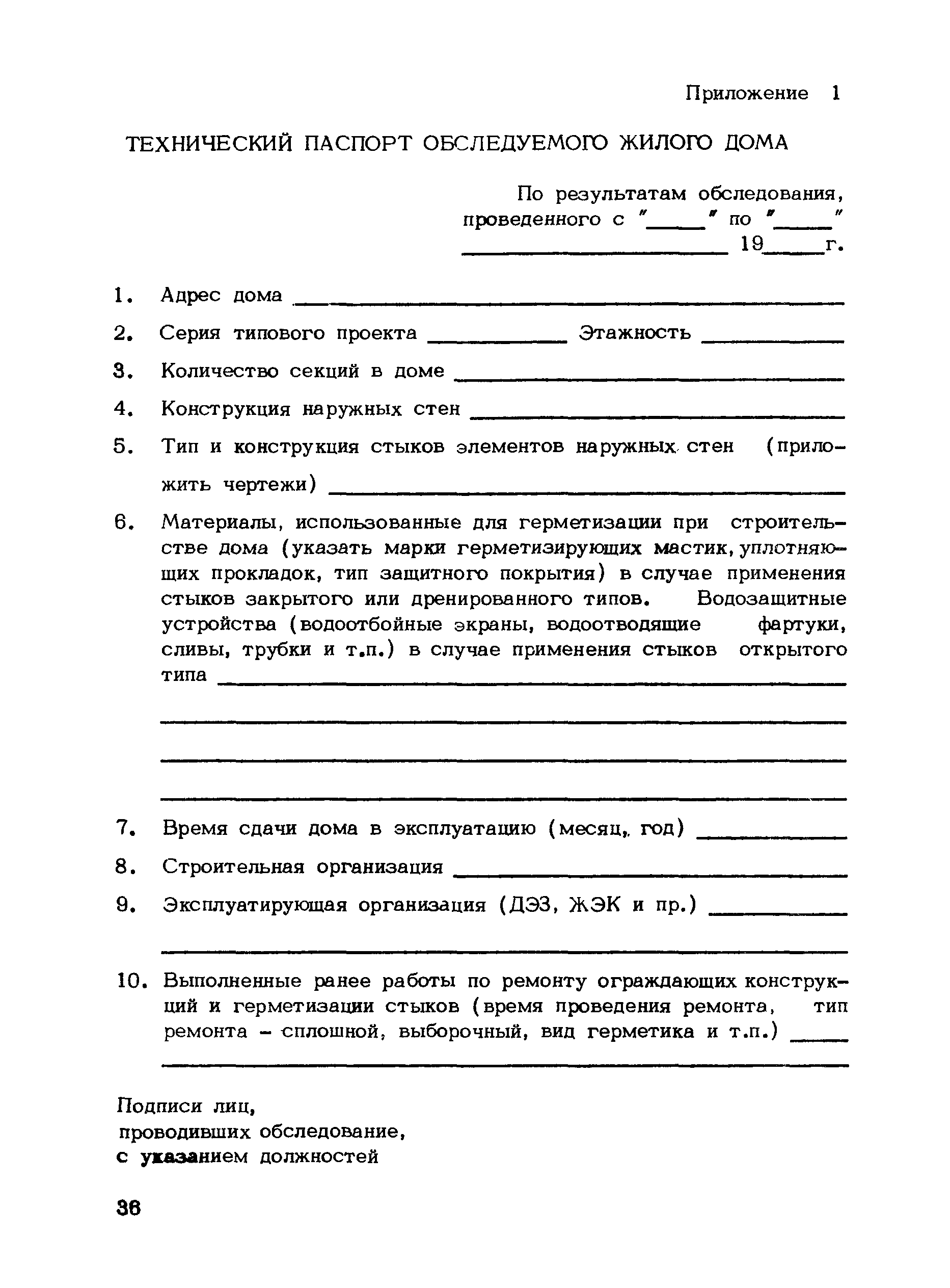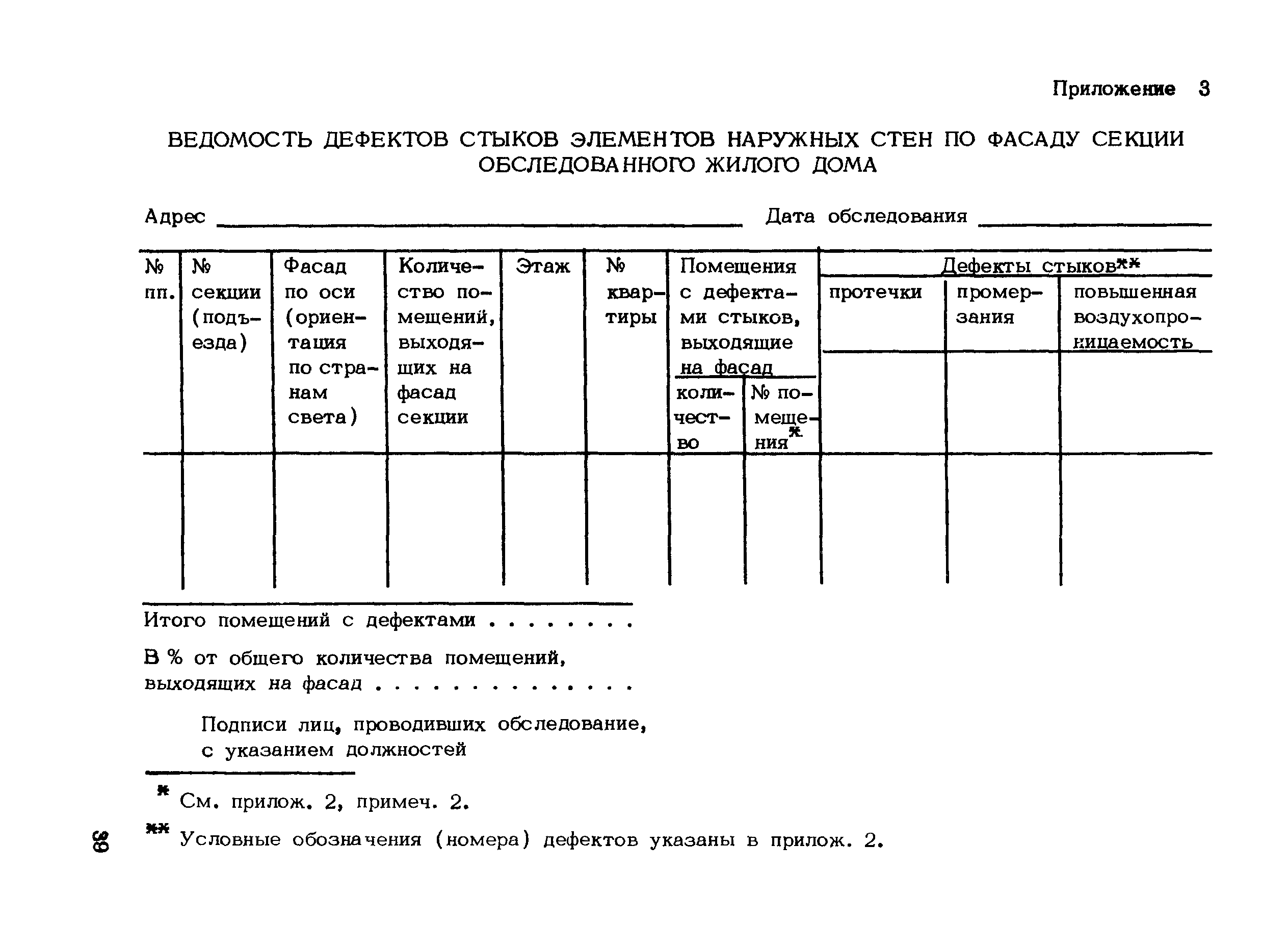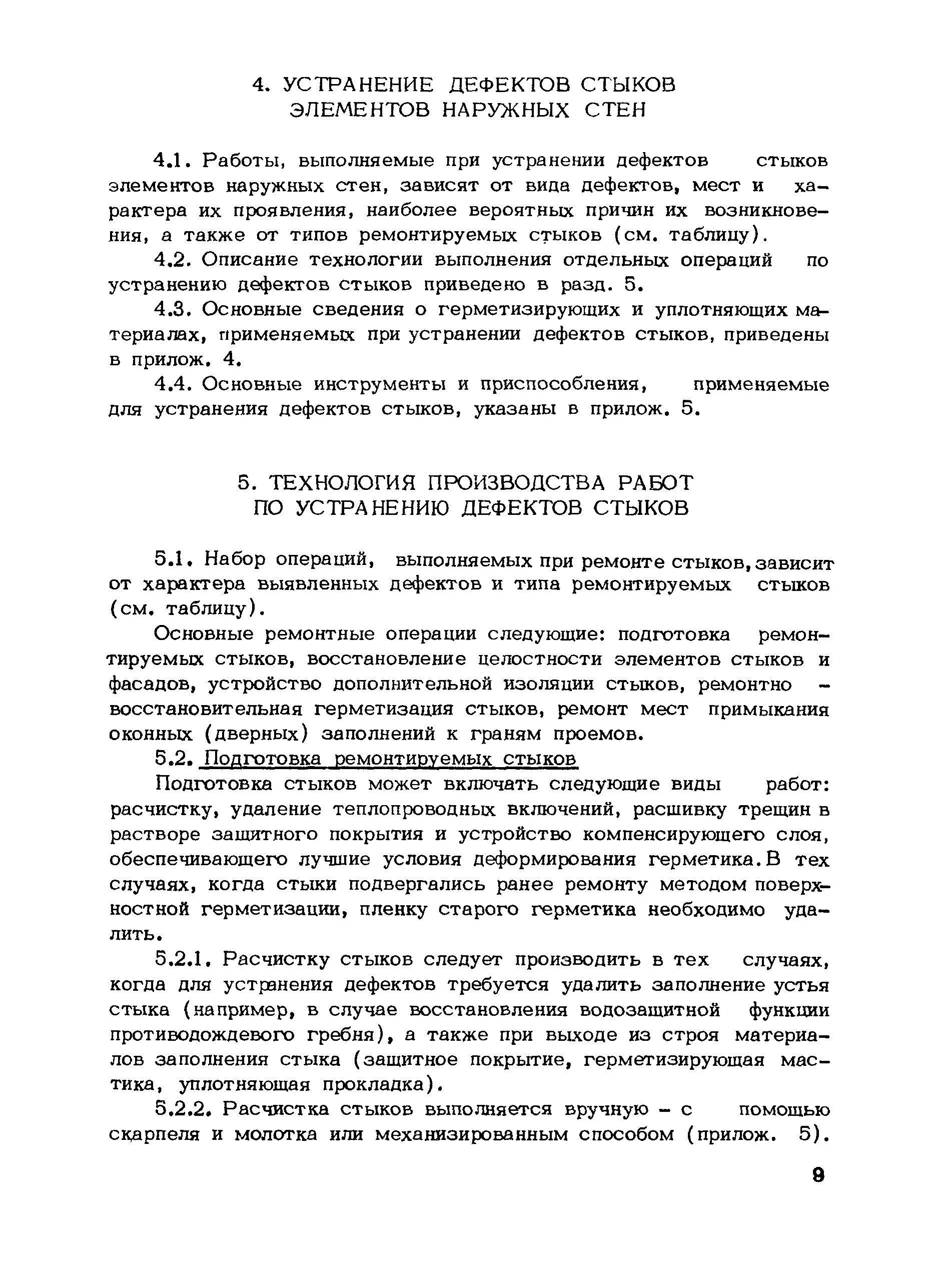| Оглавление: | Введение 1. Общие положения 2. Проведение обследований стыков 3. Организация ремонтных работ 4. Устранение дефектов стыков элементов наружных стен 5. Технология производства работ по устранению дефектов стыков Подготовка ремонтируемых стыков Восстановление целостности элементов стыков Устройство дополнительной изоляции стыков Ремонтно-восстановительная герметизация стыков Ремонт мест примыкания оконных (дверных) заполнений к граням проемов 6. Контроль за производством работ Приложение 1. Технический паспорт обследуемого жилого дома Приложение 2. Виды дефектов и места их проявления в помещении Приложение 3. Ведомость дефектов стыков элементов наружных стен по фасаду секции обследованного жилого дома Приложение 4. Основные сведения о материалах и изделиях, применяемых при ремонте стыков Приложение 5. Перечень основного оборудования и инструментов, применяемых при ремонте стыков элементов наружных стен |