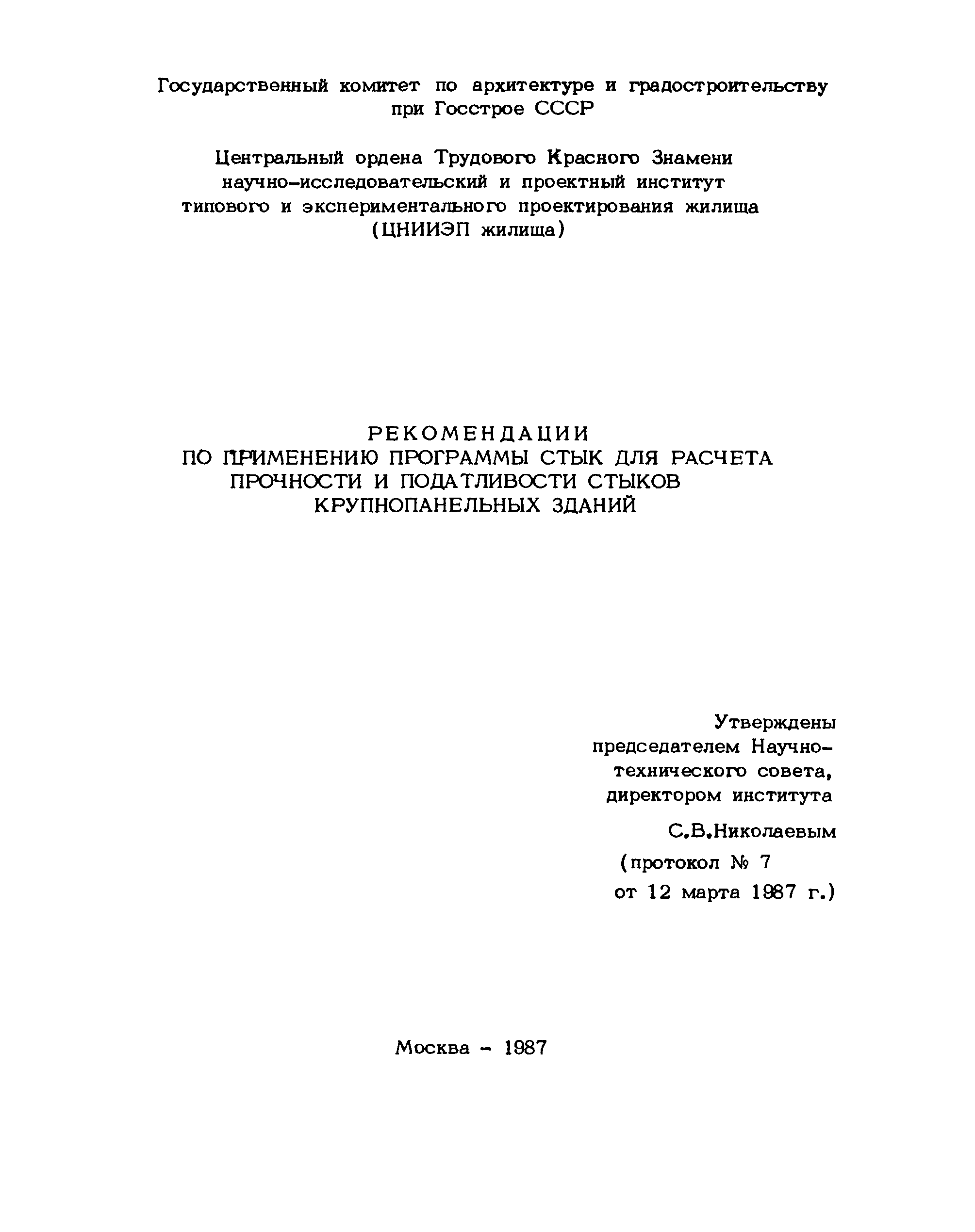 | Утверждён: | 12.03.1987 ЦНИИЭП жилища (TsNIIEPzhilishcha 7)
