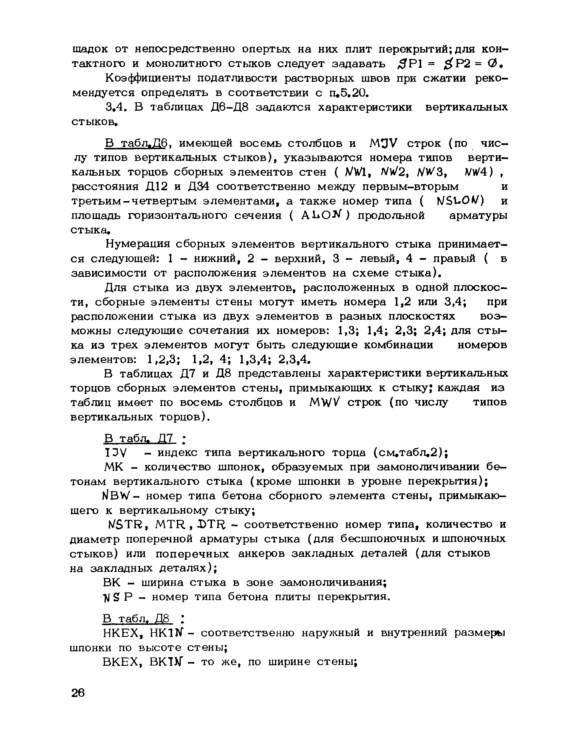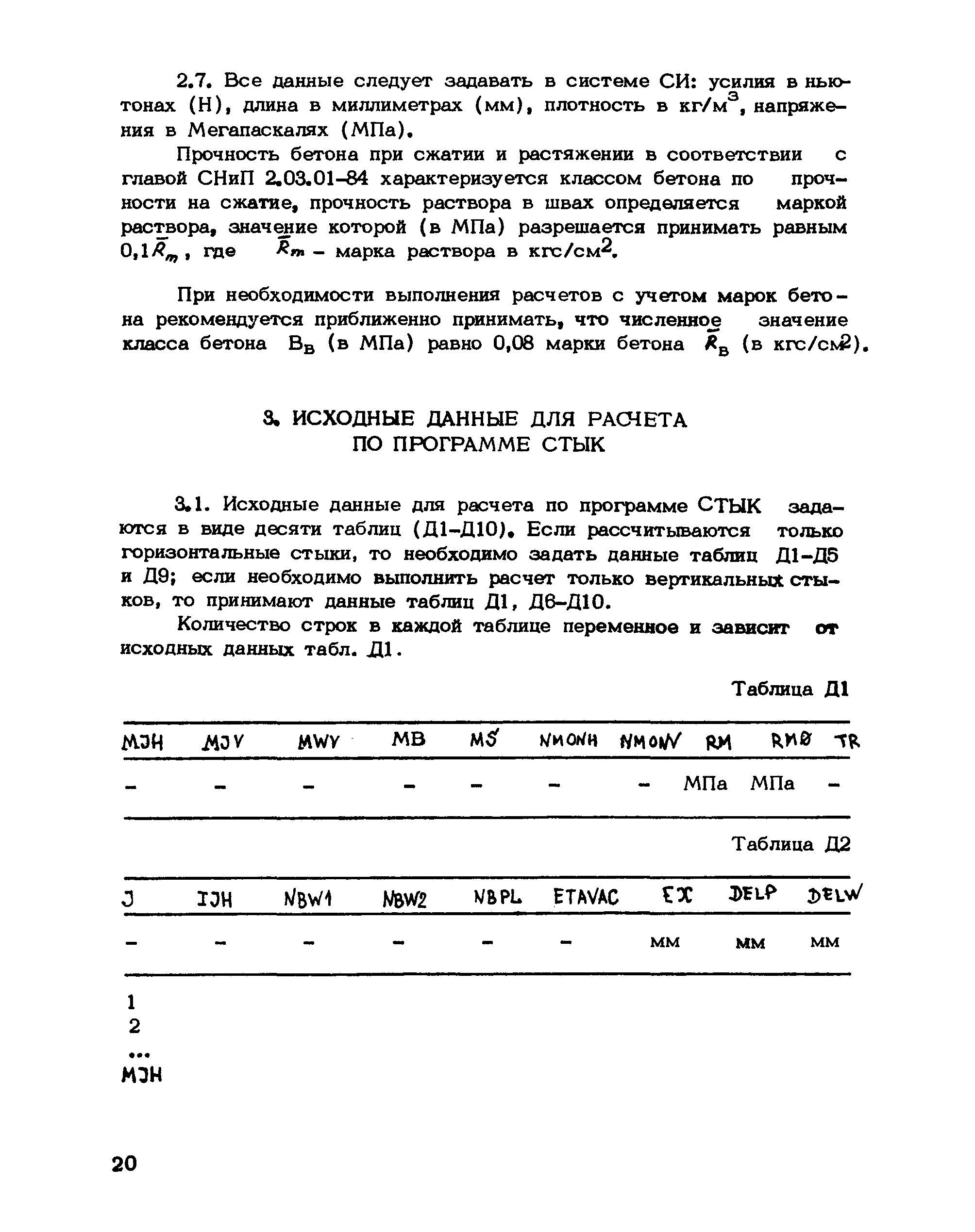 | Оглавление: | 1. Терминология и обозначения 2. Назначение программы 3. Исходные данные для расчета по программе СТЫК 4. Результаты расчета по программе СТЫК 5. Методика расчета прочности и податливости горизонтальных и вертикальных стыков стен из сборных элементов Расчет прочности горизонтальных стыков при сжатии Расчет прочности вертикальных стыков Определение податливости стыковых соединений 6. Примеры расчета стыковых соединений по программе СТЫК 7. Описание программы 7.1.Общие сведения 7.2. Описание логической структуры Литература Приложение. Несущие способности горизонтальных стыков при сжатии (подсчитаны по программе СТЫК) |